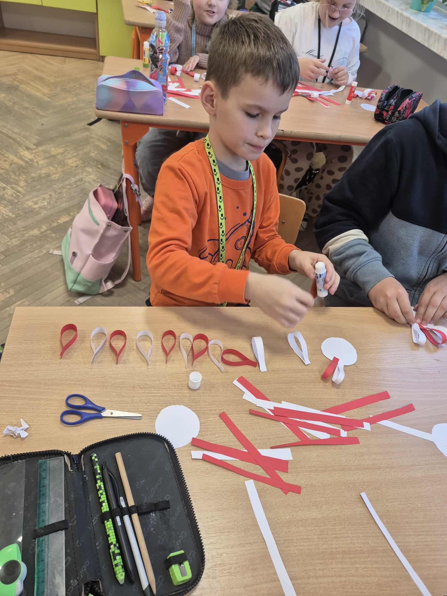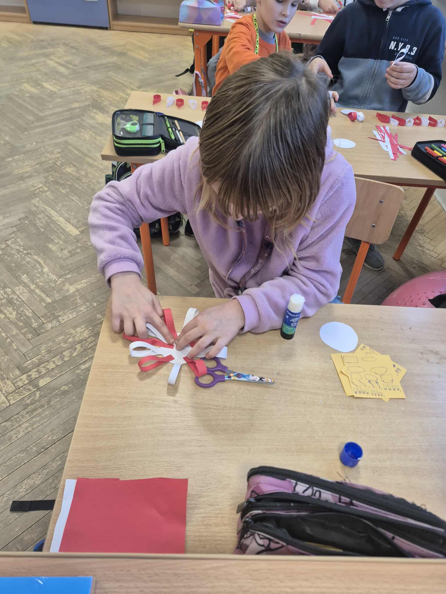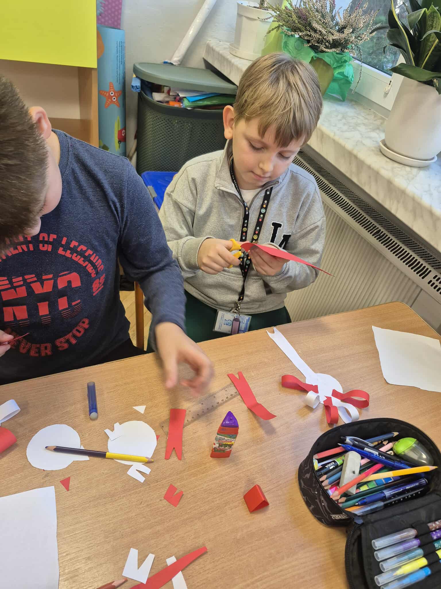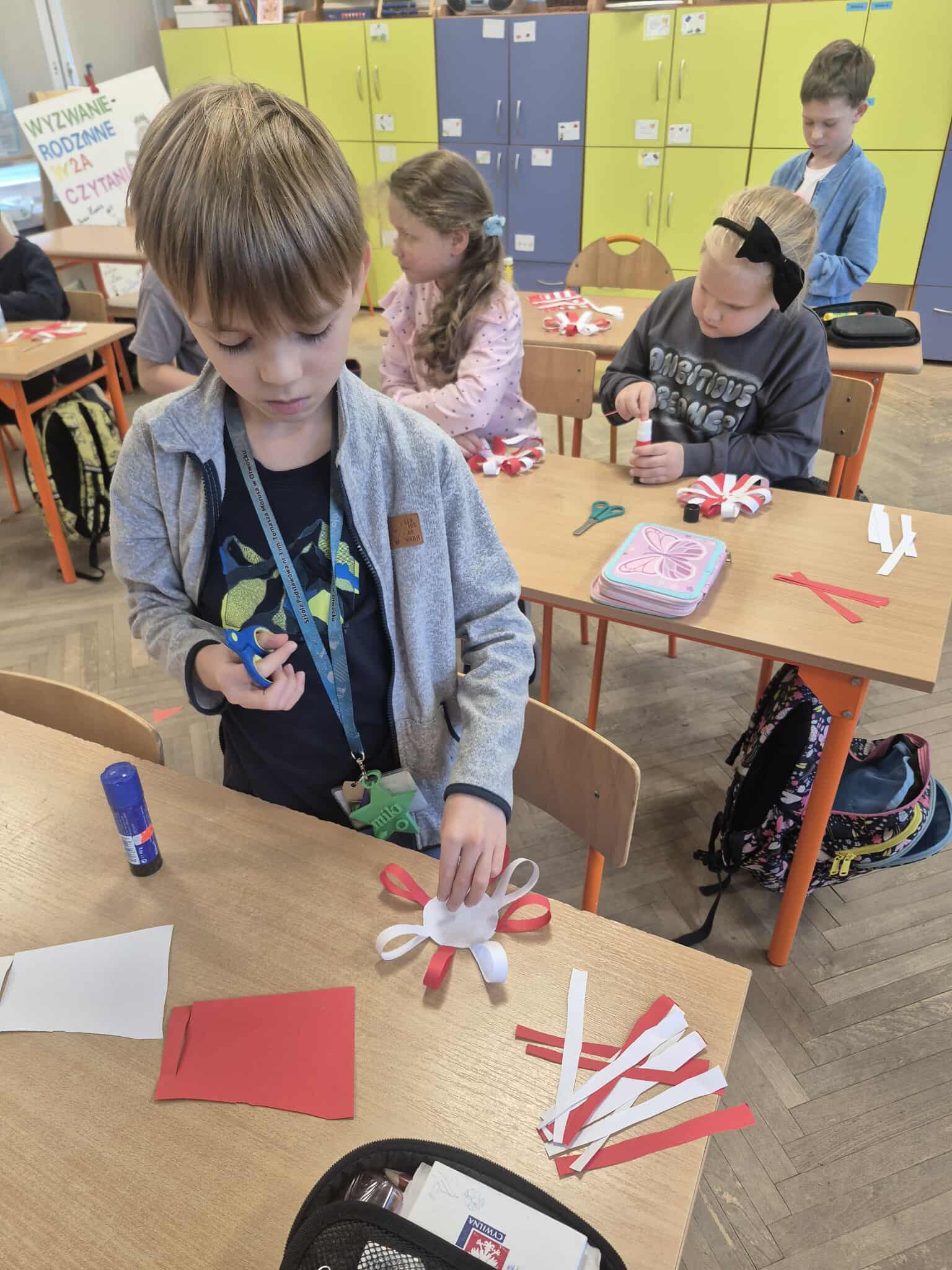Uczniowie klasy 2a dobrze przygotowali się do Narodowego Święta Niepodległości i własnoręcznie przygotowali kotyliony, które z dumą zaprezentowali podczas szkolnych uroczystości związanych z obchodami tego dnia.