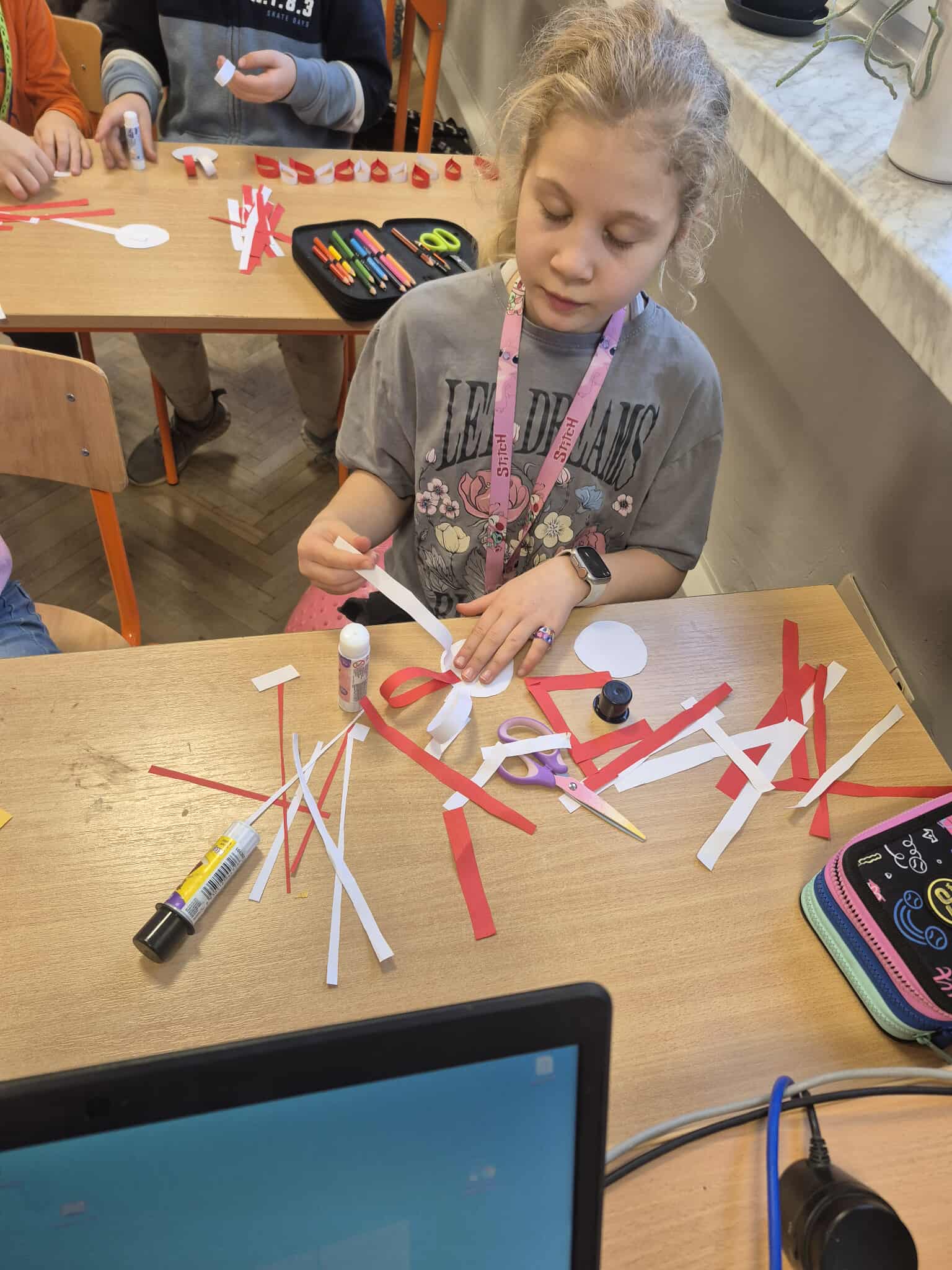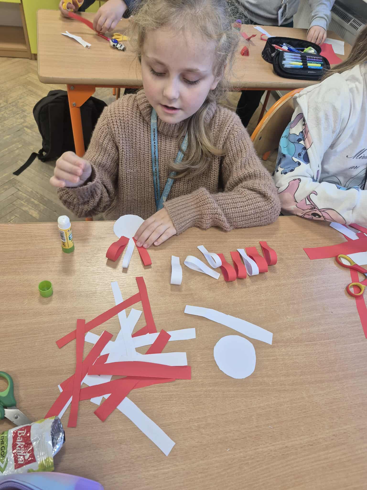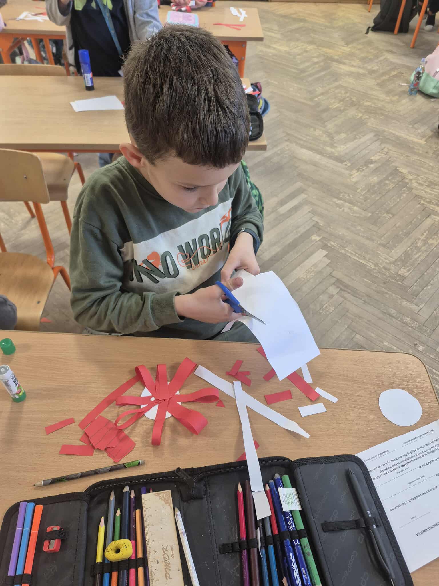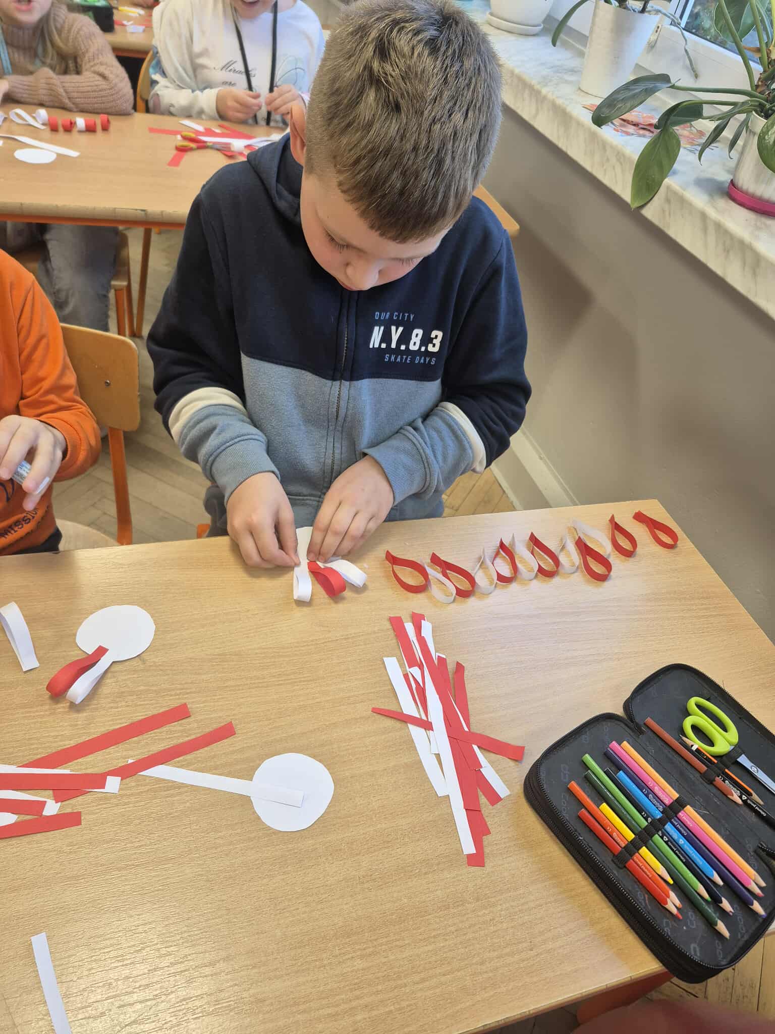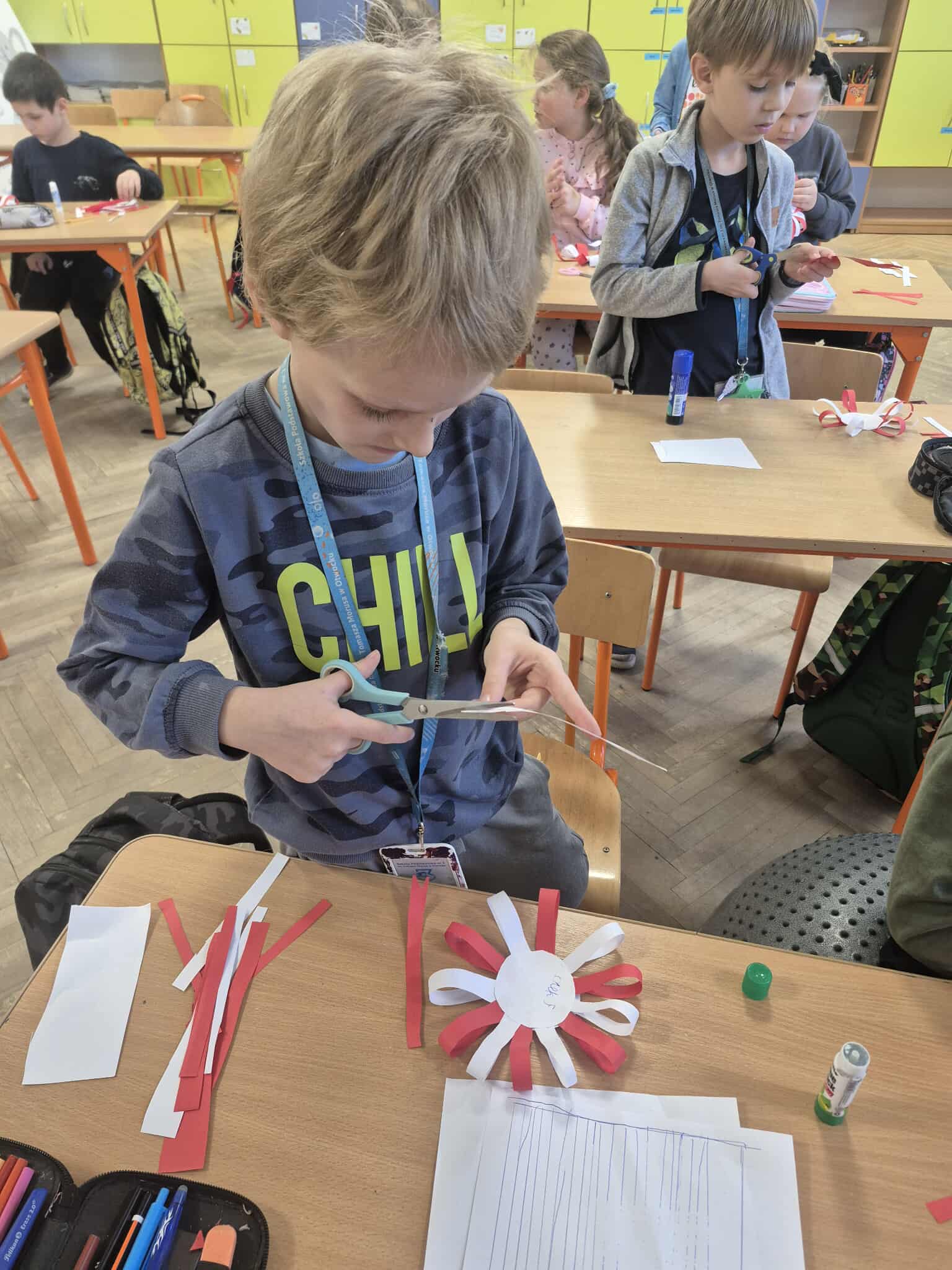 Uczniowie klasy 2a dobrze przygotowali się do Narodowego Święta Niepodległości i własnoręcznie przygotowali kotyliony, które z dumą zaprezentowali podczas szkolnych uroczystości związanych z obchodami tego dnia.