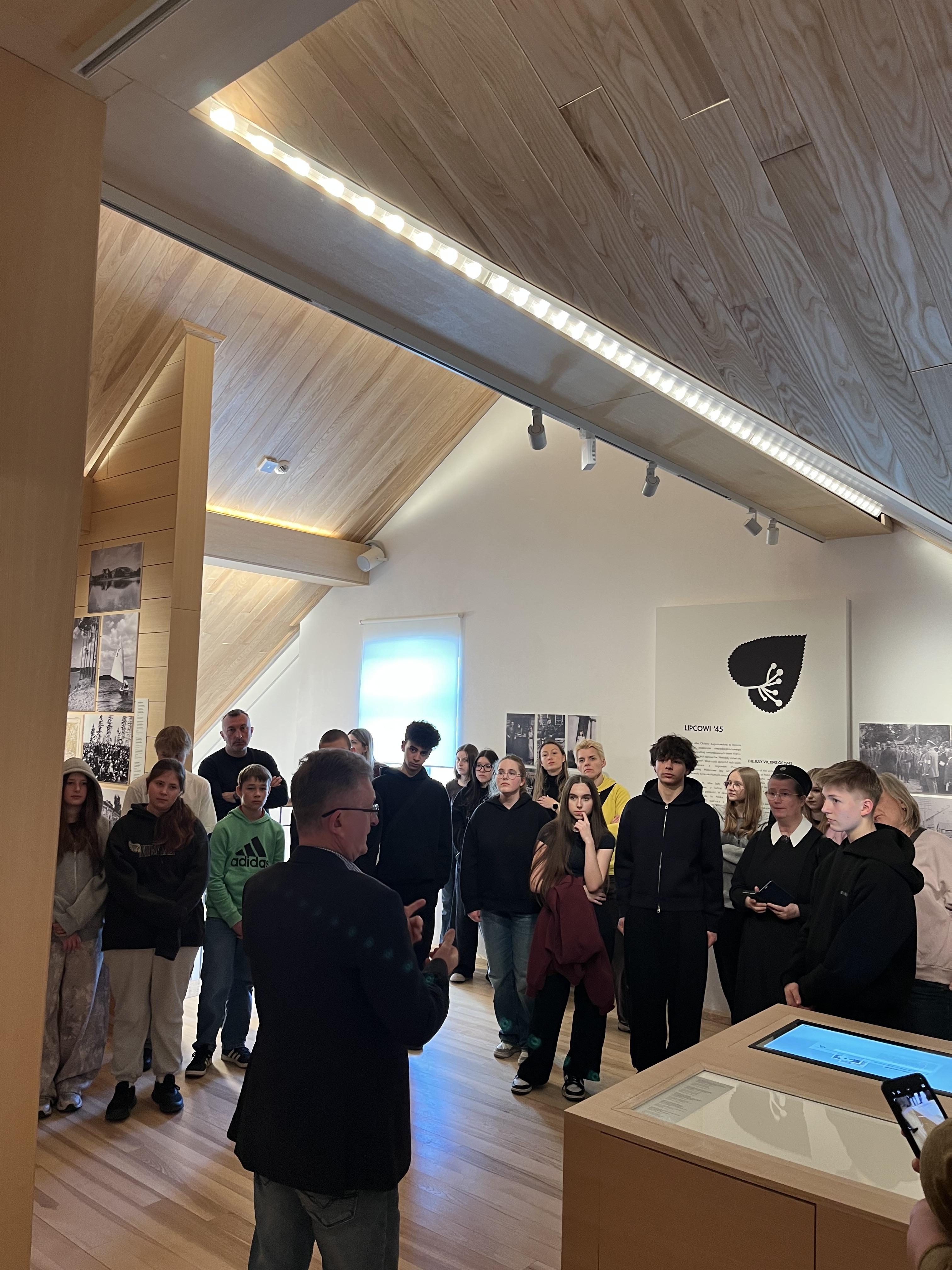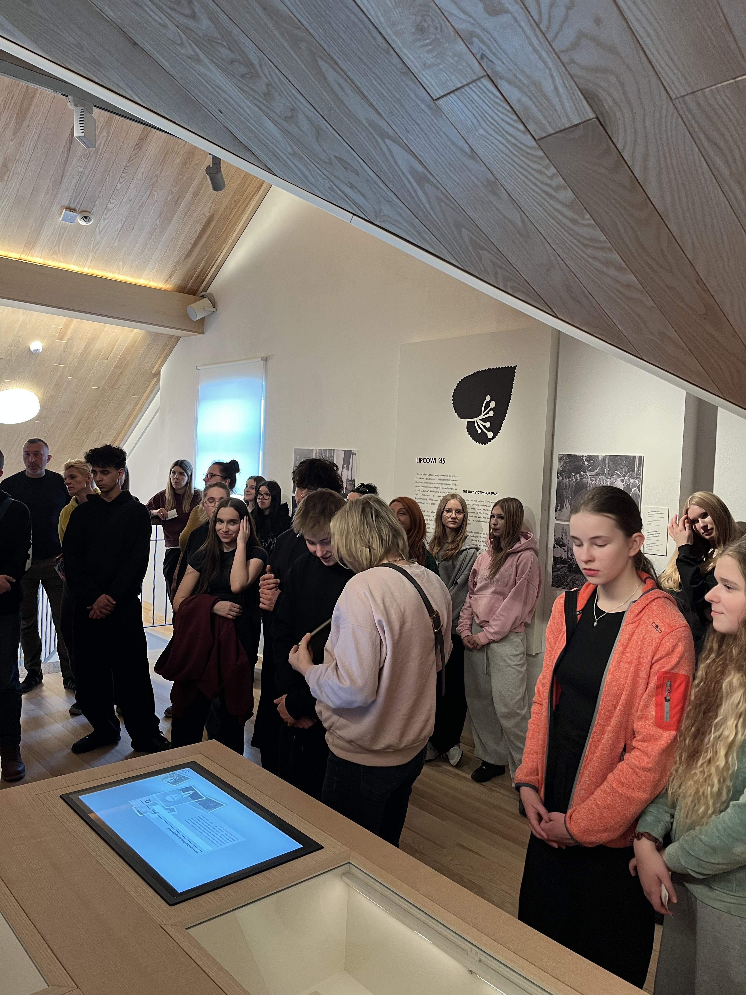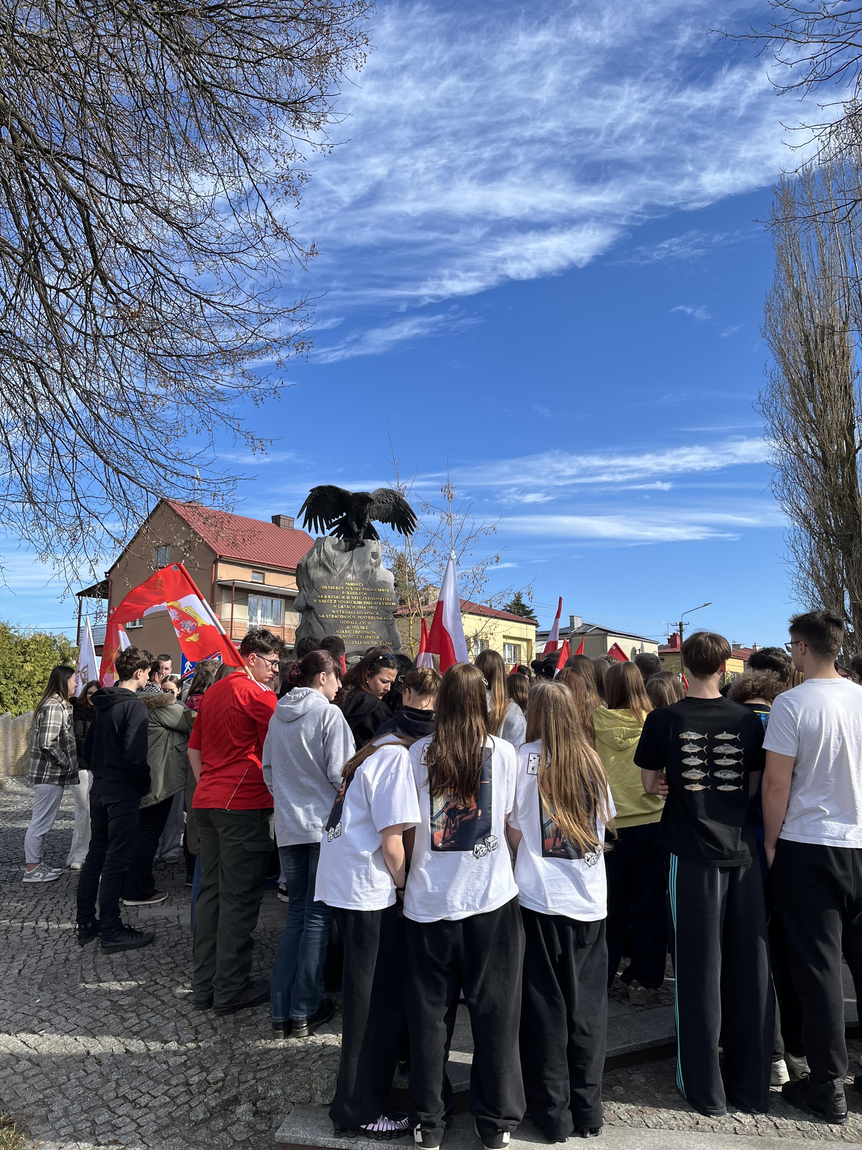 Po obiedzie zwiedziliśmy Dom Pamięci Żołnierzy Wyklętych. Pan przewodnik opowiedział nam o przebiegu obławy augustowskiej, która zakończyła się wymordowaniem kilkuset żołnierzy AK (Liczba ofiar jest nieznana). Badania nad tą zbrodnią trwają do dziś i odsłaniają kolejne, brakujące fragmenty tej tragedii. Przed opuszczeniem Augustowa złożyliśmy hołd żołnierzom wyklętym pod pomnikiem ku ich czci.