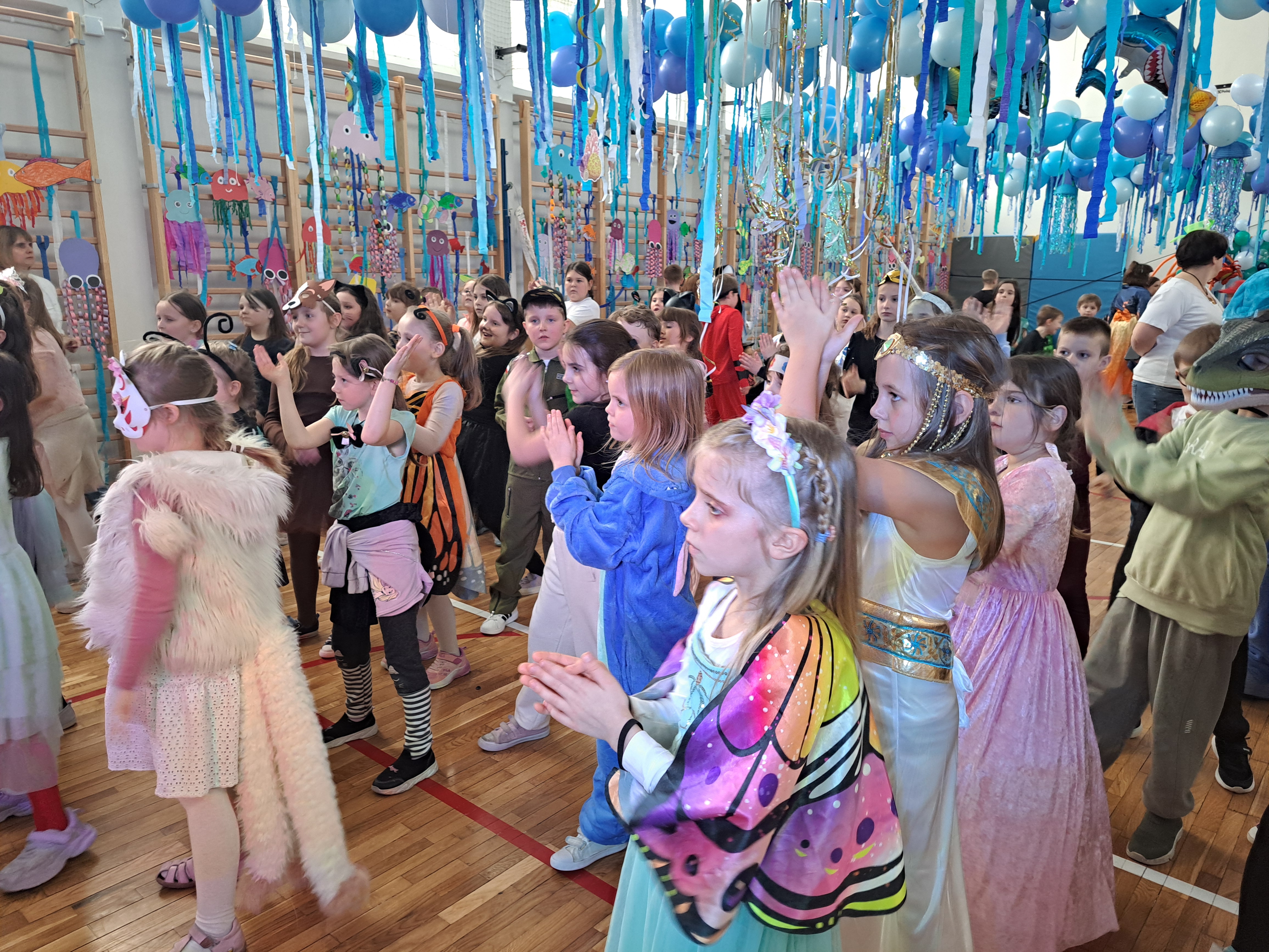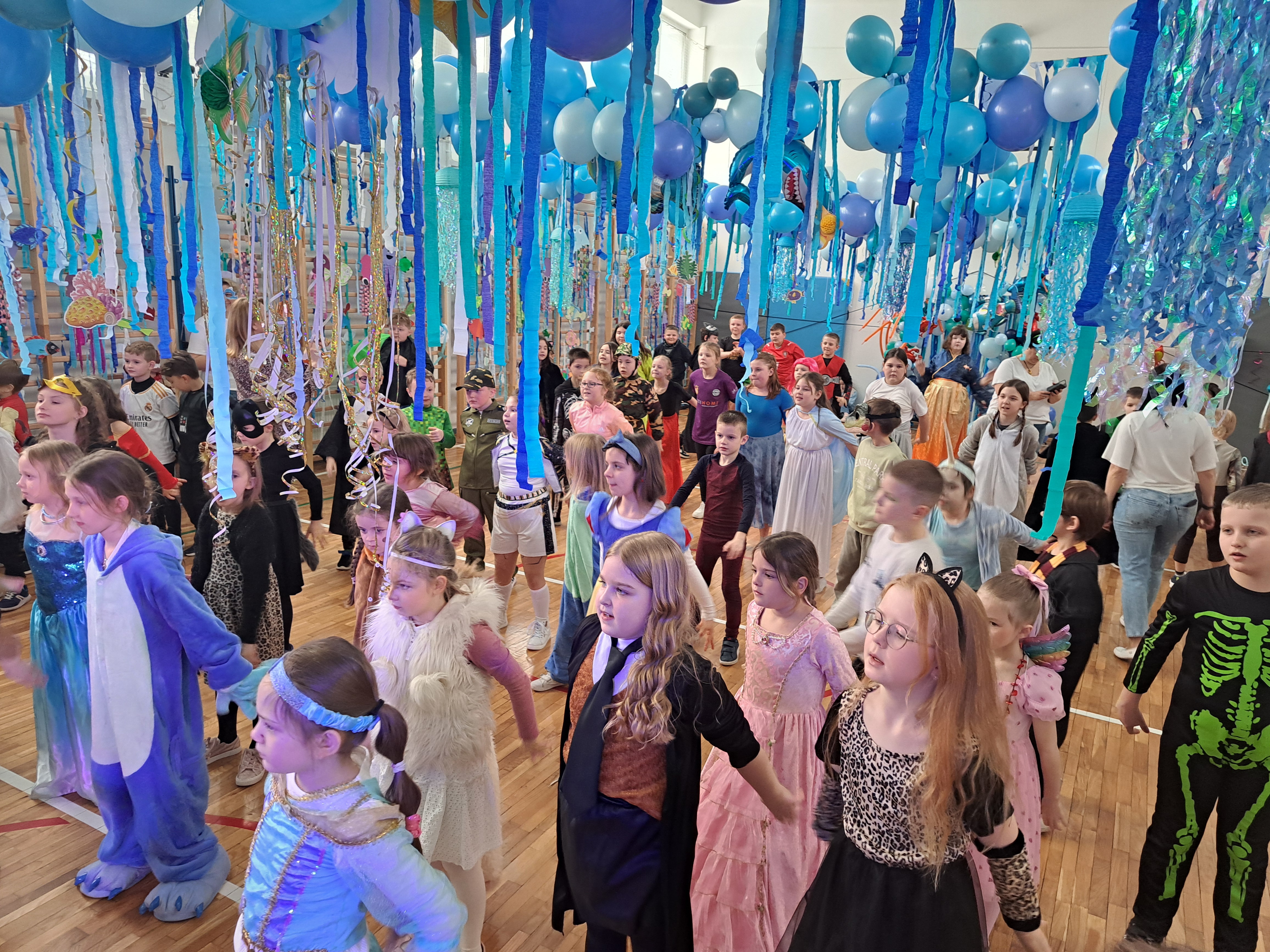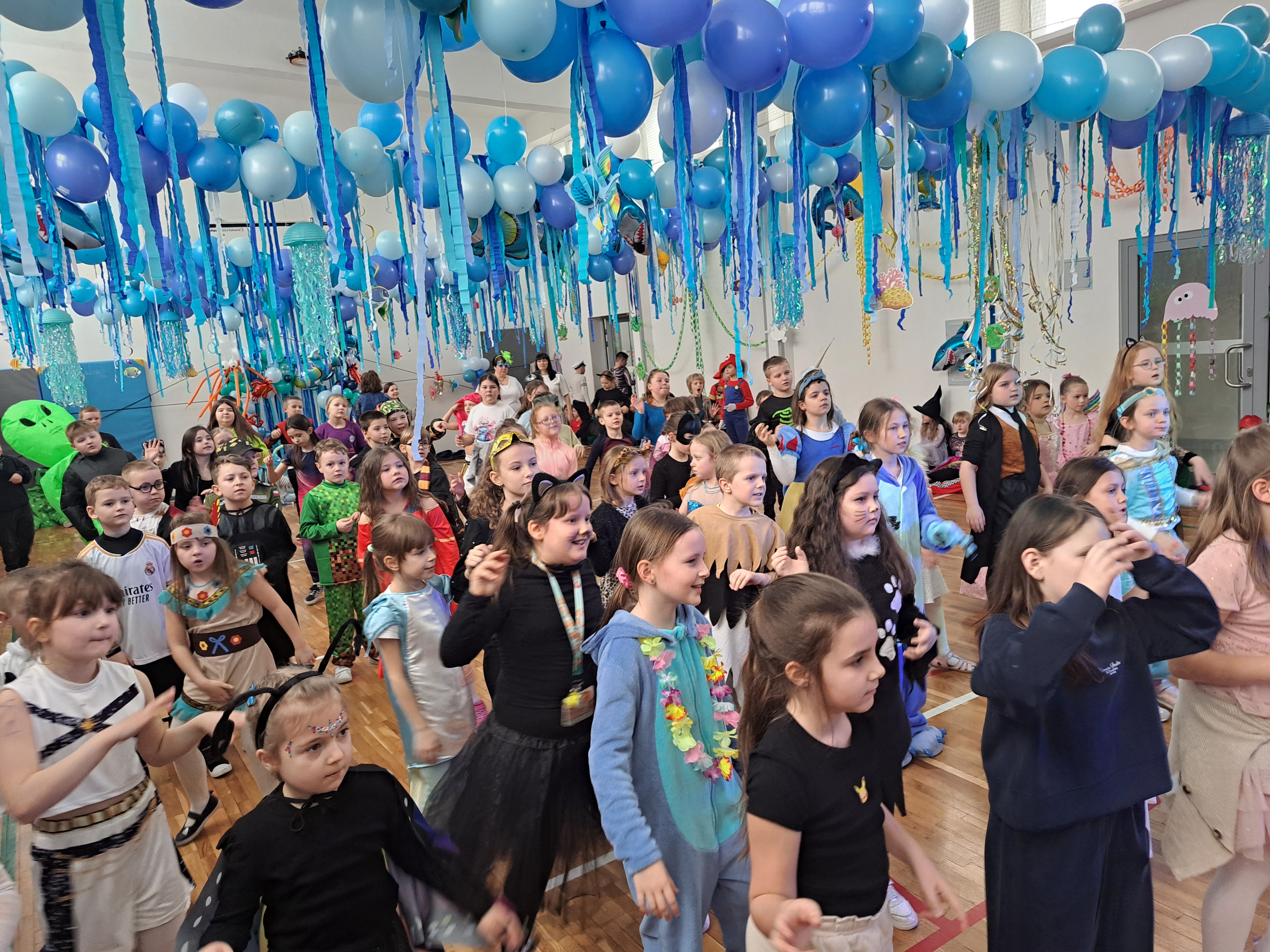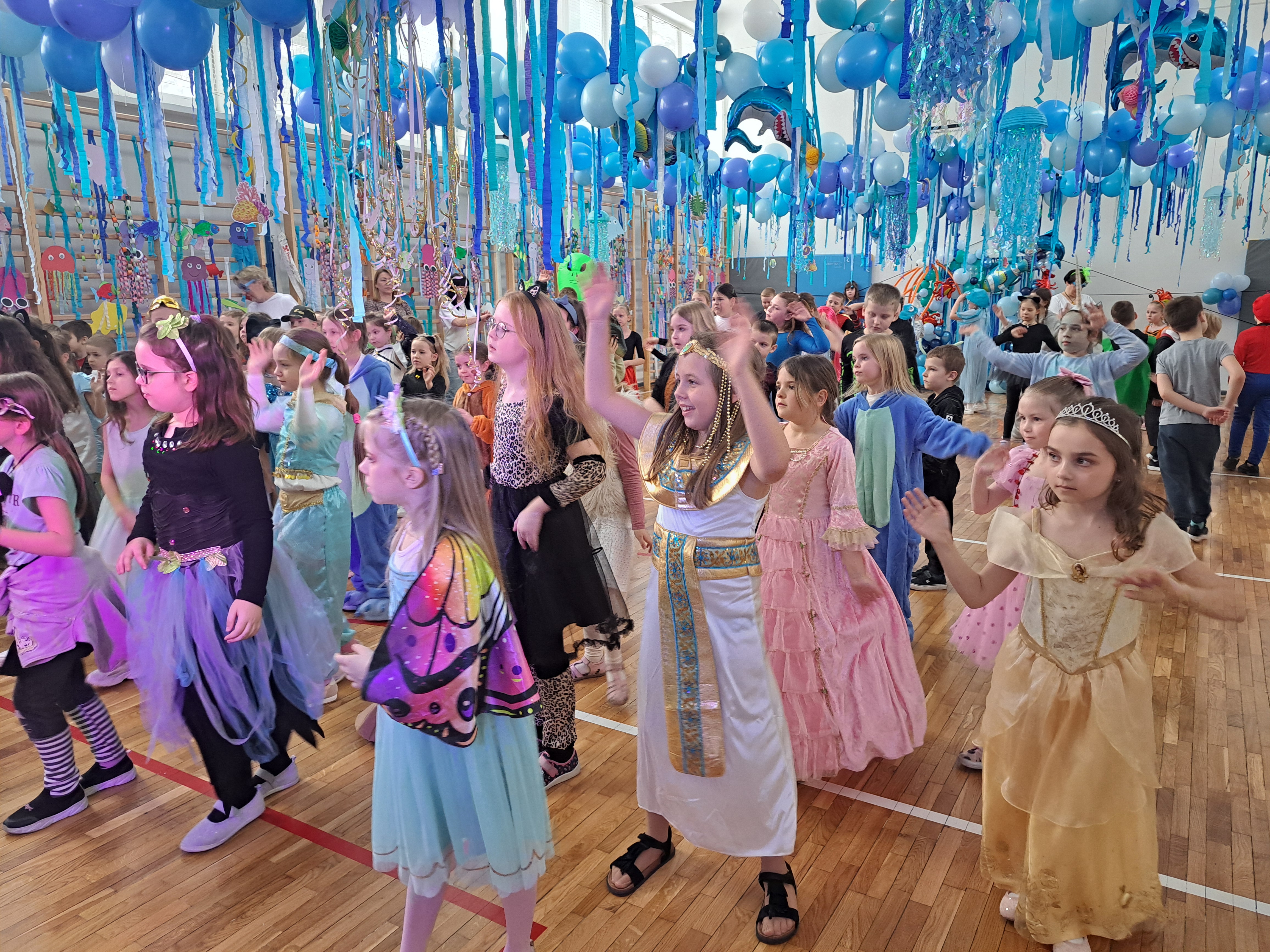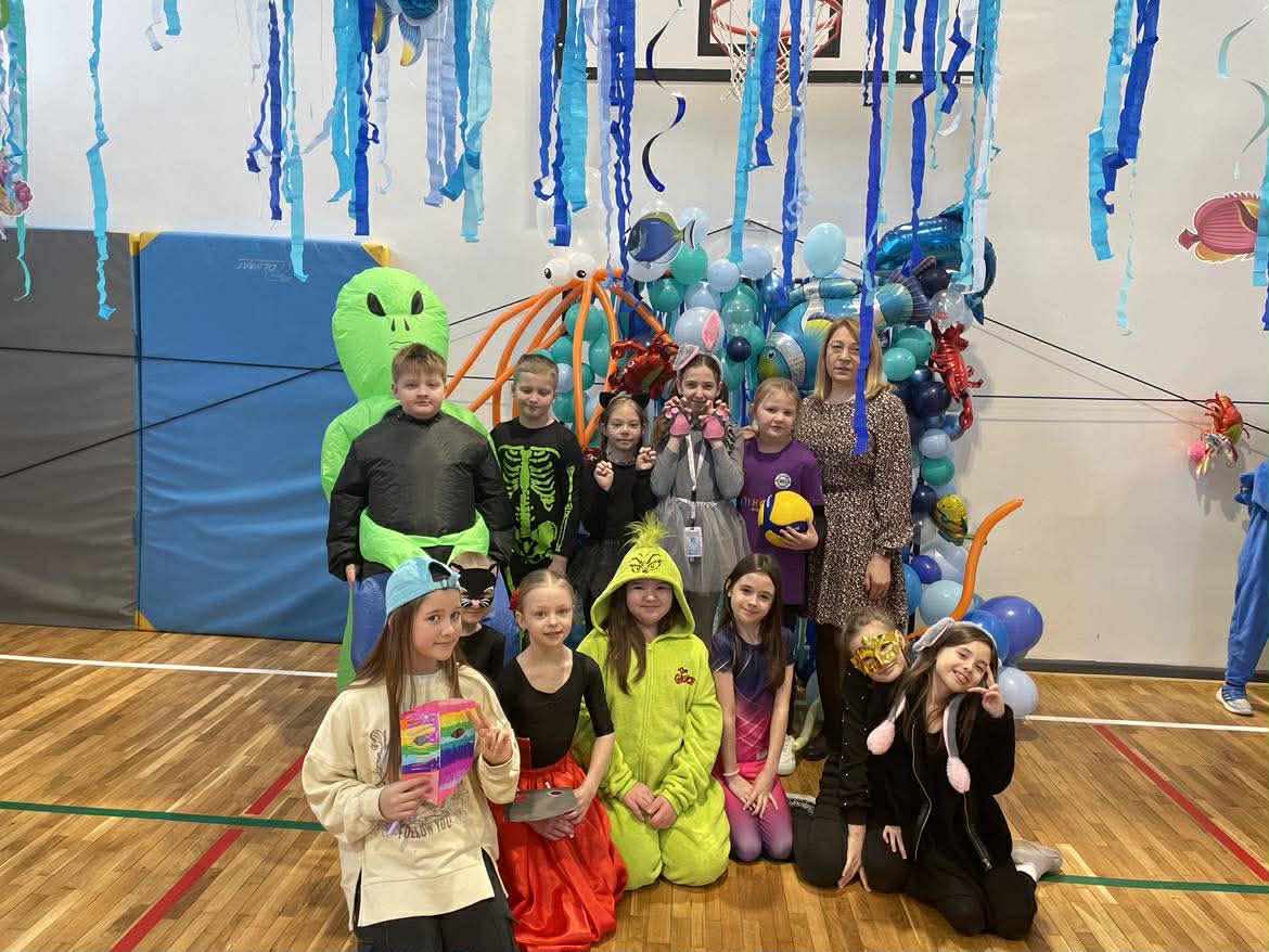 12 lutego szkolna sala przeobraziła się w niezwykły, podwodny świat pełen barwnych rybek, meduz, syrenek?✨ Uczniowie klas 1–3 bawili się przy skocznej muzyce, uczestniczyli w zabawach i konkursach tanecznych, a ich pomysłowe stroje wzbudzały zachwyt wszystkich obecnych. Magiczna, oceaniczna sceneria sprawiła, że choć na chwilę przenieśliśmy się na dno morza, gdzie królowały uśmiech, radość i wspaniała energia!