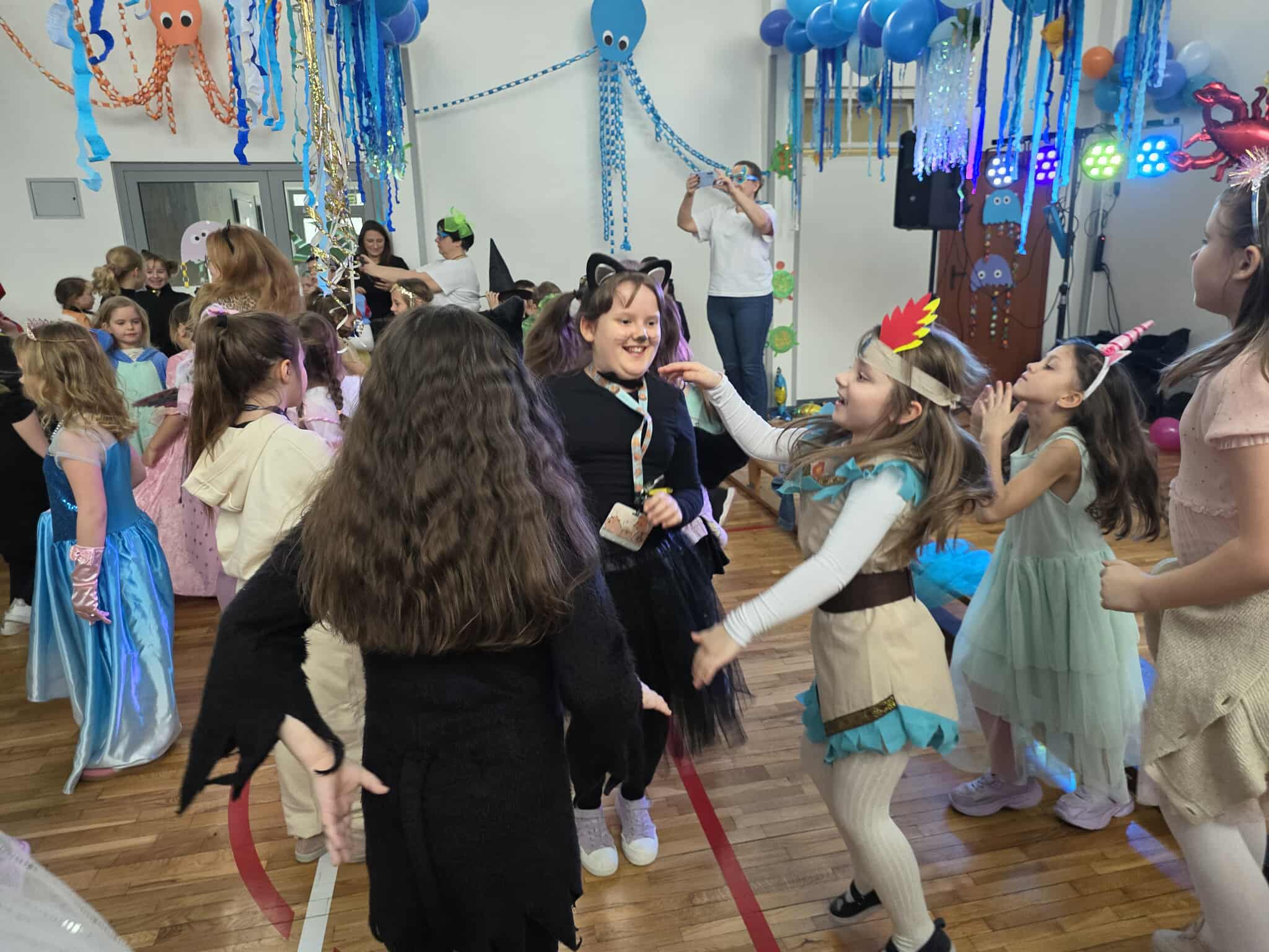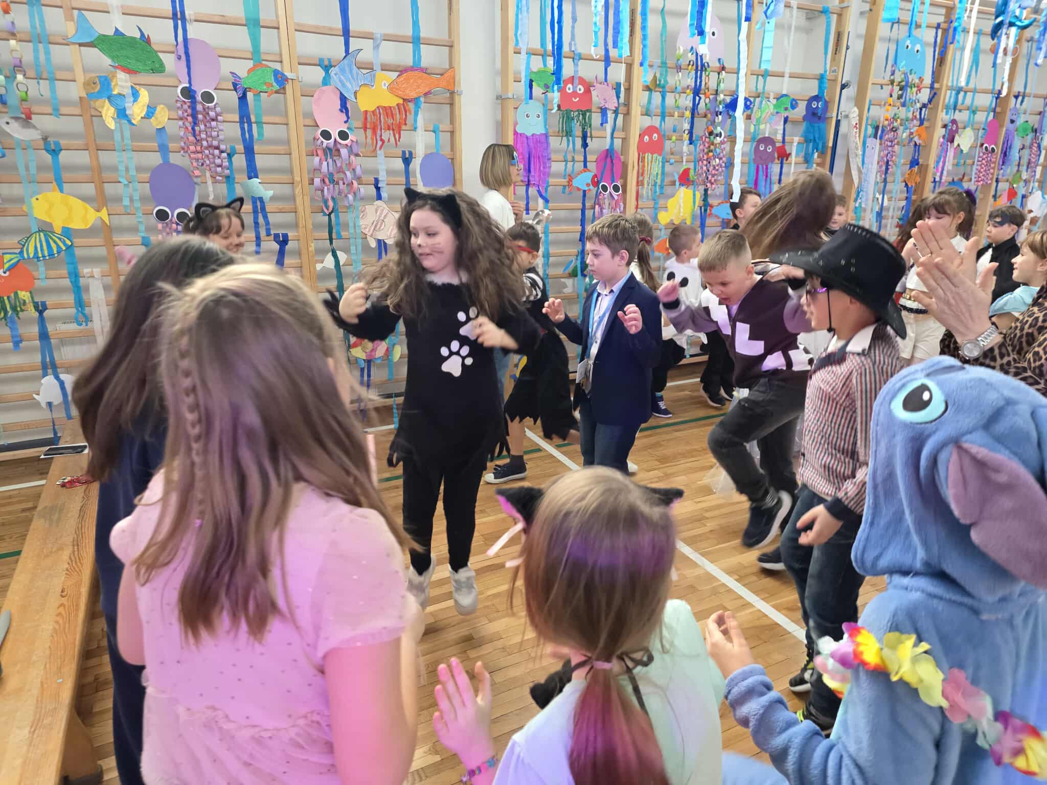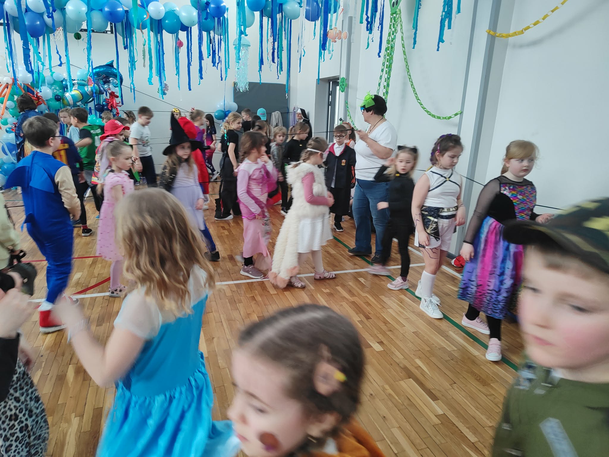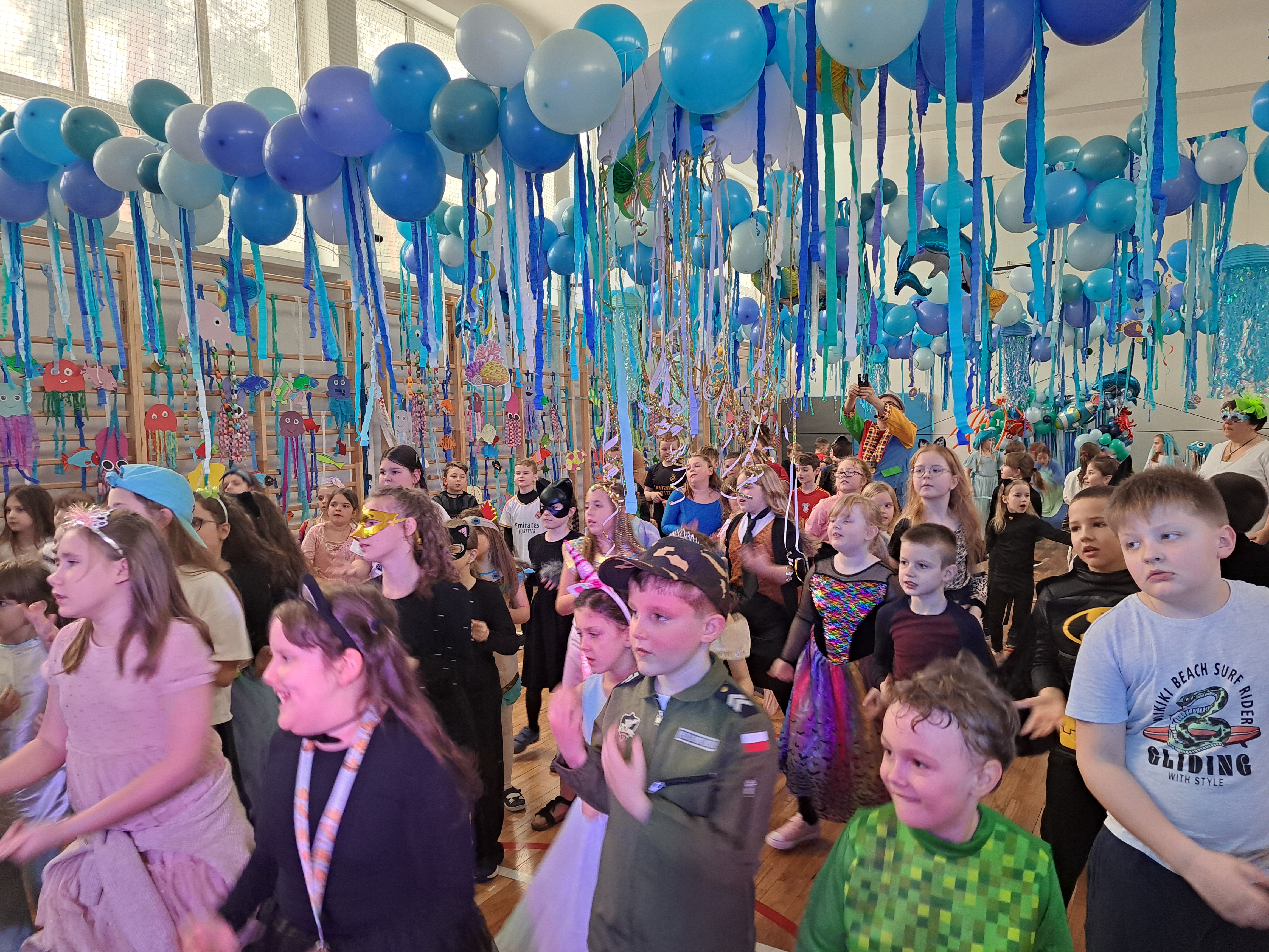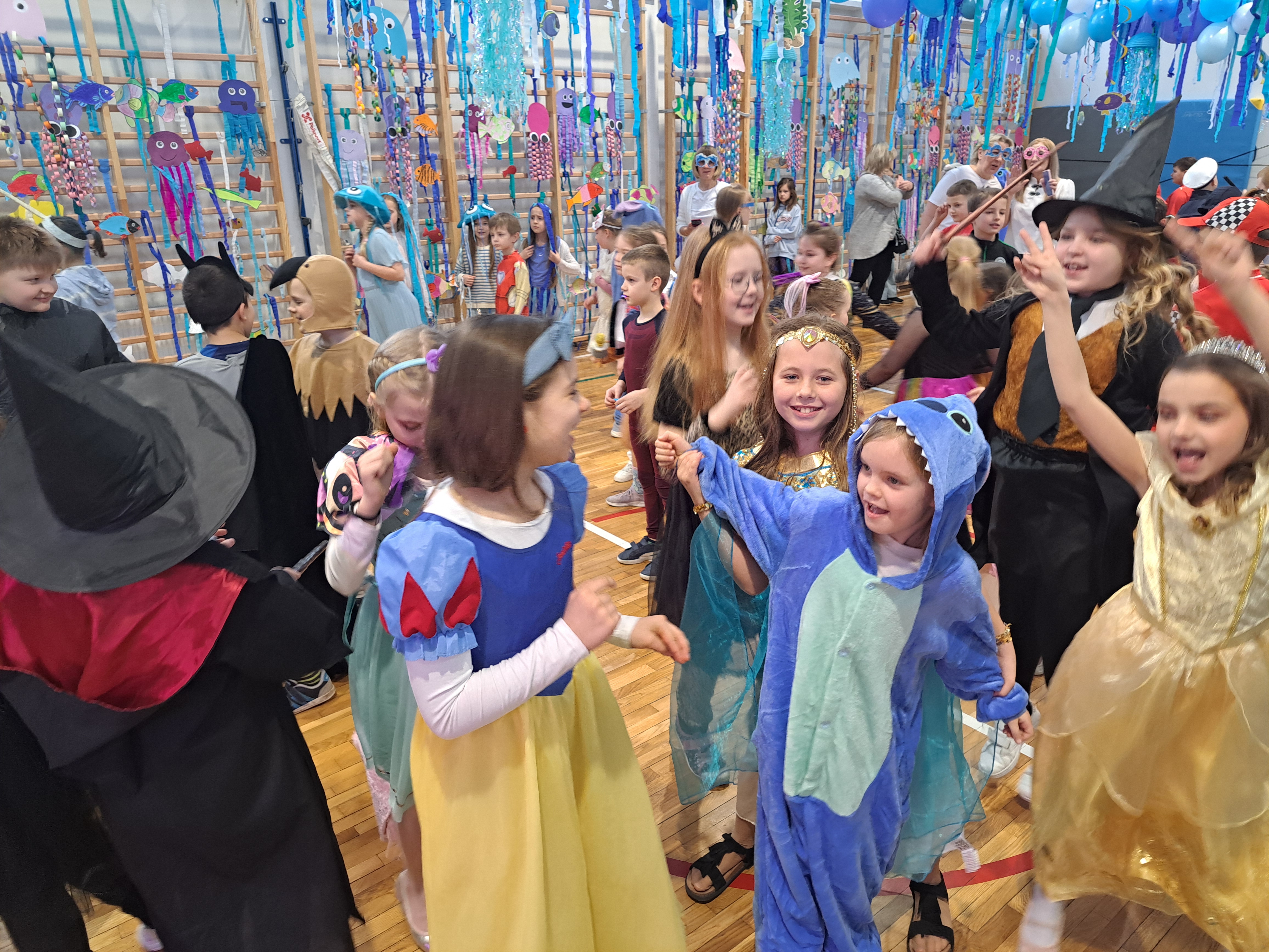 12 lutego szkolna sala przeobraziła się w niezwykły, podwodny świat pełen barwnych rybek, meduz, syrenek?✨ Uczniowie klas 1–3 bawili się przy skocznej muzyce, uczestniczyli w zabawach i konkursach tanecznych, a ich pomysłowe stroje wzbudzały zachwyt wszystkich obecnych. Magiczna, oceaniczna sceneria sprawiła, że choć na chwilę przenieśliśmy się na dno morza, gdzie królowały uśmiech, radość i wspaniała energia!