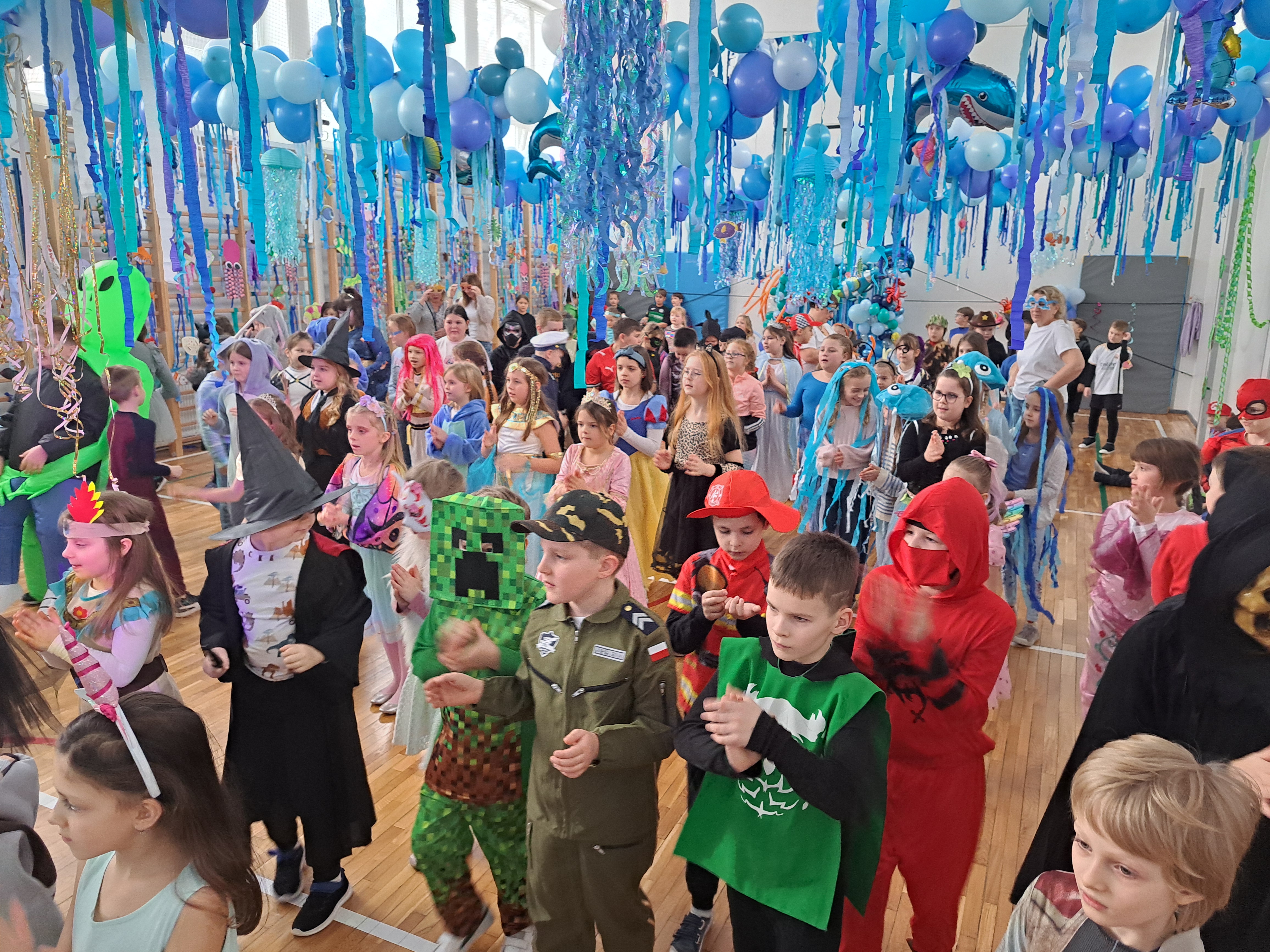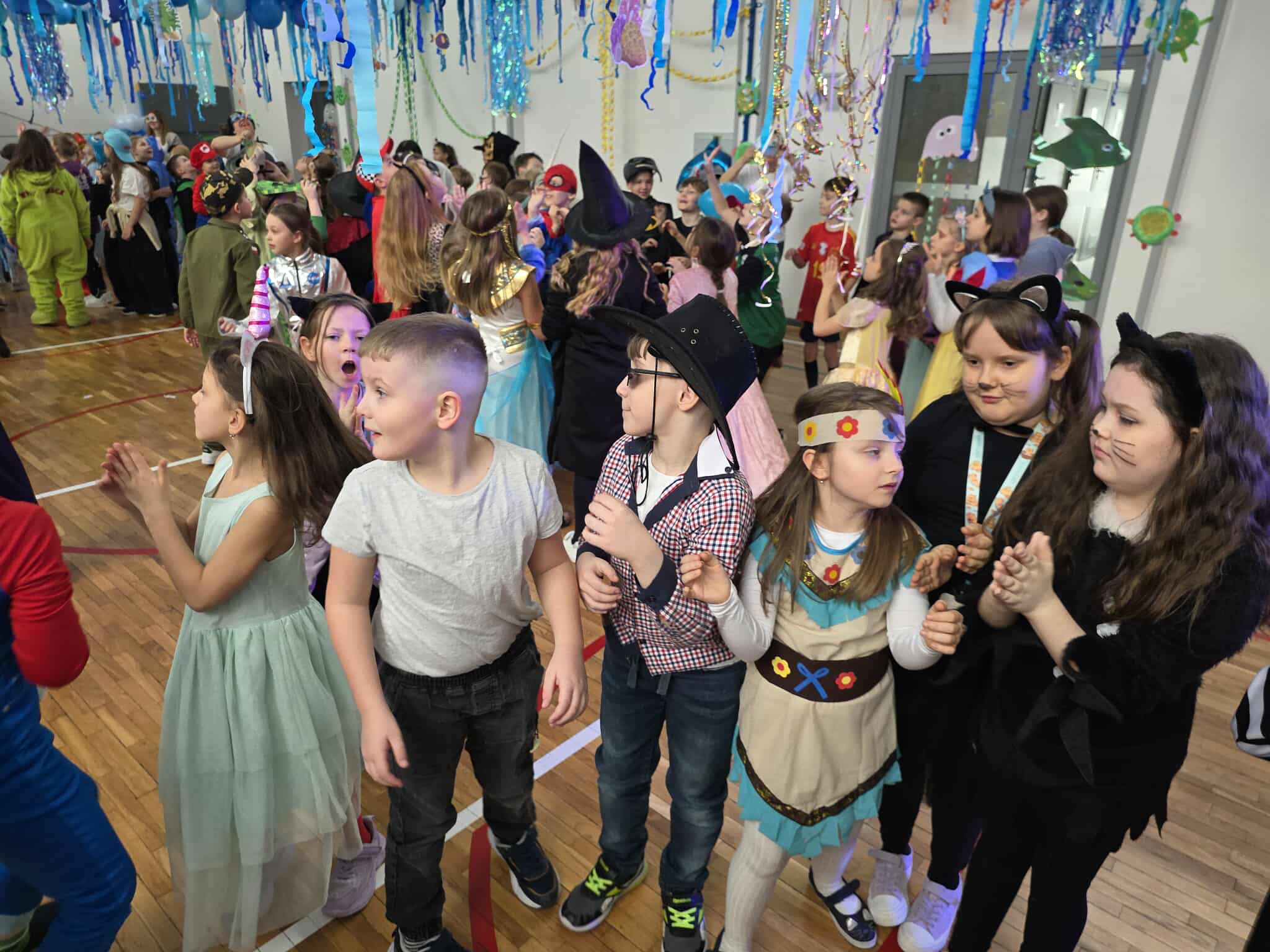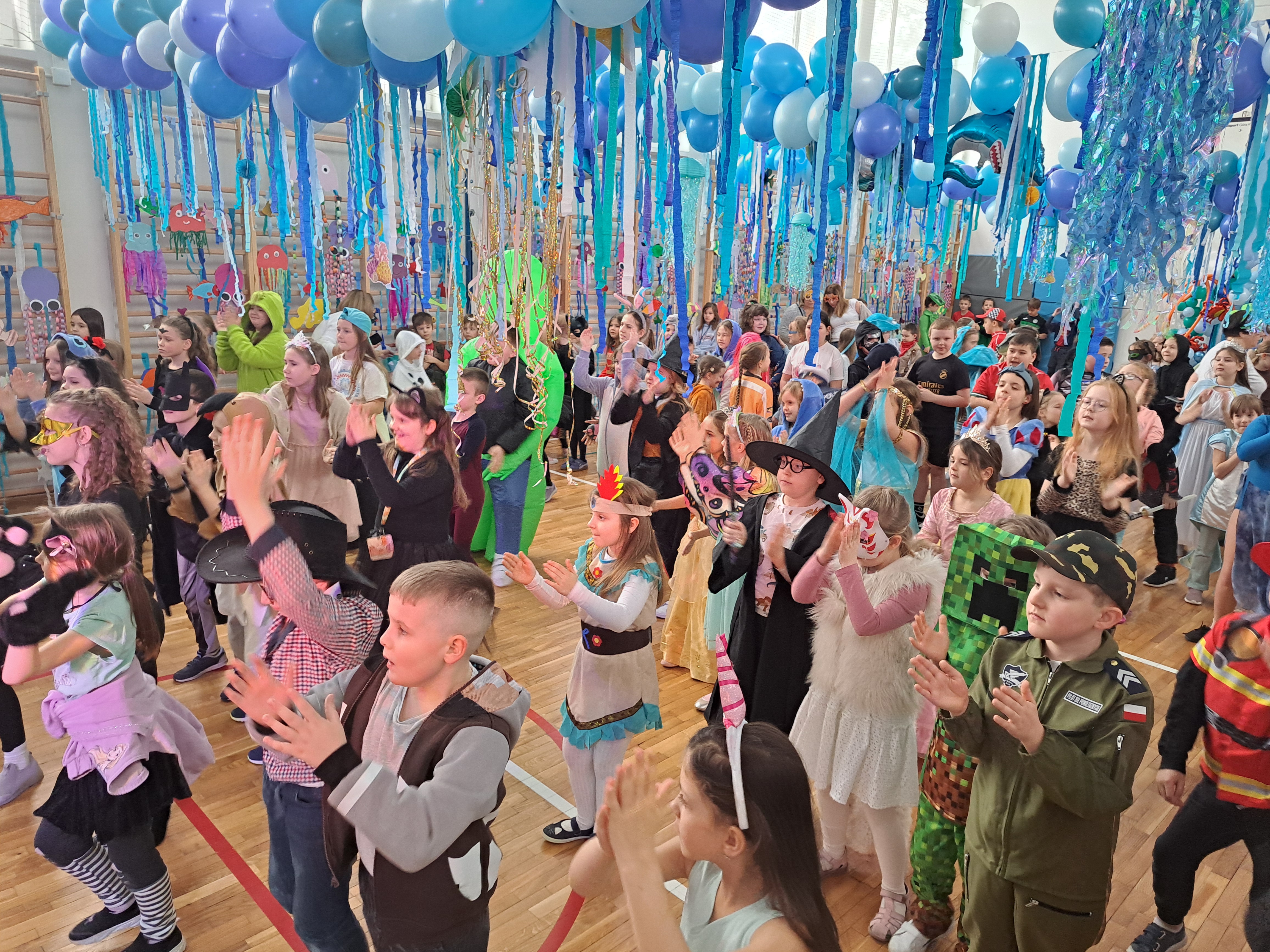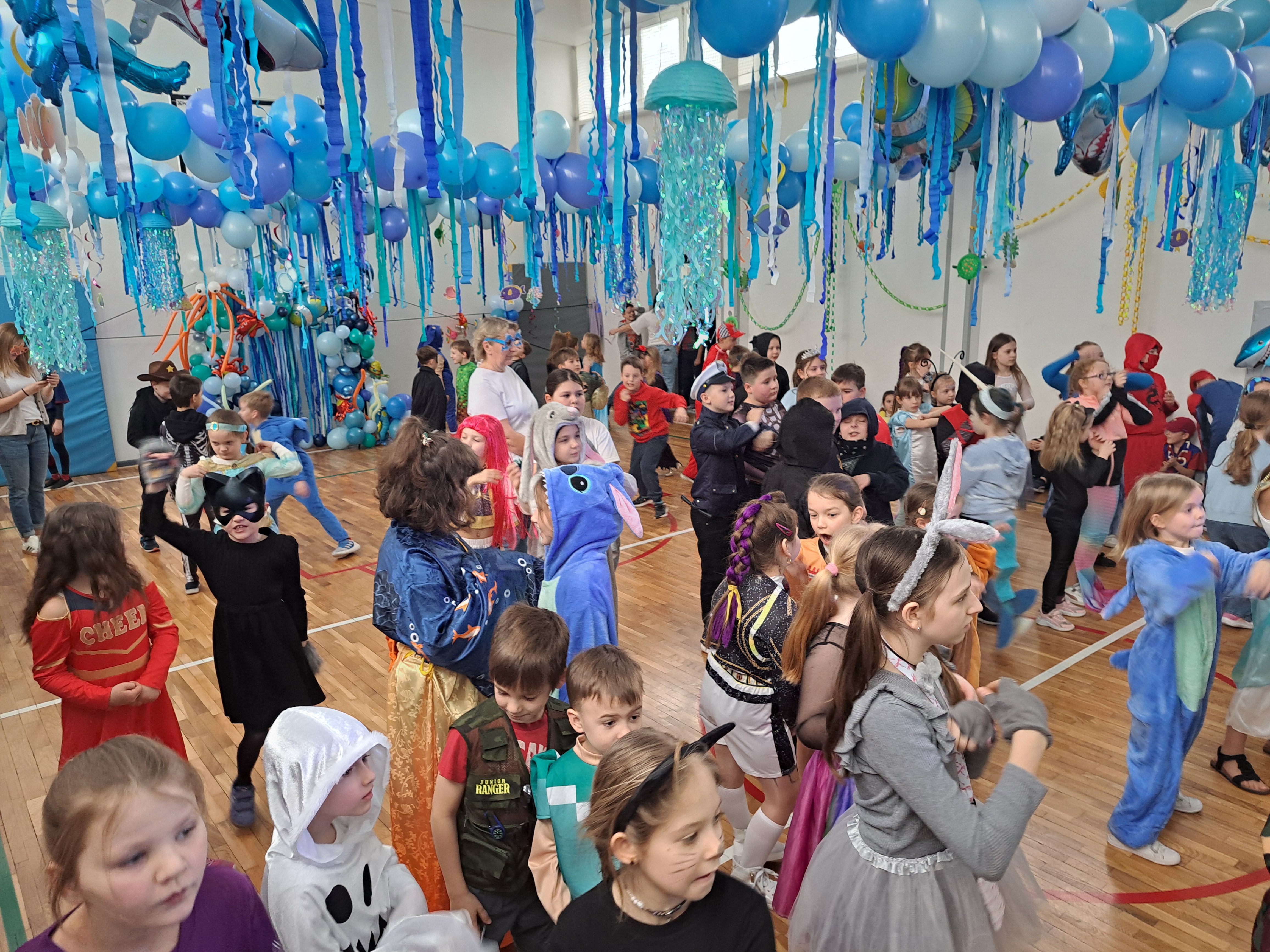 12 lutego szkolna sala przeobraziła się w niezwykły, podwodny świat pełen barwnych rybek, meduz, syrenek?✨ Uczniowie klas 1–3 bawili się przy skocznej muzyce, uczestniczyli w zabawach i konkursach tanecznych, a ich pomysłowe stroje wzbudzały zachwyt wszystkich obecnych. Magiczna, oceaniczna sceneria sprawiła, że choć na chwilę przenieśliśmy się na dno morza, gdzie królowały uśmiech, radość i wspaniała energia!