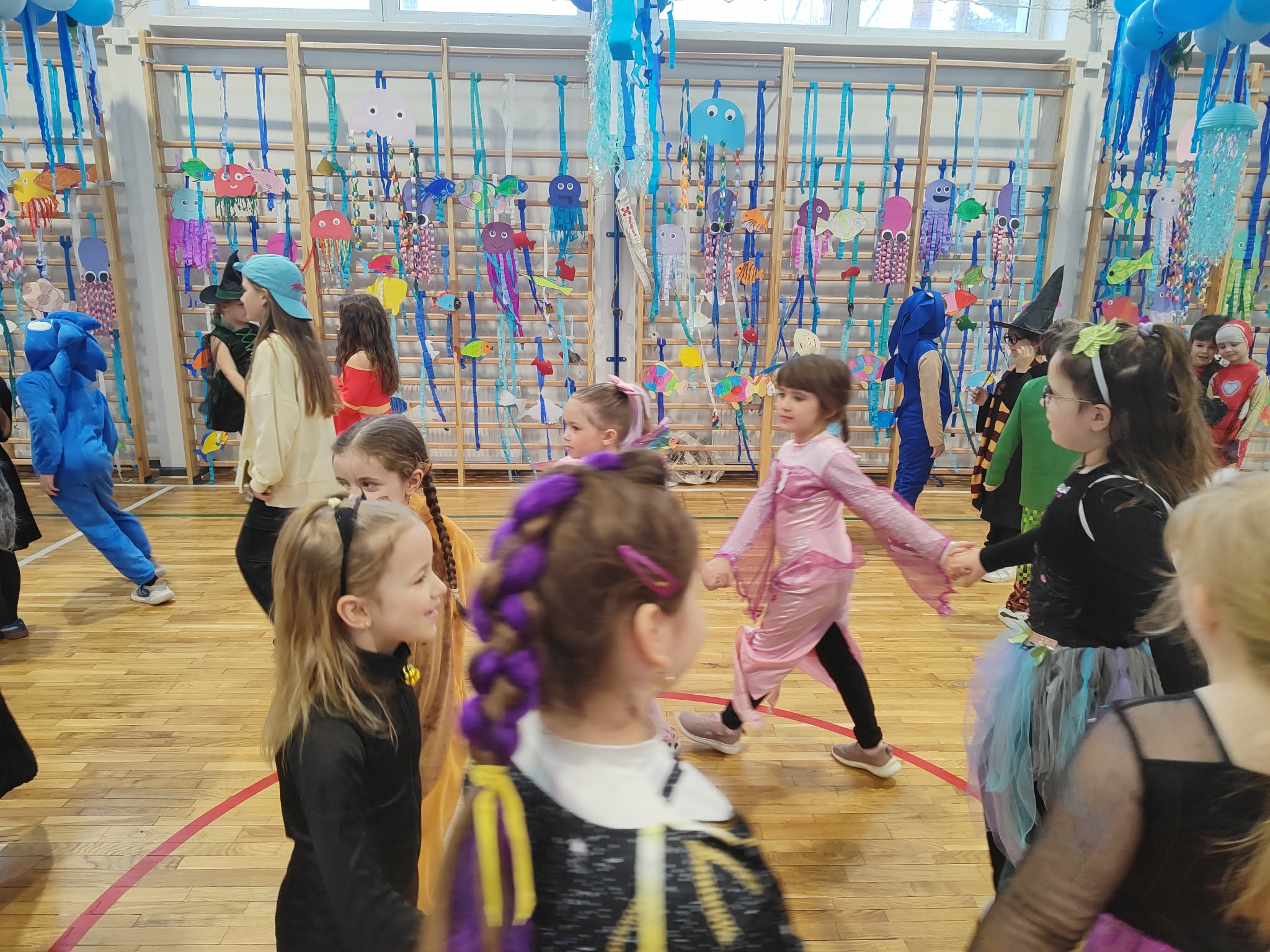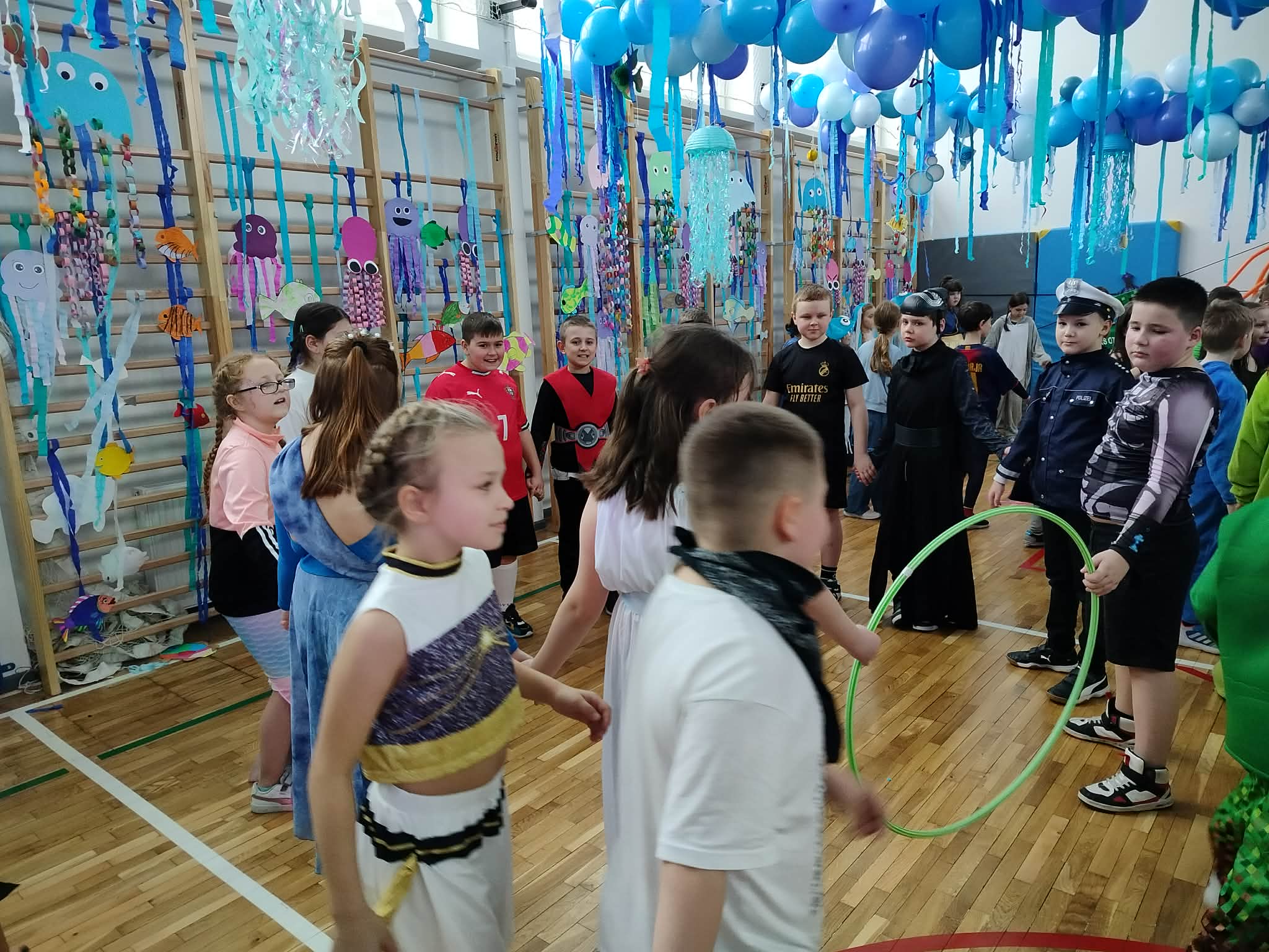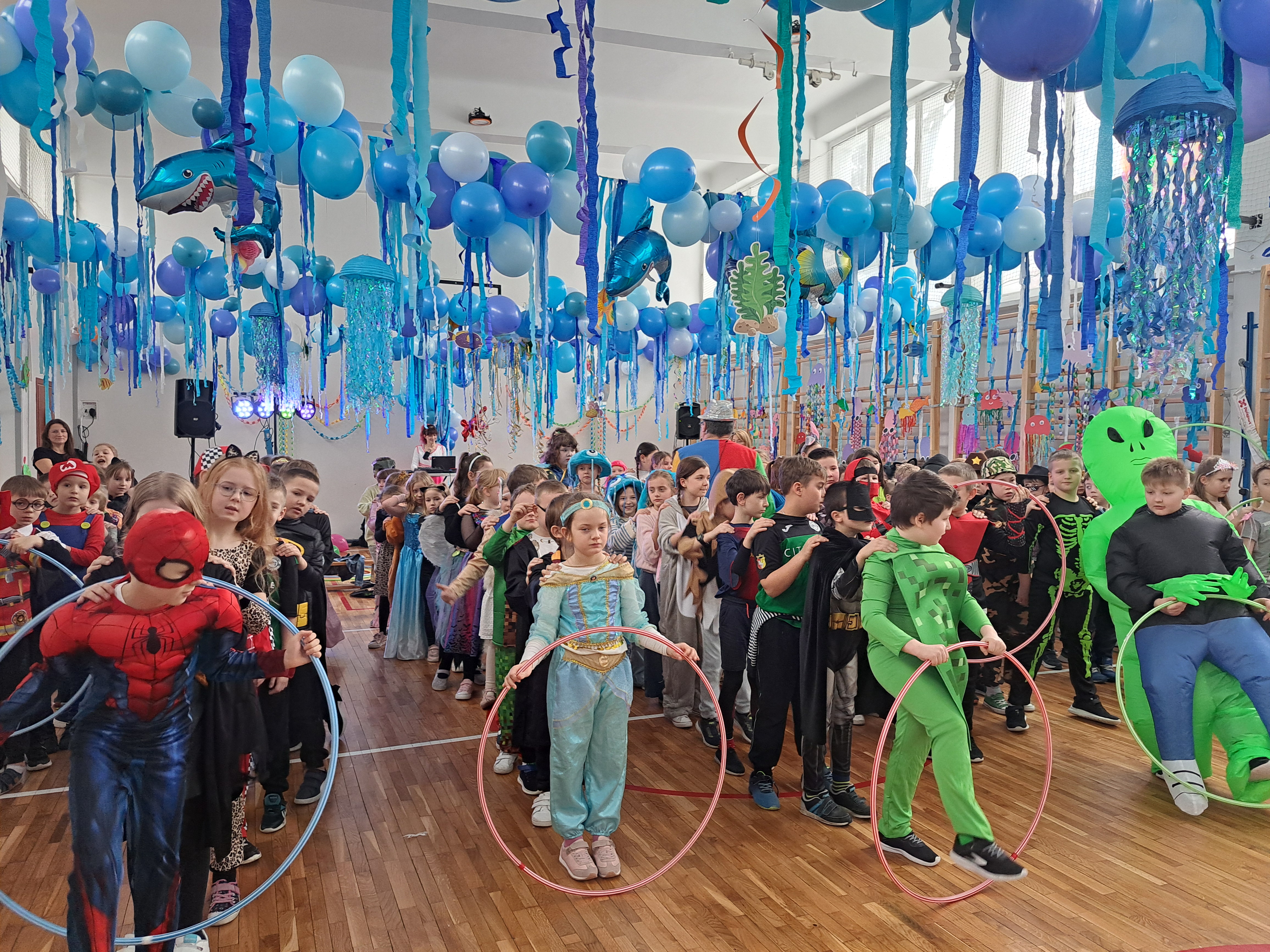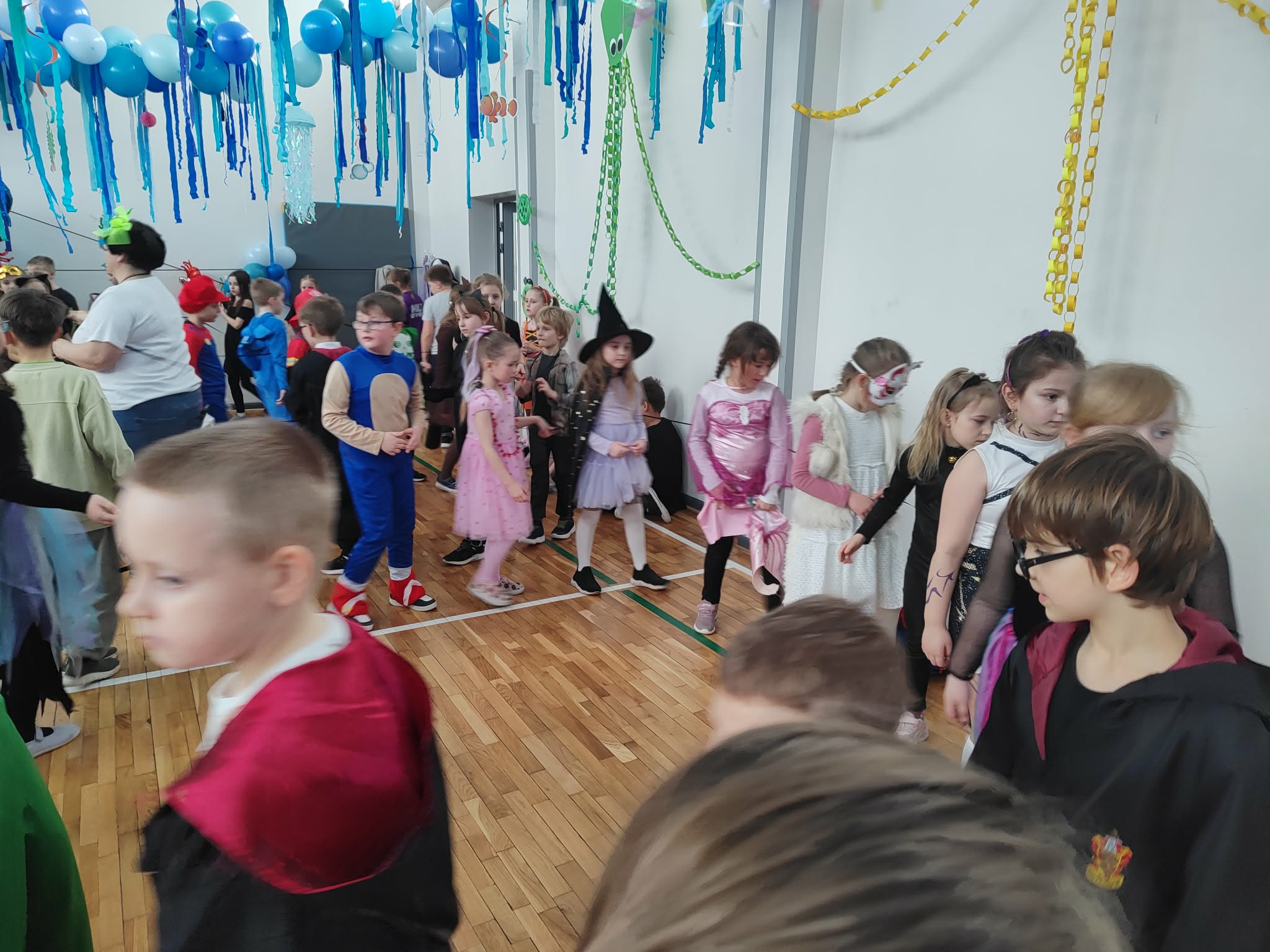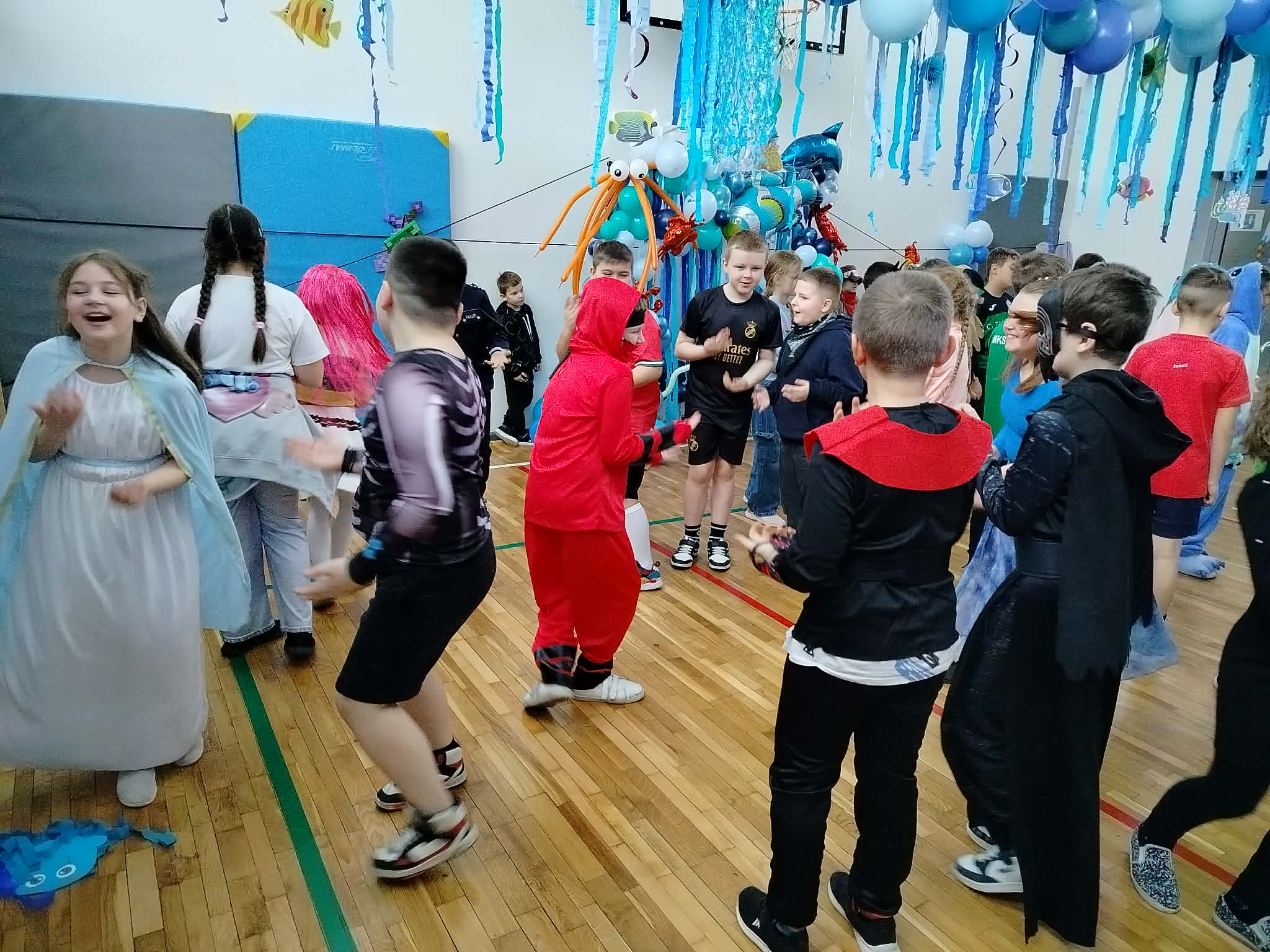 12 lutego szkolna sala przeobraziła się w niezwykły, podwodny świat pełen barwnych rybek, meduz, syrenek?✨ Uczniowie klas 1–3 bawili się przy skocznej muzyce, uczestniczyli w zabawach i konkursach tanecznych, a ich pomysłowe stroje wzbudzały zachwyt wszystkich obecnych. Magiczna, oceaniczna sceneria sprawiła, że choć na chwilę przenieśliśmy się na dno morza, gdzie królowały uśmiech, radość i wspaniała energia!