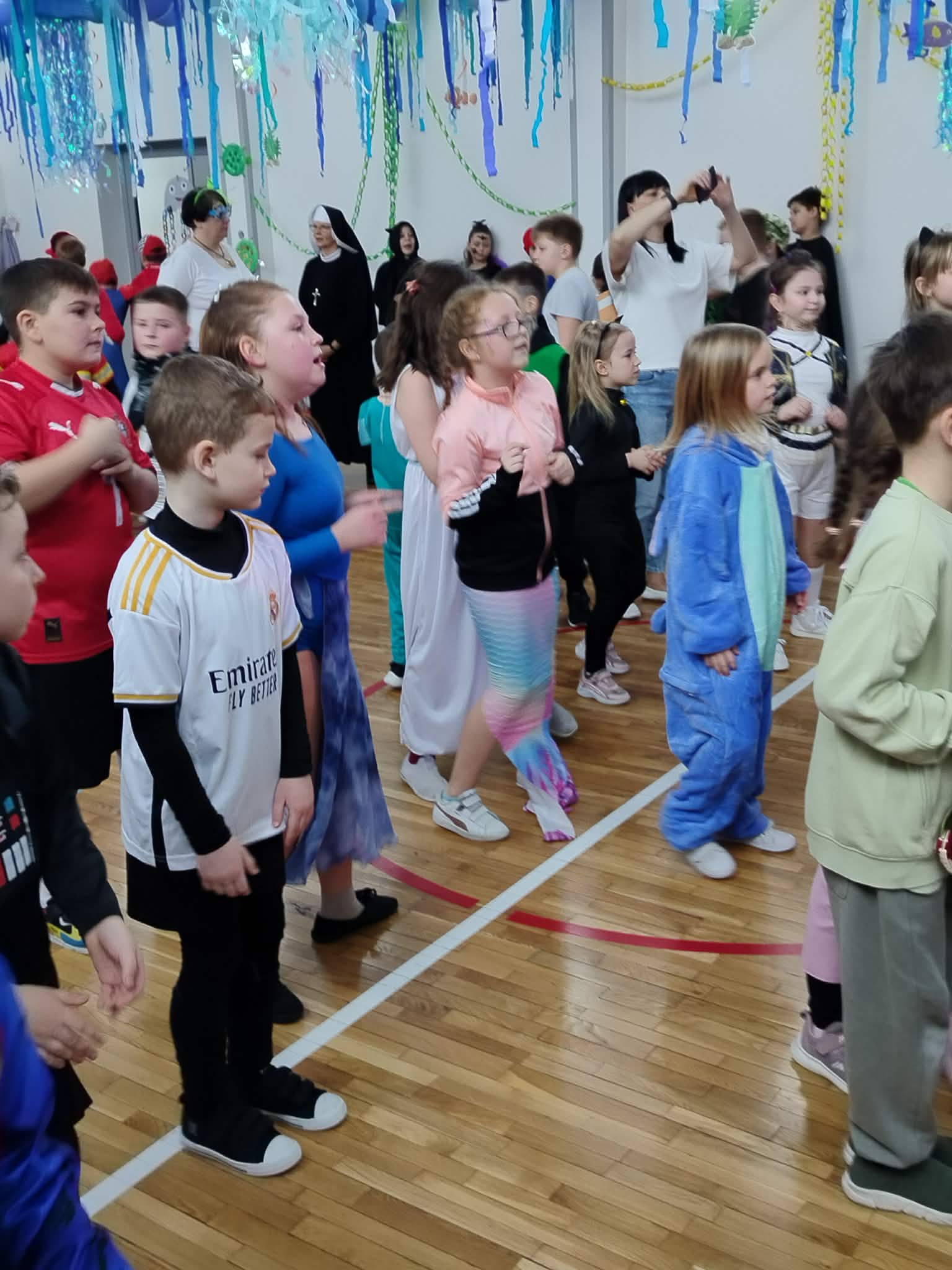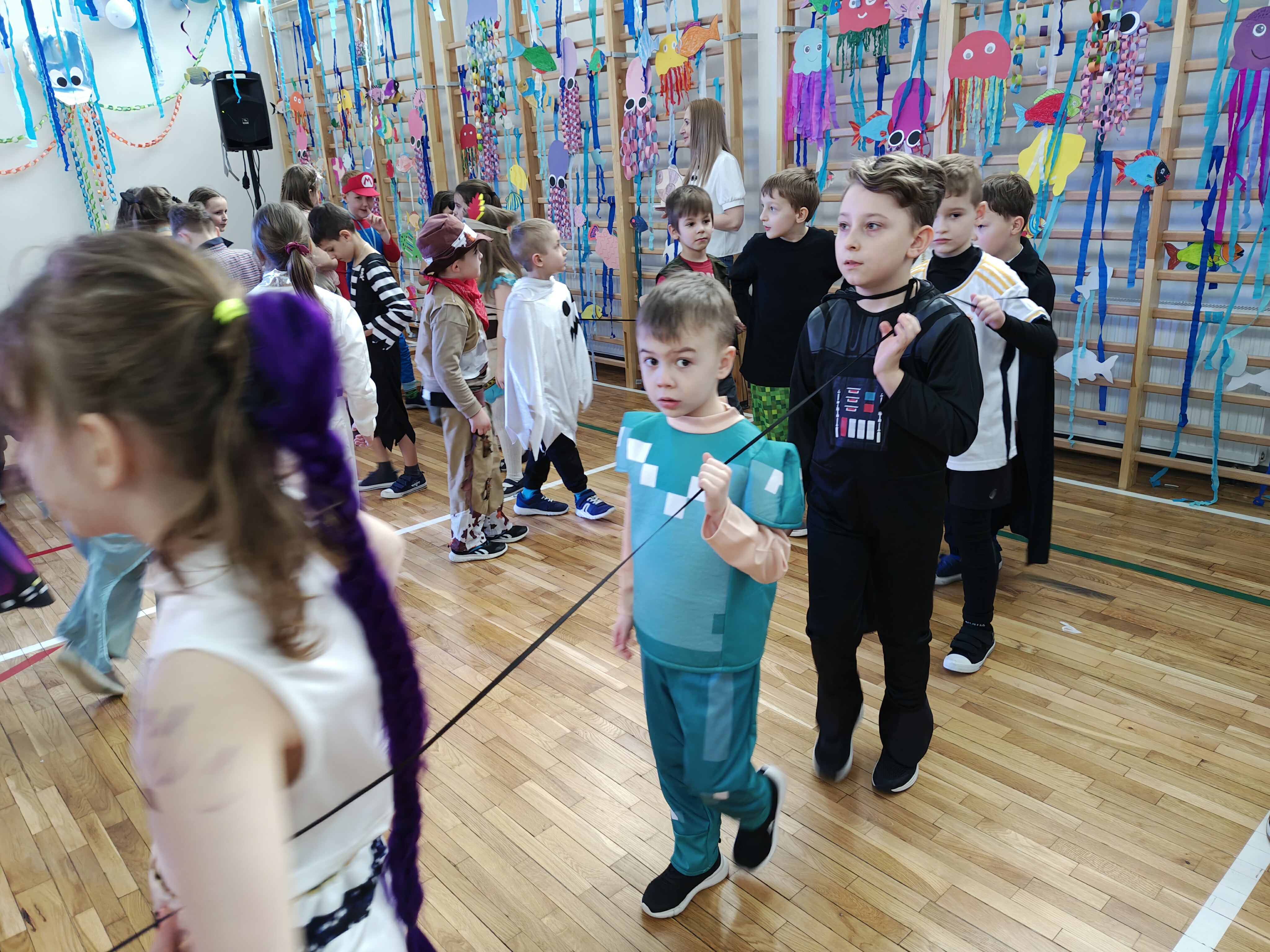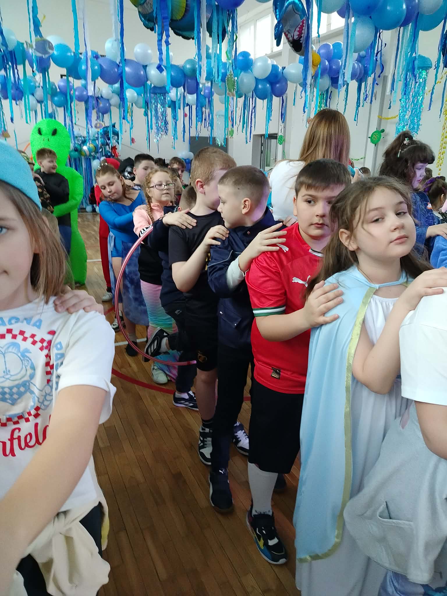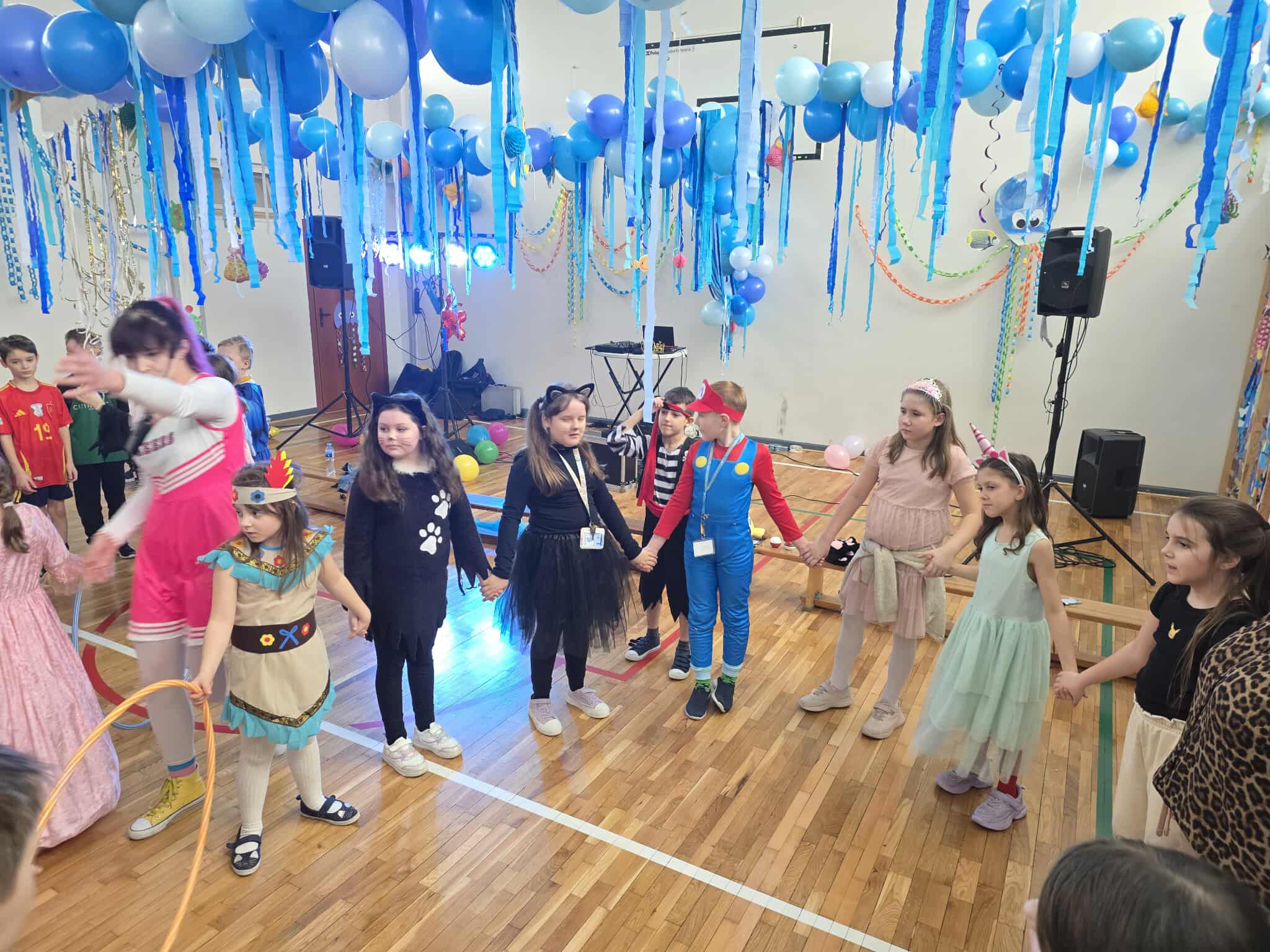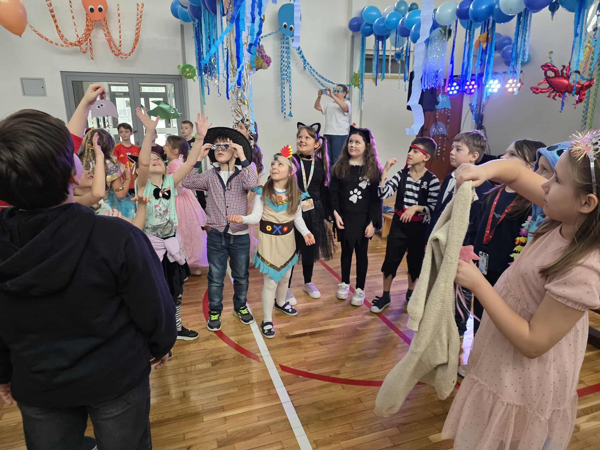 12 lutego szkolna sala przeobraziła się w niezwykły, podwodny świat pełen barwnych rybek, meduz, syrenek?✨ Uczniowie klas 1–3 bawili się przy skocznej muzyce, uczestniczyli w zabawach i konkursach tanecznych, a ich pomysłowe stroje wzbudzały zachwyt wszystkich obecnych. Magiczna, oceaniczna sceneria sprawiła, że choć na chwilę przenieśliśmy się na dno morza, gdzie królowały uśmiech, radość i wspaniała energia!