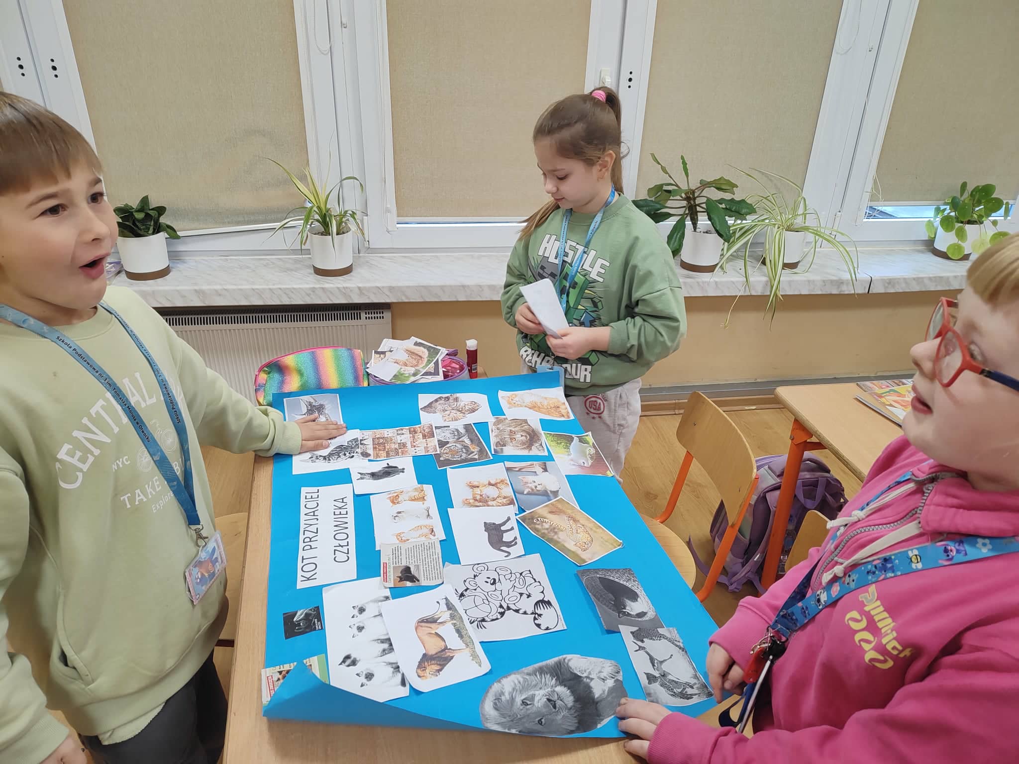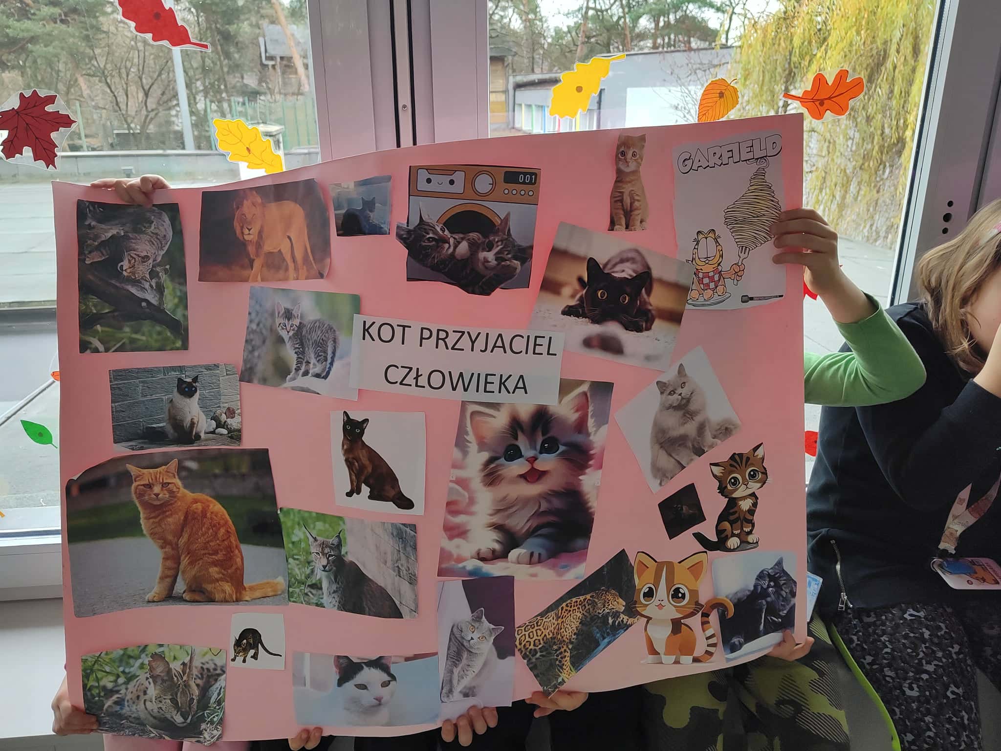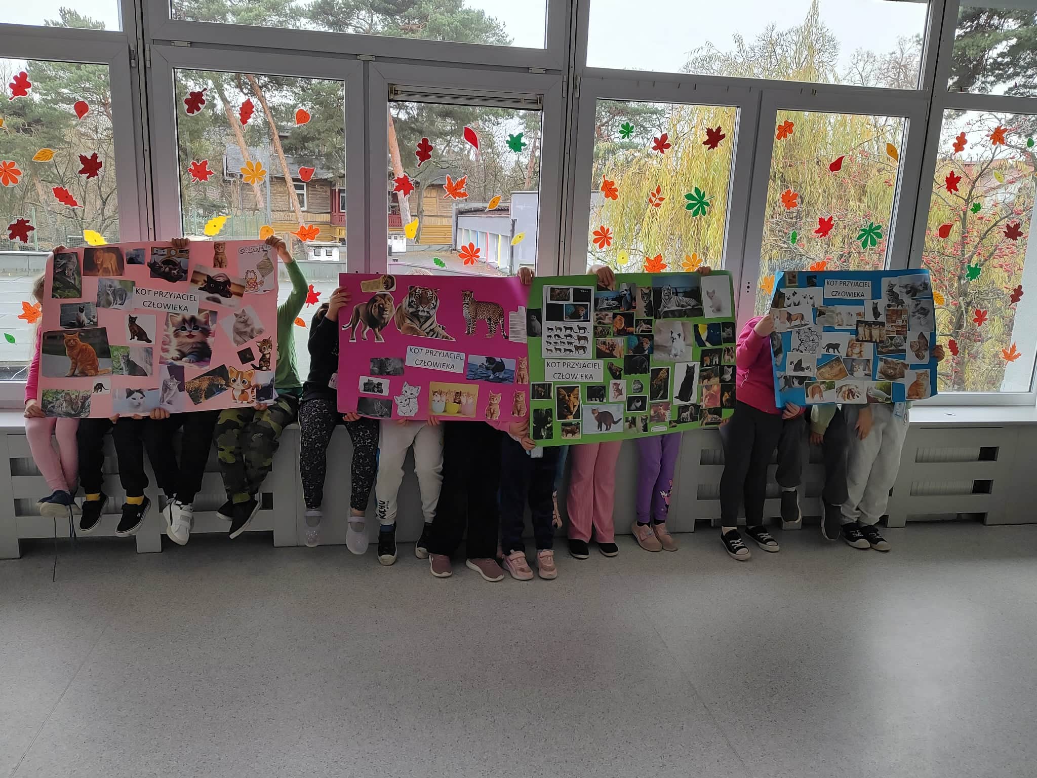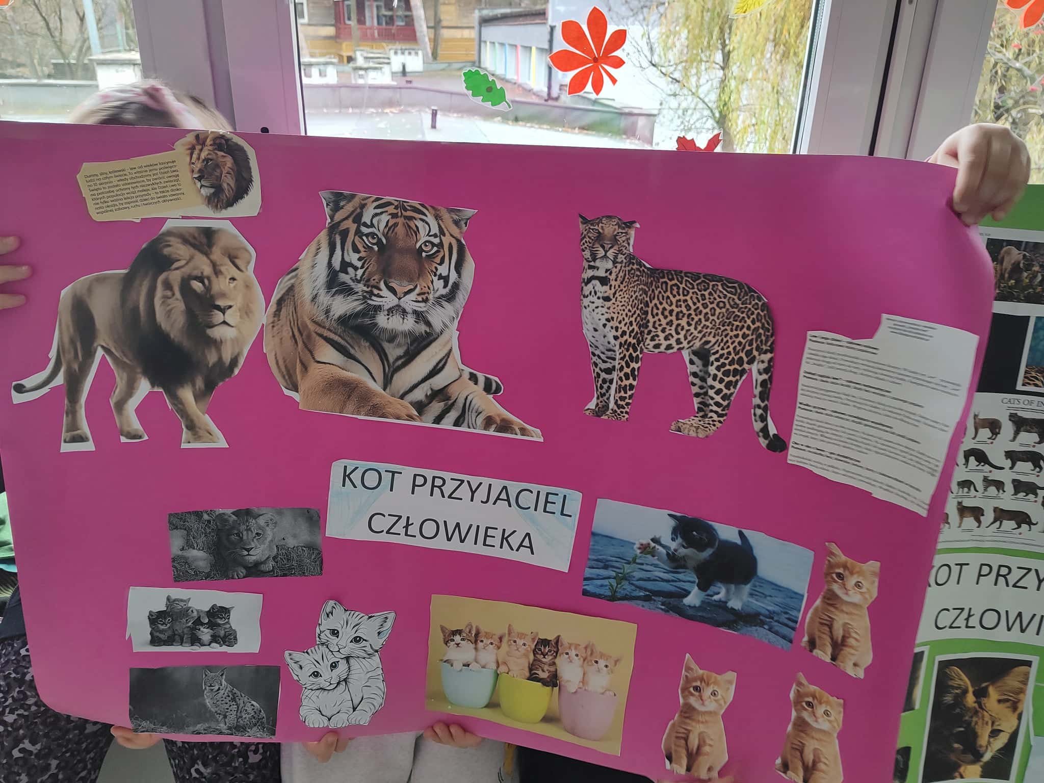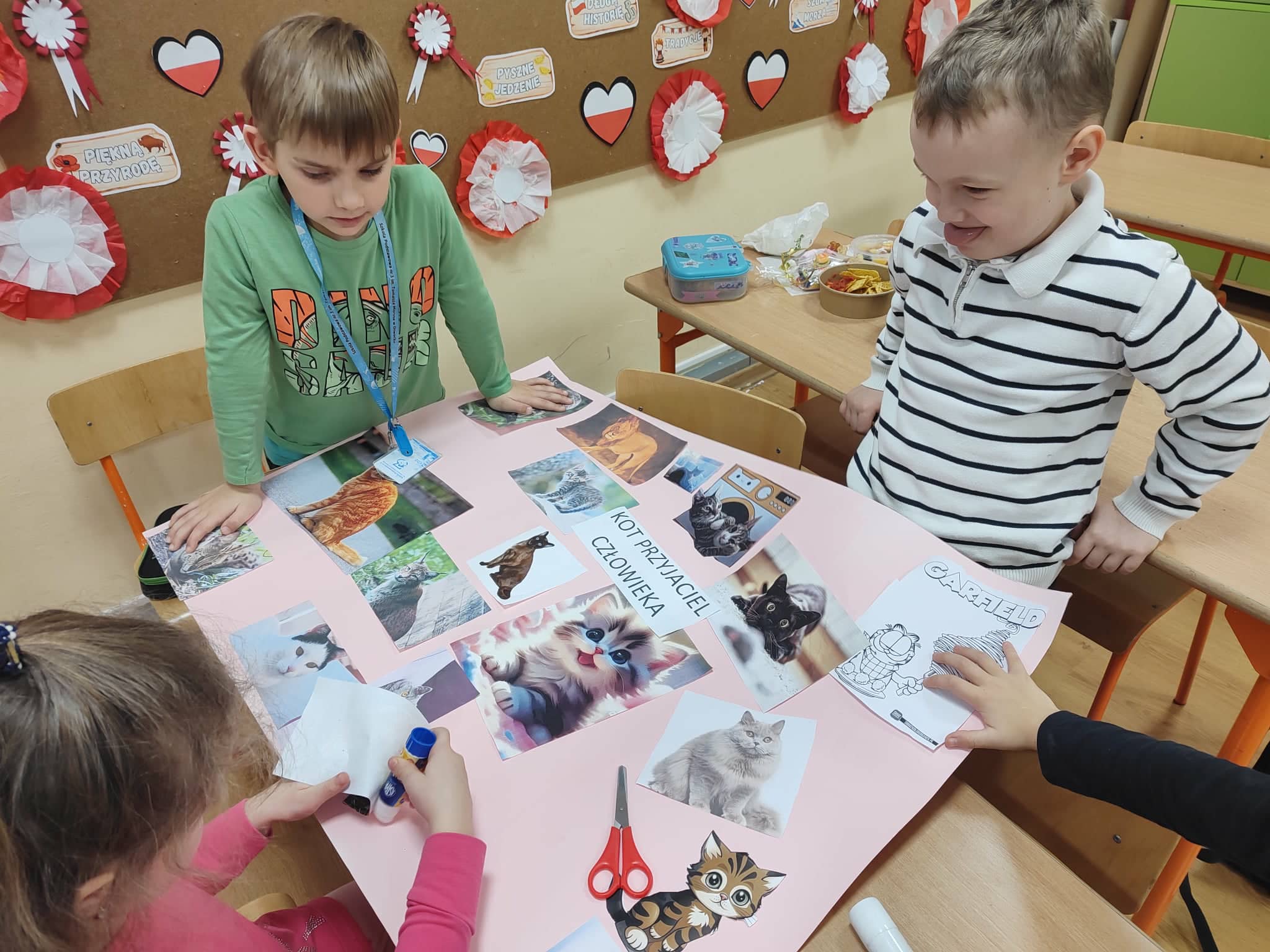 Uczniowie klasy 1b zakończyli omawianie lektury „Cukierku, Ty łobuzie!”. Na podsumowanie pracy nad książką przygotowali plakaty pełne ilustracji, ciekawostek i informacji o kocich zwyczajach. Wspólne tworzenie plakatów pozwoliło im jeszcze raz wrócić do kocich przygód i utrwalić najważniejsze treści z lektury