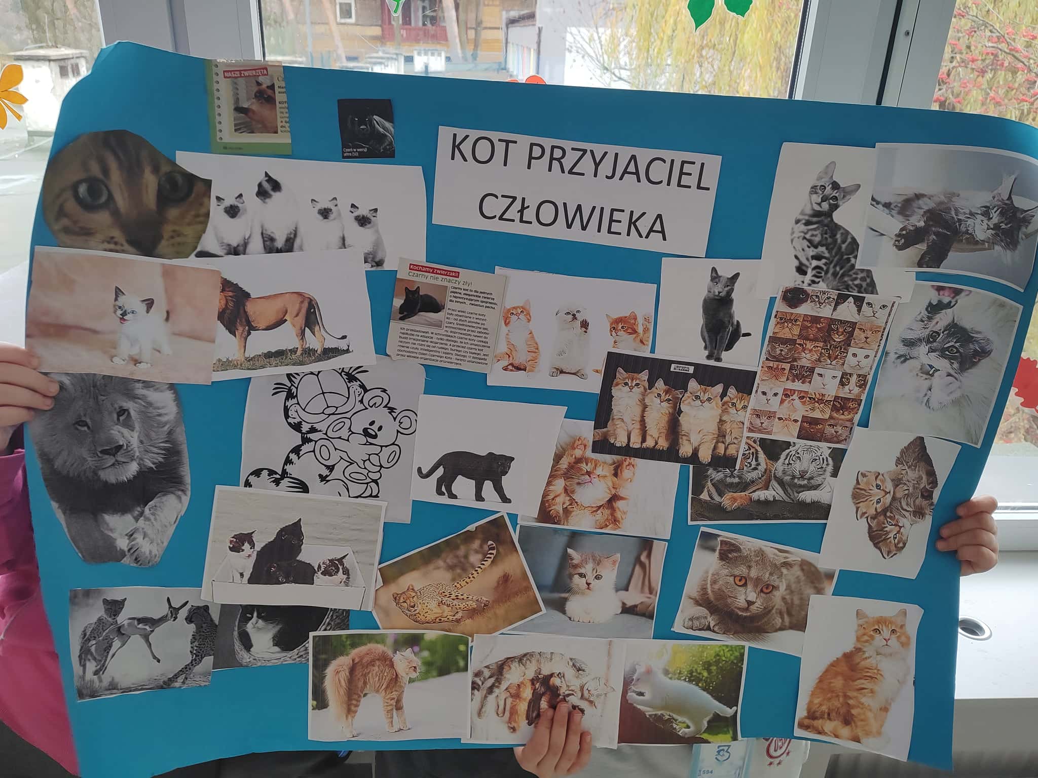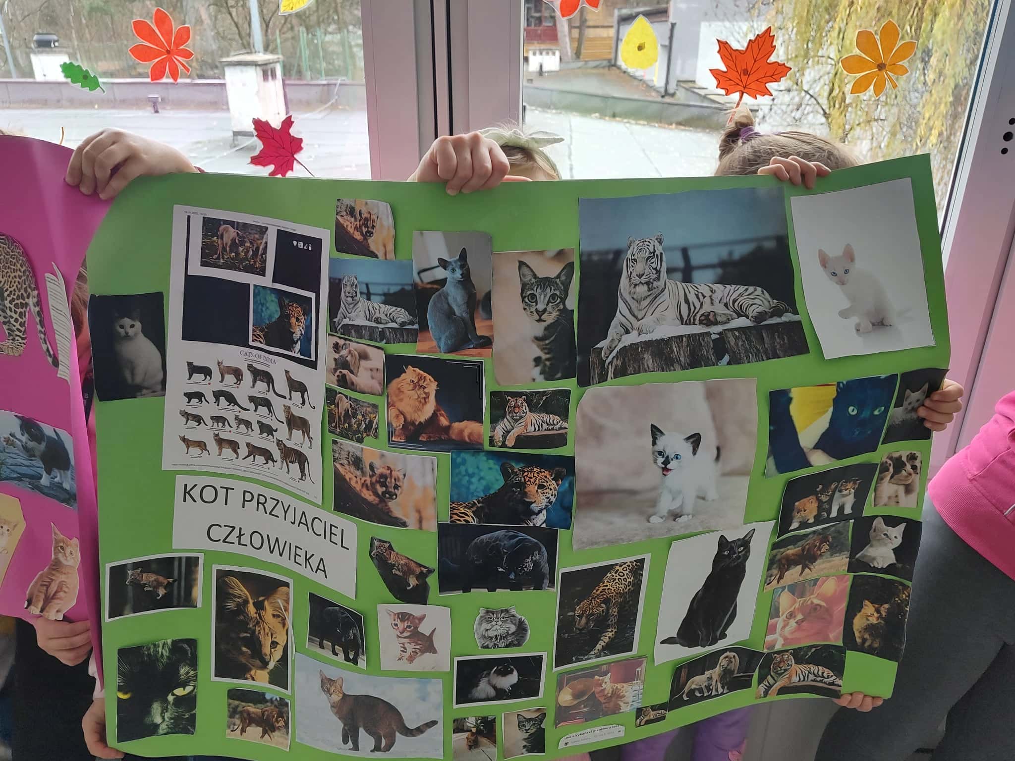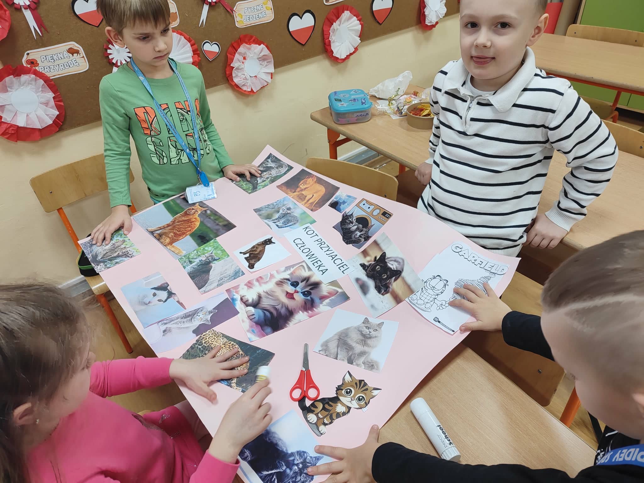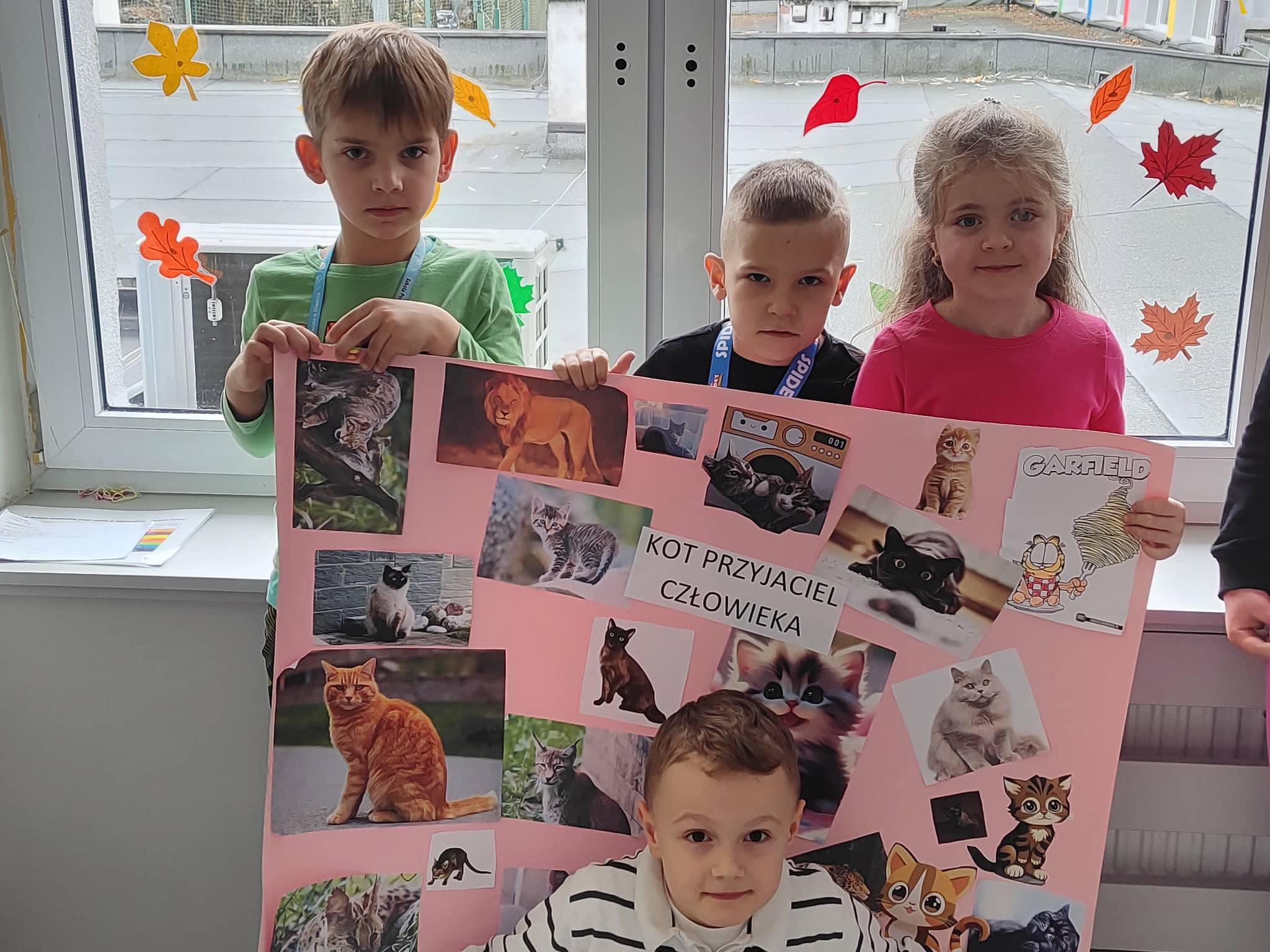 Uczniowie klasy 1b zakończyli omawianie lektury „Cukierku, Ty łobuzie!”. Na podsumowanie pracy nad książką przygotowali plakaty pełne ilustracji, ciekawostek i informacji o kocich zwyczajach. Wspólne tworzenie plakatów pozwoliło im jeszcze raz wrócić do kocich przygód i utrwalić najważniejsze treści z lektury