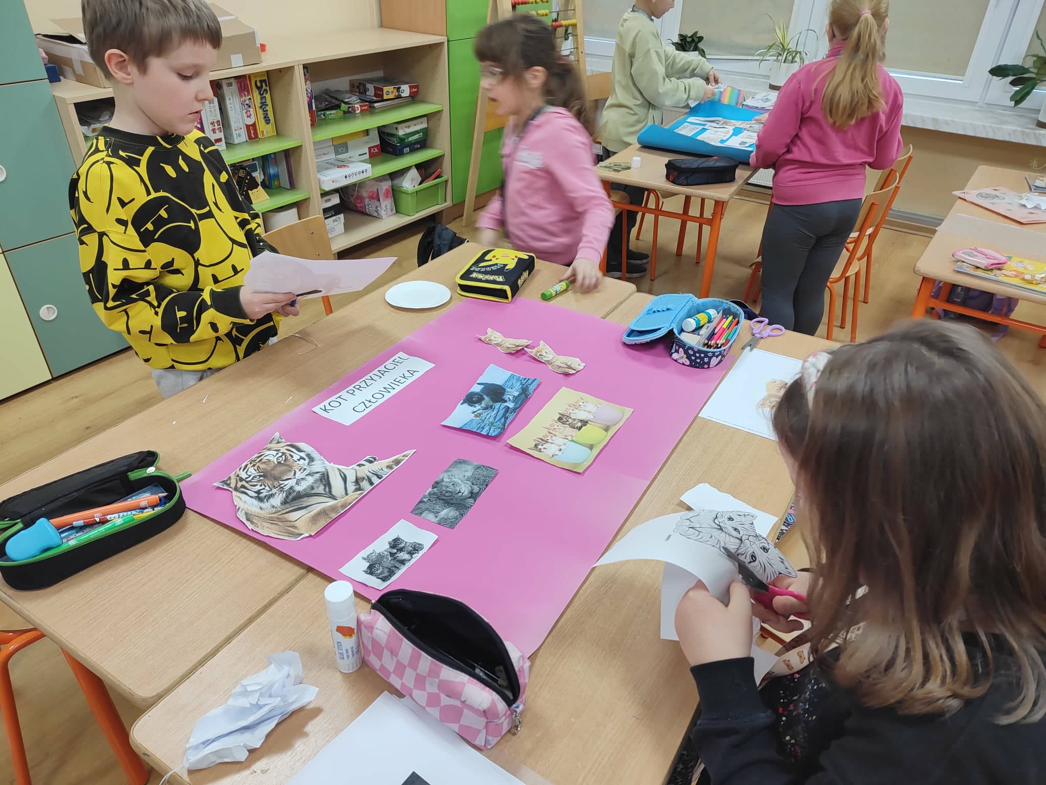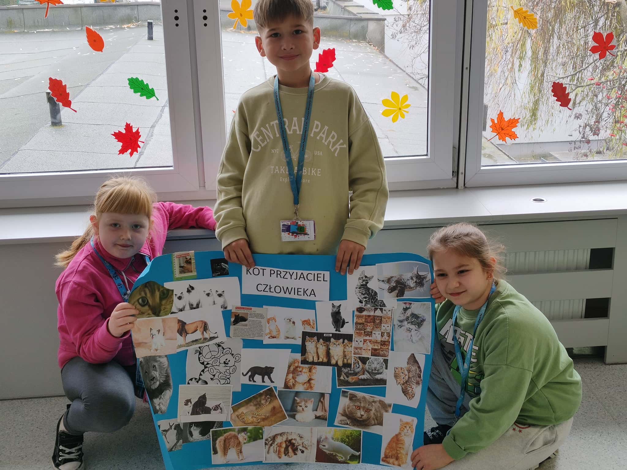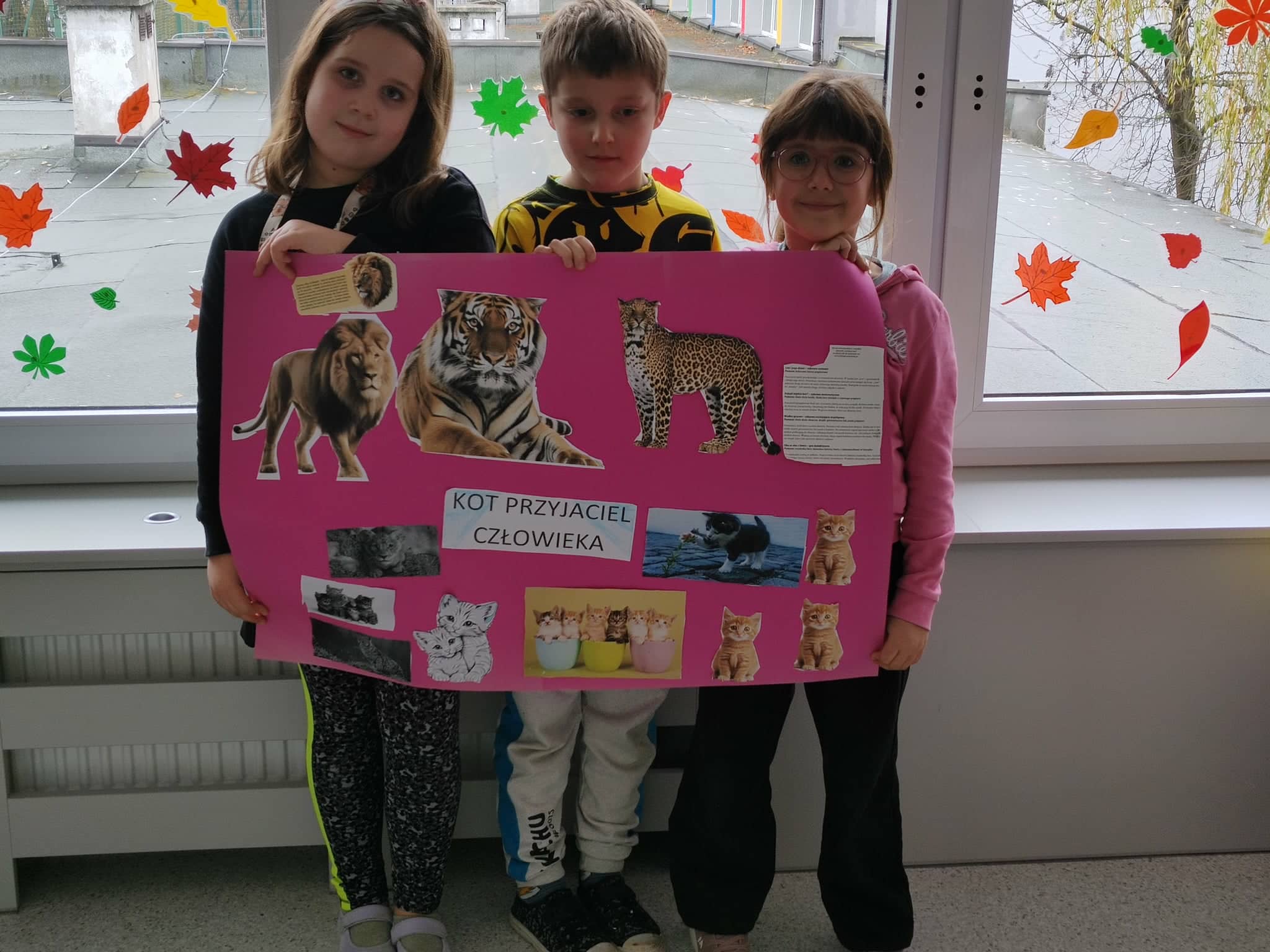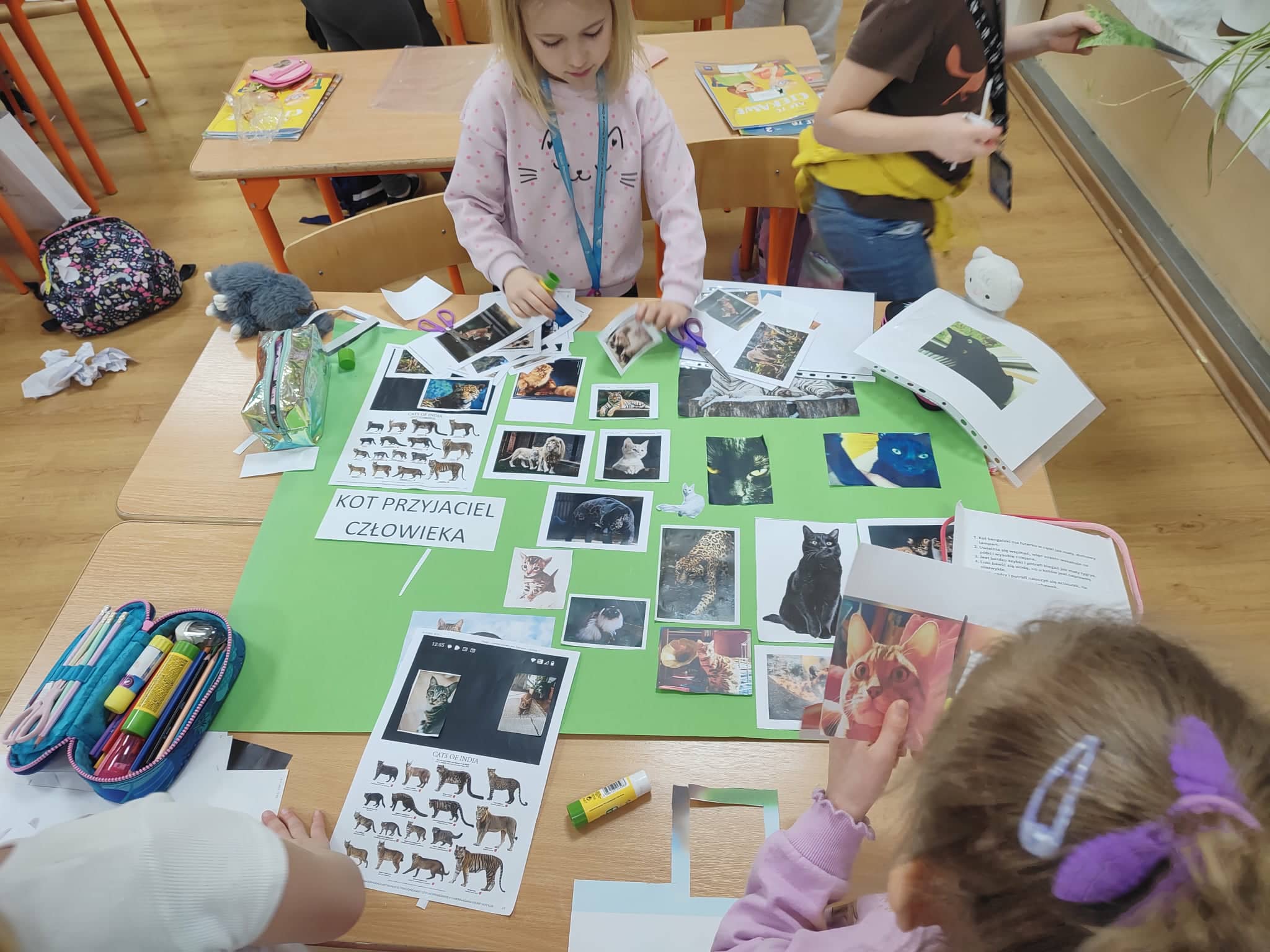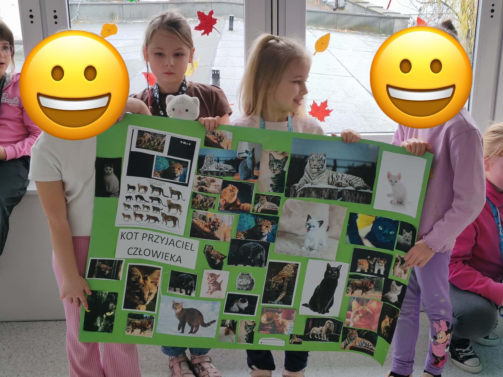 Uczniowie klasy 1b zakończyli omawianie lektury „Cukierku, Ty łobuzie!”. Na podsumowanie pracy nad książką przygotowali plakaty pełne ilustracji, ciekawostek i informacji o kocich zwyczajach. Wspólne tworzenie plakatów pozwoliło im jeszcze raz wrócić do kocich przygód i utrwalić najważniejsze treści z lektury