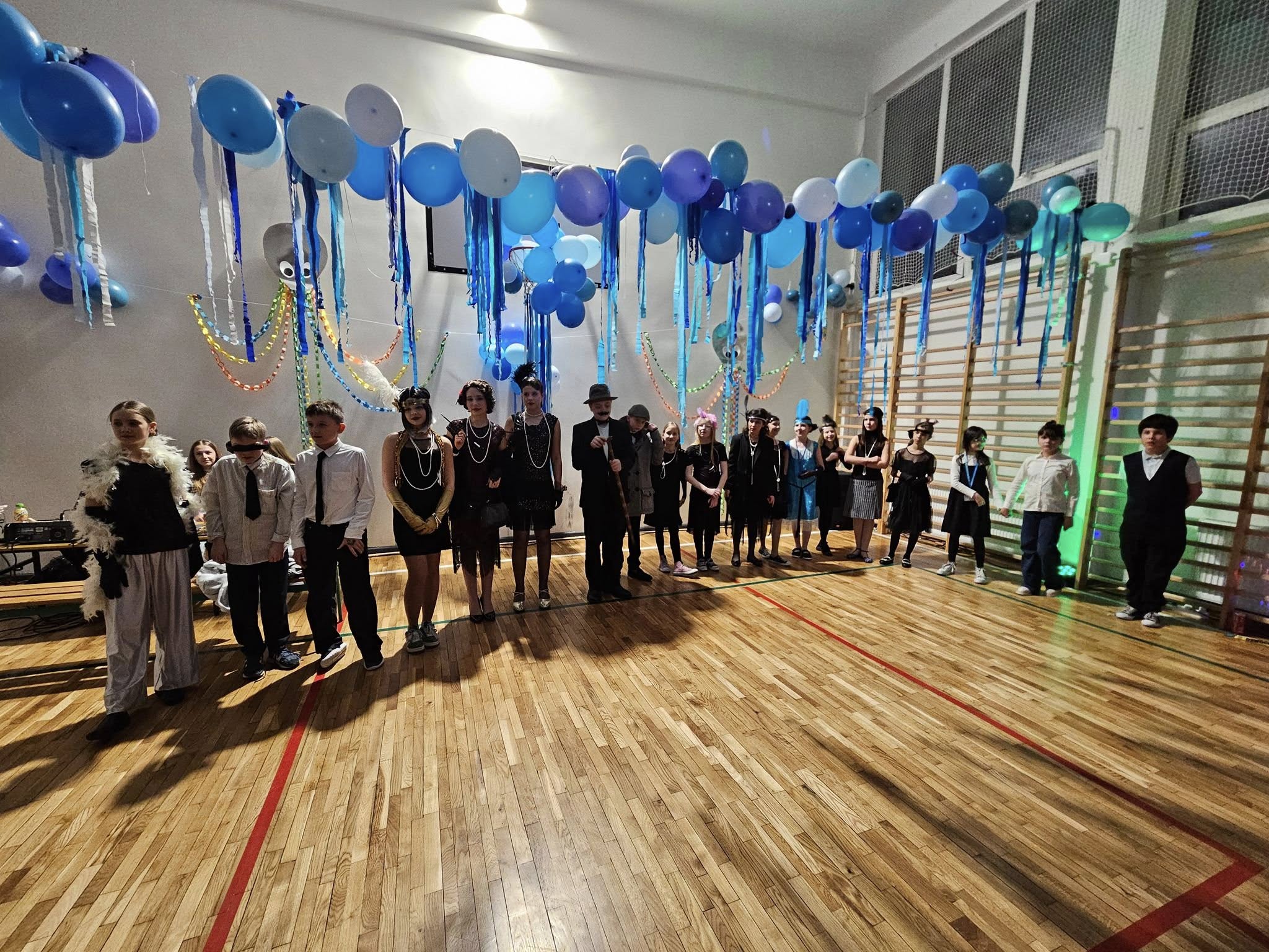 Uczniowie zachwycili kreatywnością swoich strojów. Dziewczęta miały na sobie sukienki z frędzlami, długie perły i opaski z piórami, a chłopcy wystąpili w eleganckich koszulach, szelkach i kapeluszach. Nie zabrakło też stylowych much i lasek, które dodawały całej stylizacji charakteru dawnych lat.