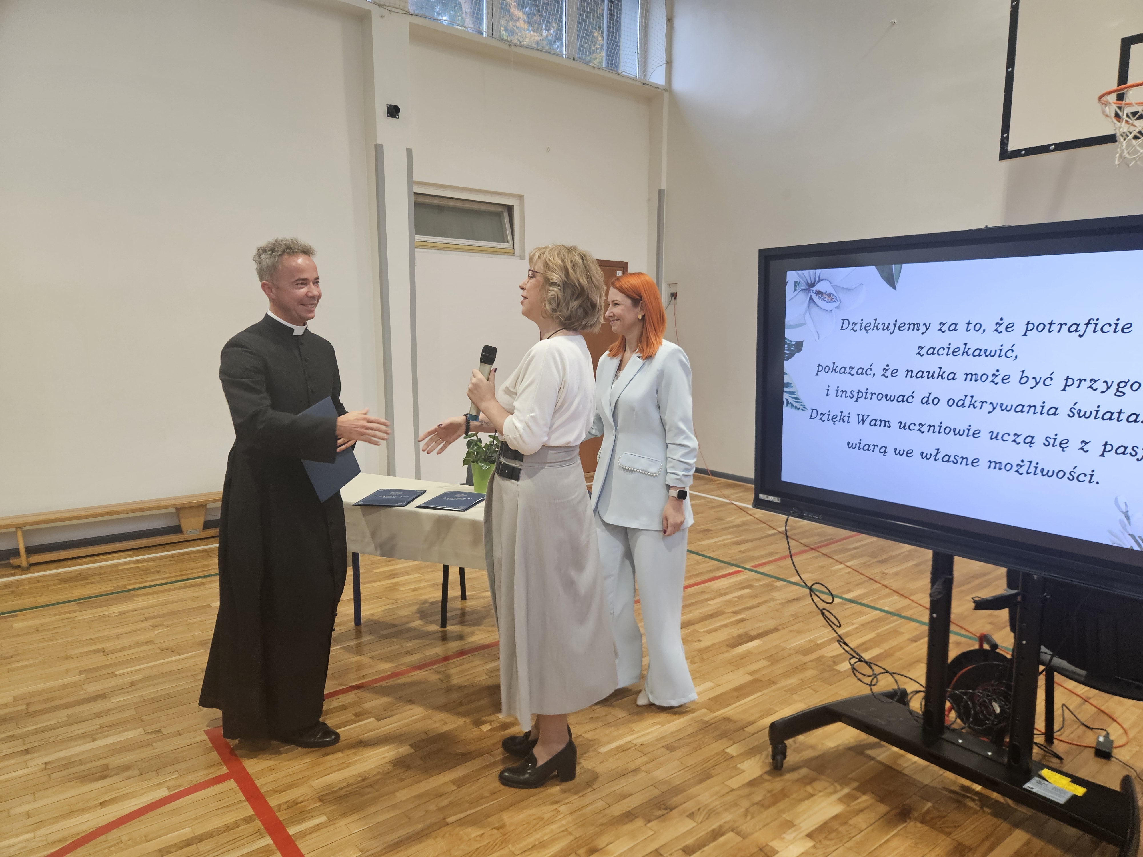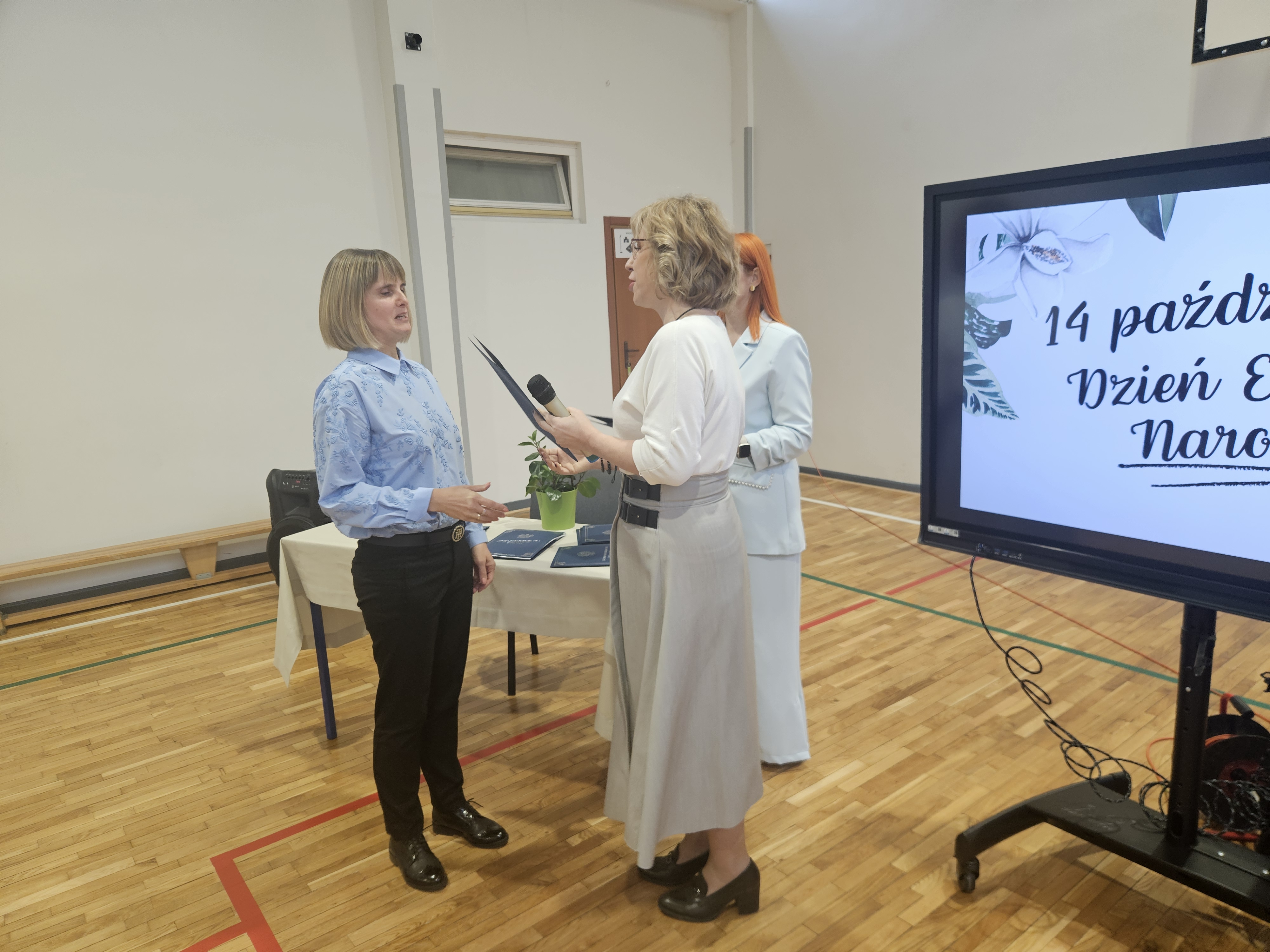 W dniu dzisiejszym w naszej szkole odbył się uroczysty apel z okazji Dnia Edukacji Narodowej. Była to doskonała okazja, aby wyrazić wdzięczność nauczycielom oraz wszystkim pracownikom szkoły za ich trud, zaangażowanie i codzienną pracę na rzecz edukacji i wychowania młodego pokolenia. Na zakończenie apelu wręczono nagrody i wyróżnienia dla nauczycieli, którzy w szczególny sposób przyczynili się do sukcesów uczniów i rozwoju szkoły.