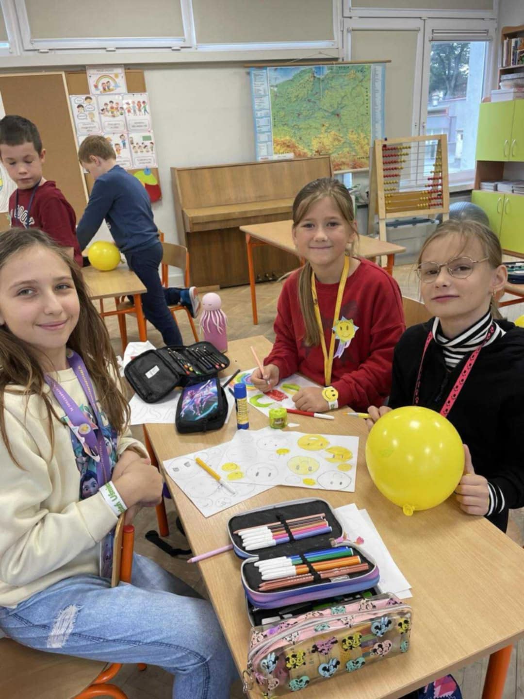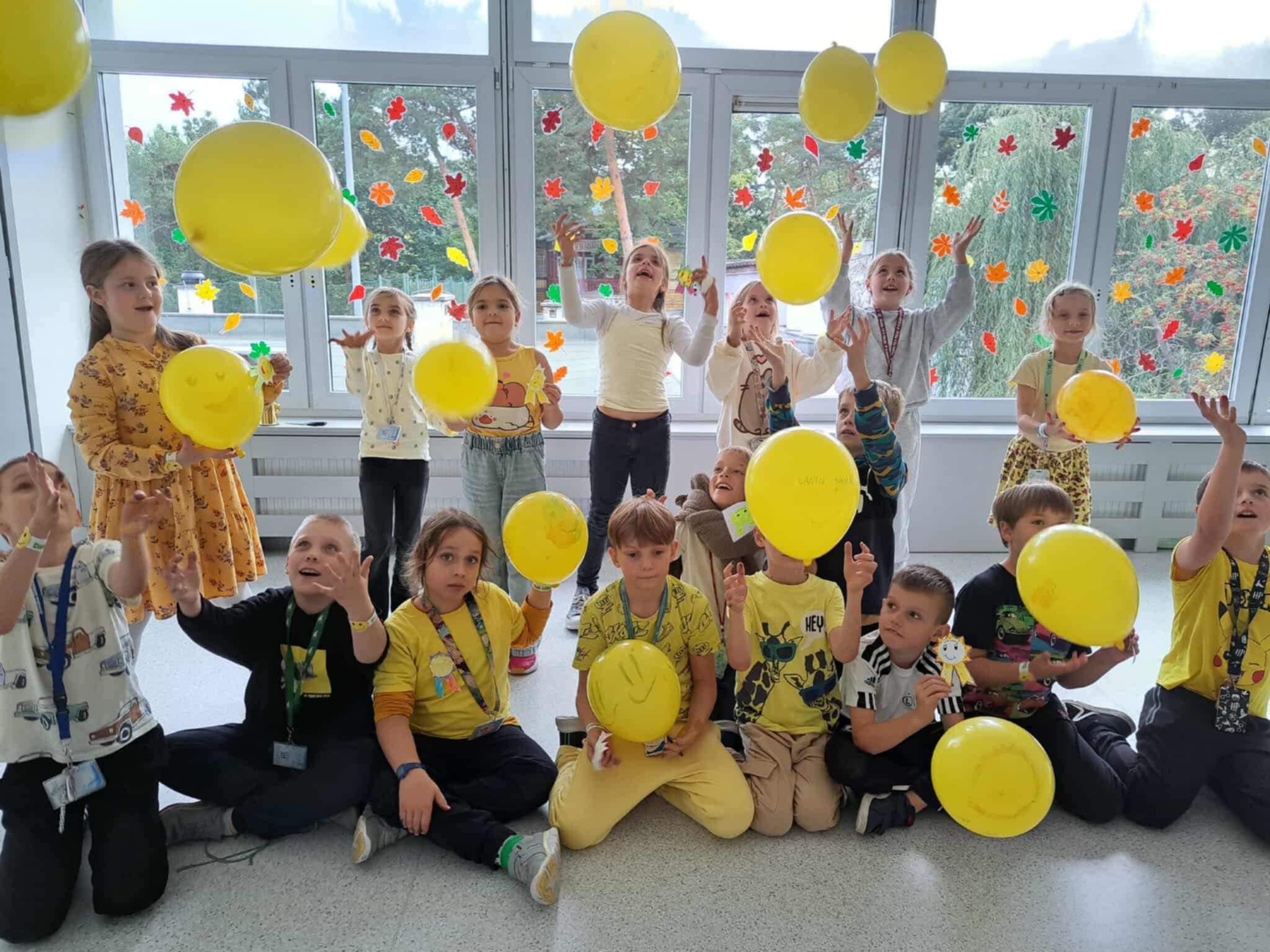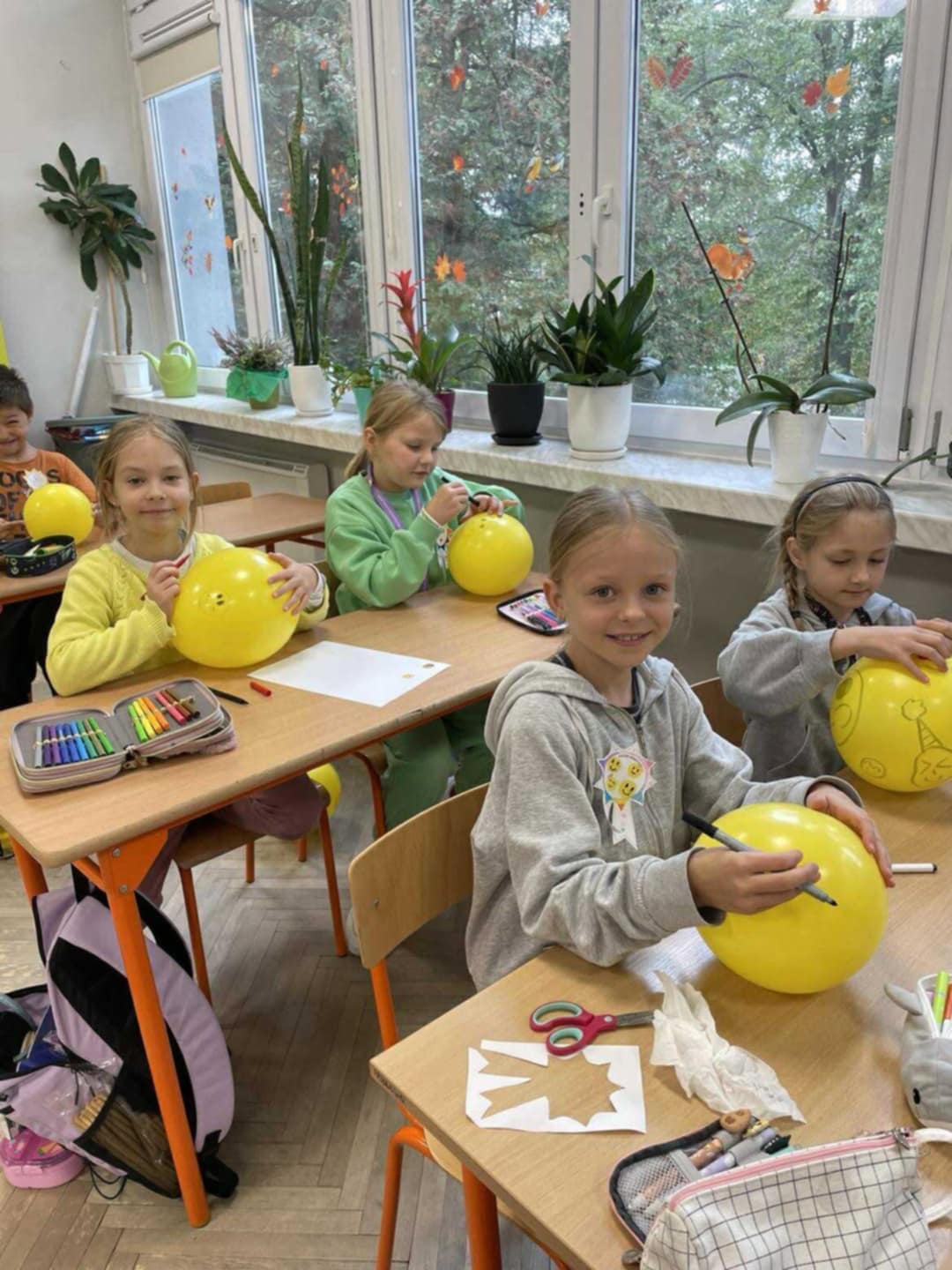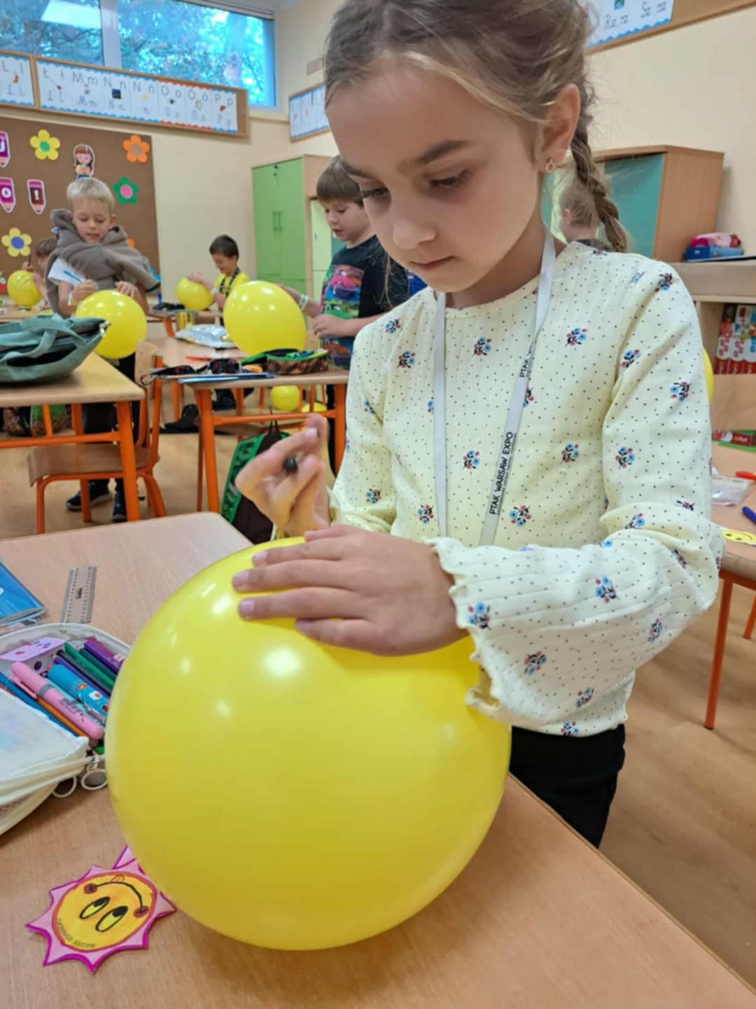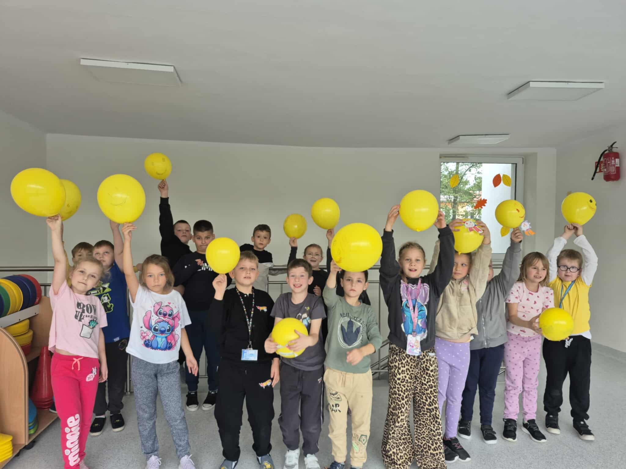Na korytarzach pojawiły się kolorowe dekoracje przygotowane przez uczniów i nauczycieli. Jedną z atrakcji było ozdabianie żółtych balonów, dzieci rysowały na nich radosne,uśmiechnięte buzie![]()