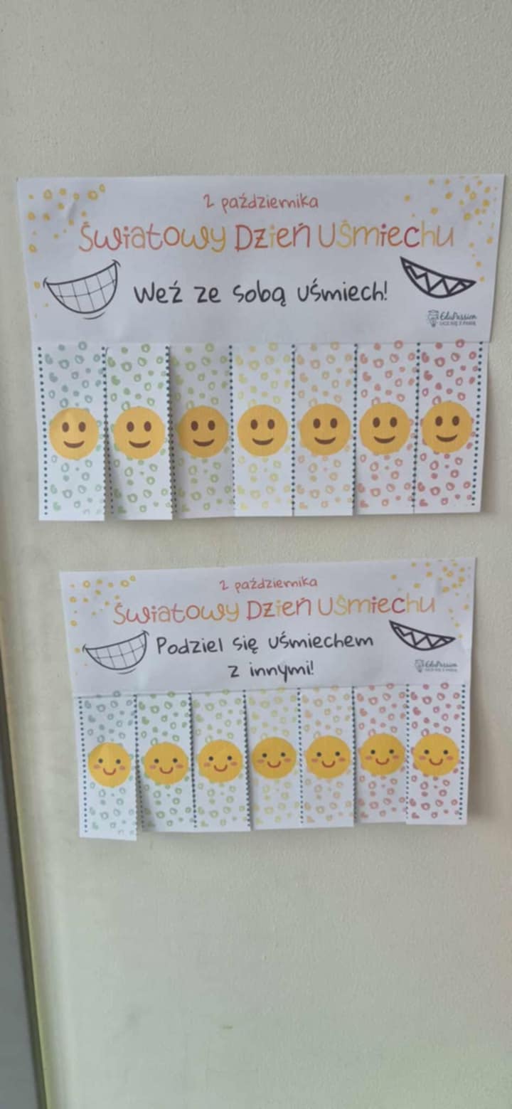 W piątek 3 października, w naszej szkole obchodziliśmy wyjątkowe święto: Światowy Dzień Uśmiechu. To doskonała okazja, aby przypomnieć sobie, jak wielką moc ma zwykły uśmiech i jak łatwo można nim poprawić komuś humor. W klasach I-III od rana panowała radosna atmosfera. Dzieci przyszły do szkoły ubrane w żółte elementy stroju- kolor , który symbolizuje radość i słońce.