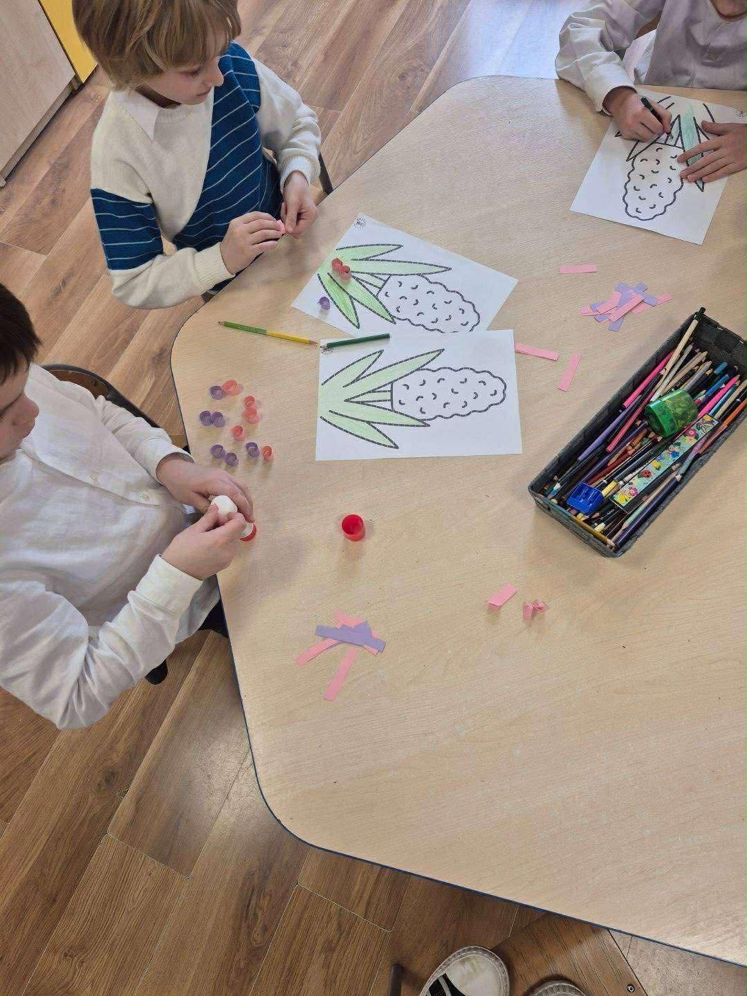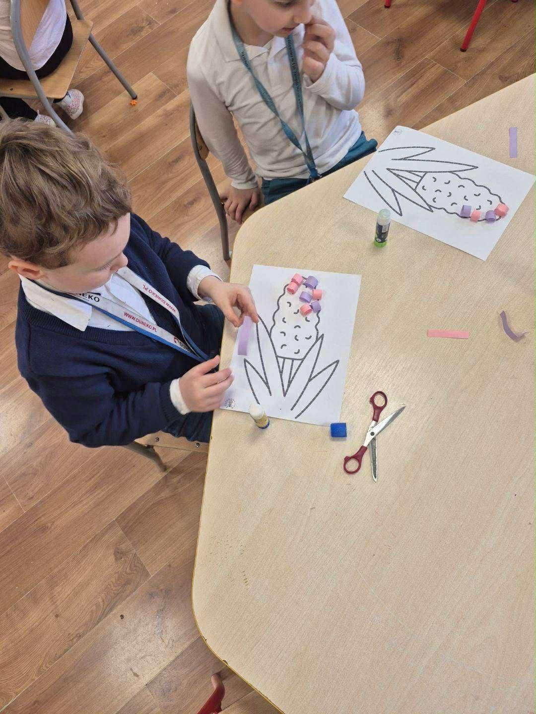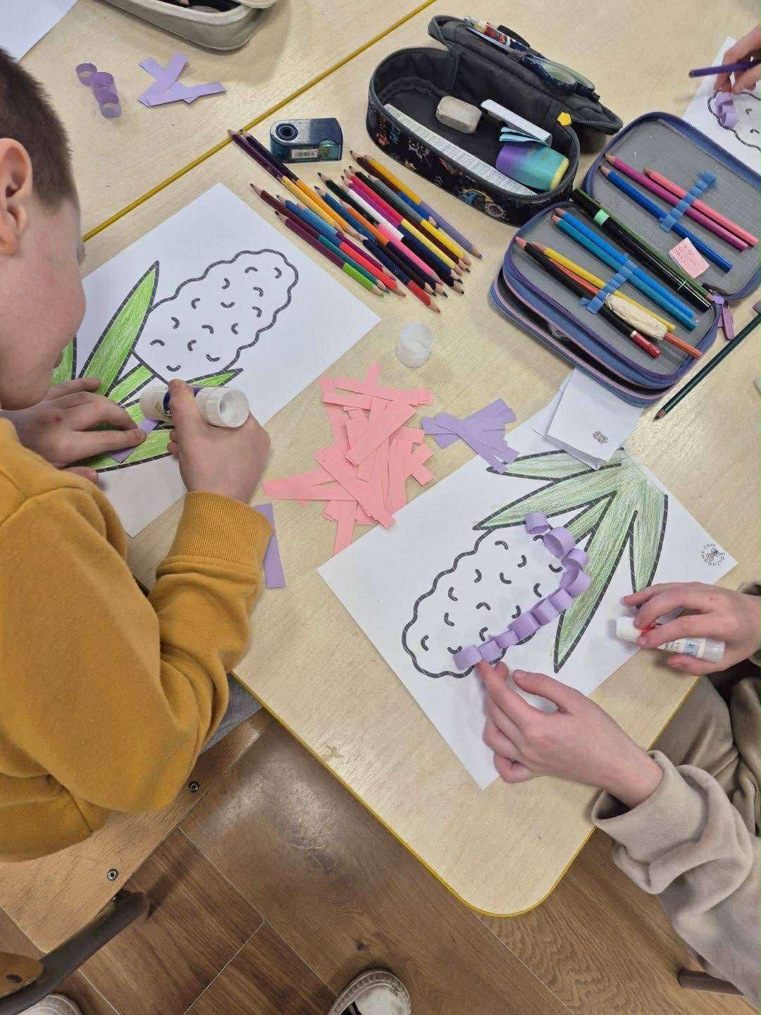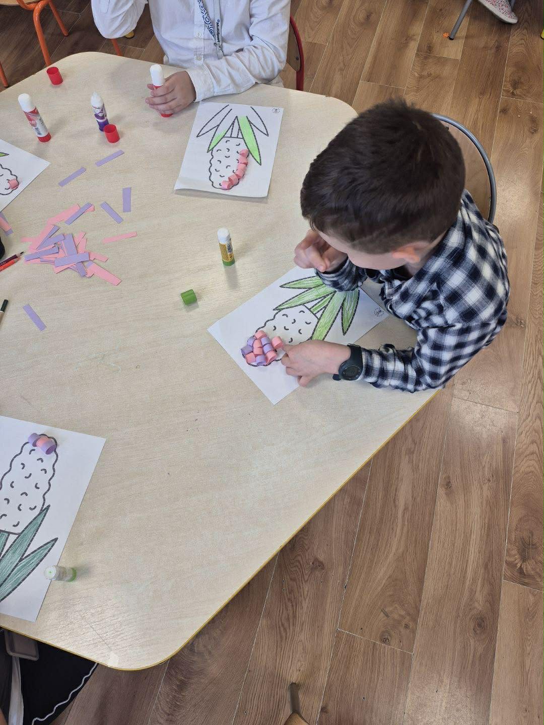 Dzieci uczęszczające na świetlicę z radością przywitały nadchodzącą wiosnę, wykonując piękne prace plastyczne przedstawiające hiacynty. Podczas zajęć wykazały się dużą kreatywnością i zaangażowaniem, a kolorowe kwiaty stały się symbolem budzącej się do życia przyrody. Wspólne tworzenie było nie tylko okazją do rozwijania zdolności manualnych, ale także wprowadziło wszystkich w wiosenny, pełen radości nastrój.