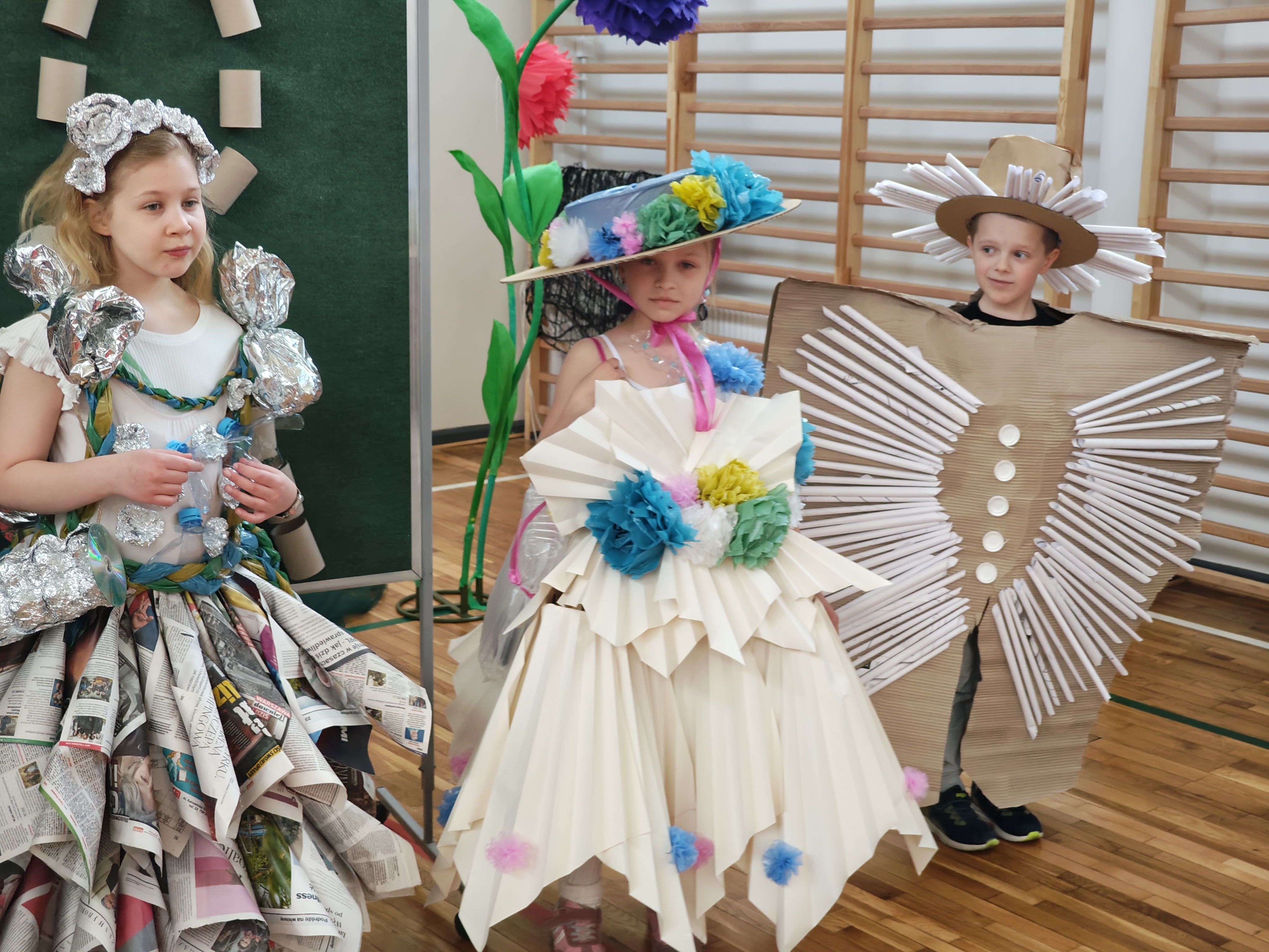 Dziś w naszej szkole świętowaliśmy Dzień Ziemi w wyjątkowy sposób! Jednym z najciekawszych wydarzeń był ekologiczny pokaz mody, podczas którego uczestnicy zaprezentowali niezwykłe stroje wykonane z materiałów z recyklingu. Kreatywność i zaangażowanie były naprawdę imponujące!