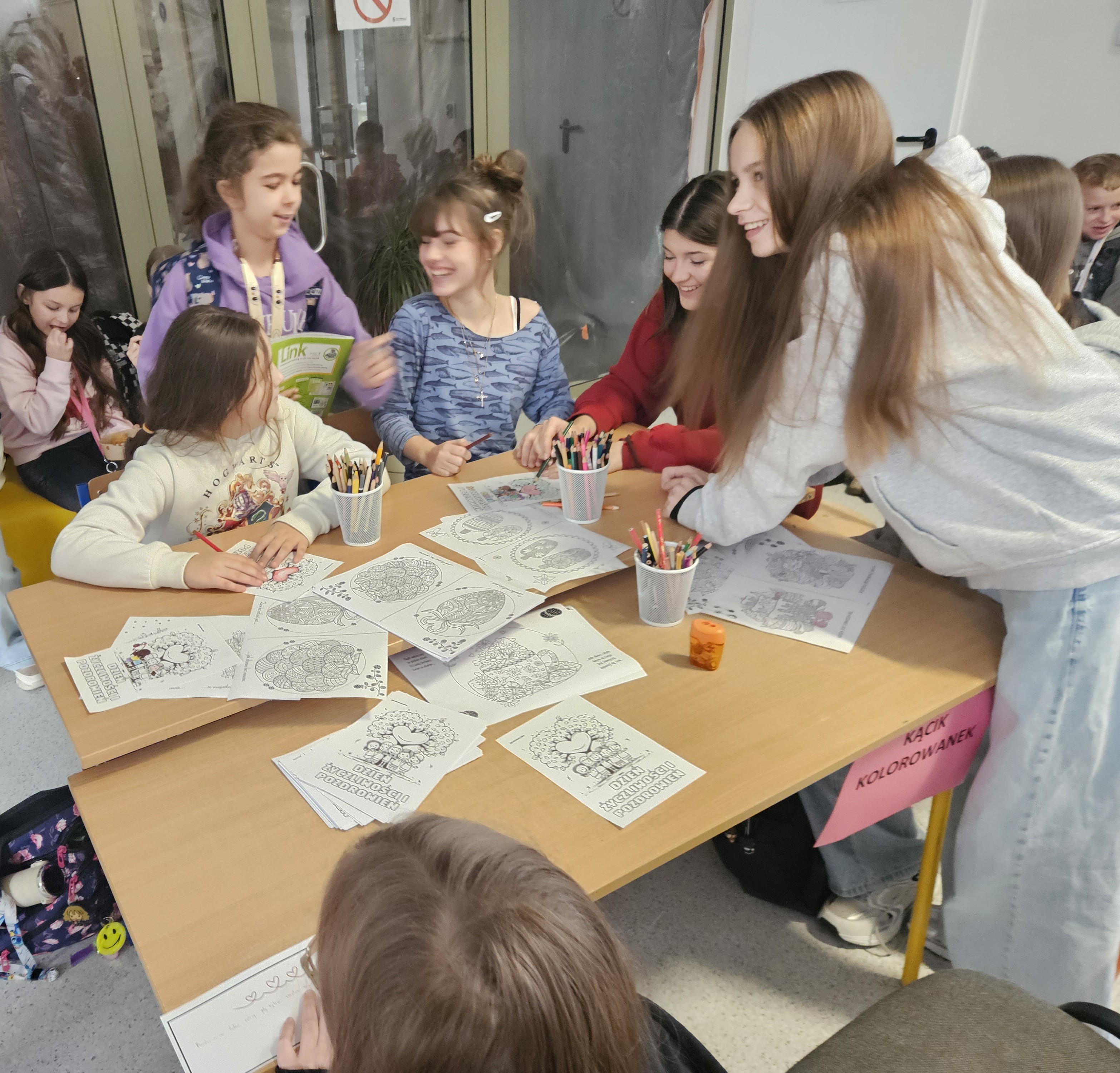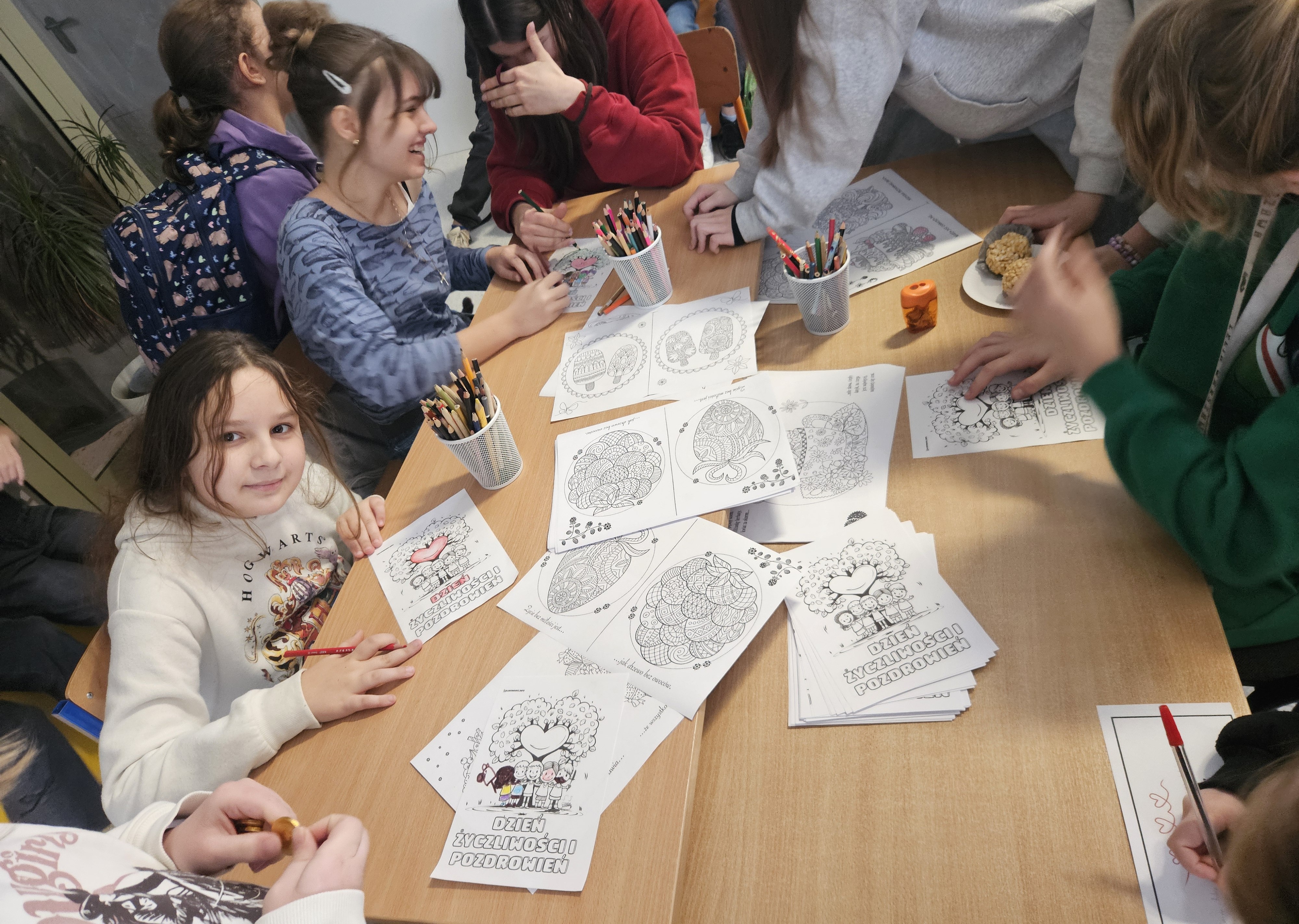 Dodatkowo przygotowano kolorowanki o tematyce życzliwości, które pozwoliły uczniom w twórczy sposób wyrazić dobre emocje.