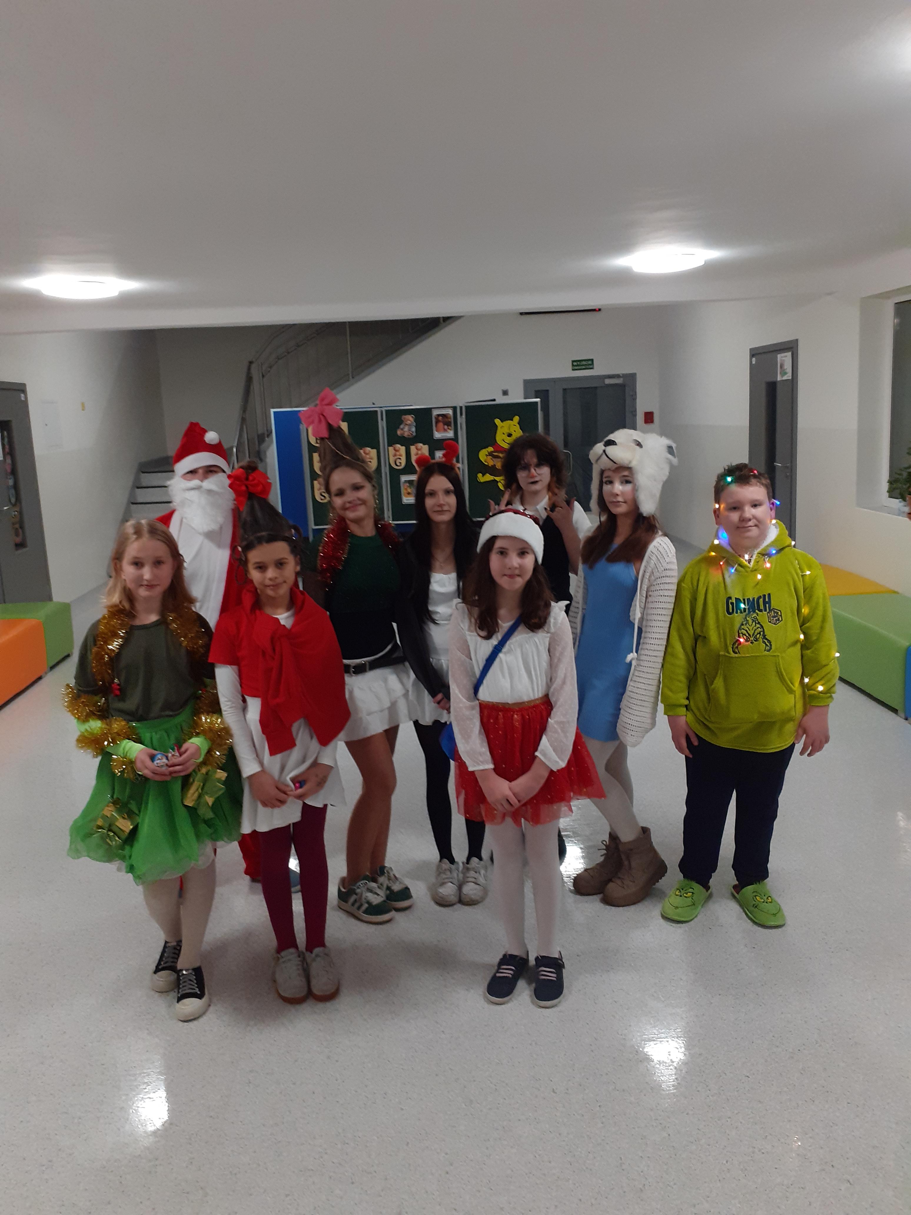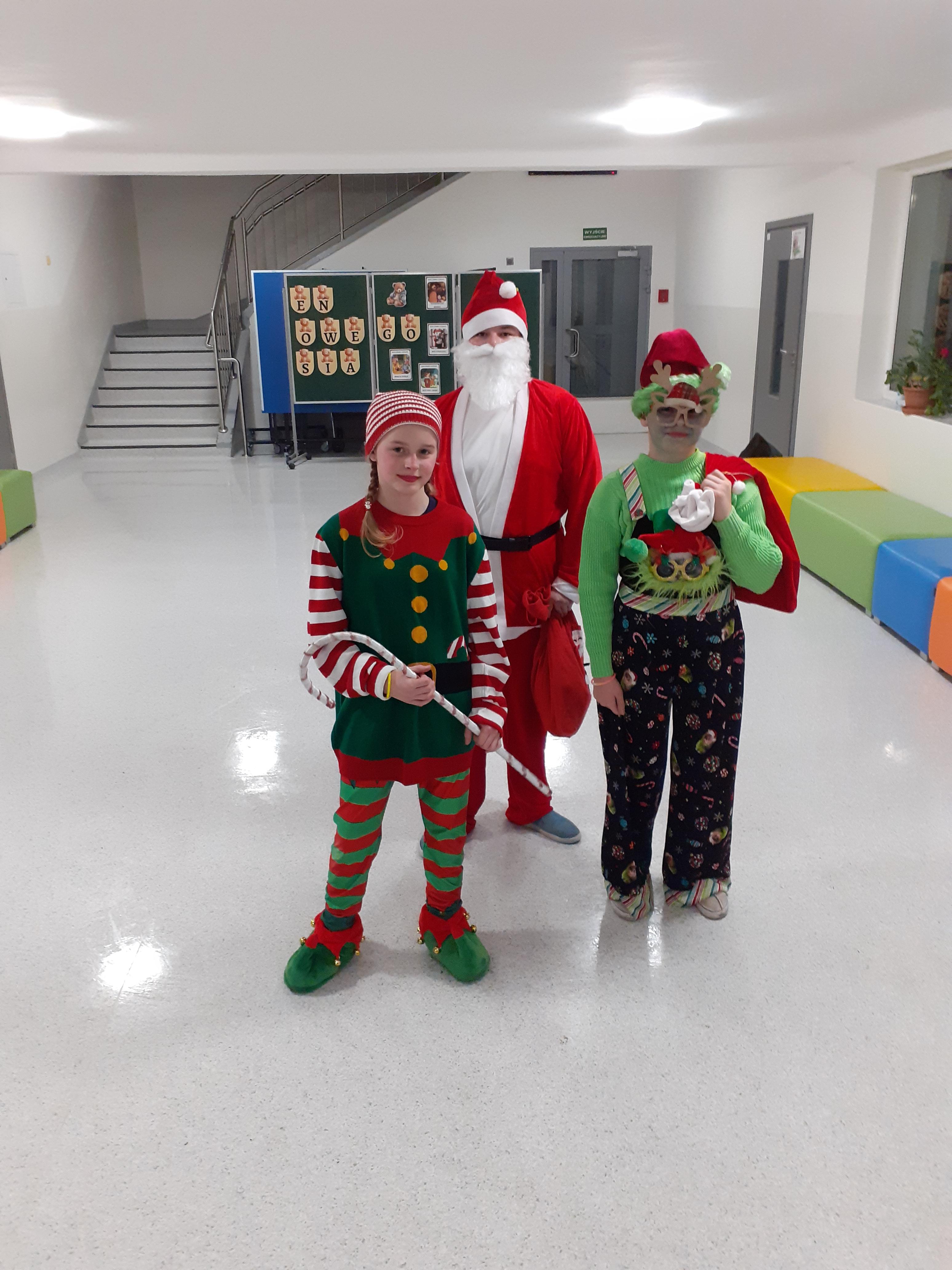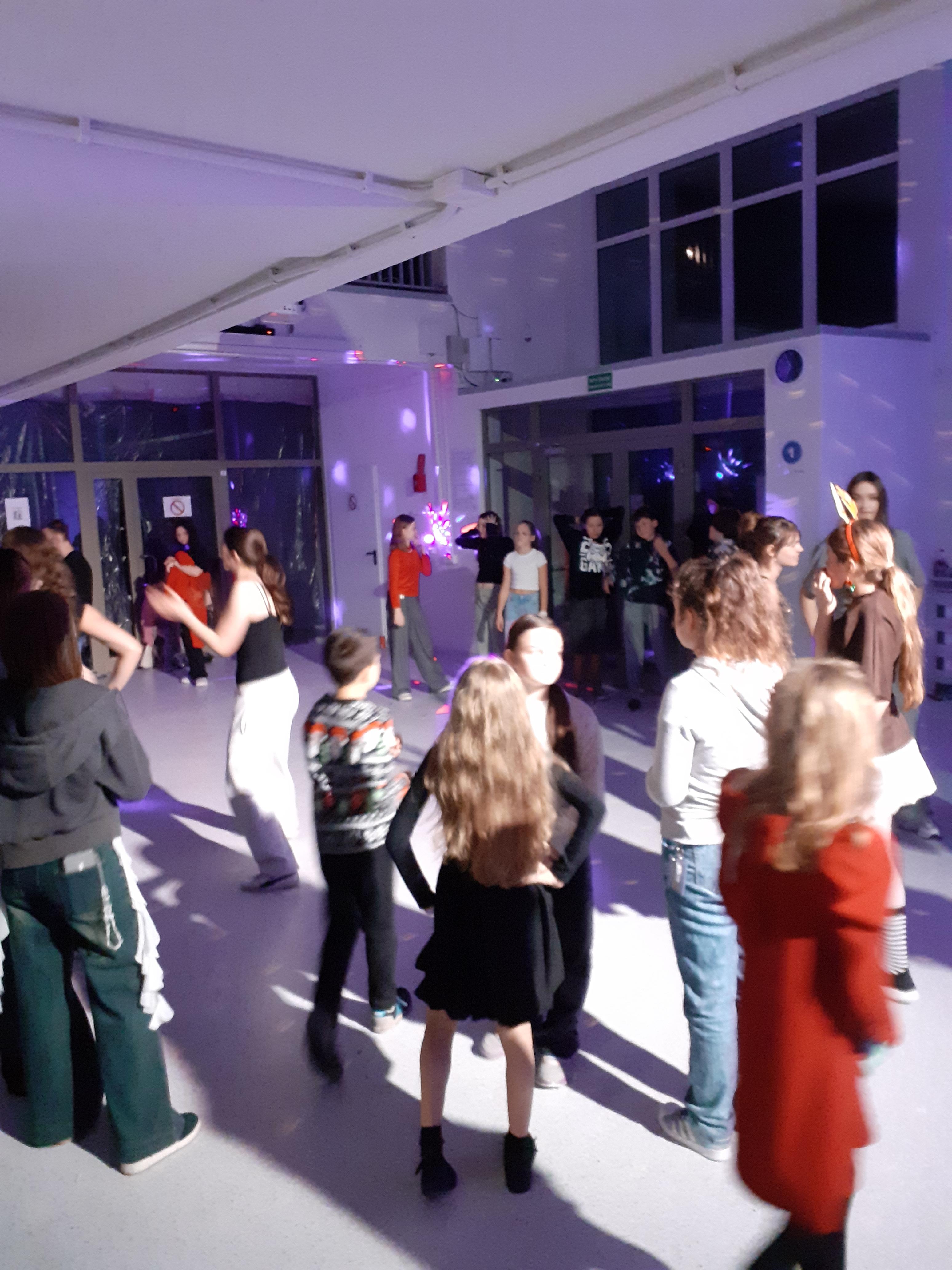 Dzisiaj w Trójce jest dyskoteka. Wielu uczestników przebrało się w stroje świąteczne. Za najciekawsze przebrania Samorząd przyznał słodkie niespodzianki. Zabawa jest świetna!