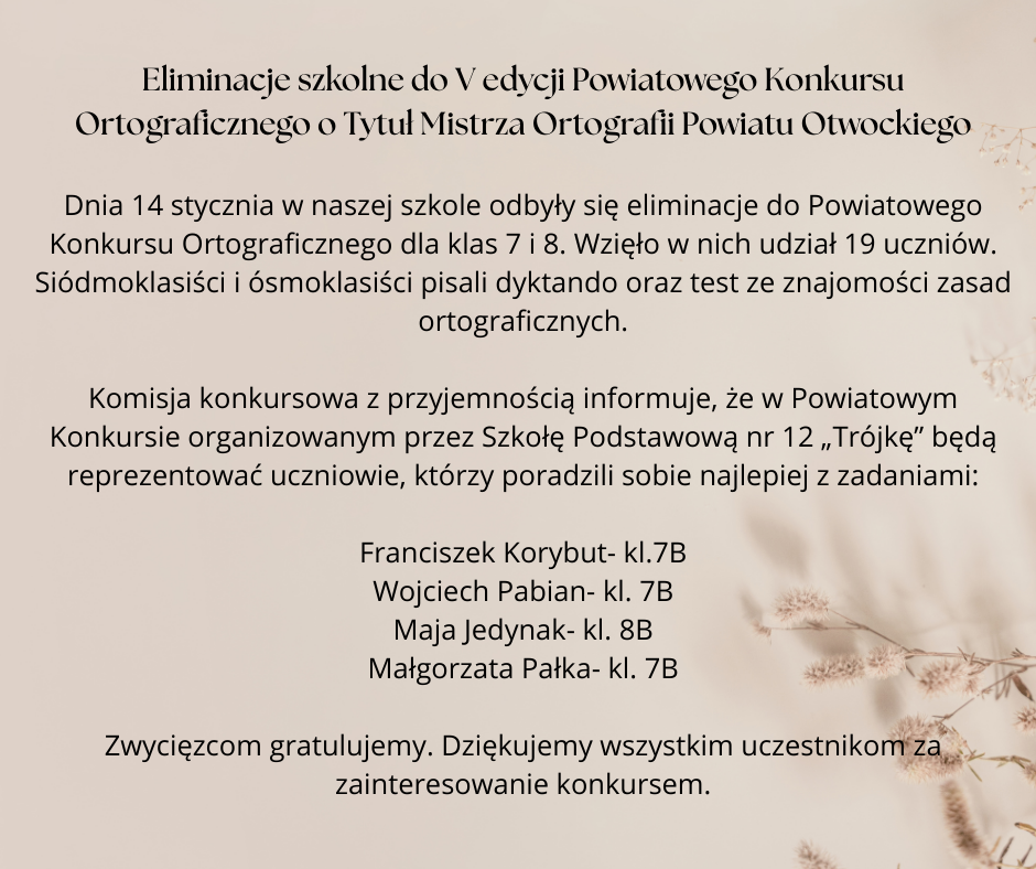 Eliminacje szkolne do V edycji Powiatowego Konkursu Ortograficznego o Tytuł Mistrza Ortografii Powiatu Otwockiego