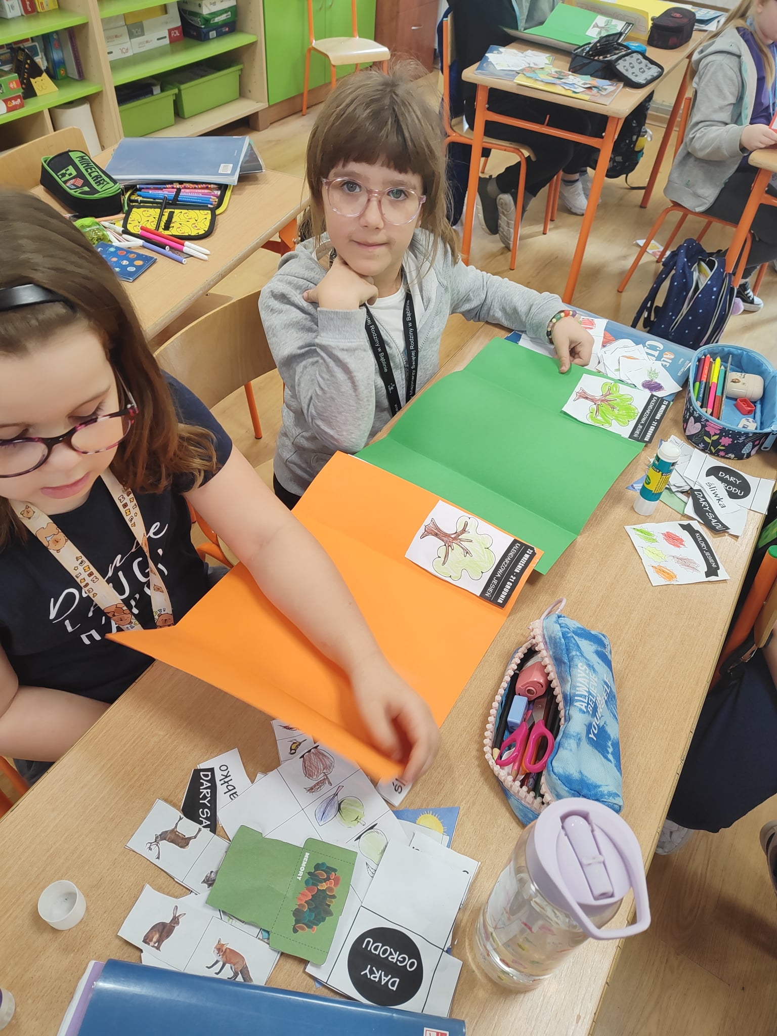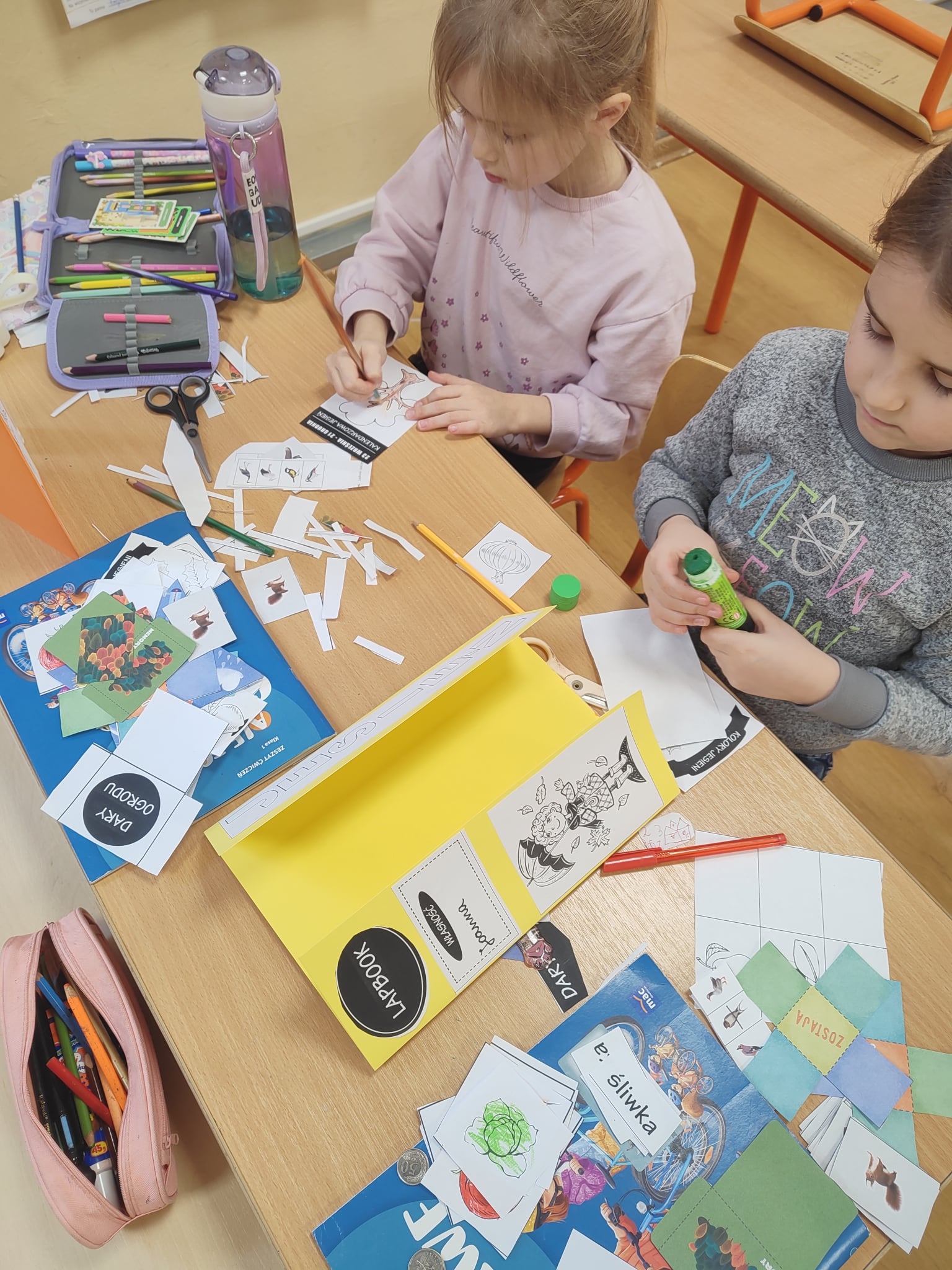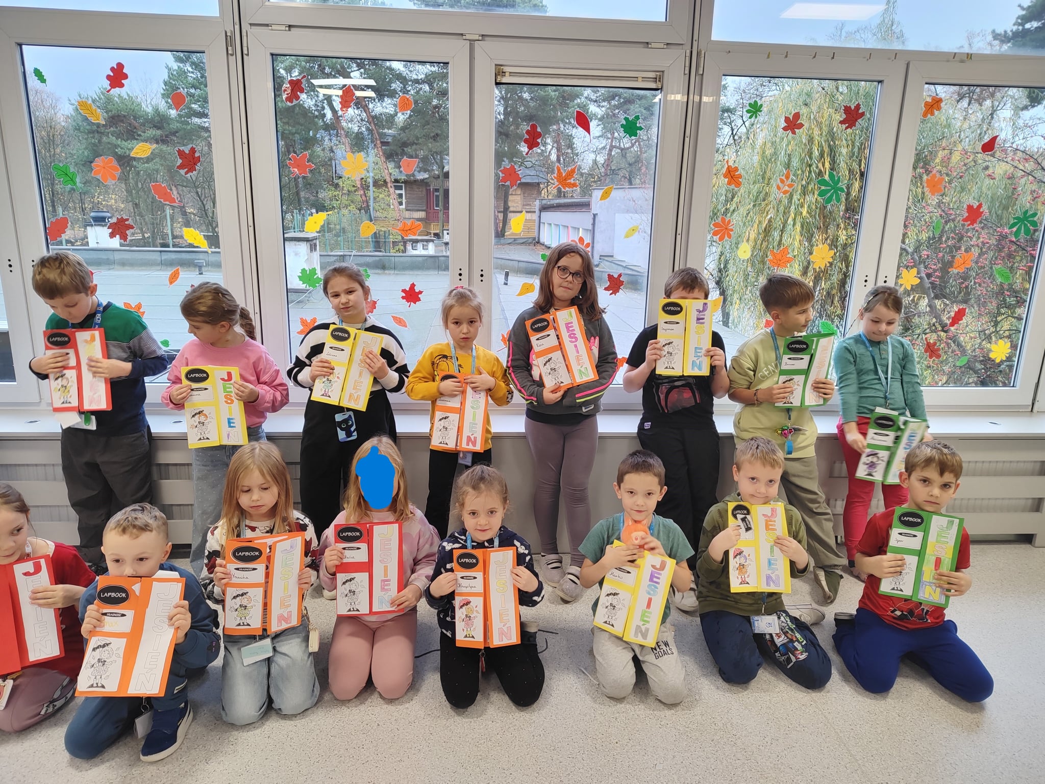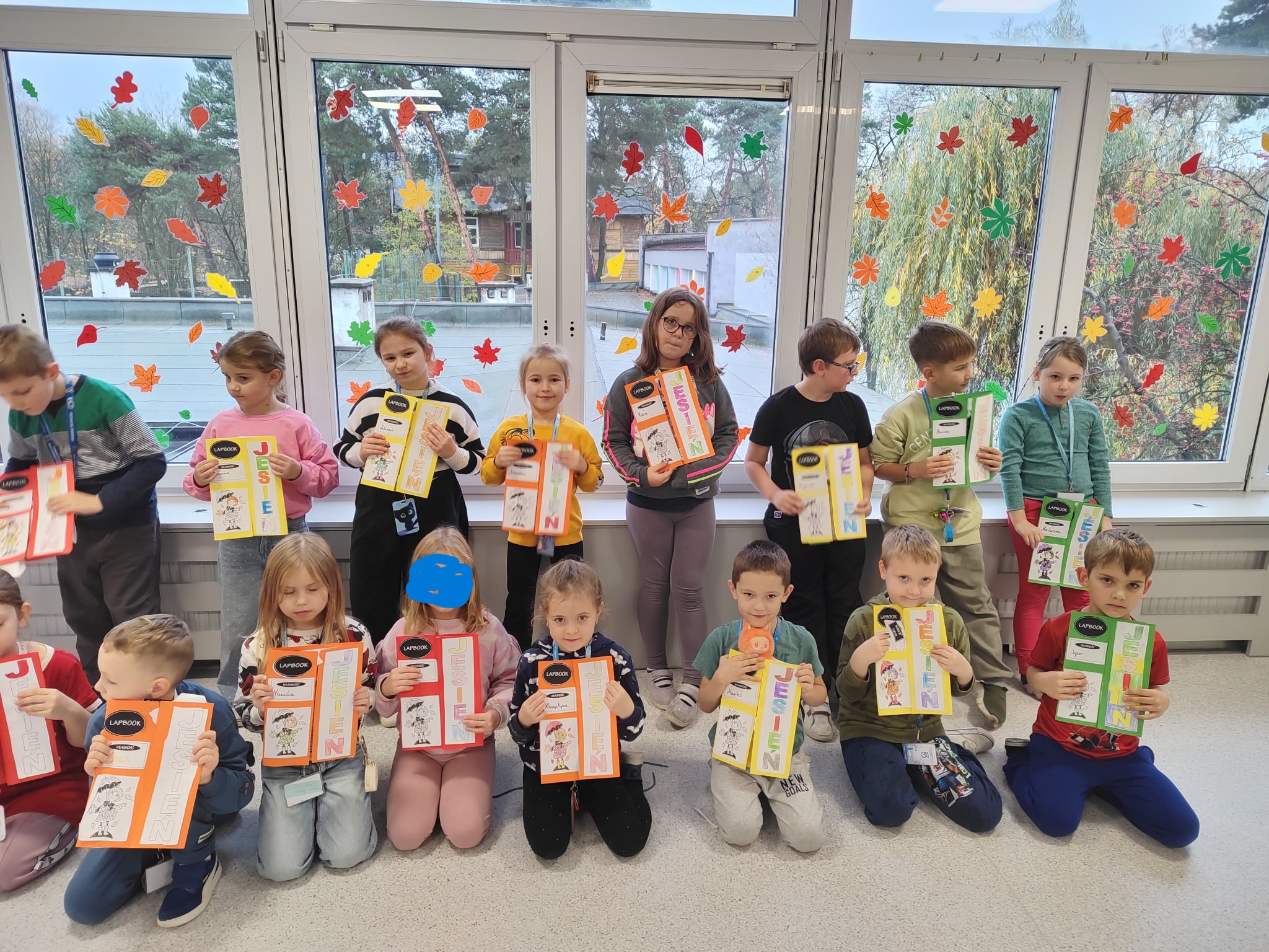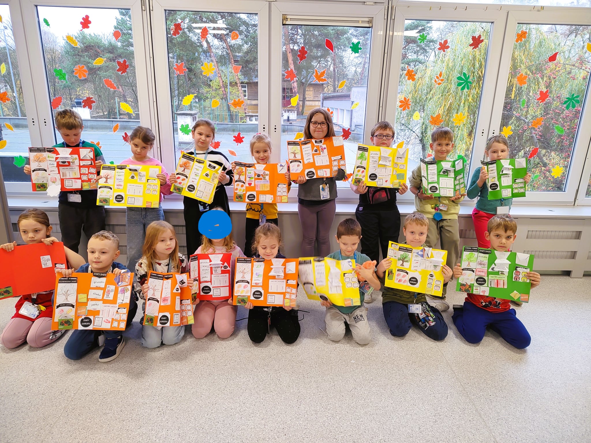 Uczniowie klasy 1b przygotowali jesienne lapbooki jako podsumowanie bloku tematycznego o jesieni. W swoich pracach zgromadzili wiadomości o charakterystycznych cechach tej pory roku, zmianach w przyrodzie, darach jesieni oraz zwierzętach szykujących się do zimy. Lapbooki były pełne kolorów, ilustracji i ciekawostek. Dzięki temu projektowi dzieci w twórczy sposób utrwaliły zdobytą wiedzę i mogły pochwalić się swoimi pomysłami.