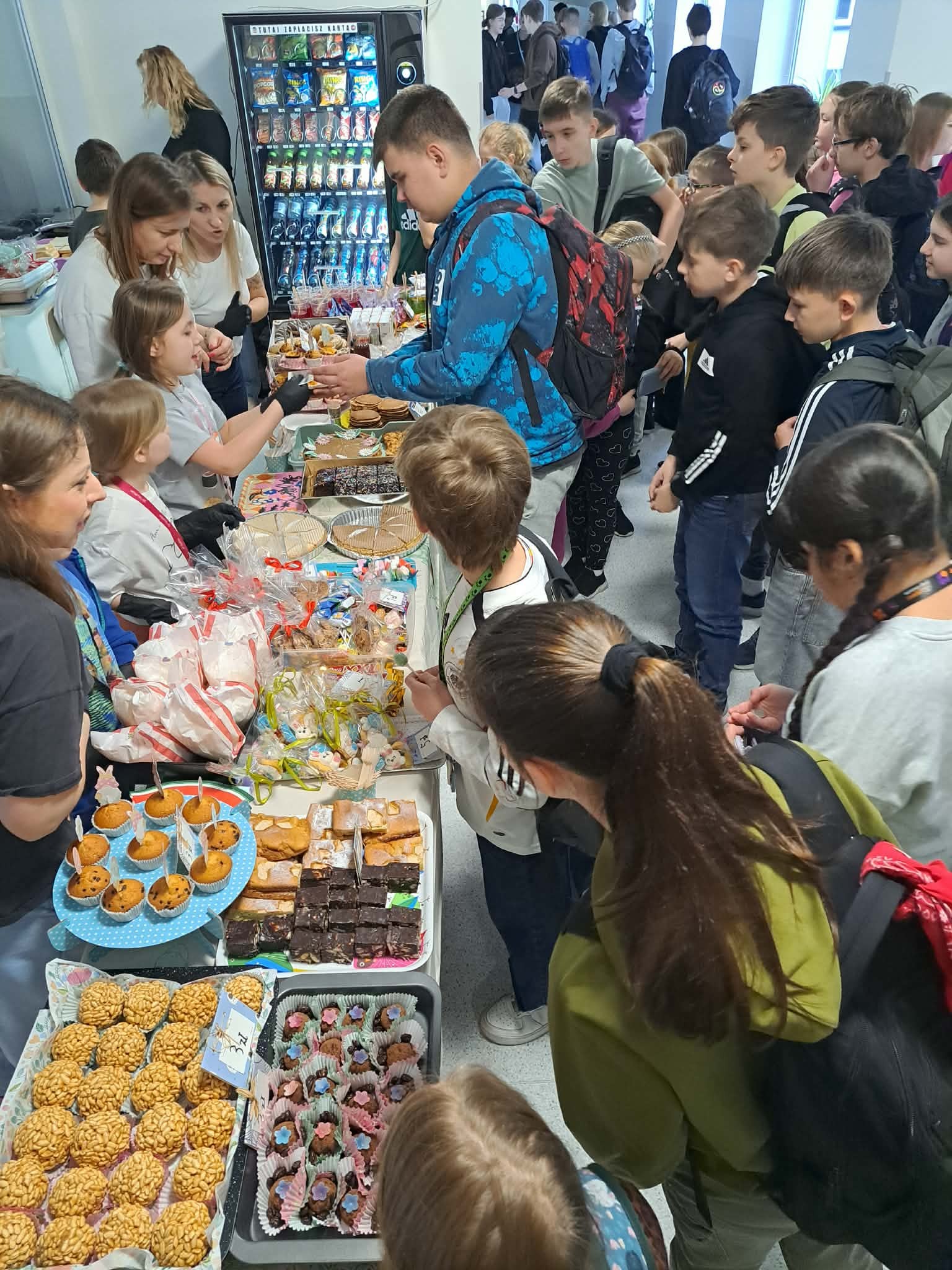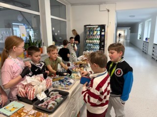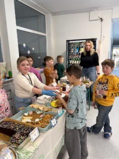 Nasza kawiarenka zamieniła się dziś w prawdziwie wiosenno-wielkanocną krainę smaków Kolorowe babeczki, słodkie przysmaki i inne cuda znikały w mgnieniu oka To wszystko nie udałoby się bez niezastąpionych rodziców i fantastycznych uczniów z klasy 2b, którzy spisali się na medal !