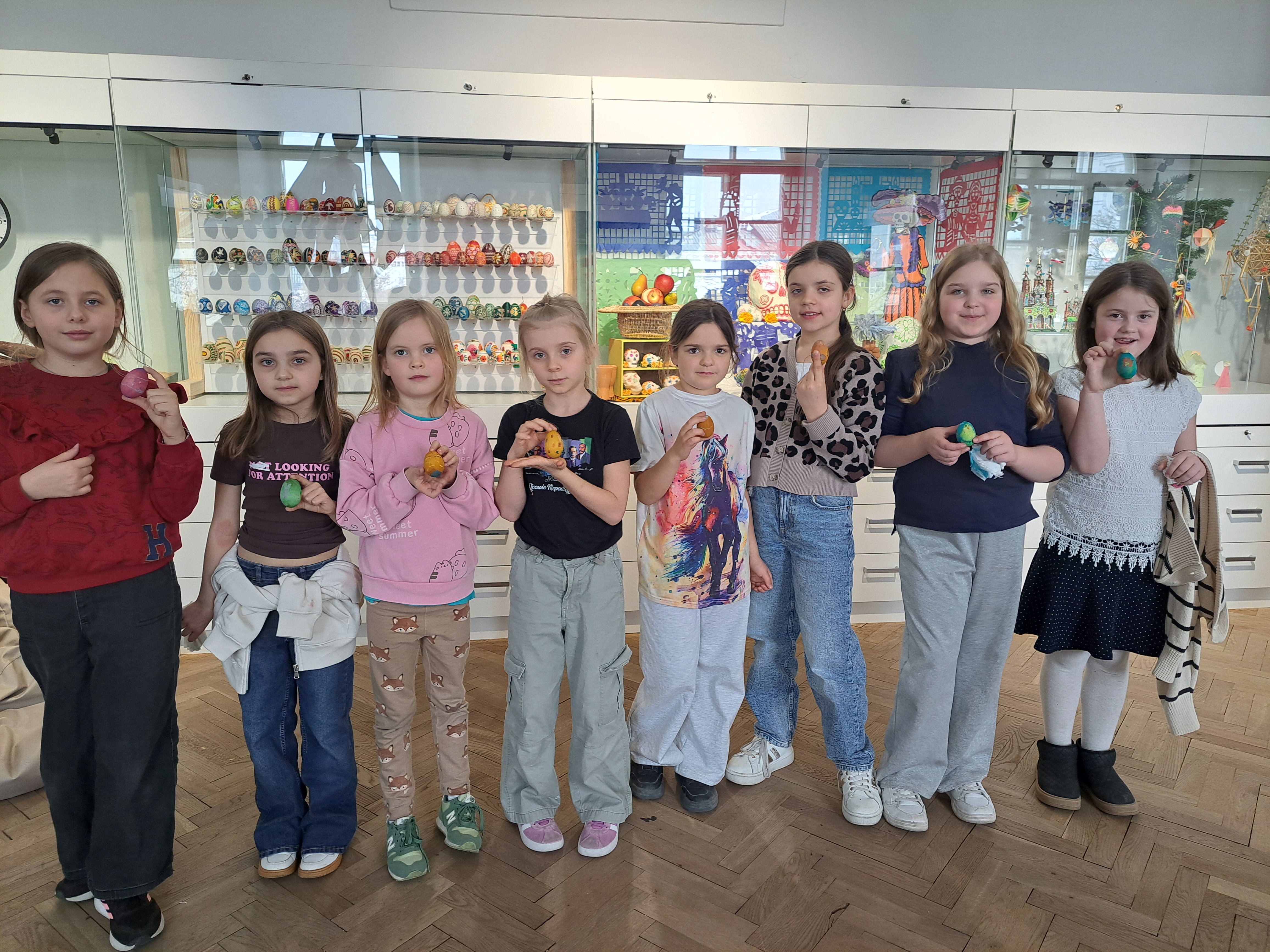 25 marca klasy 1b i 2b wybrały się do Muzeum Etnograficznego na zajęcia pt. „Wszyscy świętujemy: wiosna i Wielkanoc!” Podczas spotkania uczniowie dzielili się swoimi skojarzeniami związanymi z wiosną i Wielkanocą, a także malowali i barwili drewniane jajka, rozwijając swoją kreatywność. Dzieci poznały dawne, wiejskie tradycje związane z przygotowaniami do Świąt Wielkanocnych, a na zakończenie obejrzały ciekawą wystawę muzealną.