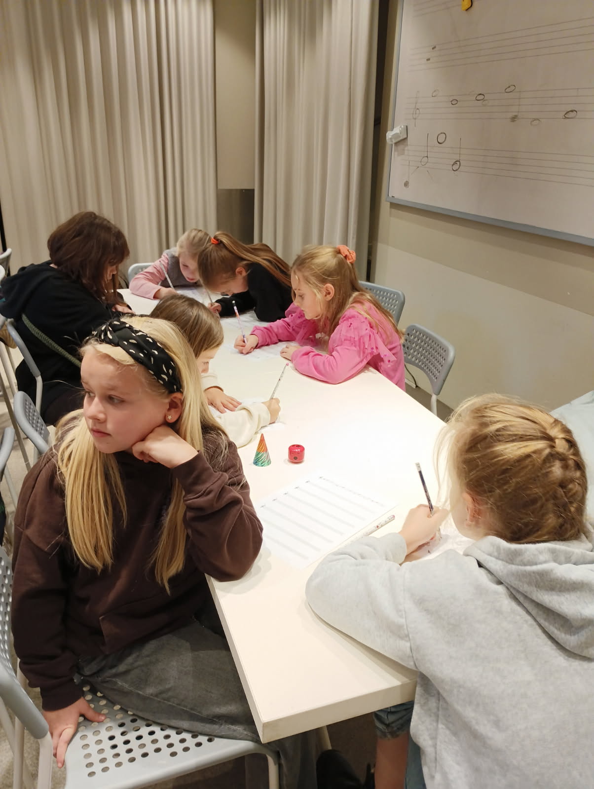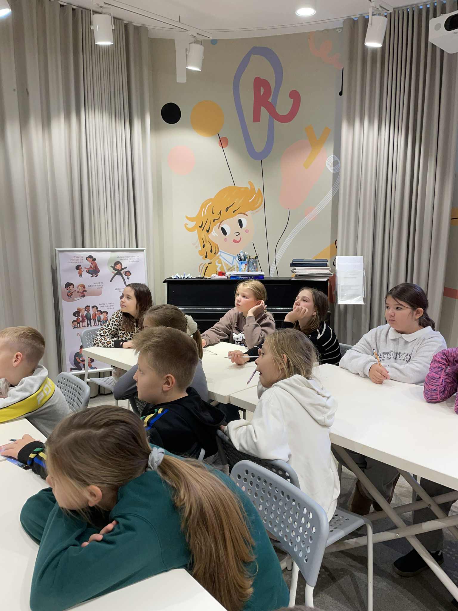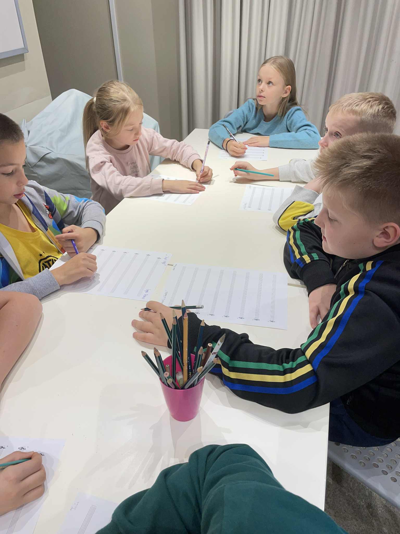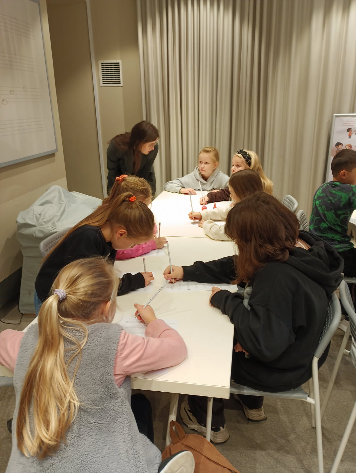 Podczas warsztatów każdy z nas napisał własną kompozycję muzyczną, która została odegrana na żywo przez panią prowadzącą.