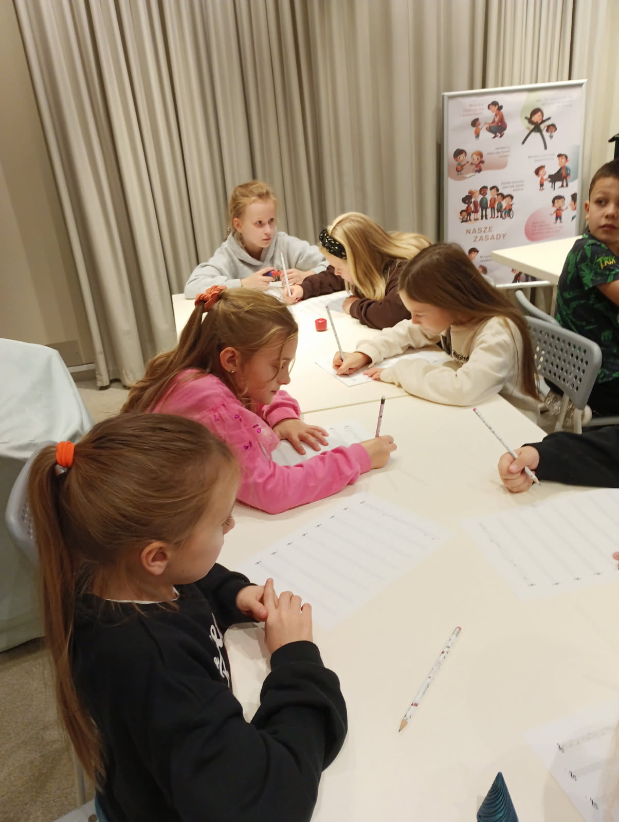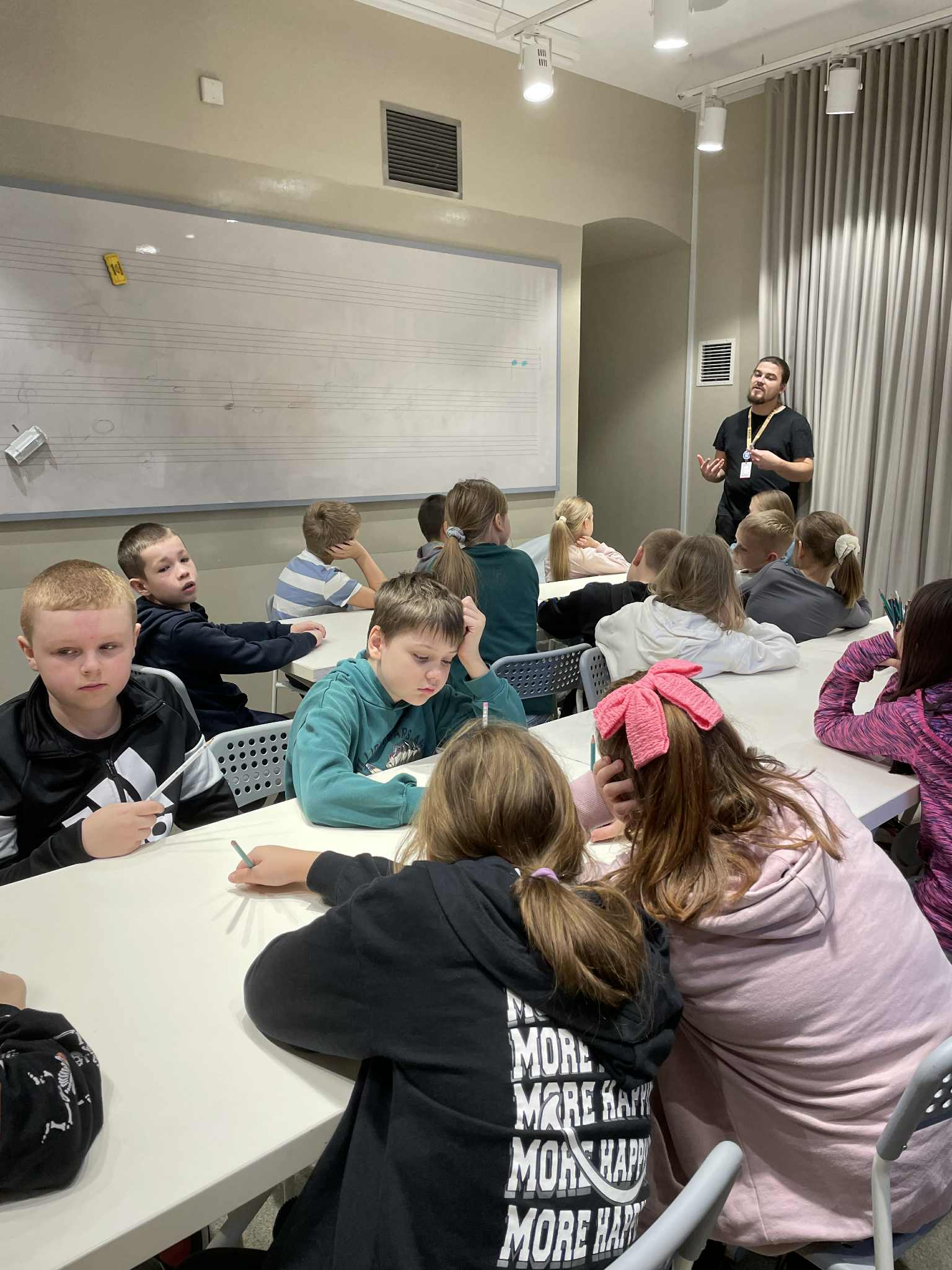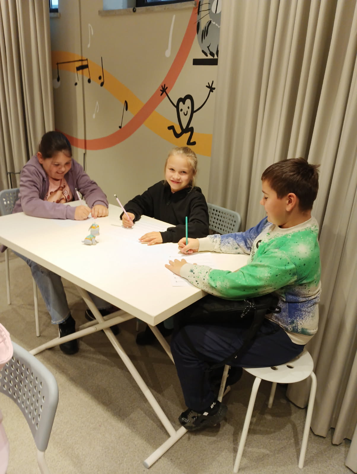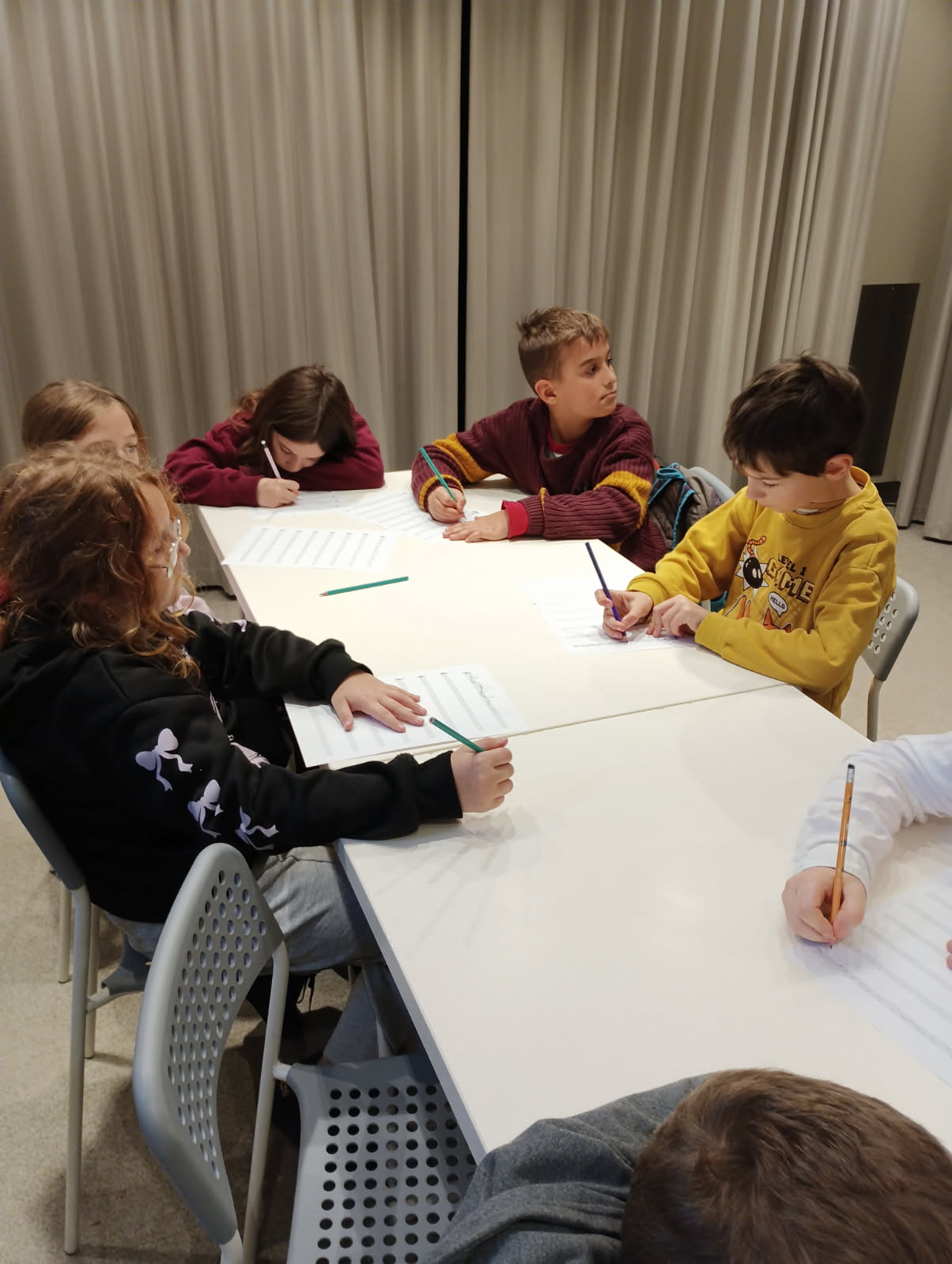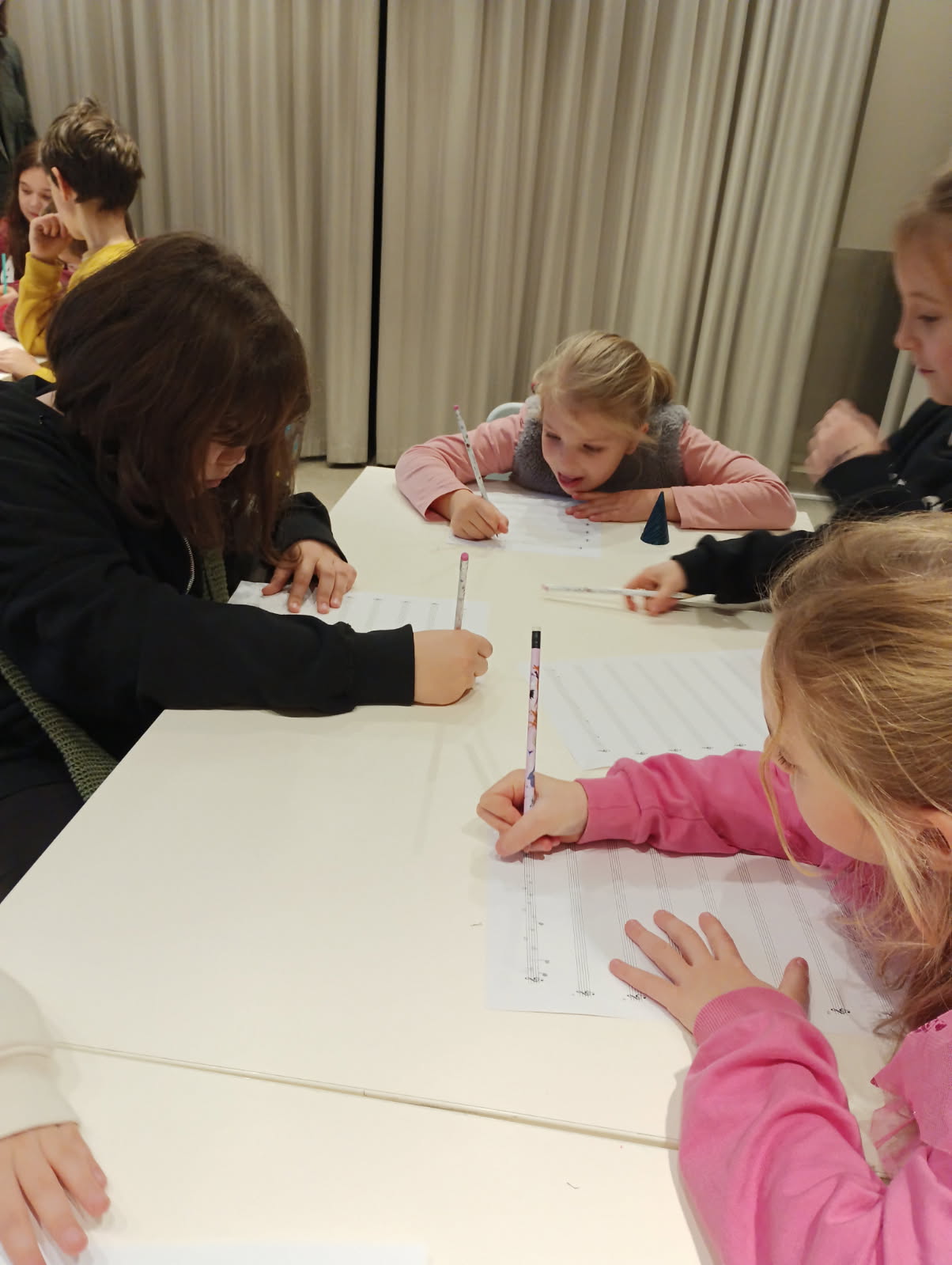 Podczas warsztatów każdy z nas napisał własną kompozycję muzyczną, która została odegrana na żywo przez panią prowadzącą.