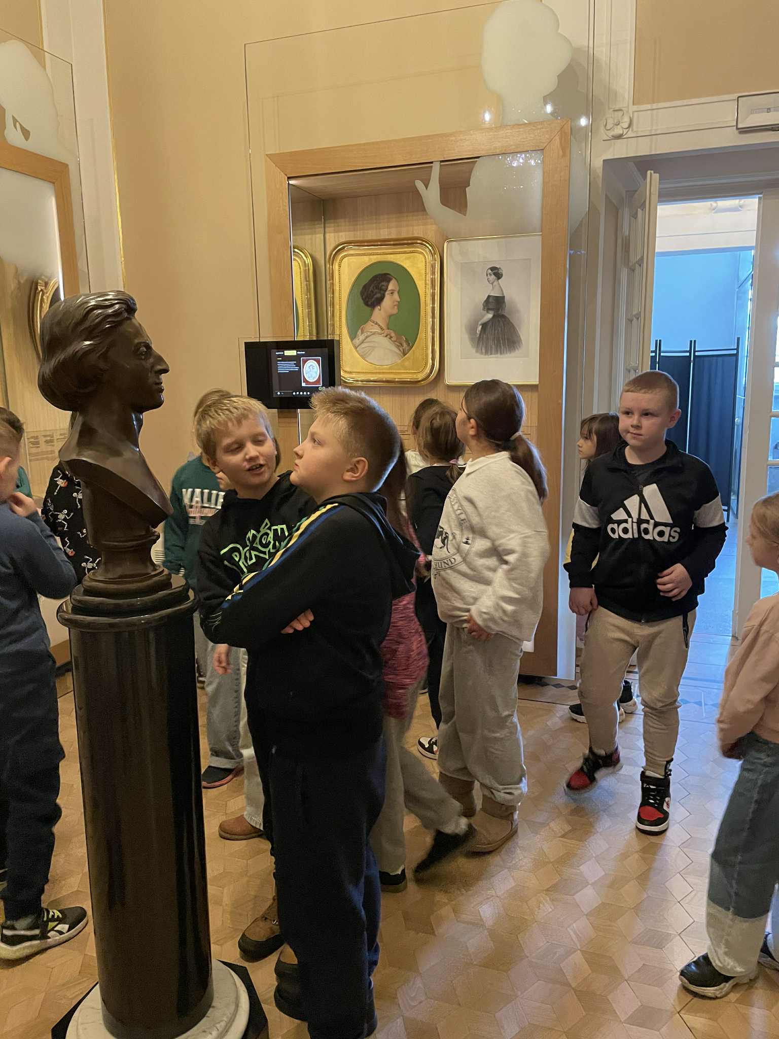 Dzięki bardzo zaangażowanym przewodnikom poznaliśmy dzieciństwo i rodzinę Fryderyka. Dowiedzieliśmy się, ze swój pierwszy utwór stworzył już jako siedmiolatek. Zobaczyliśmy podobizny najbliższych oraz jego nauczycieli.