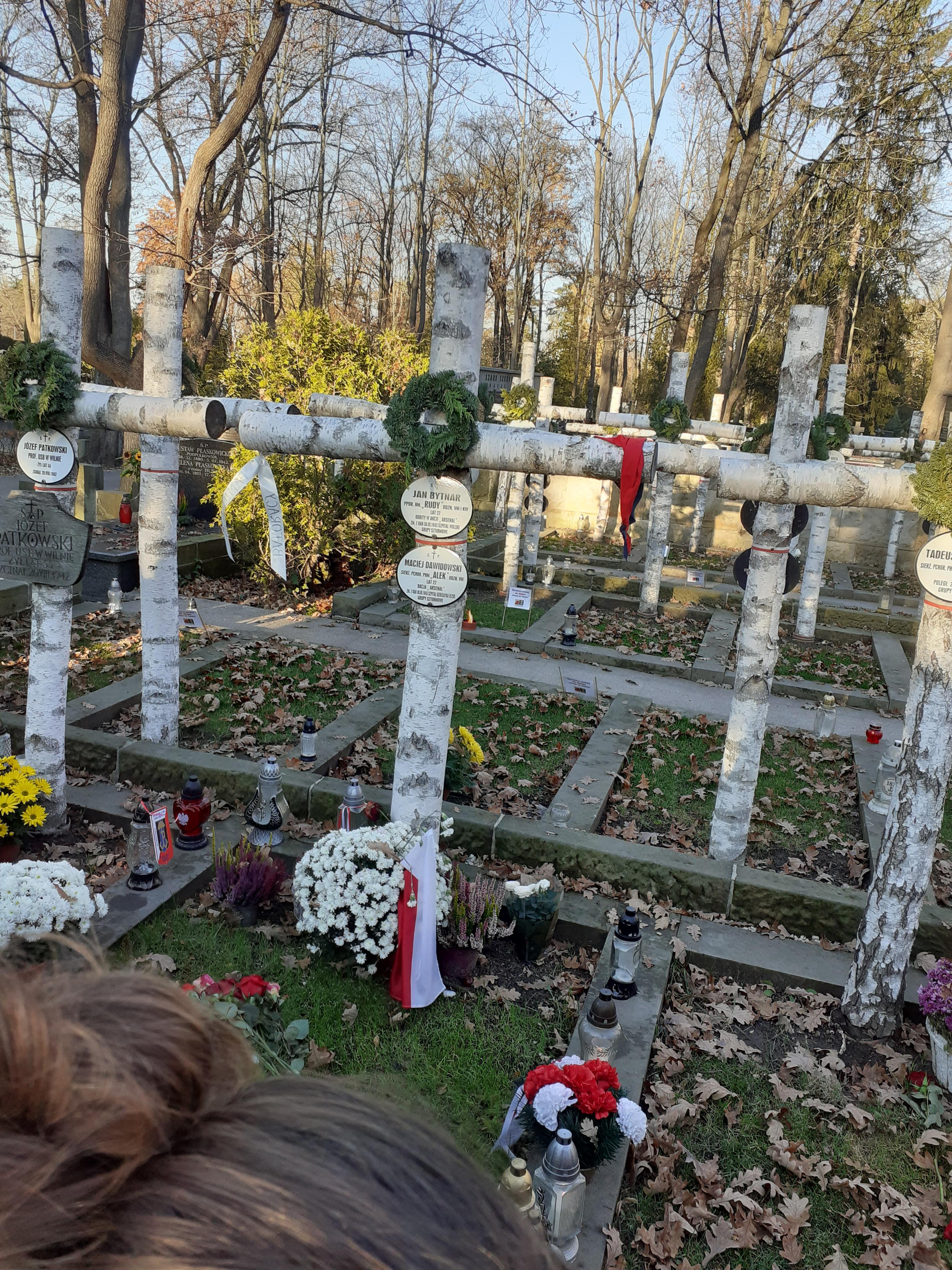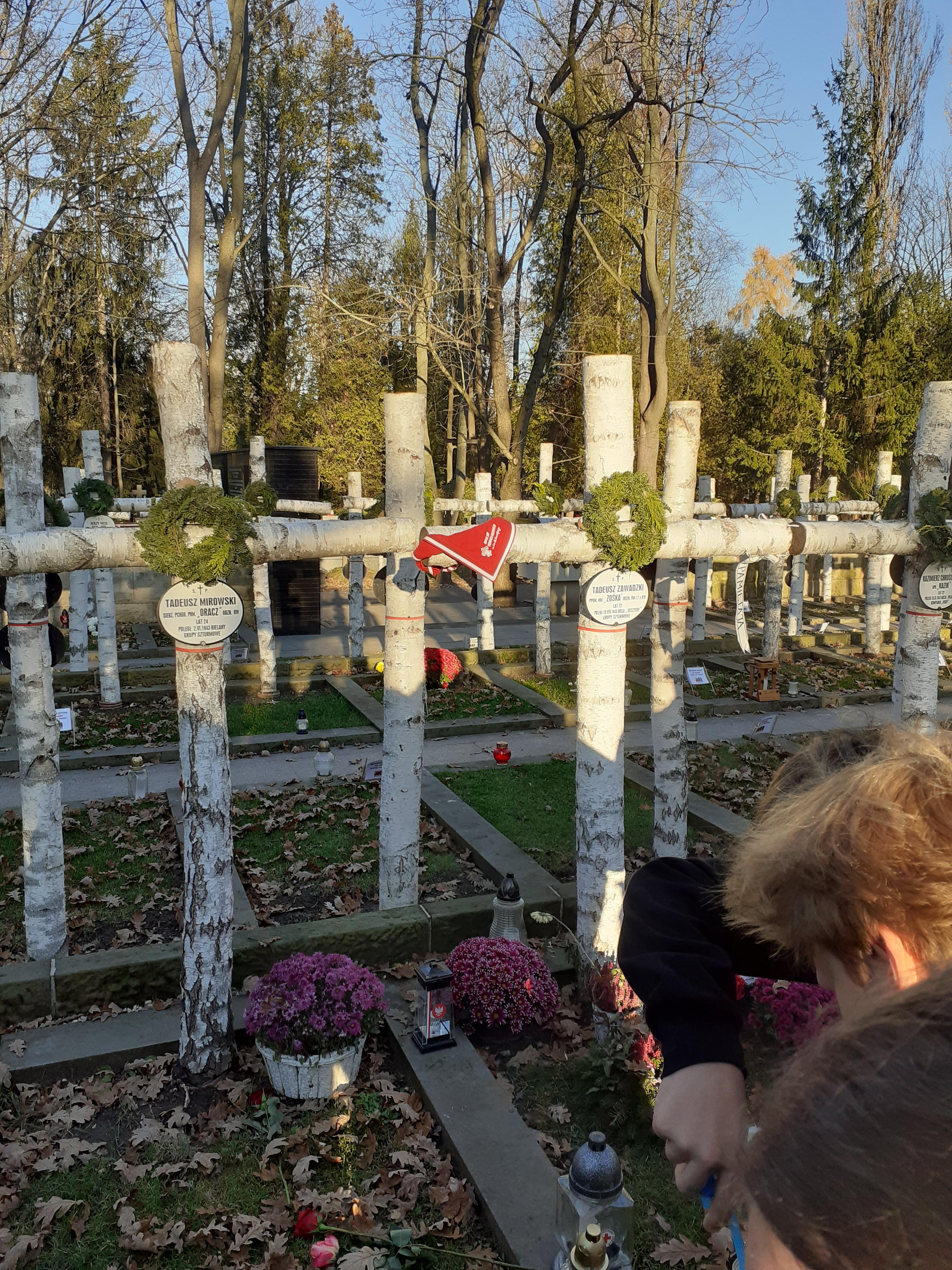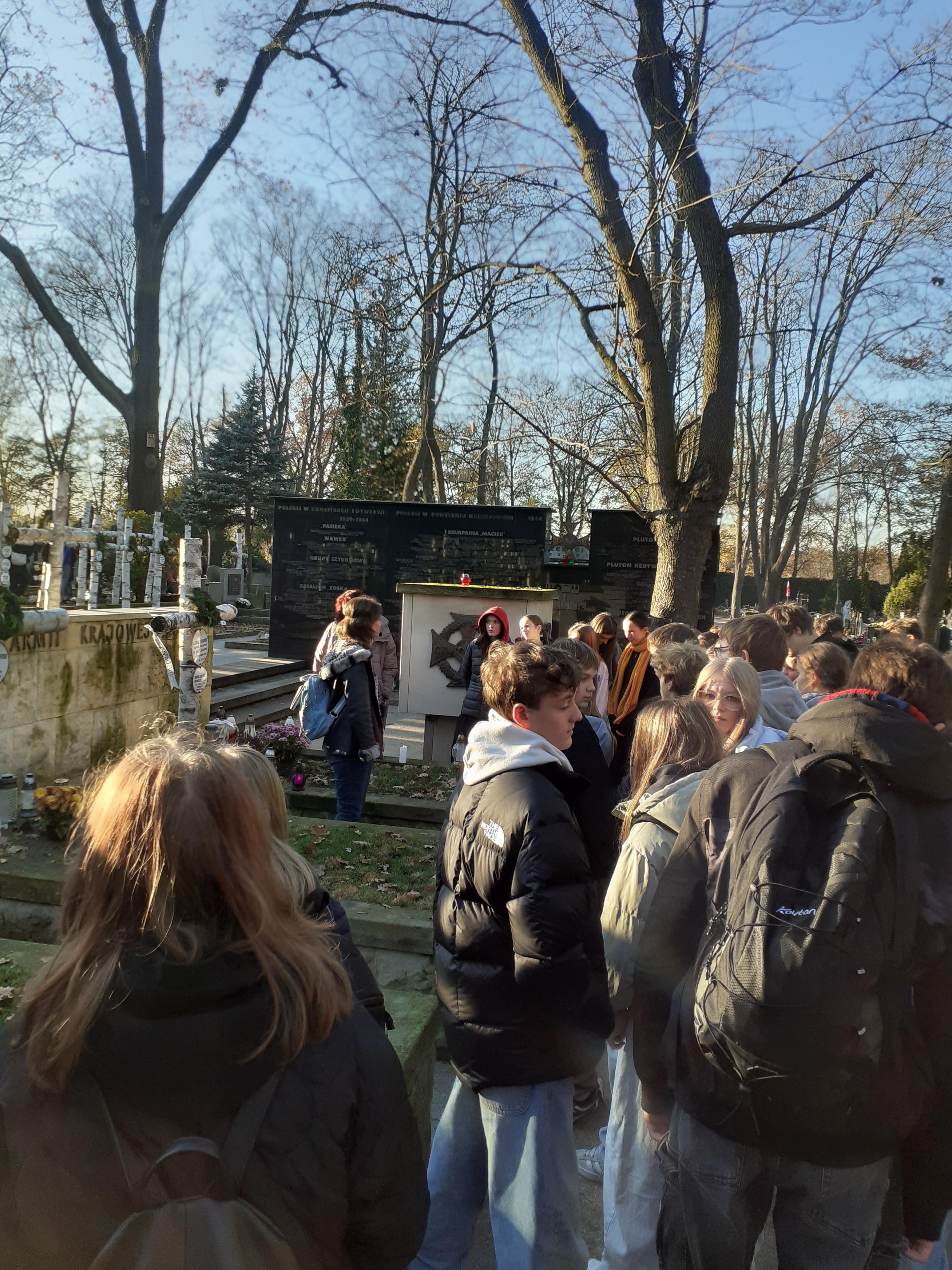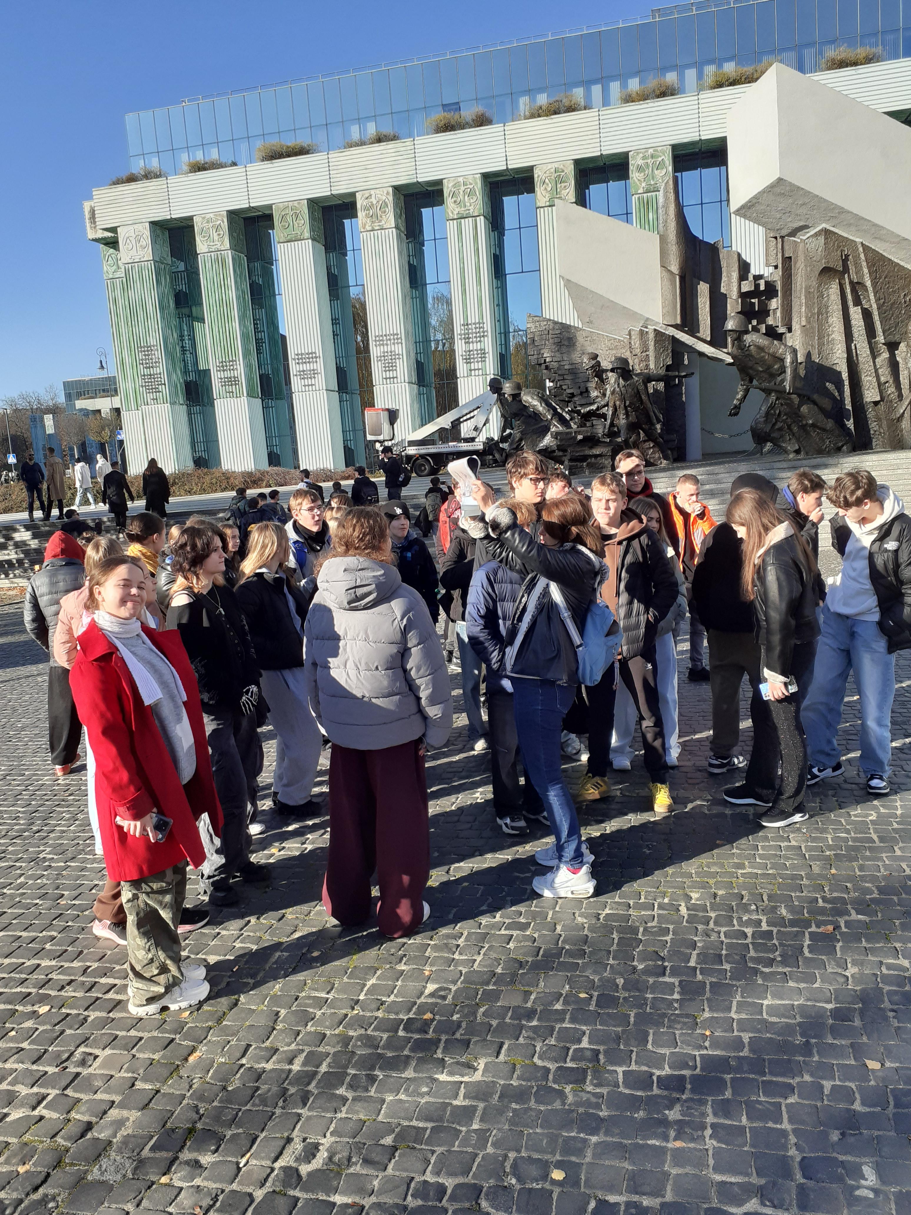 Dziś klasy 8b i 8c wybrały się na wycieczkę do Warszawy szlakiem bohaterów "Kamieni na szaniec". Przy wspaniałej, jesiennej pogodzie uczniowie odbyli spacer ulicami miasta, odwiedzając miejsca związane z książką Aleksandra Kamińskego. Mogli się przenieść w czasy Zośki, Rudego i Alka. Byli przy LO im. Stefana Batorego, na Alei Szucha, na Krakowskim Przedmieściu, pod Arsenalem, na Pawiaku, a na koniec na cmentarzu na Powązkach. Ten wyjazd przyniósł wiele emocji, a uczniowie mocno go przeżyli.