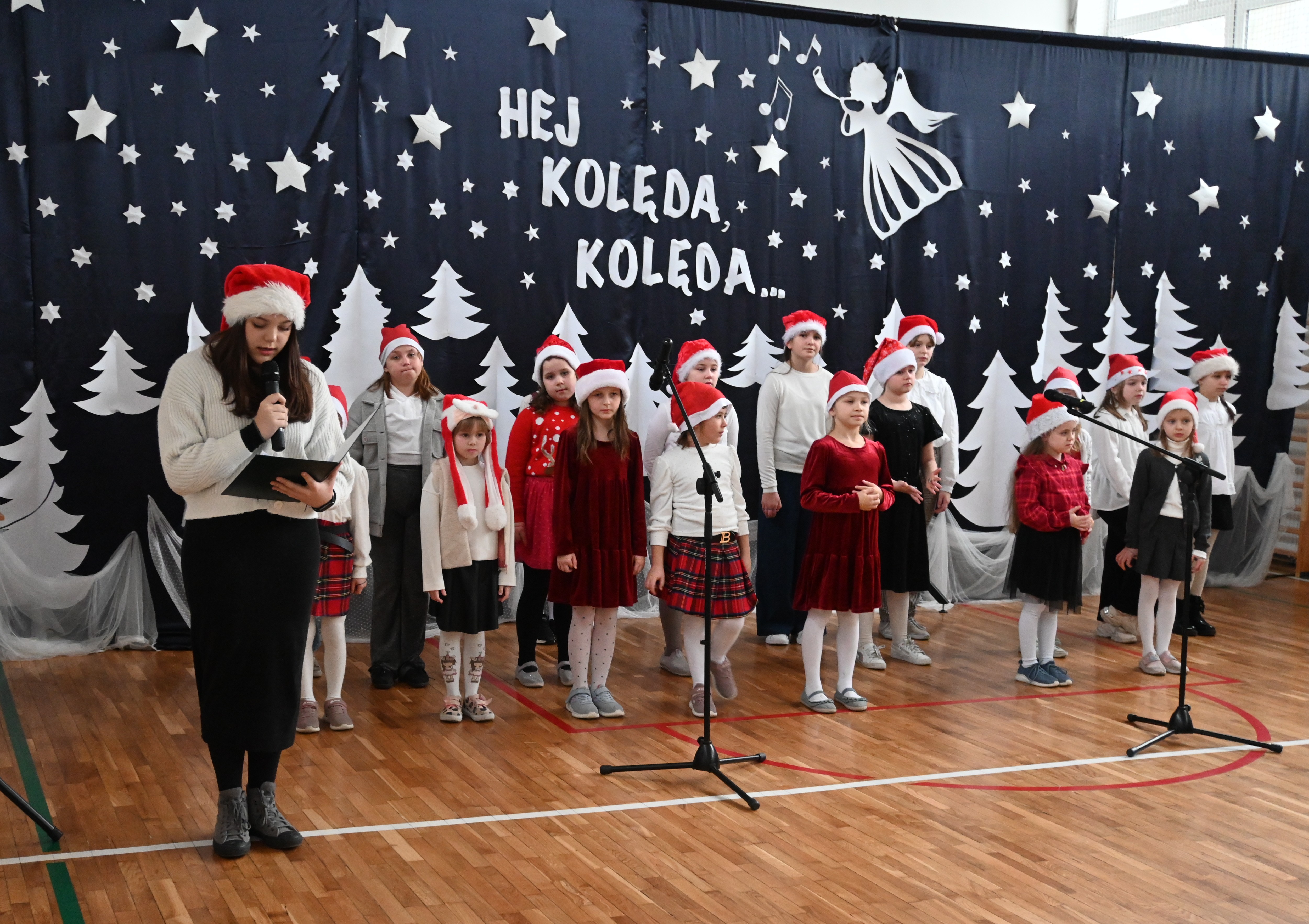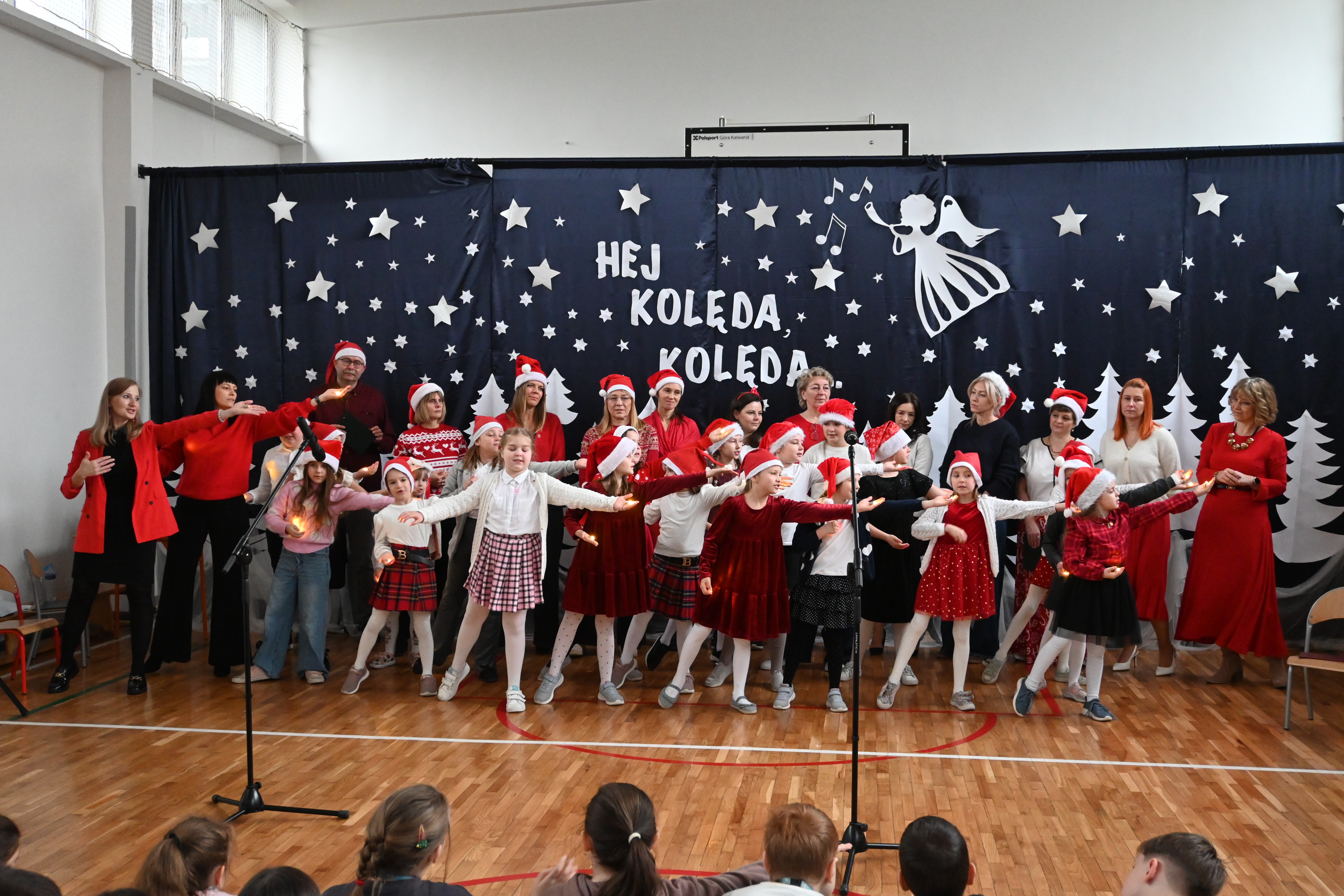 W naszej szkole odbył się koncert bożonarodzeniowy, który zgromadził uczniów, nauczycieli oraz rodziców. Podczas wydarzenia uczniowie zaprezentowali kolędy i pastorałki, wprowadzając wszystkich w świąteczny nastrój. Ważnym punktem programu była przemowa pani dyrektor, która podziękowała za zaangażowanie w przygotowanie uroczystości oraz złożyła całej społeczności szkolnej serdeczne życzenia bożonarodzeniowe. Wyjątkowym momentem koncertu było wykonanie piosenki „Jest taki dzień” w wykonaniu nauczycieli, które wzruszyło publiczność i zostało nagrodzone gromkimi brawami. Koncert przebiegł w ciepłej, radosnej atmosferze i na długo pozostanie w pamięci uczestników.