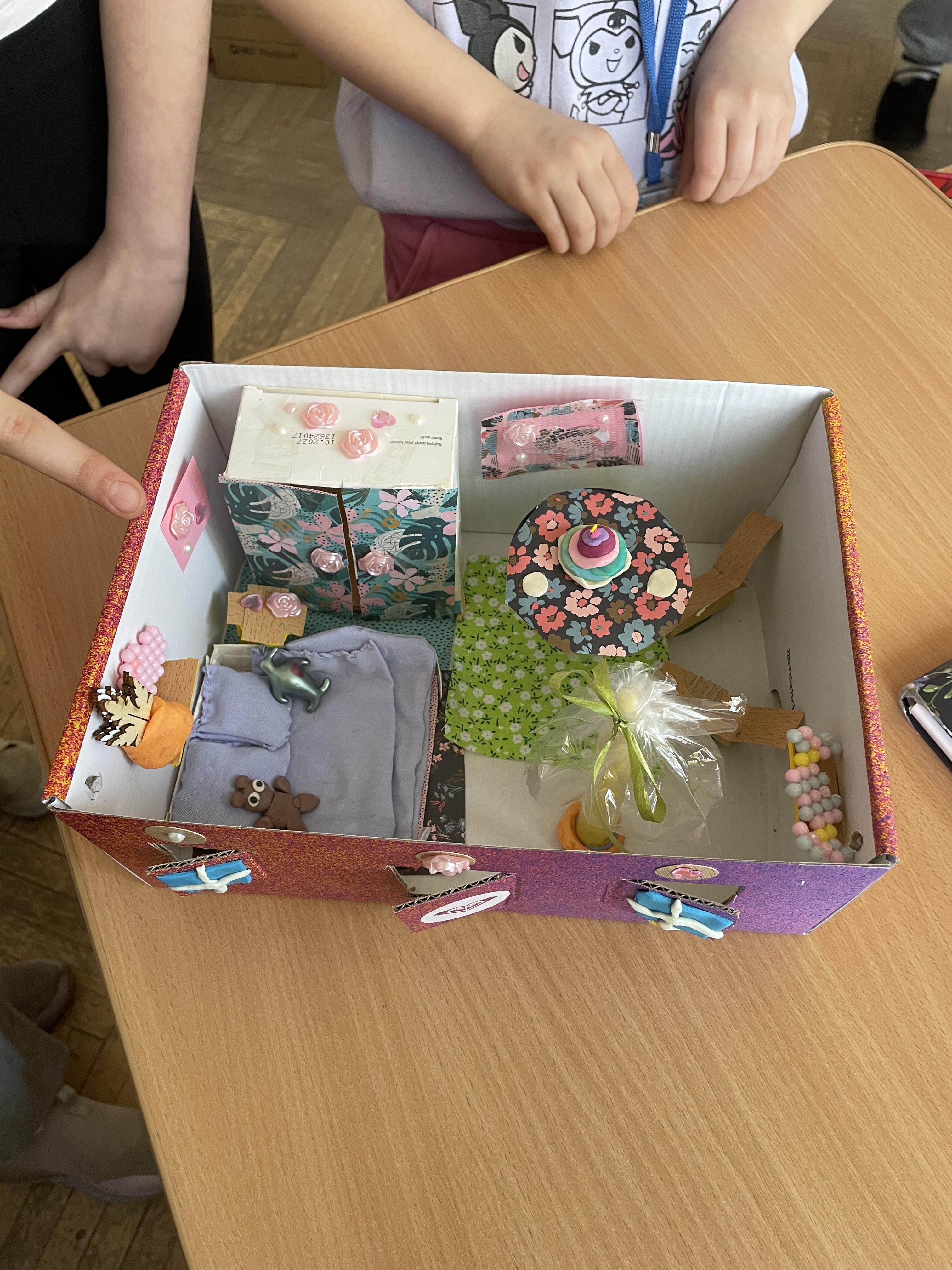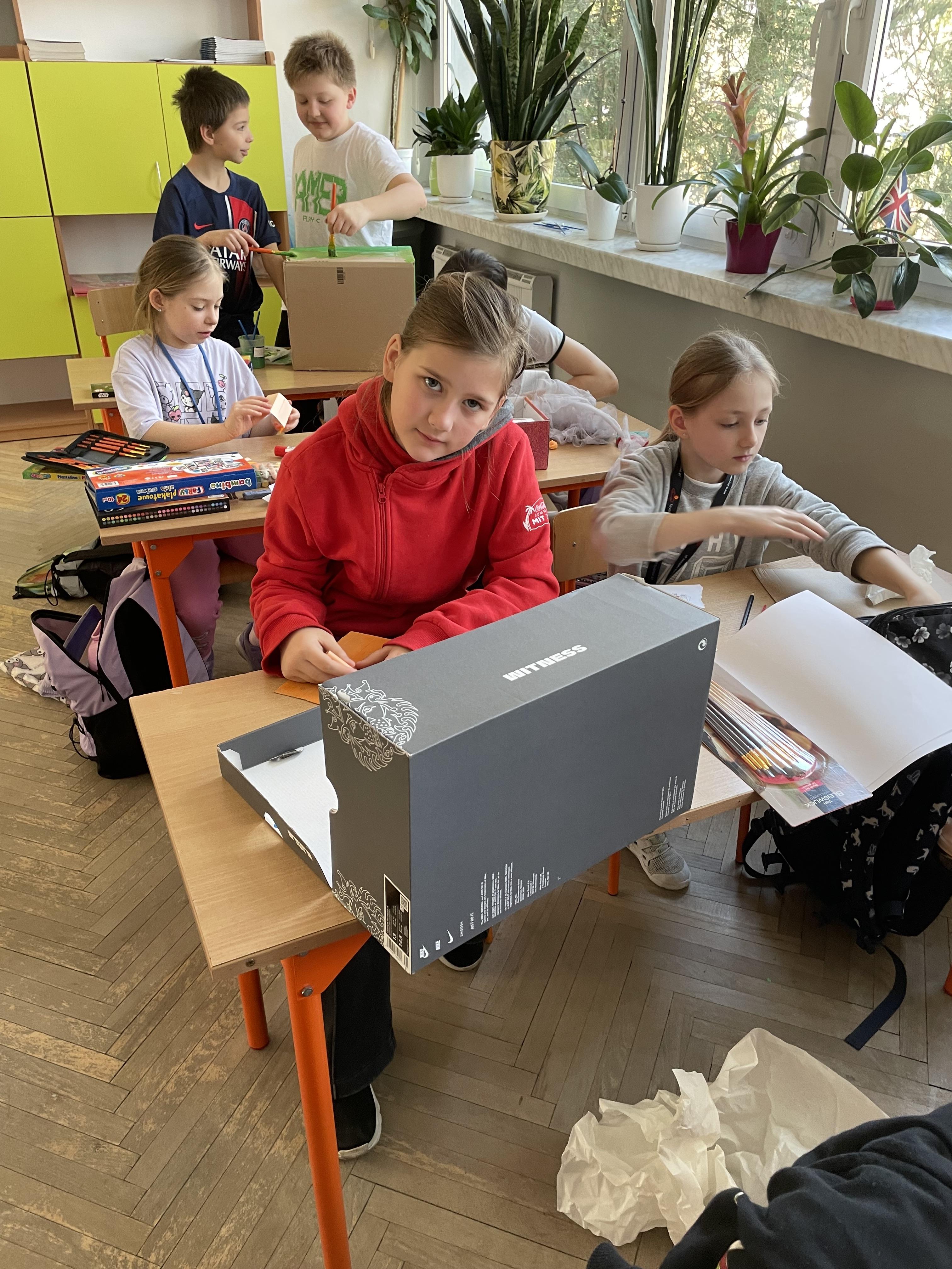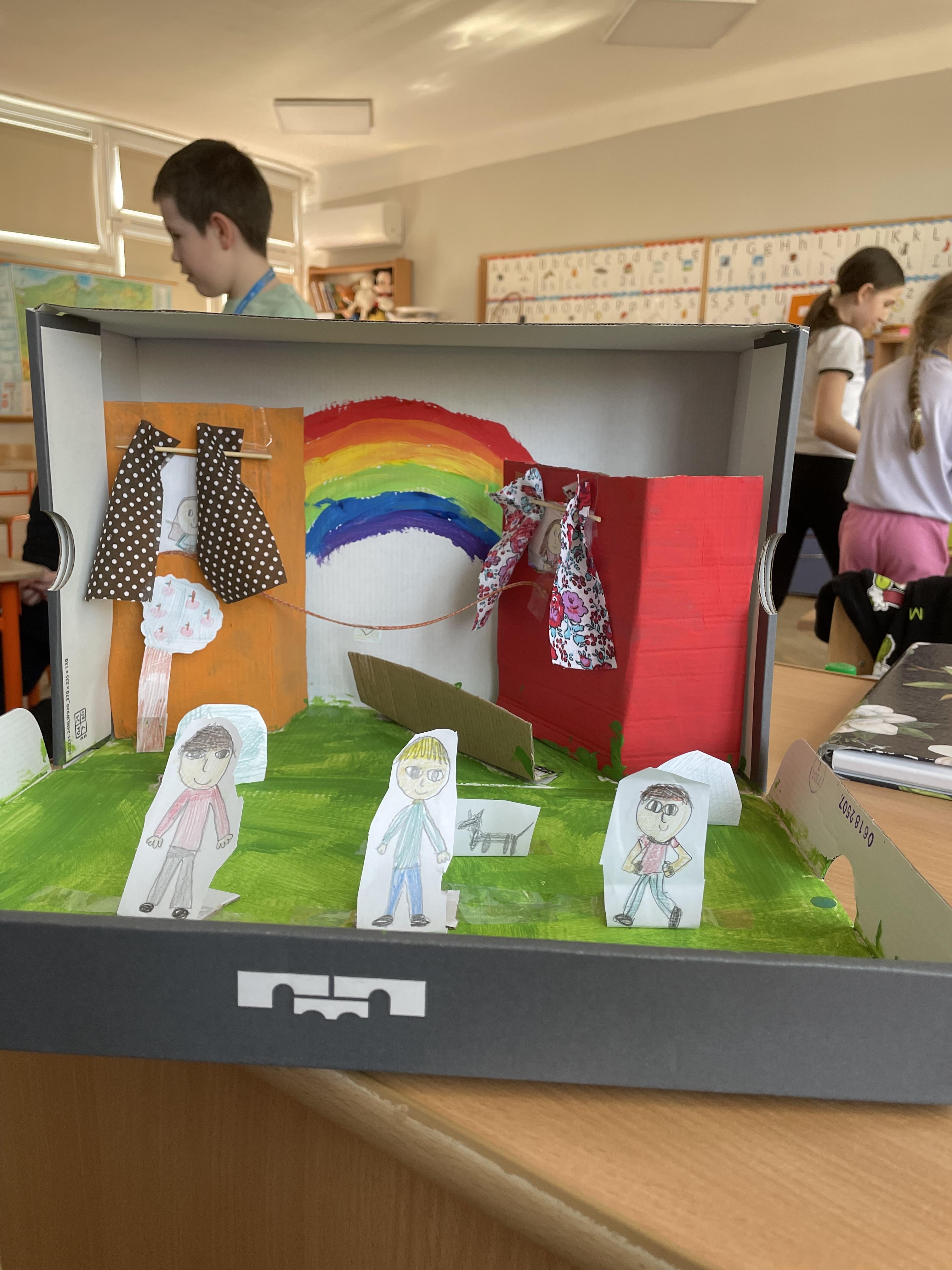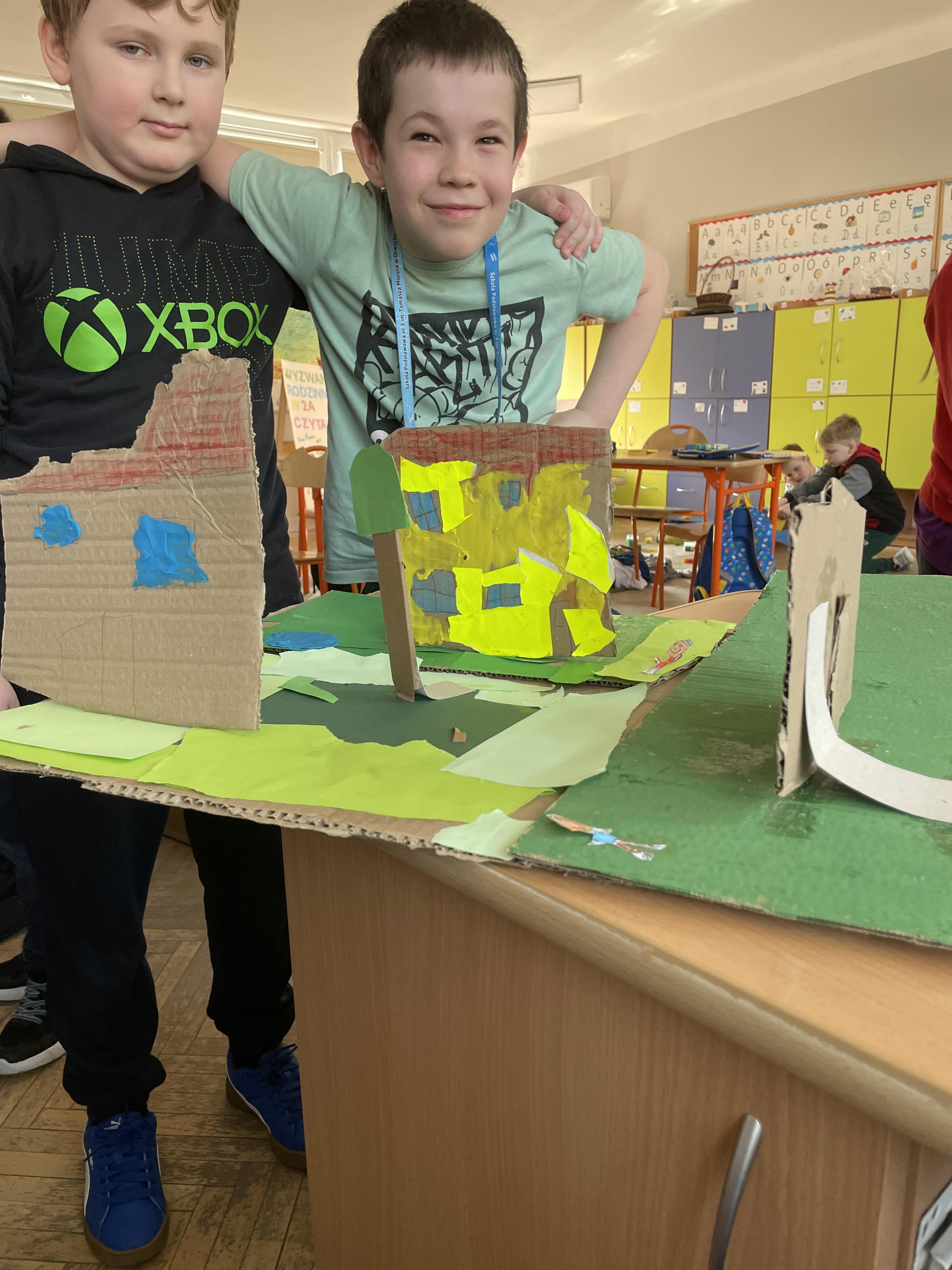 W ramach omawiania lektury pt. "Dzieci z Bullerbyn" nasza klasa zrealizowała projekt "Lektura w pudełku". Naszym zadaniem było zamknięcie świata bohaterów w małym kartonie. Zbudowaliśmy makiety trzech zagród: Północnej, Środkowej i Południowej. Dzięki tej pracy lepiej zapamiętaliśmy szczegóły z życia w szwedzkiej wiosce i świetnie się bawiliśmy. Teraz wiemy, że o książkach można opowiadać nie tylko słowami, ale także obrazami.