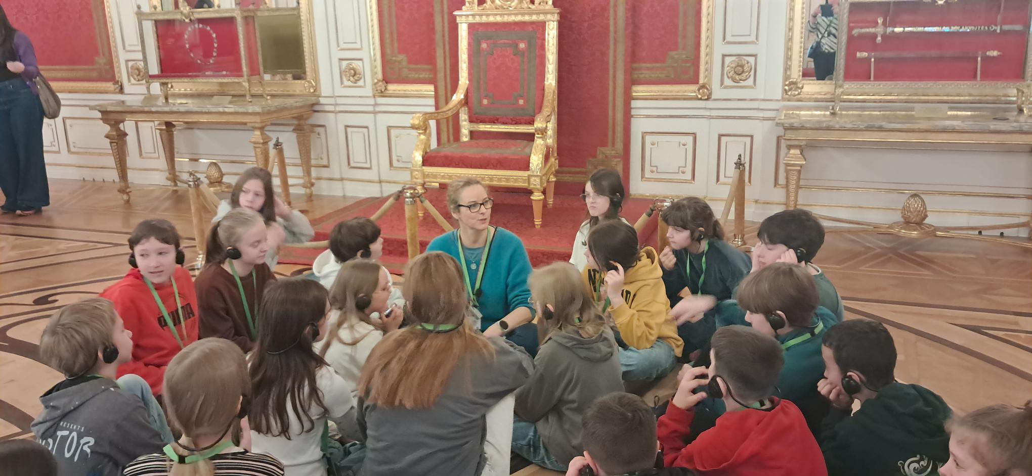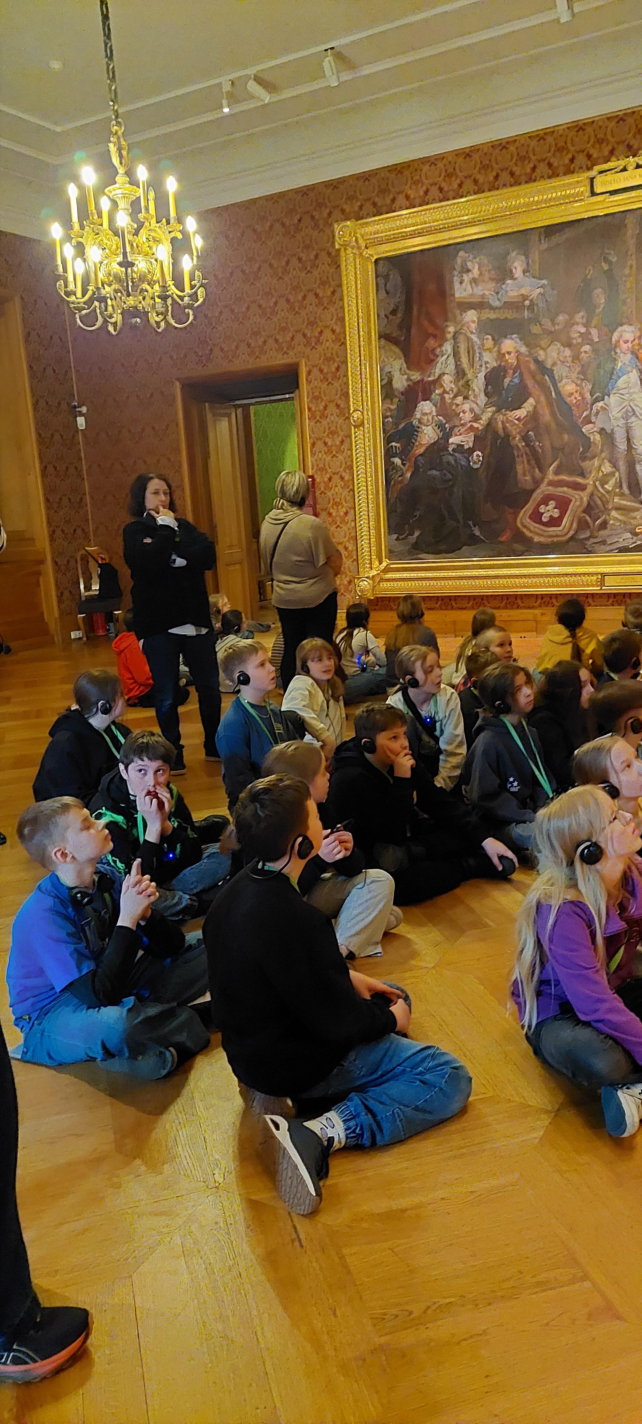Spacerując po bogato zdobionych komnatach, dzieci miały okazję przenieść się w czasie i poczuć atmosferę dawnej Polski. Ogromną zasługę miała w tym nasza pani przewodnik, która z niezwykłą pasją i w bardzo przystępny sposób przybliżyła nam sekrety dworskiego życia oraz najważniejsze wydarzenia z kart naszej historii. Jej opowieści sprawiły, że każda sala i obraz nabrały szczególnego znaczenia.