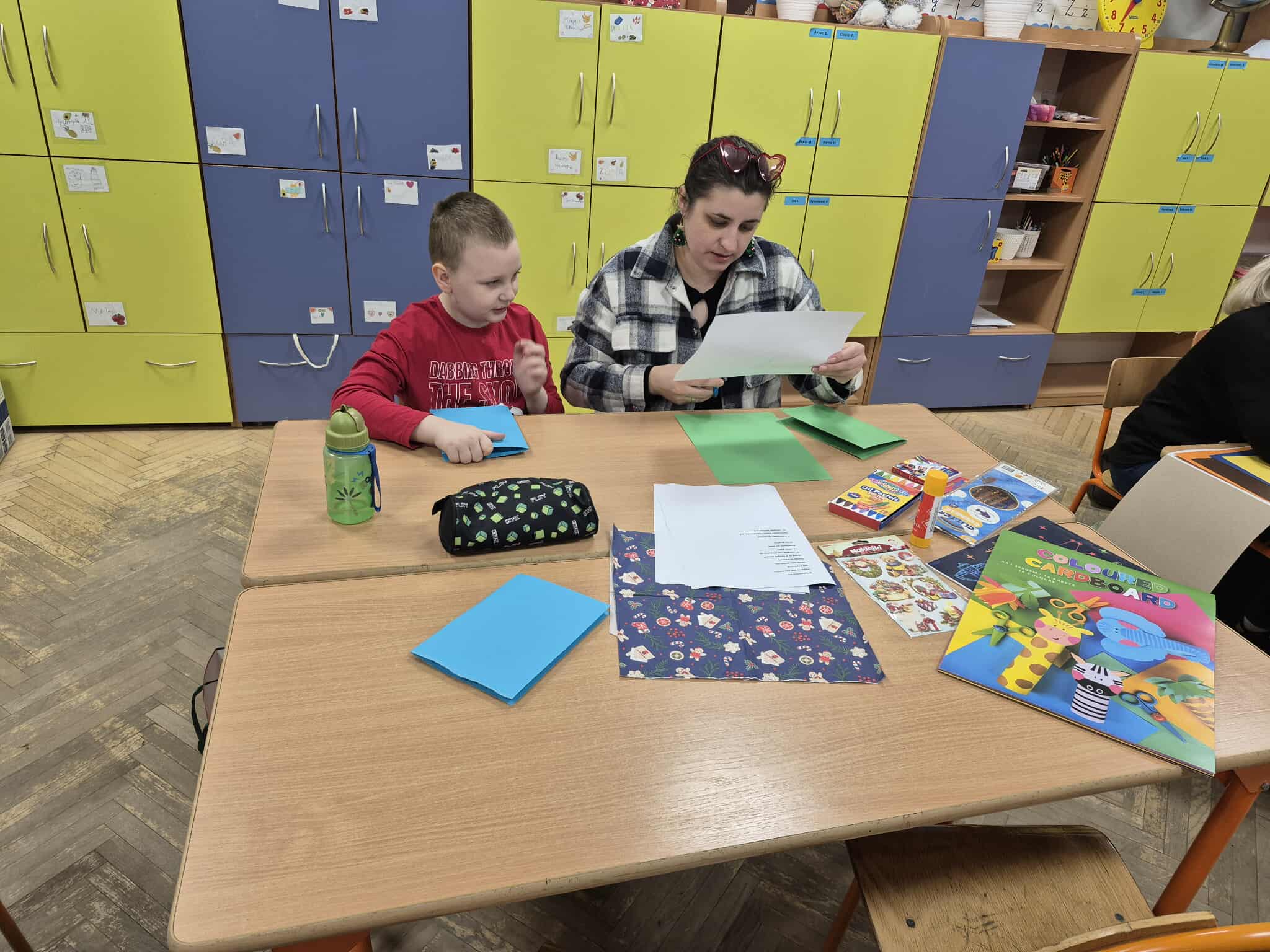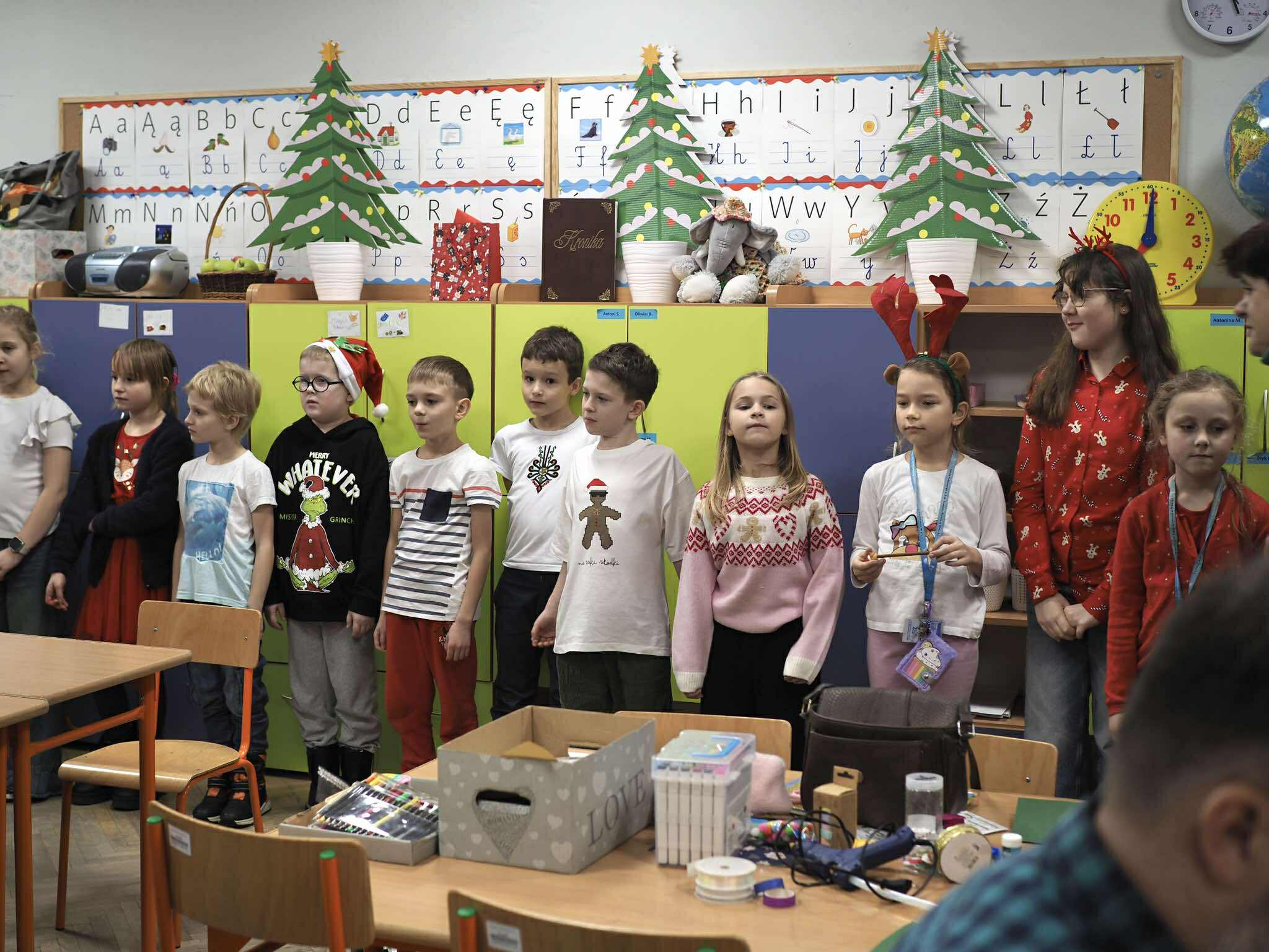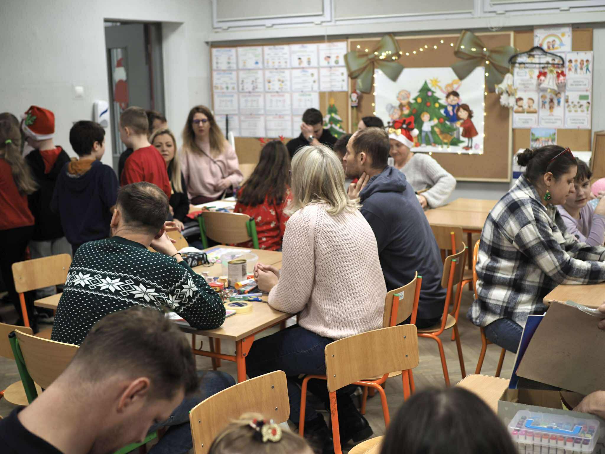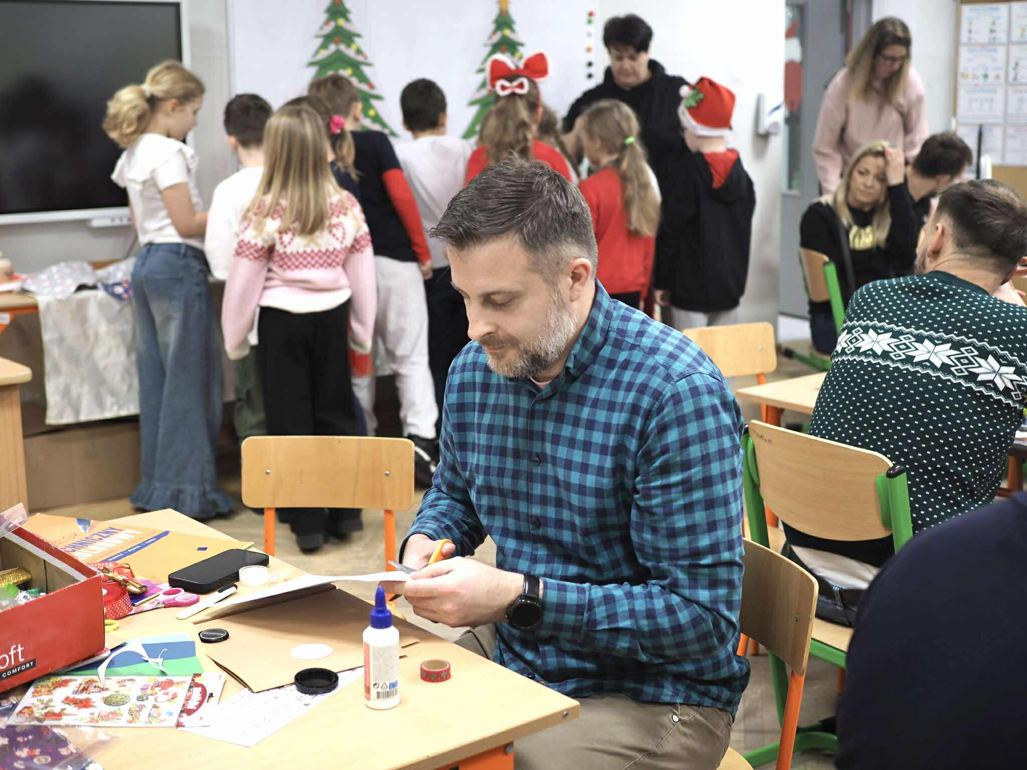 Za sprawą uczniów i ich rodziców w klasie 2a zapanowało świąteczne zamieszanie. W piątkowy wieczór spotkaliśmy się licznie na warsztatach świątecznych. Naszym celem była klasowa integracja, wspólne spędzenie czasu i przygotowanie kartek z życzeniami oraz upominków dla mieszkańców Domu Pomocy Społecznej „Wrzos” w Otwocku. Spotkanie rozpoczęło się od zaśpiewania pastorałki „W drodze do stajenki”, której uczniowie uczyli się już od dłuższego czasu. Nie zabrakło też słodkiego poczęstunku, który tym razem stanowił własnoręcznie przygotowany przez dzieci poprzedniego dnia na zajęciach kulinarnych, chlebek bananowy. Był to niezwykle ważny, wzruszający i pełen magii moment w życiu naszych drugoklasistów. Niech te chwile pozostaną z nami na długo. Z całego serca dziękujemy wszystkim rodzicom uczniów klasy 2a za zaangażowanie w przygotowanie warsztatów i tak liczne przybycie na to wyjątkowe spotkanie . Wasza obecność i pomoc jest nieoceniona.
