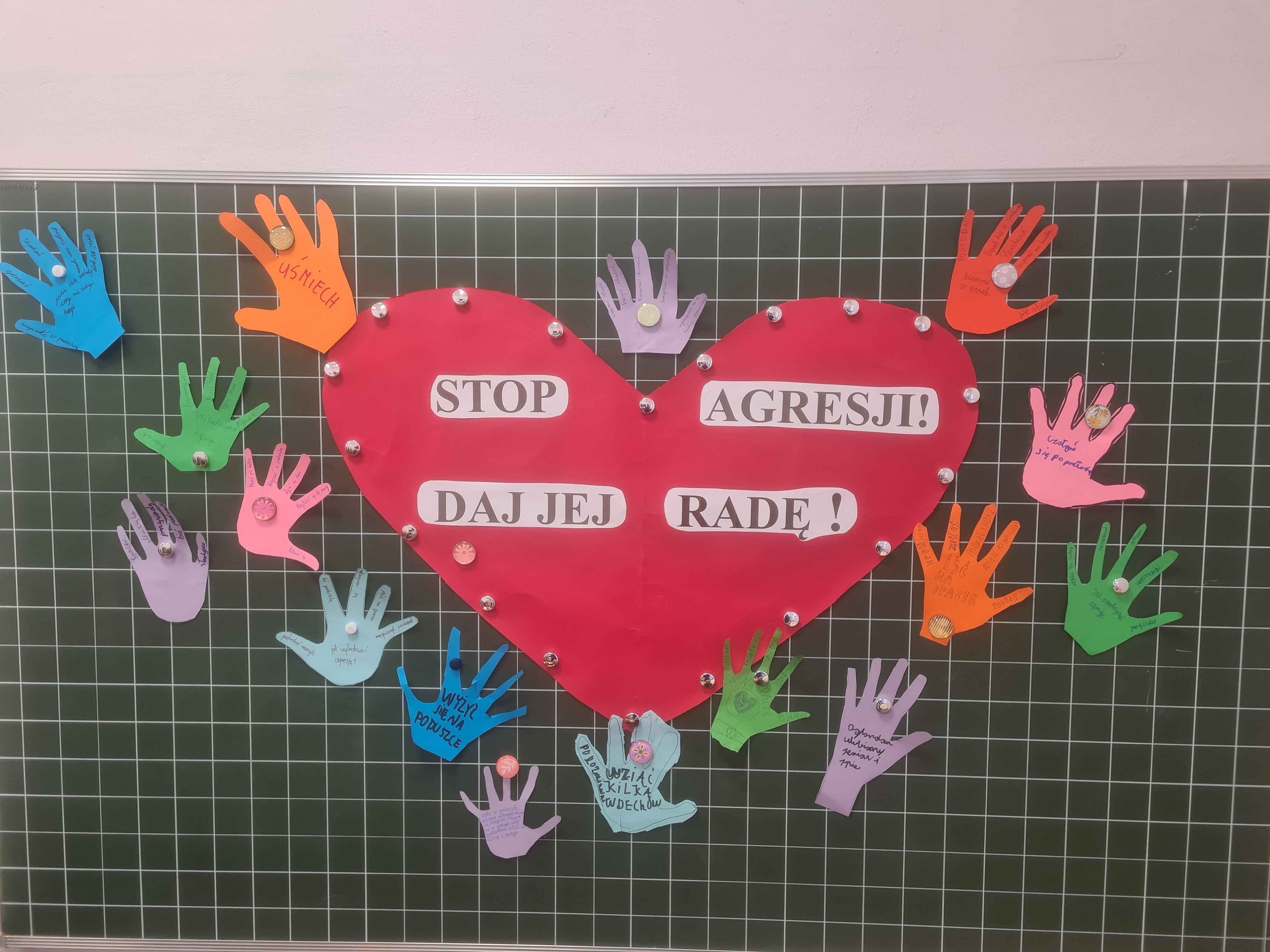 Z okazji Międzynarodowego Dnia Bez Przemocy kl. 5c na godzinie wychowawczej omawiali jak sobie radzić ze złością i jej przeciwdziałać. Swoje pomysły zatrzymania agresji zapisali zapisali na tablicy. W czasie zajęć omówiono również rodzaje przemocy, konsekwencje dokuczania, hejt w sieci, konstruktywne radzenie sobie z problemami oraz gdzie szukać pomocy w trudnych sytuacjach.