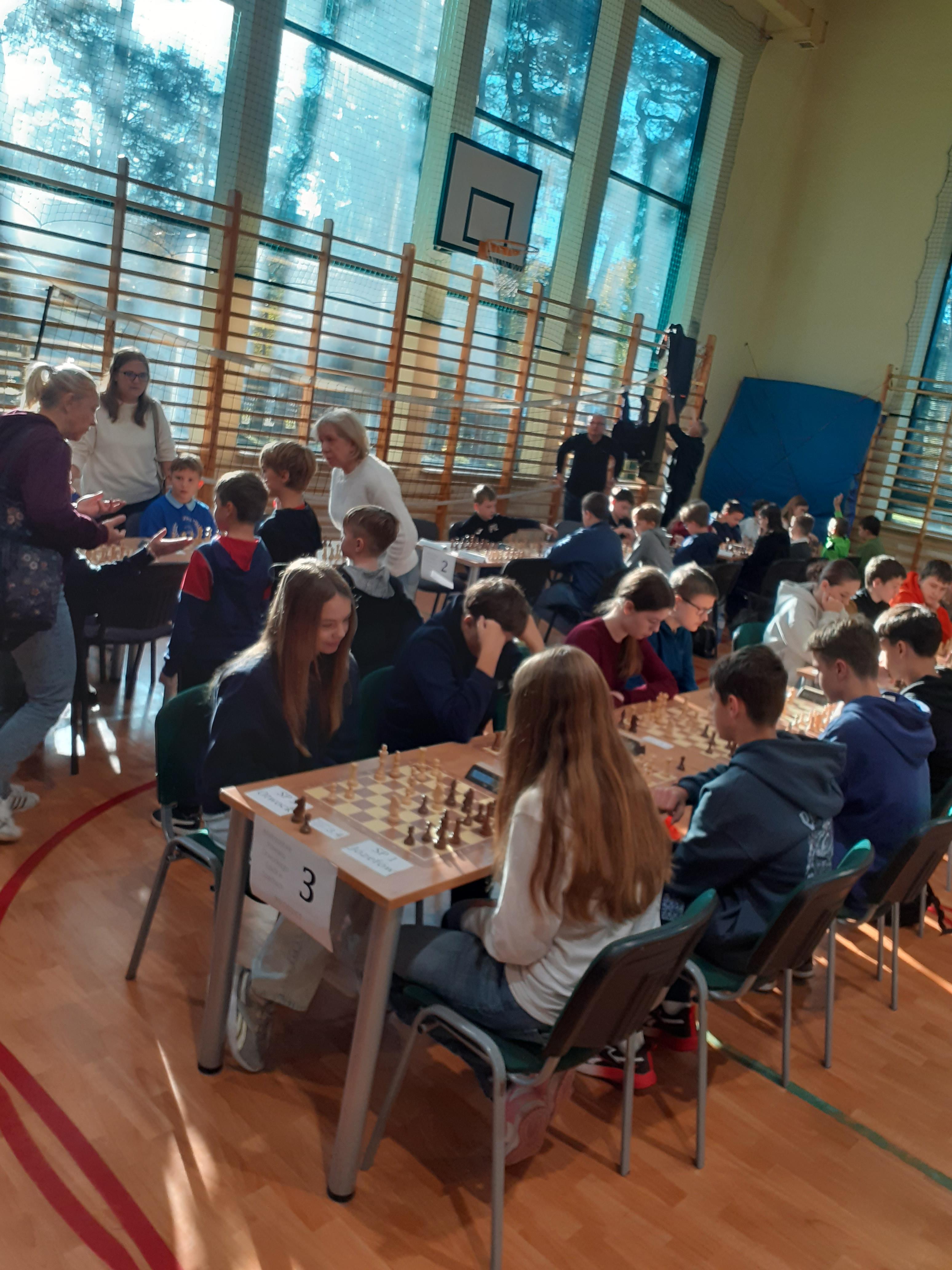 Nasi uczniowie wzięli udział w Mistrzostwach Szkół Powiatu Otwockiego w Szachach Drużynowych. W silnie obsadzonych zawodach startowało wiele szkół z naszego powiatu. Trójka wystawiła dwie drużyny. Jedną w kategorii młodszej, a drugą w starszej. Nasza młodsza drużyna wywalczyła puchar i medale za zajęcie II miejsca. Starszej drużynie poszło nieco gorzej. Walczyli dzielnie, ale do podium trochę zabrakło. Serdecznie gratulujemy osiągnięć i wspaniałej postawy!