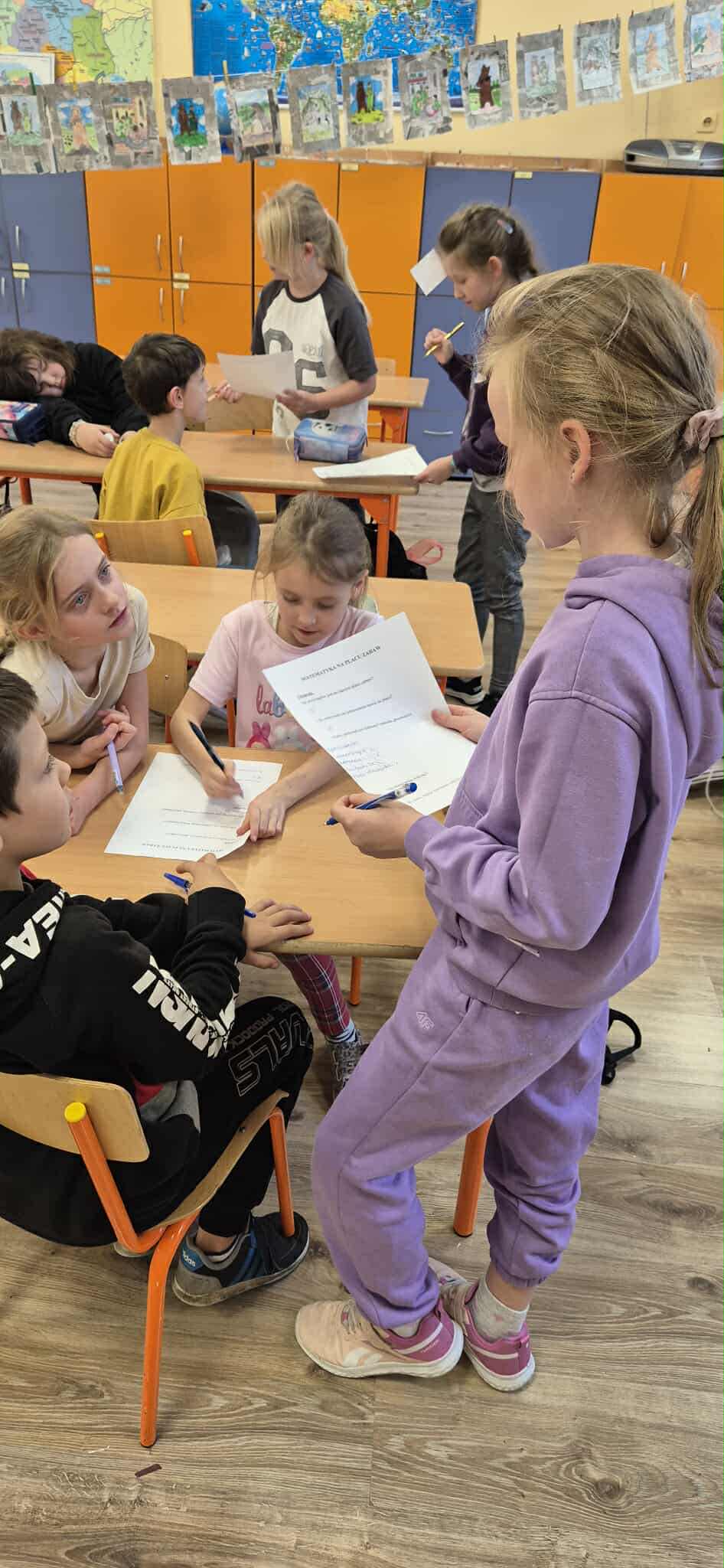 Za nami pierwszy z ośmiu modułów – „Matematyka na placu zabaw”. Uczniowie mieli okazję przekonać się, że matematyka towarzyszy im na co dzień, nawet podczas zabawy. Odwiedzając plac zabaw, poszukiwali przykładów liczb, kształtów, rytmów, wielkości i miar czasu w otaczającej przestrzeni. Zajęcia zakończyły się przygotowaniem makiety wymarzonego placu zabaw.