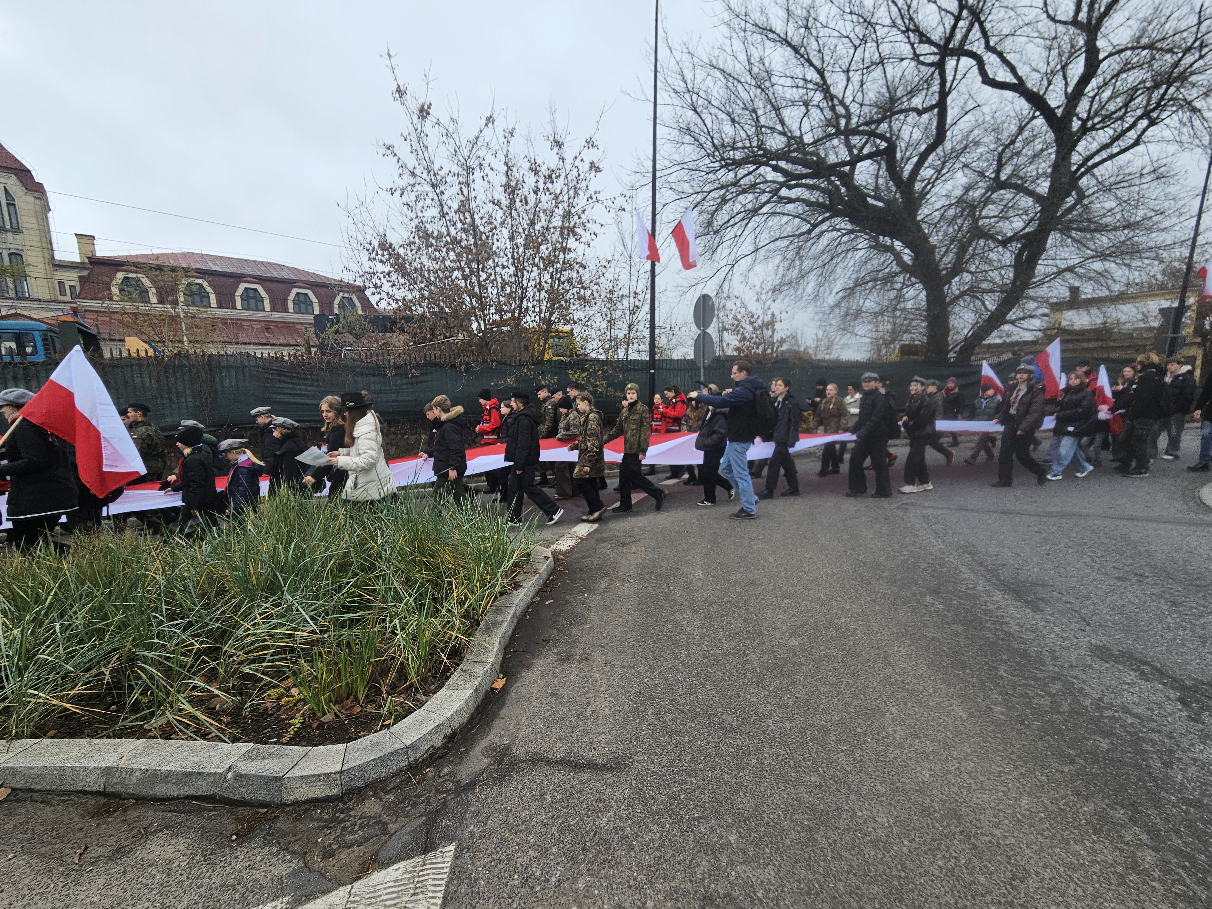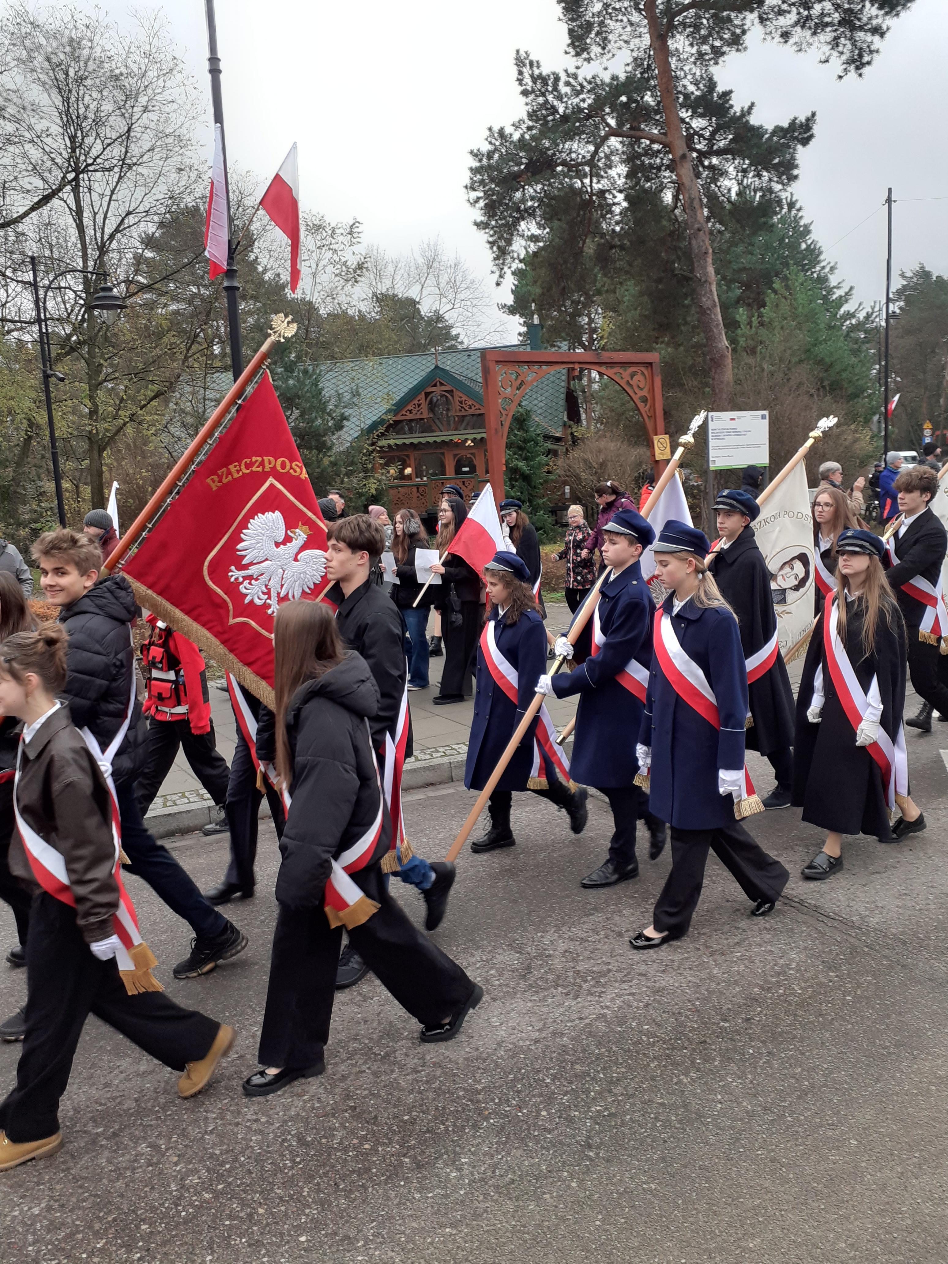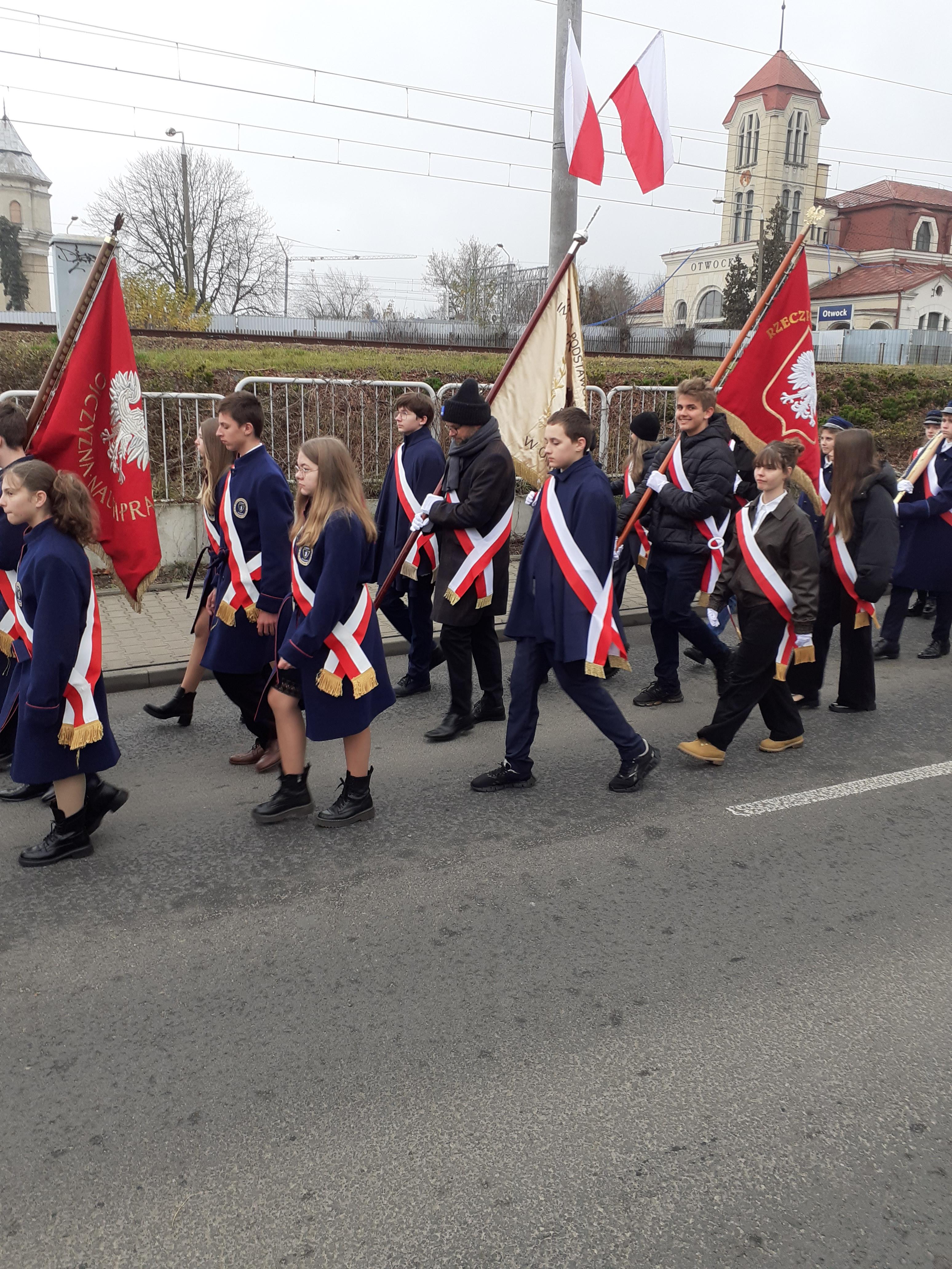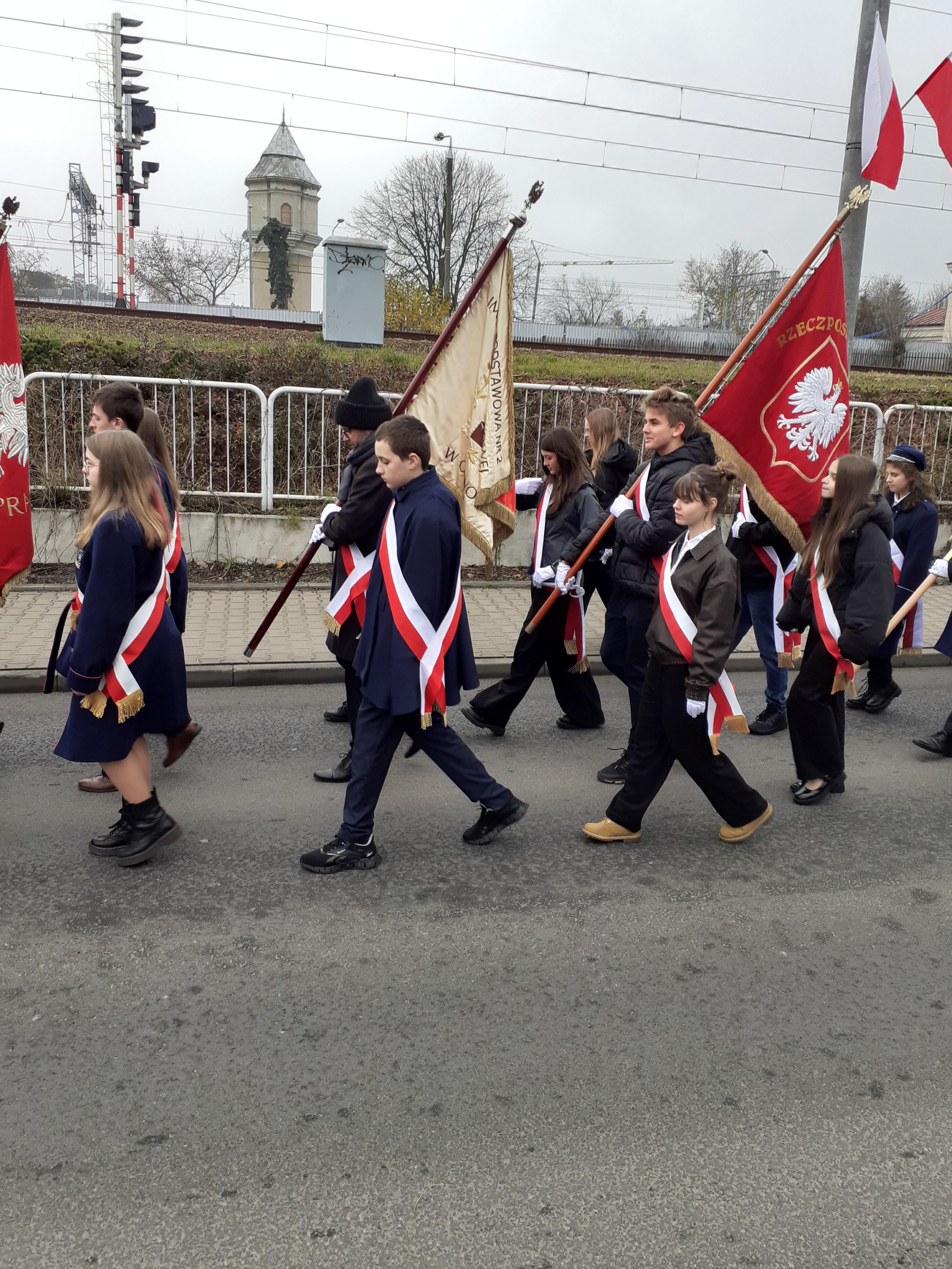 W dniu 11 listopada delegacja naszej szkoły wzięła udział w miejskich obchodach Narodowego Święta Niepodległości. Uroczystości rozpoczęły się mszą świętą w intencji Ojczyzny w kościele Św. Wincentego à Paulo, po której uczestnicy przemaszerowali pod Pomnik Marszałka Józefa Piłsudskiego. Szkołę reprezentowali: poczet sztandarowy, nauczyciele, dyrekcja oraz uczniowie i rodzice. Wspólne odśpiewanie hymnu państwowego i pieśni patriotycznych stworzyło podniosłą atmosferę i było piękną lekcją patriotyzmu.