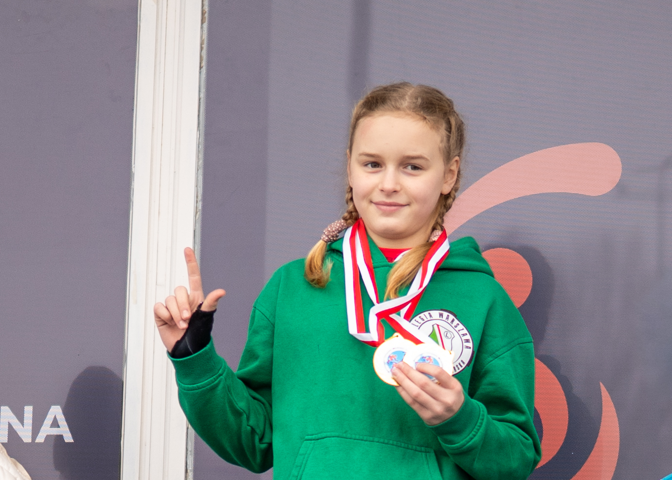 Sezon łyżwiarski w pełni i nasza Aleksandra Smolak uczennica kl.4b, zaliczyła swoje pierwsze w życiu starty na łyżwach długich (panczenach). Tak..tak..takich jak jeżdżą olimpijczycy a do tej pory głównie specjalizowała we wrotkarstwie szybkim (rolki długie). W Legia - sekcja łyżwiarska, nie trenują rolek przez cały rok, ze zmianą sezonu następuje zmiana sprzętu. No i 6-7.12 (w miniony weekend) na torze Stegny odbyła pierwsza w roku 2025/2026 Warszawska Olimpiada Młodzieży w jeździe szybkiej na łyżwach. Zawody odbyły na dystansach 100 i 300m, każdego dnia po dwa biegi. Tym samym Ola reprezentując świetną formę, w dwa dni zdobyła 4x złoto. Jak na początek wynik satysfakcjonujący, ale Ola nie zamierza osiadać na laurach, i ciężko pracuje, szykując się do Ogólnopolskich zawodów dzieci (które naliczą kilka edycji). Dlatego bardzo mocno trzymamy kciuki za dalszy rozwój w łyżwiarstwie, kolejne medale i miejsca na podium!