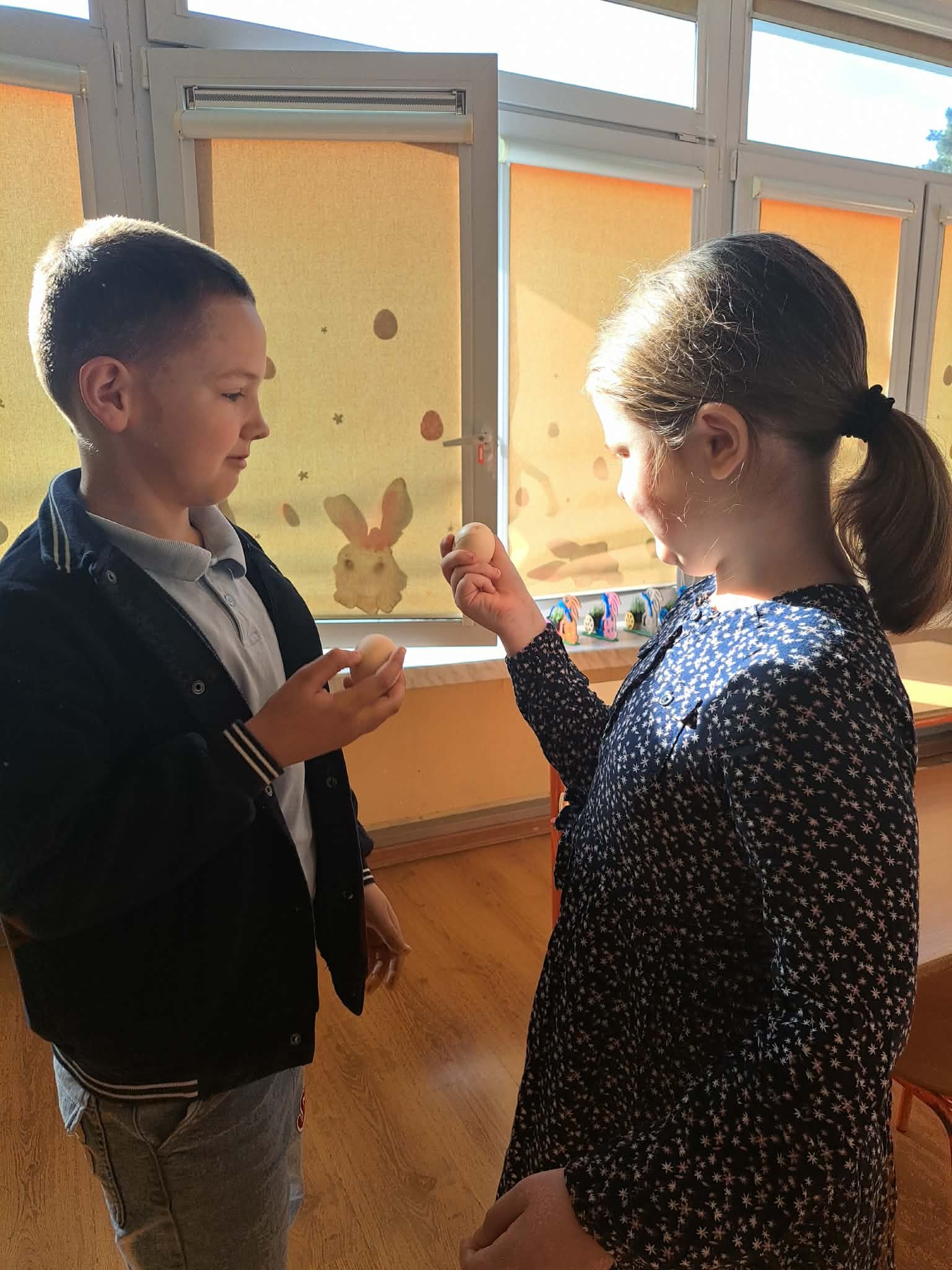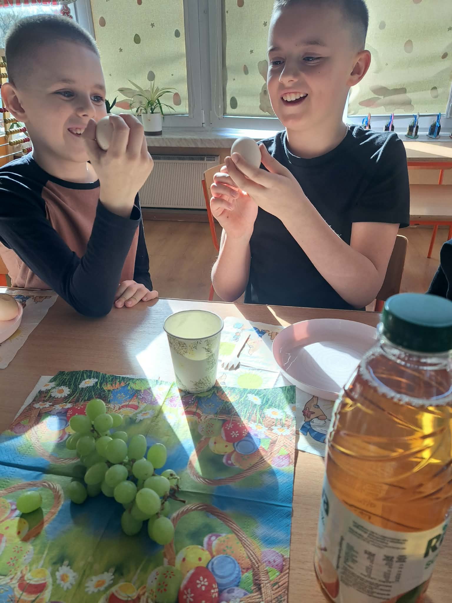 Dziś u drugoklasistów panowała świąteczna atmosfera. Odbyło się tradycyjne śniadanko, podczas którego nie zabrakło smacznych potraw. Najwięcej emocji wzbudziła bitwa na jajka, która dostarczyła uczniom wiele radości i zabawy.