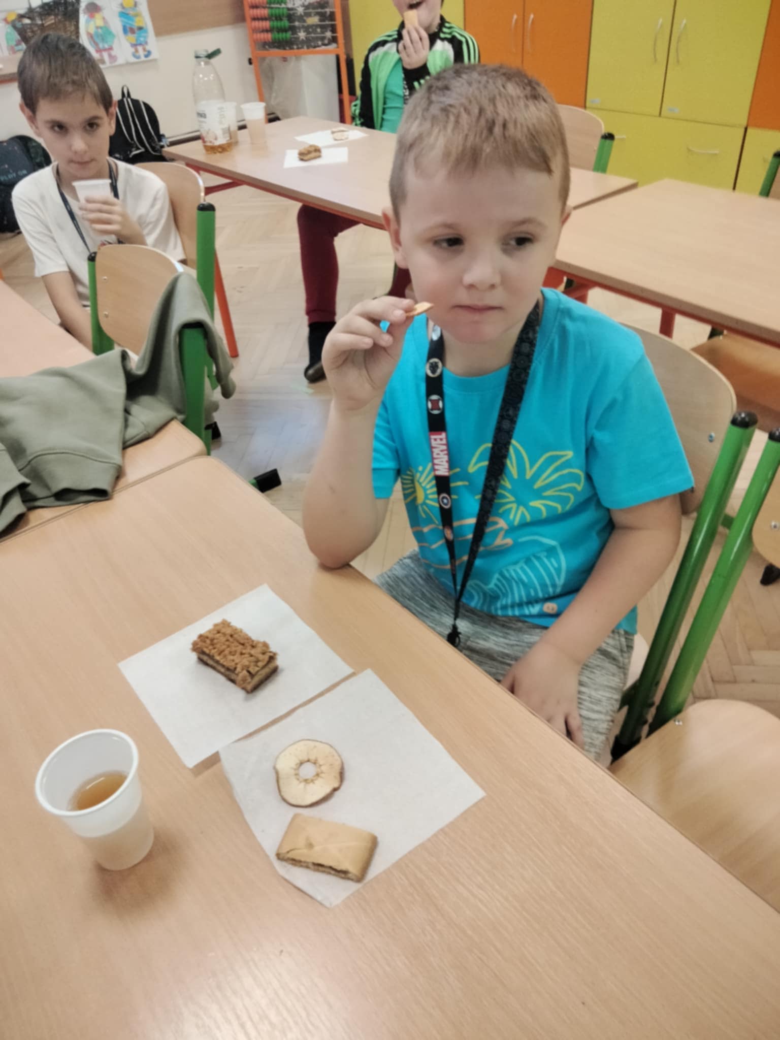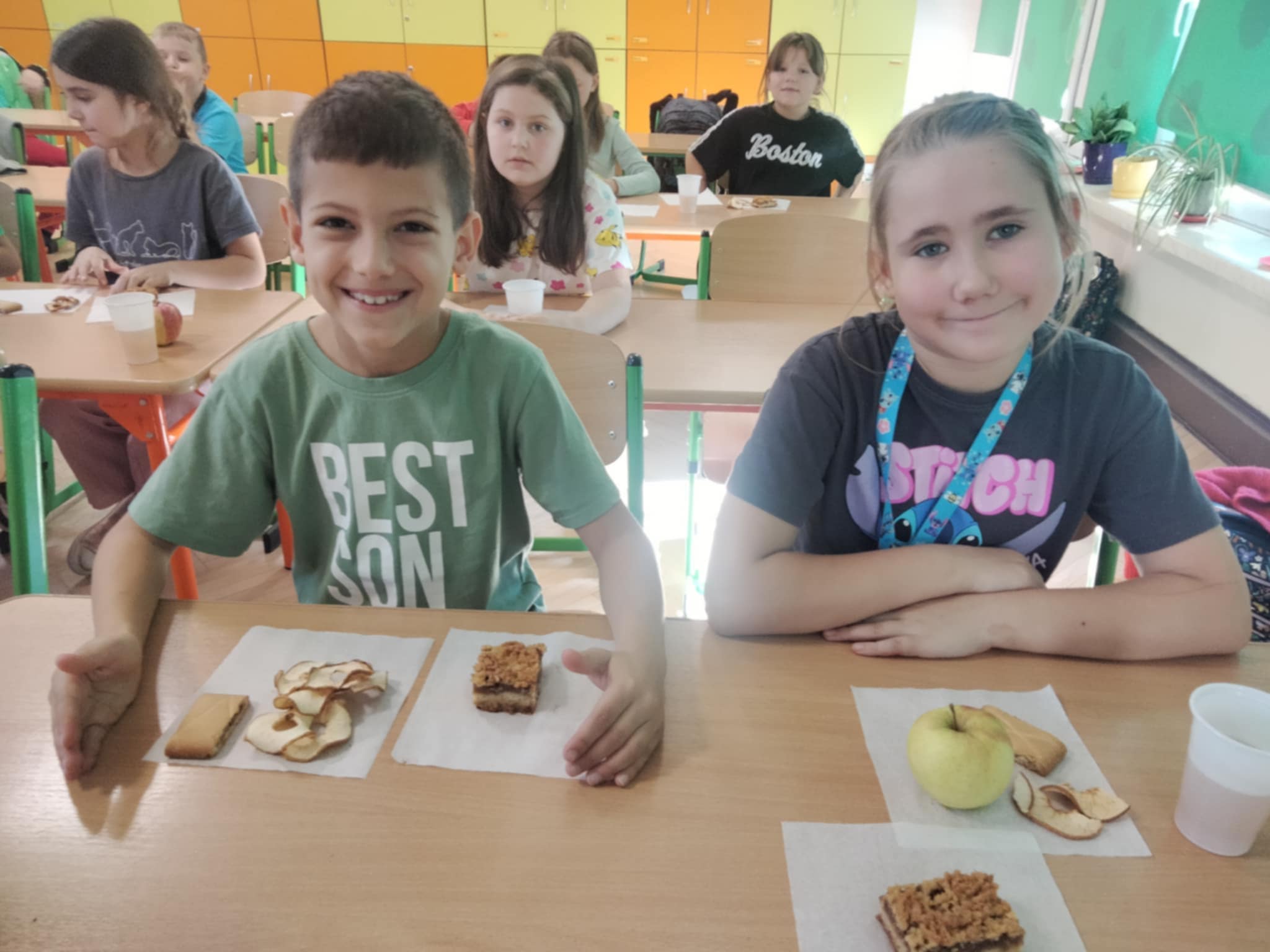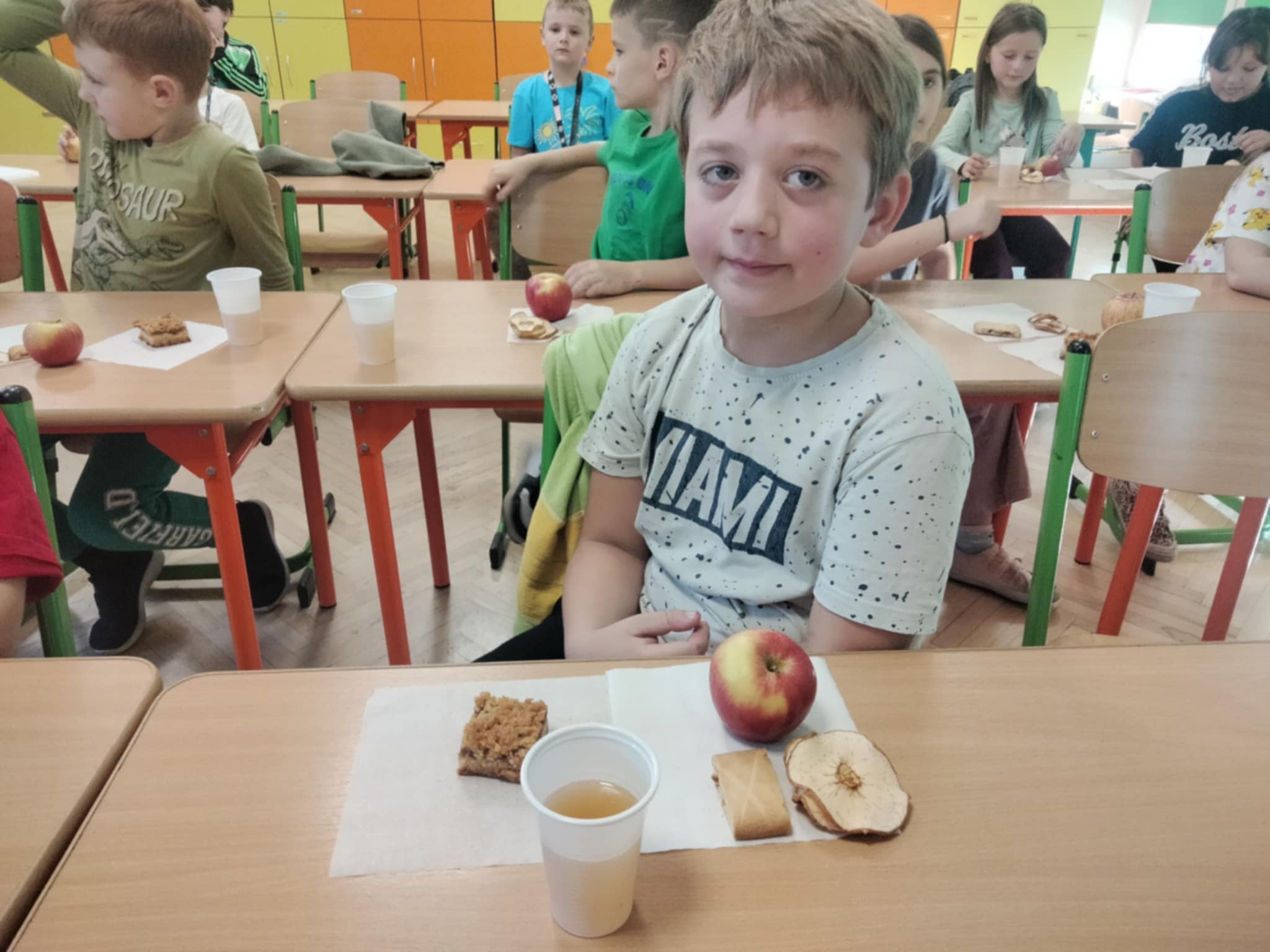 Dzięki uprzejmości rodziców klasa mogła również cieszyć się pysznym jabłkowym poczęstunkiem, który umilił ten pełen wrażeń dzień. Uczniowie wykonali piękne prace plastyczne, które ozdobiły korytarz szkolny. Dzień Jabłka był nie tylko okazją do świetnej zabawy, ale także do nauki o zdrowym odżywianiu, rozwijania kreatywności i integracji klasy.