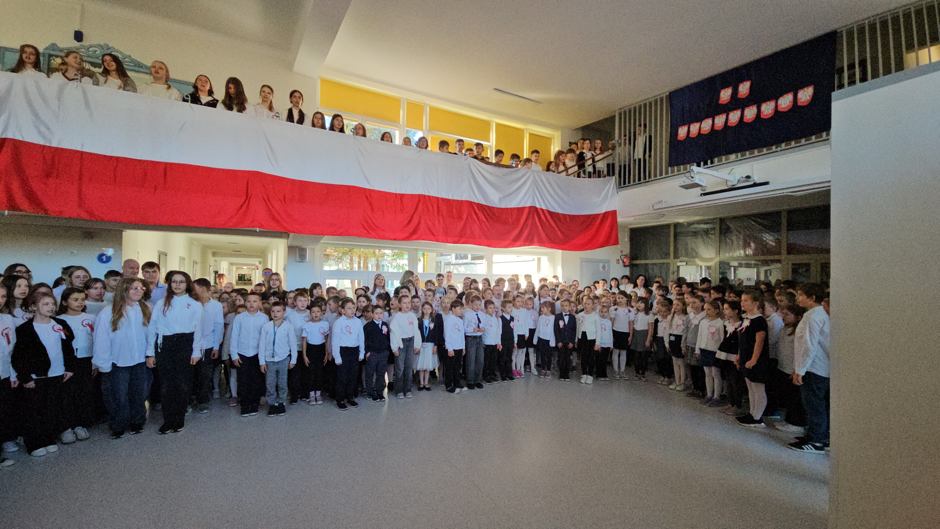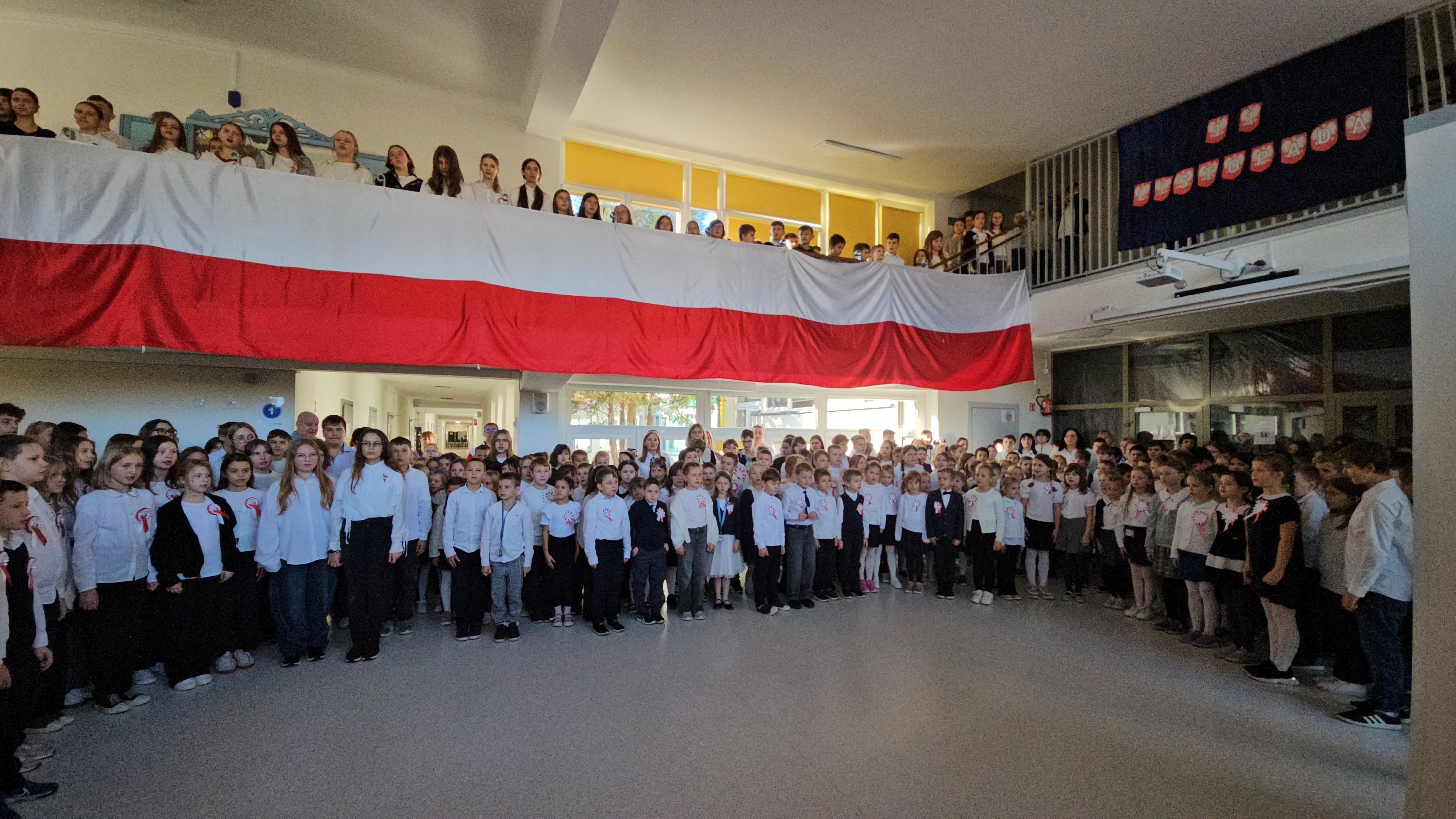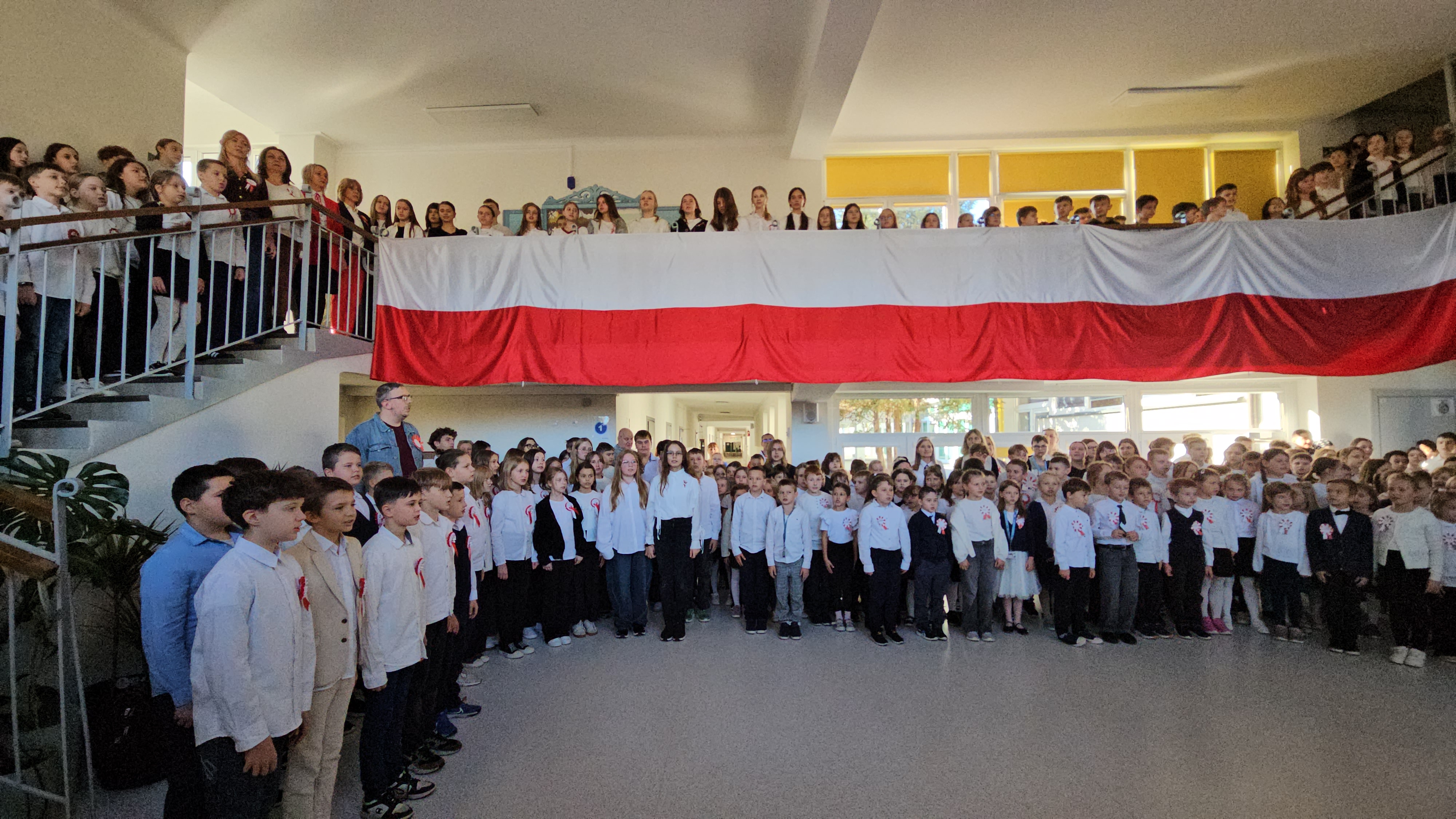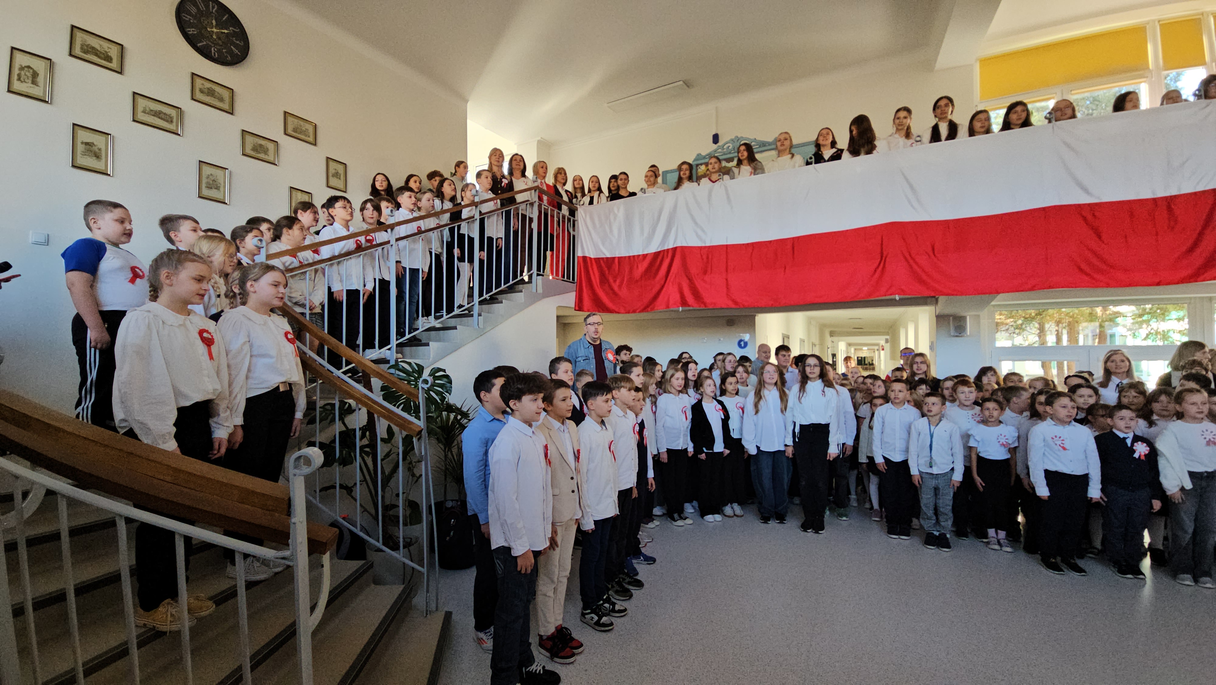 W dniu 7 listopada 2025 roku nasza szkoła wzięła udział w ogólnopolskiej akcji „Szkoła do hymnu”, zorganizowanej przez Ministerstwo Edukacji Narodowej z okazji Narodowego Święta Niepodległości.