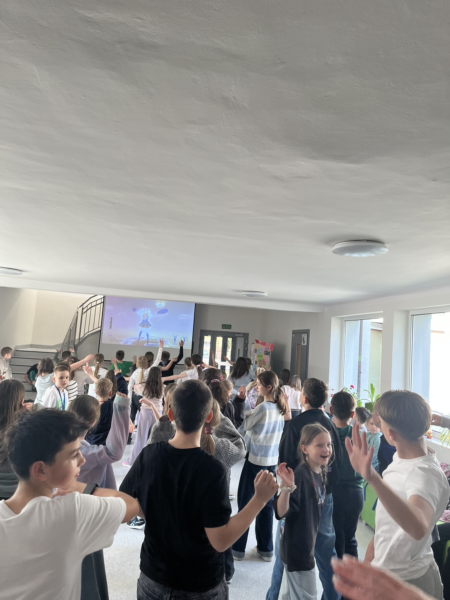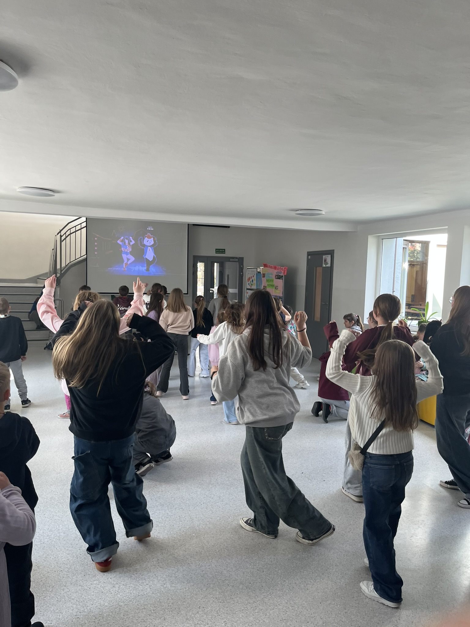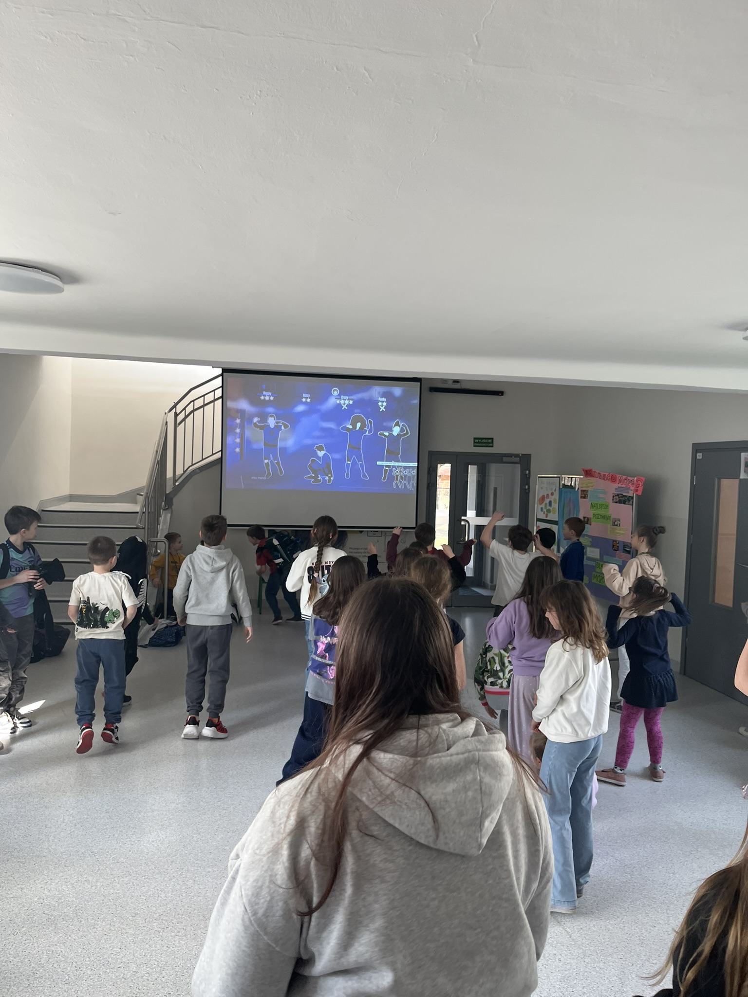 Ponieważ dobrze wiemy, że nasz mózg uwielbia gdy jesteśmy aktywni fizycznie, postanowiliśmy dostarczyć mu sporą dawkę ruchu. Zdecydowaliśmy się na Just Dance! I to był strzał w 10! Cały hol wypełniły tańczące, uśmiechnięte dzieci.
