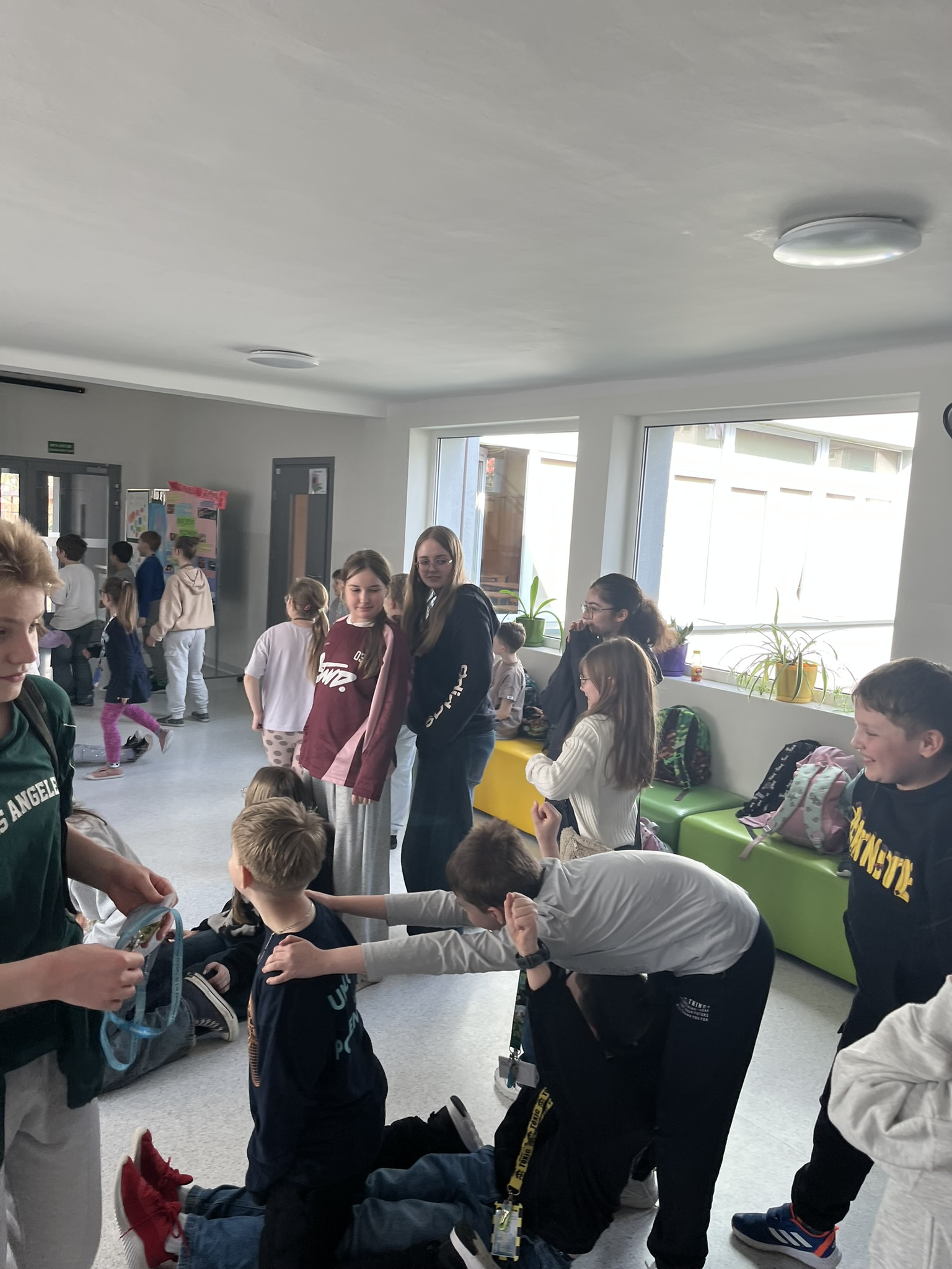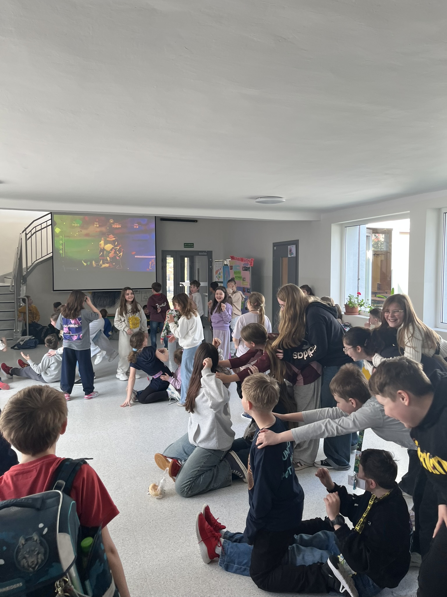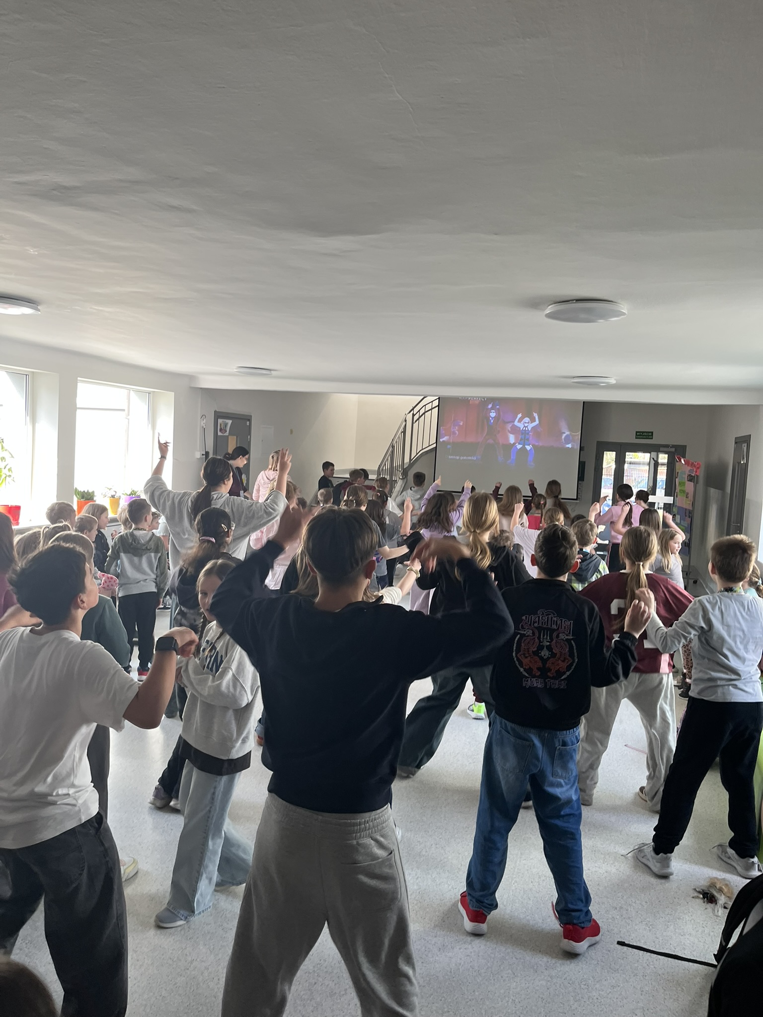 Ponieważ dobrze wiemy, że nasz mózg uwielbia gdy jesteśmy aktywni fizycznie, postanowiliśmy dostarczyć mu sporą dawkę ruchu. Zdecydowaliśmy się na Just Dance! I to był strzał w 10! Cały hol wypełniły tańczące, uśmiechnięte dzieci.