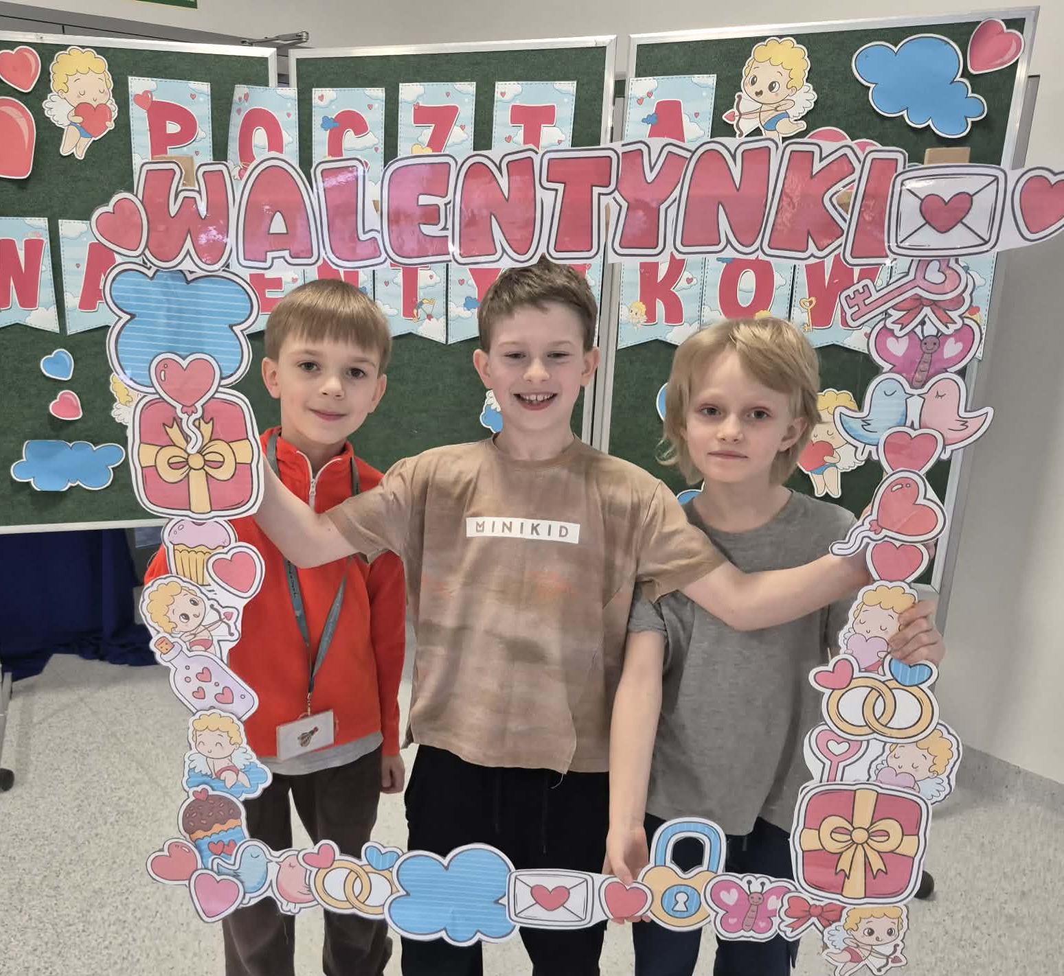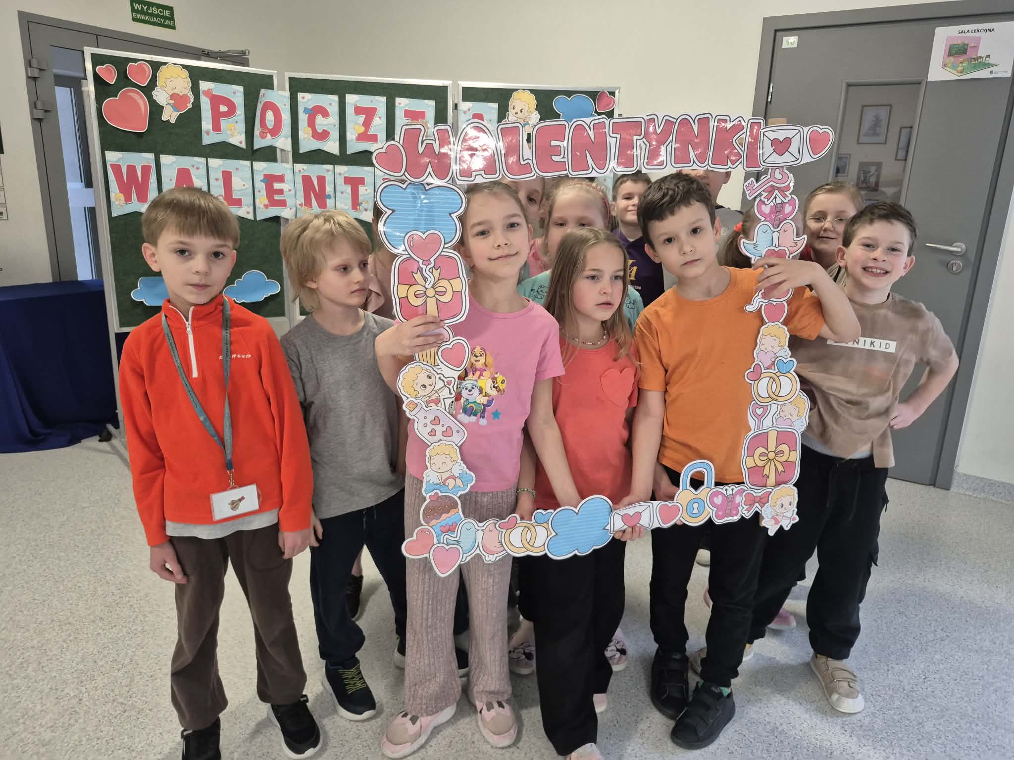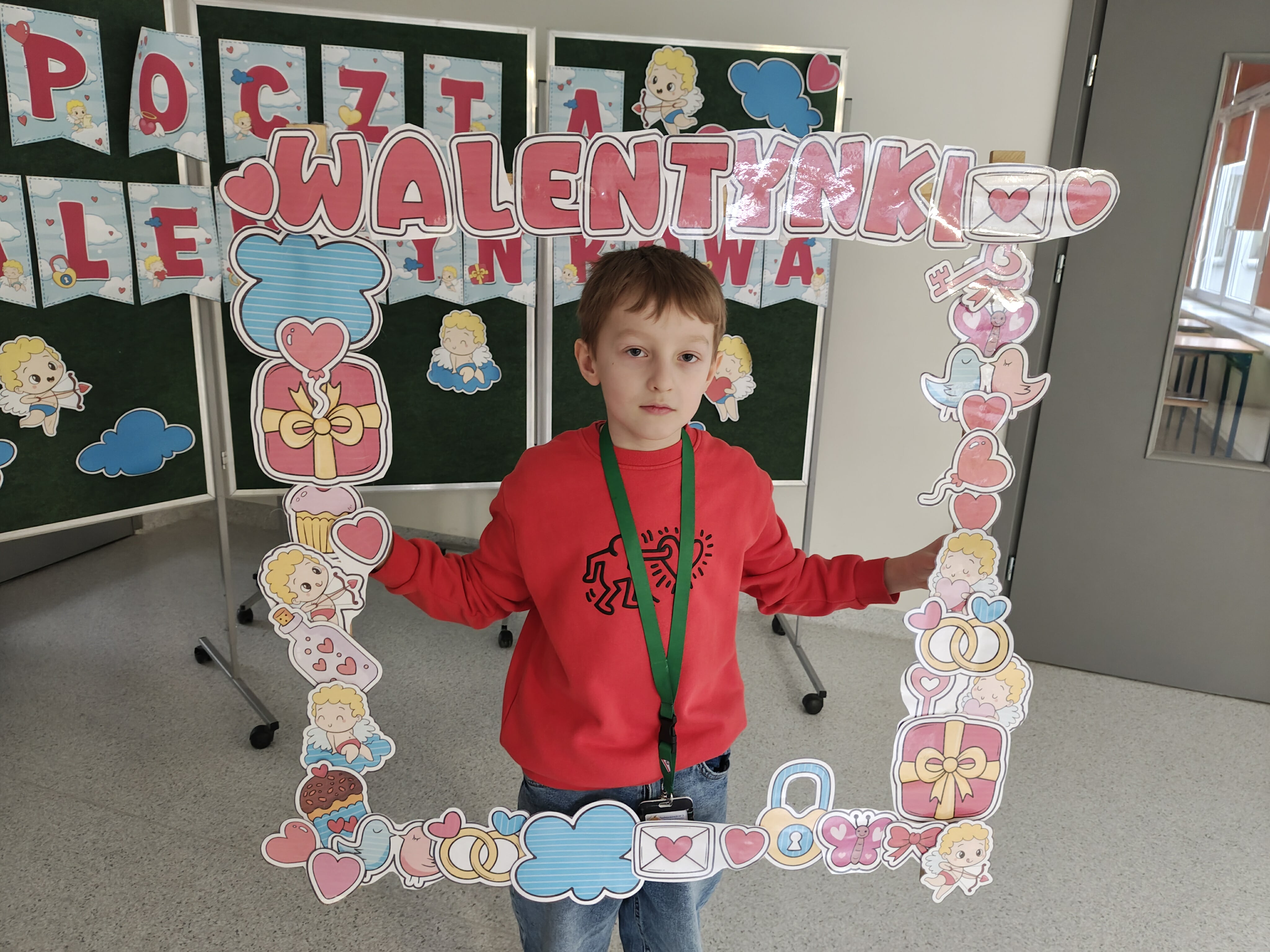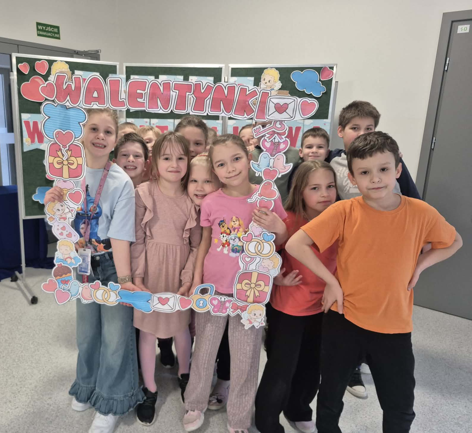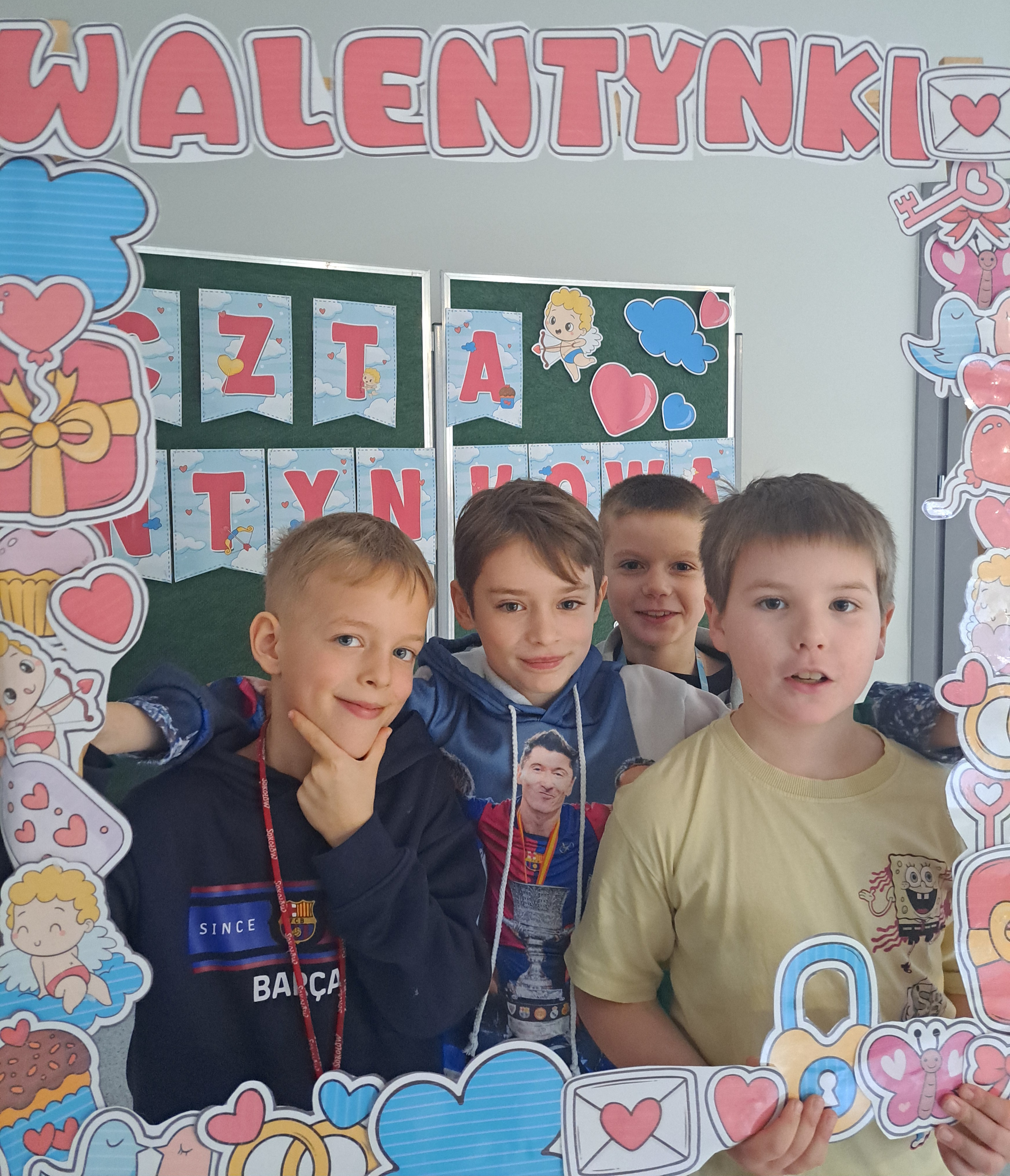 13 lutego klasy 1–3 obchodziły w naszej szkole wyjątkowe Walentynki! Działała specjalna poczta, dzięki której uczniowie mogli przesyłać sobie miłe wiadomości i serdeczne pozdrowienia. Ogromnym zainteresowaniem cieszyła się także fotobudka, w której dzieci z uśmiechem pozowały do pamiątkowych zdjęć. Nie zabrakło również „serduszkowej zabawy” – uczniowie z różnych klas edukacji wczesnoszkolnej szukali swojej „drugiej połówki”, świetnie się przy tym bawiąc i integrując