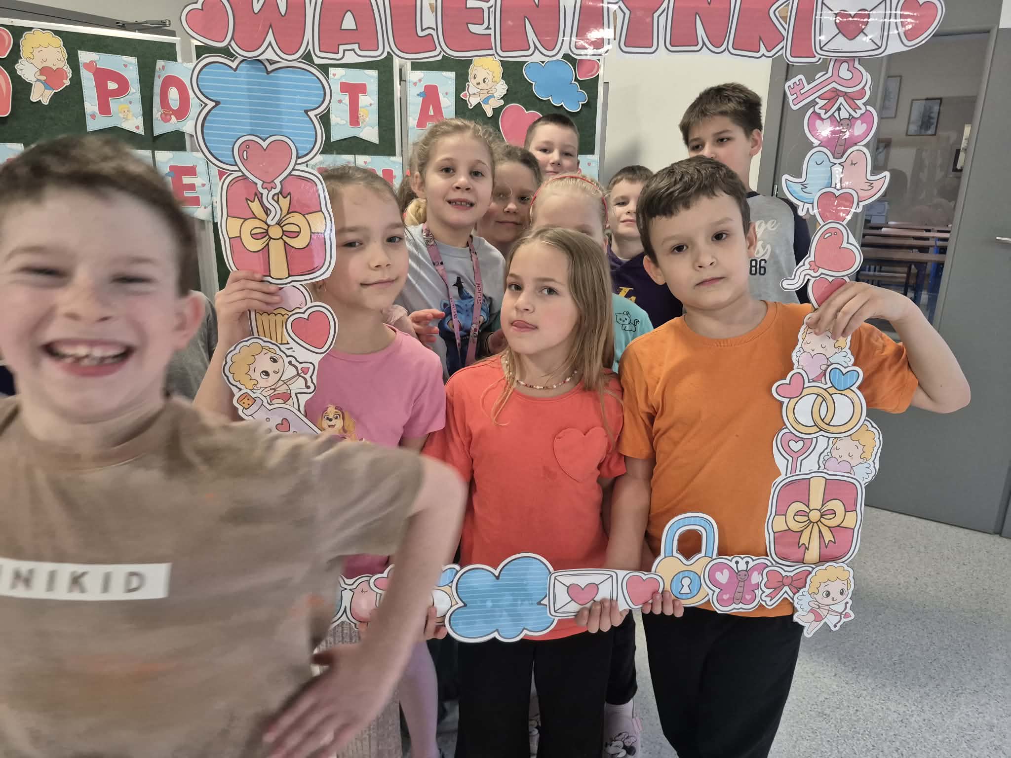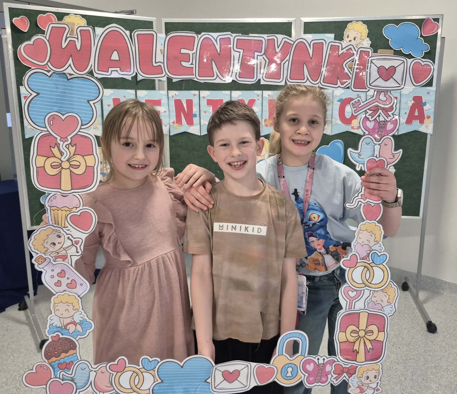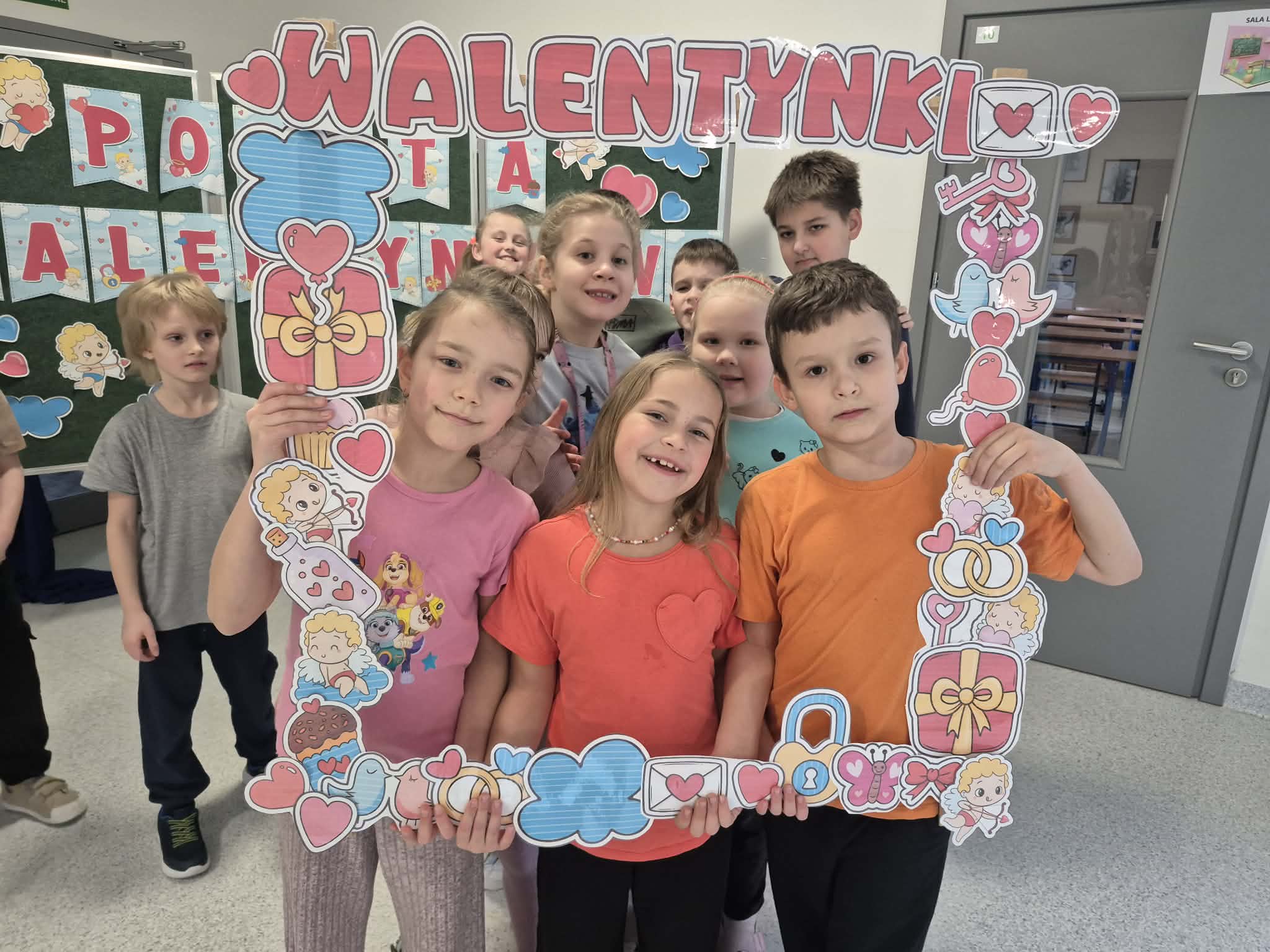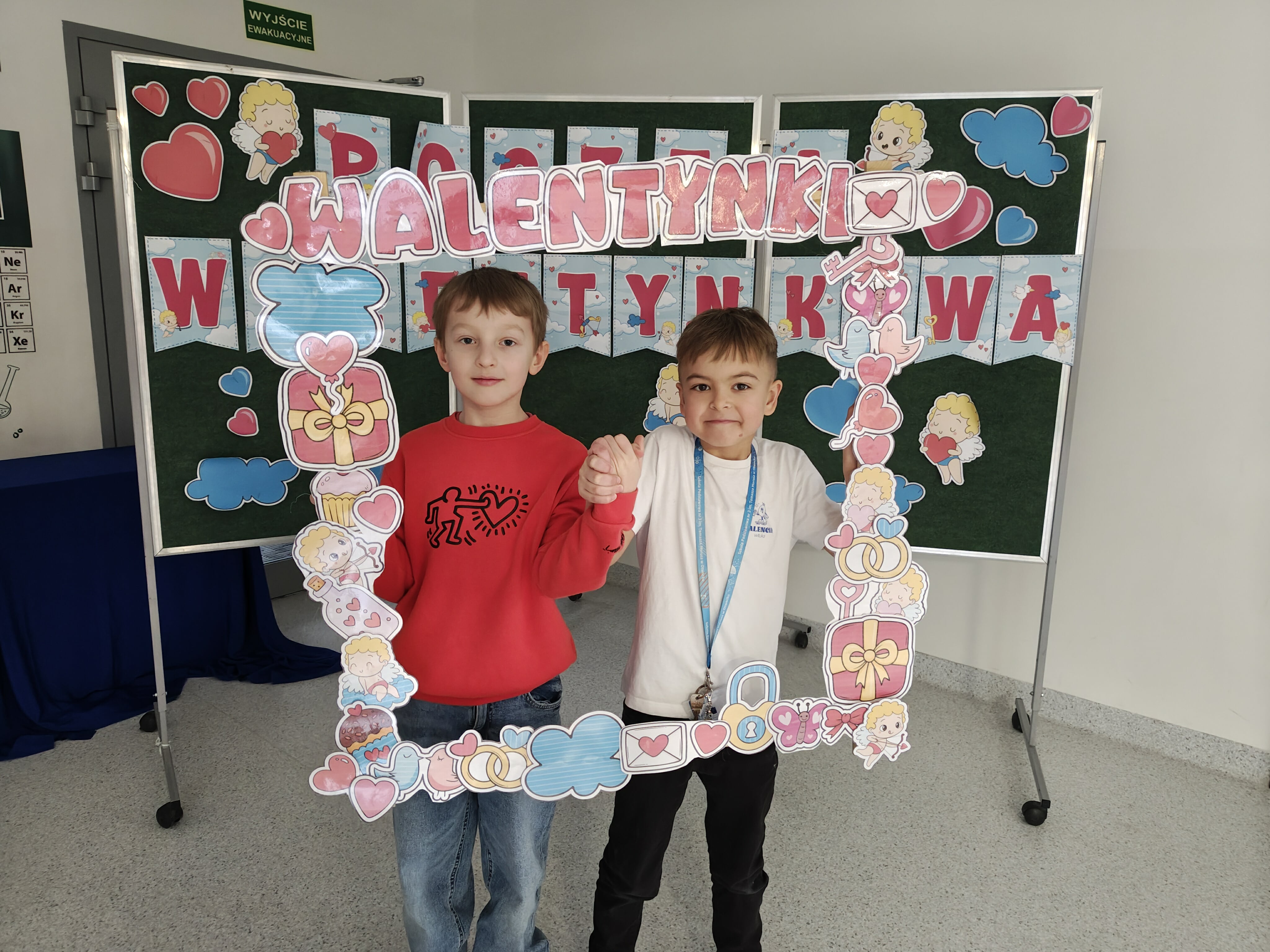 13 lutego klasy 1–3 obchodziły w naszej szkole wyjątkowe Walentynki! Działała specjalna poczta, dzięki której uczniowie mogli przesyłać sobie miłe wiadomości i serdeczne pozdrowienia. Ogromnym zainteresowaniem cieszyła się także fotobudka, w której dzieci z uśmiechem pozowały do pamiątkowych zdjęć. Nie zabrakło również „serduszkowej zabawy” – uczniowie z różnych klas edukacji wczesnoszkolnej szukali swojej „drugiej połówki”, świetnie się przy tym bawiąc i integrując