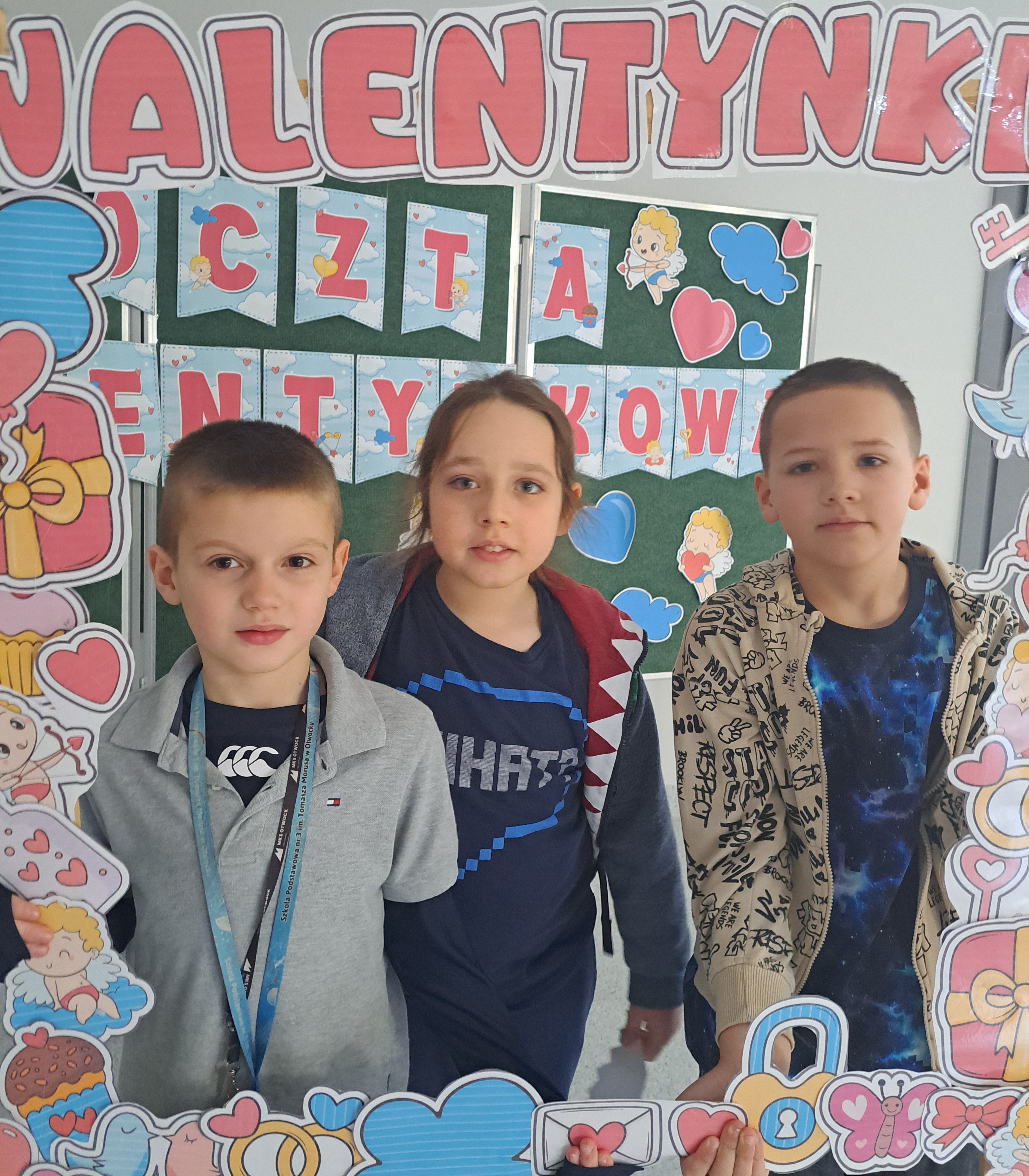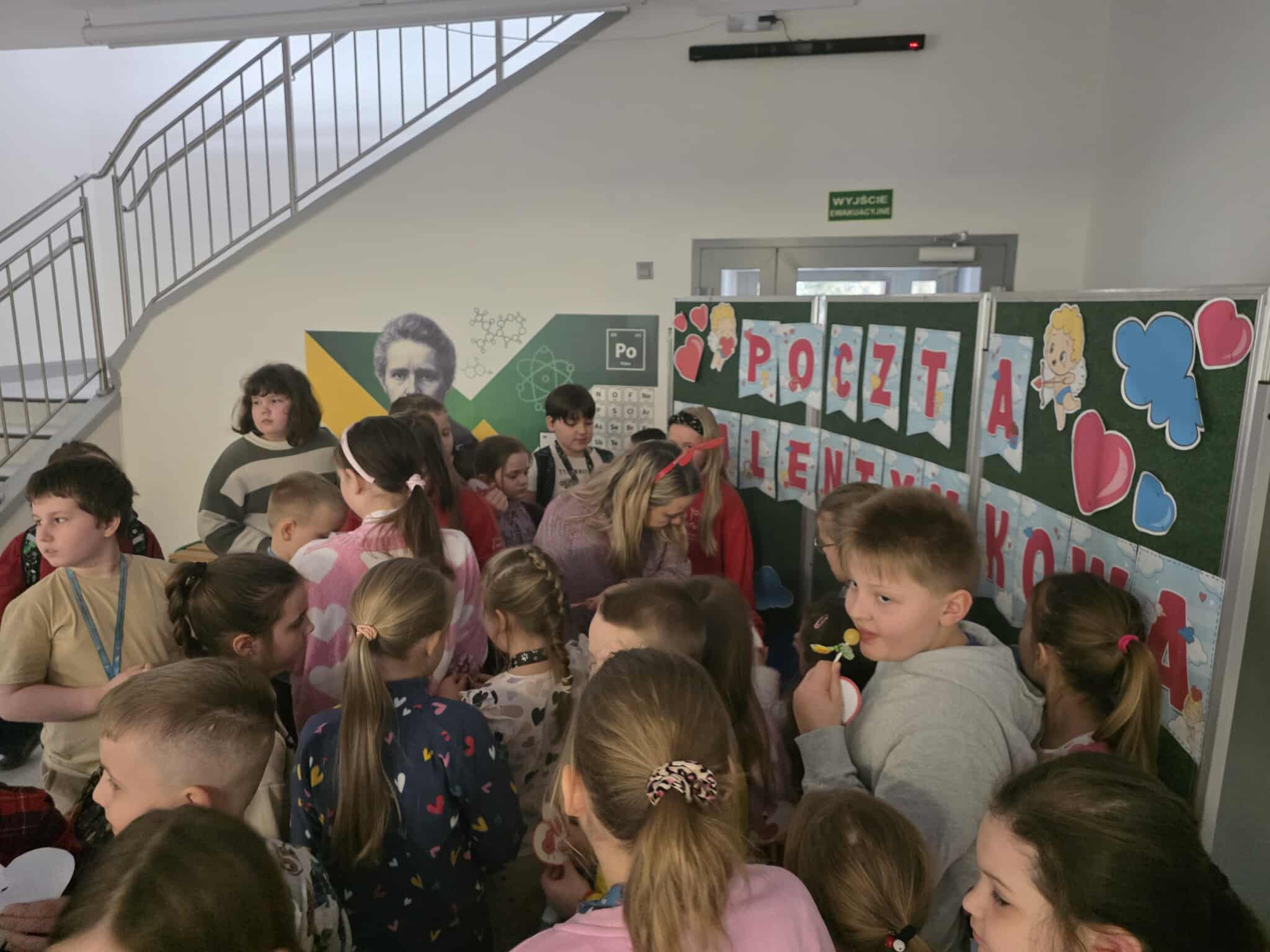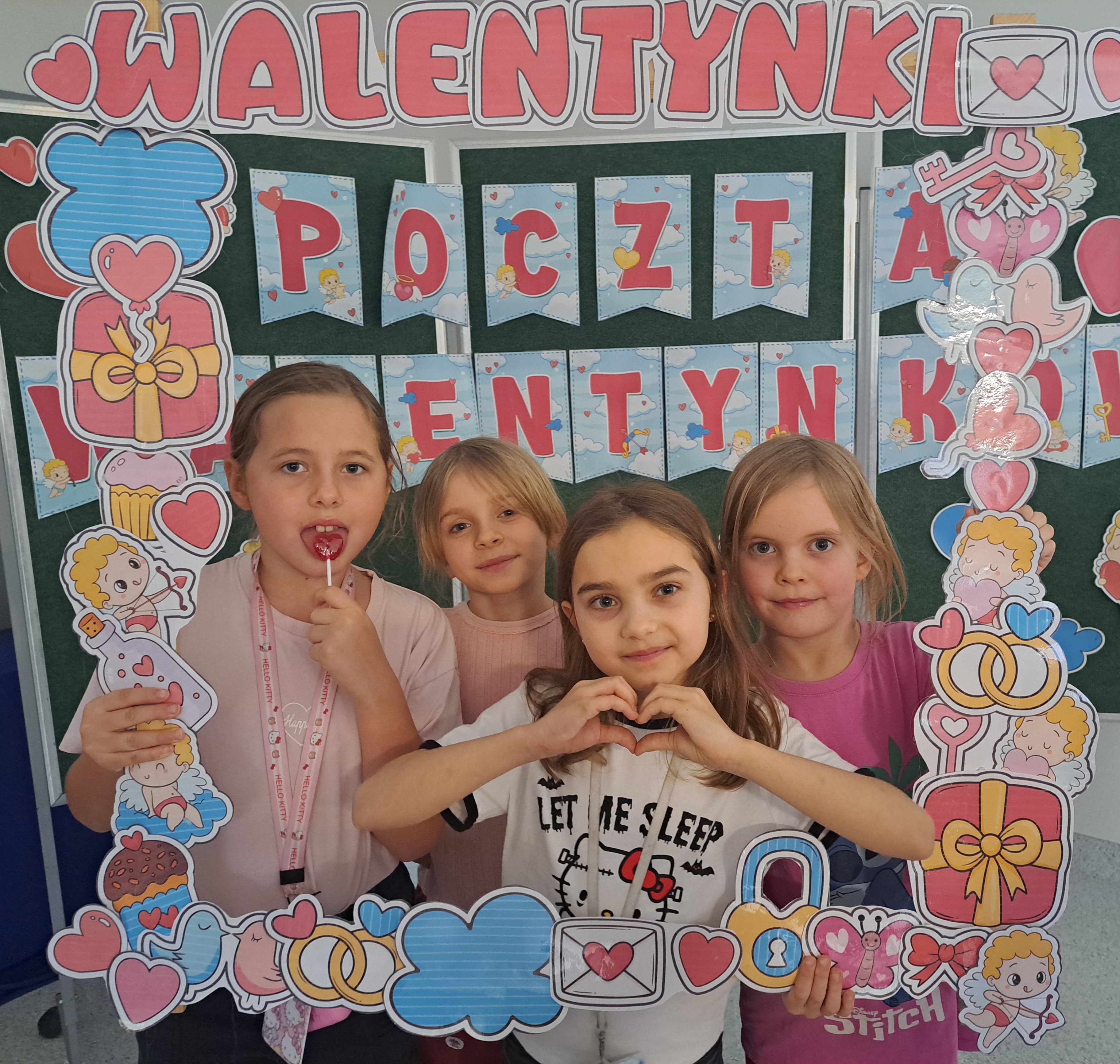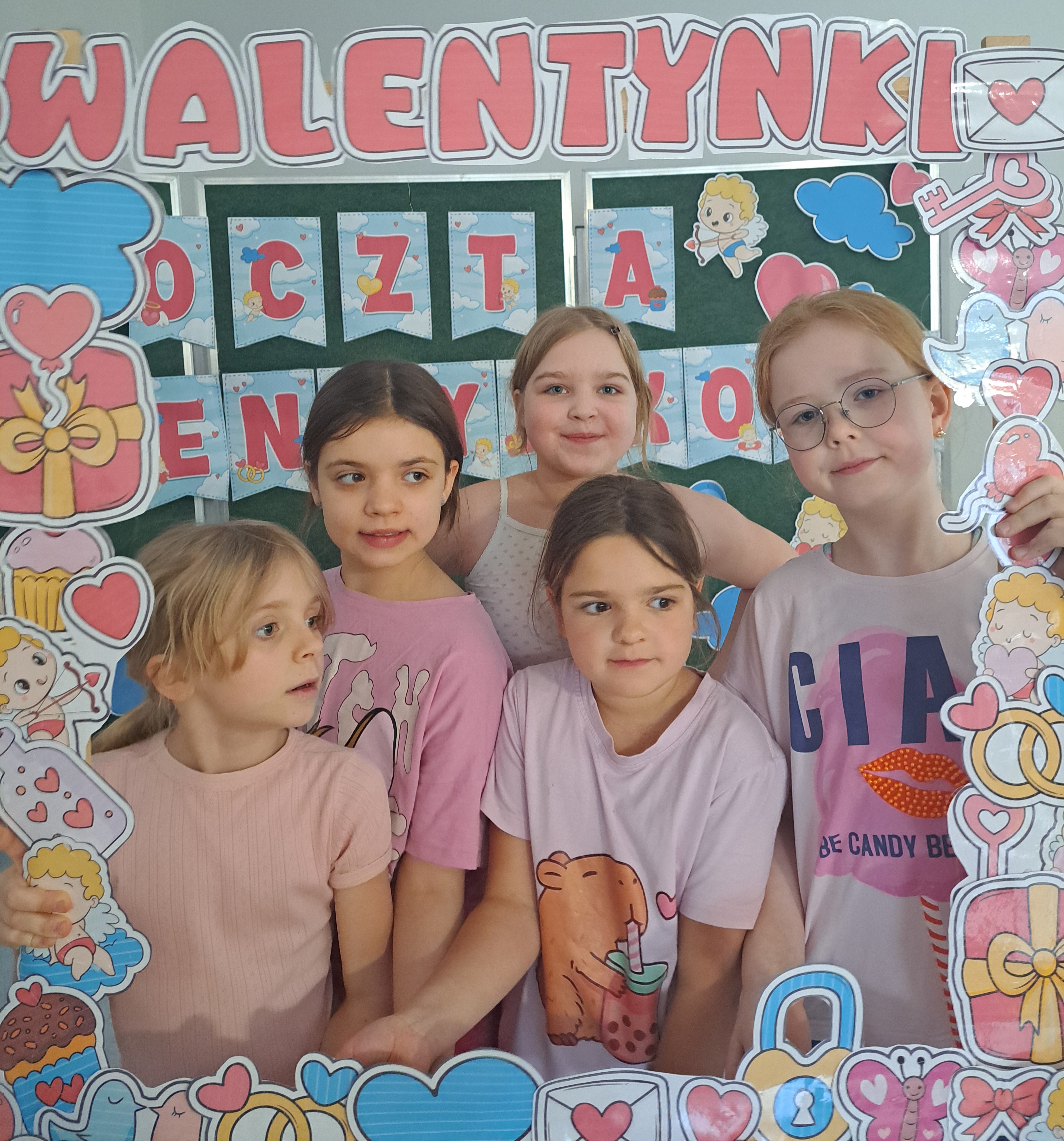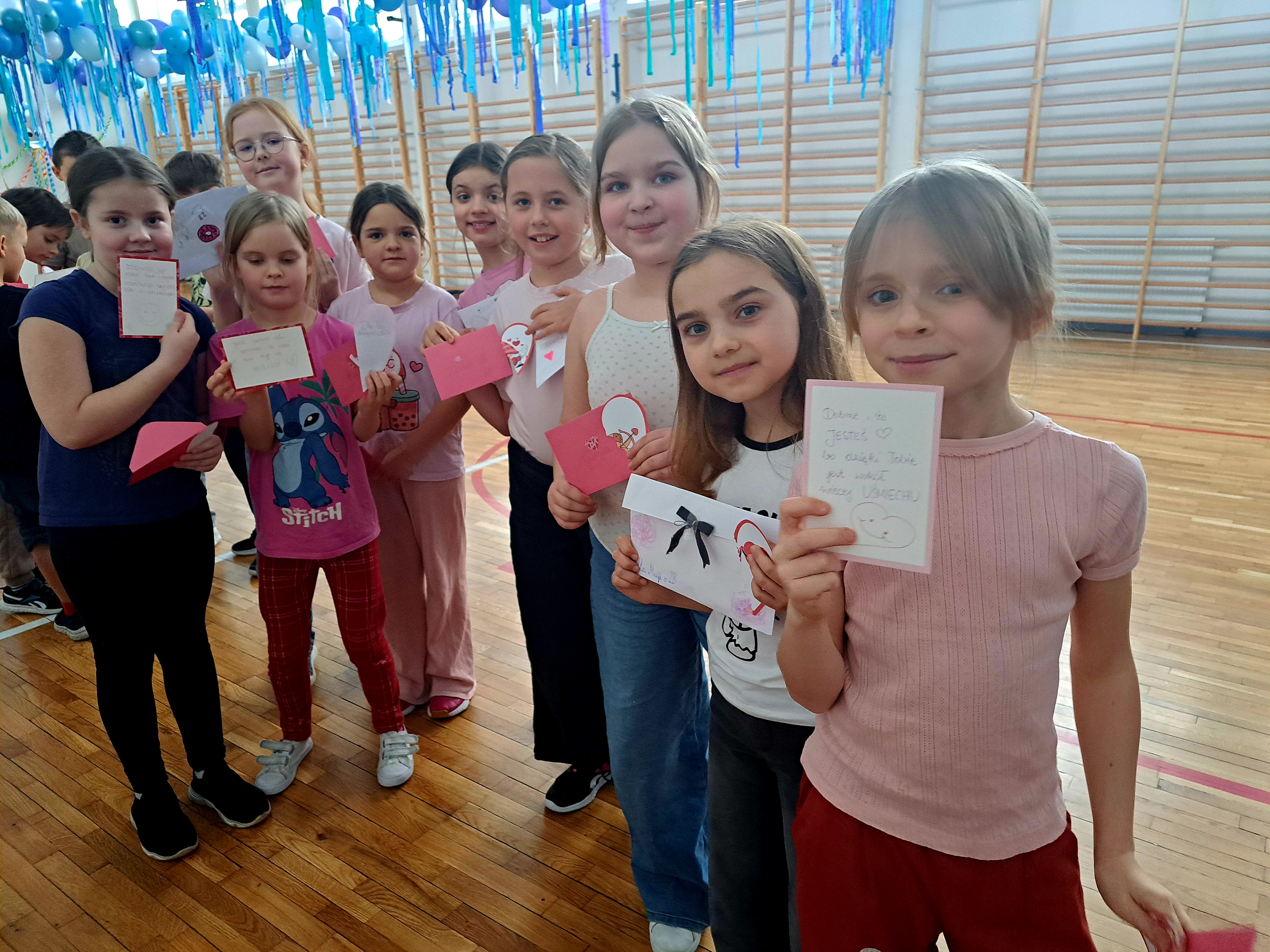 13 lutego klasy 1–3 obchodziły w naszej szkole wyjątkowe Walentynki! Działała specjalna poczta, dzięki której uczniowie mogli przesyłać sobie miłe wiadomości i serdeczne pozdrowienia. Ogromnym zainteresowaniem cieszyła się także fotobudka, w której dzieci z uśmiechem pozowały do pamiątkowych zdjęć. Nie zabrakło również „serduszkowej zabawy” – uczniowie z różnych klas edukacji wczesnoszkolnej szukali swojej „drugiej połówki”, świetnie się przy tym bawiąc i integrując