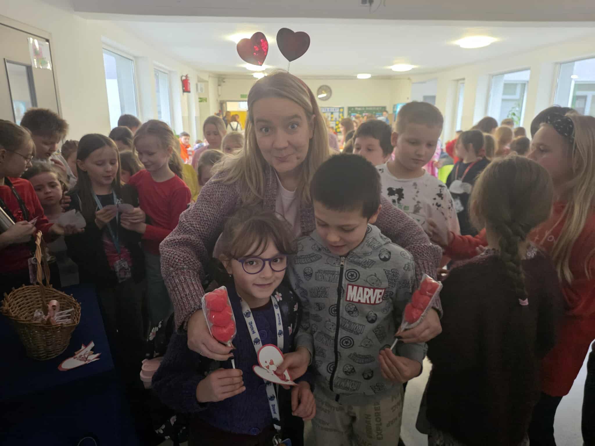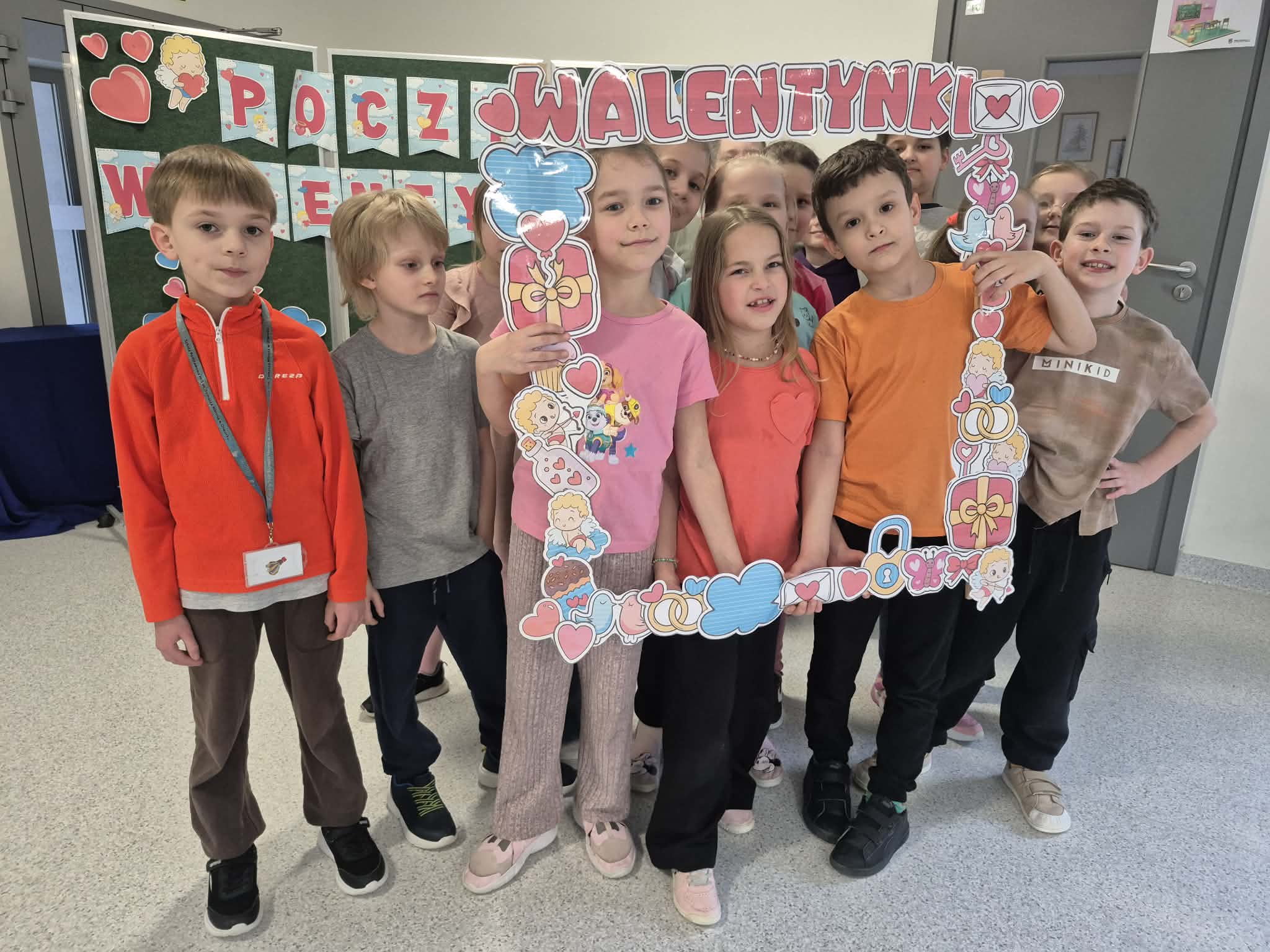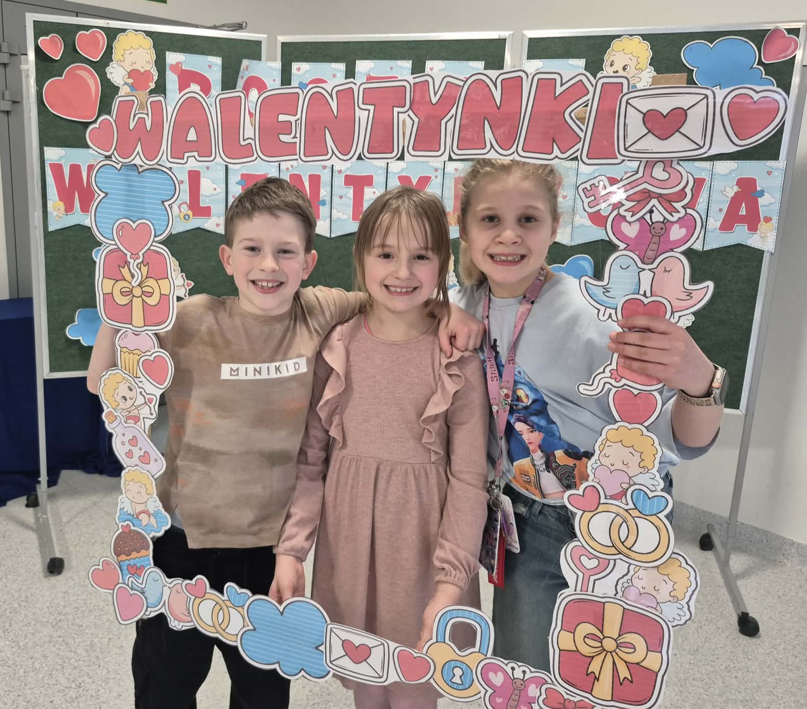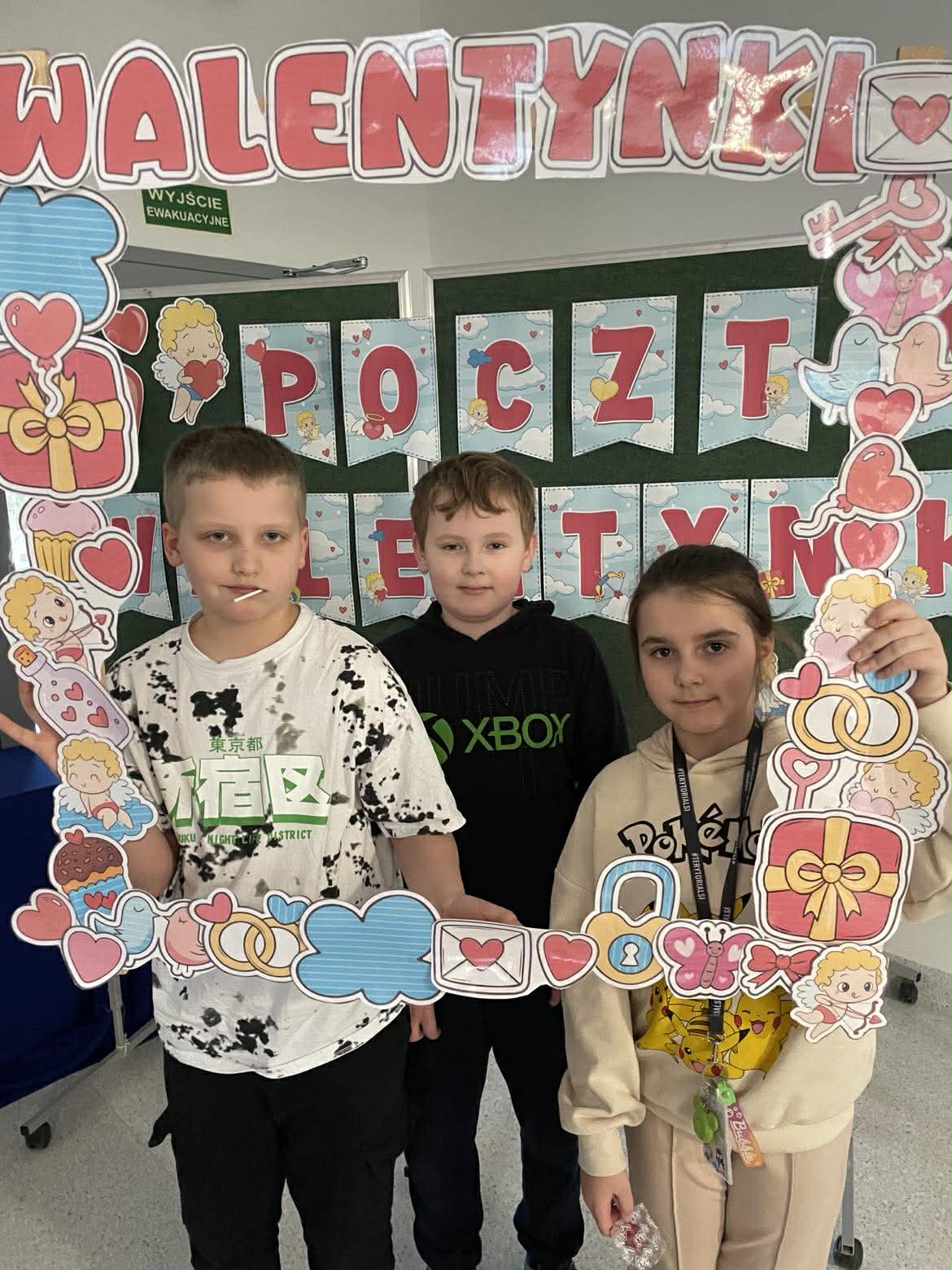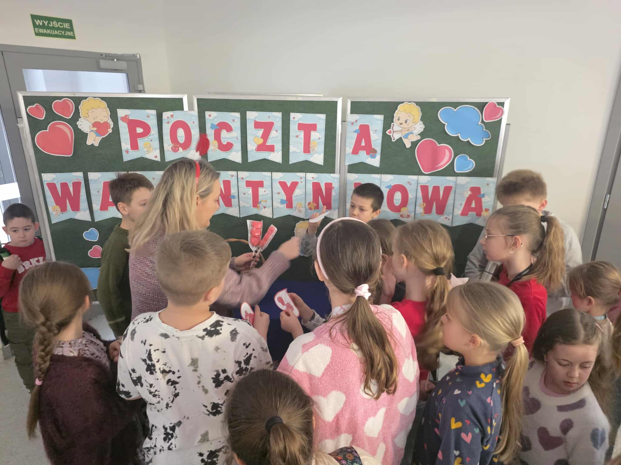13 lutego klasy 1–3 obchodziły w naszej szkole wyjątkowe Walentynki! Działała specjalna poczta, dzięki której uczniowie mogli przesyłać sobie miłe wiadomości i serdeczne pozdrowienia. Ogromnym zainteresowaniem cieszyła się także fotobudka, w której dzieci z uśmiechem pozowały do pamiątkowych zdjęć. Nie zabrakło również „serduszkowej zabawy” – uczniowie z różnych klas edukacji wczesnoszkolnej szukali swojej „drugiej połówki”, świetnie się przy tym bawiąc i integrując