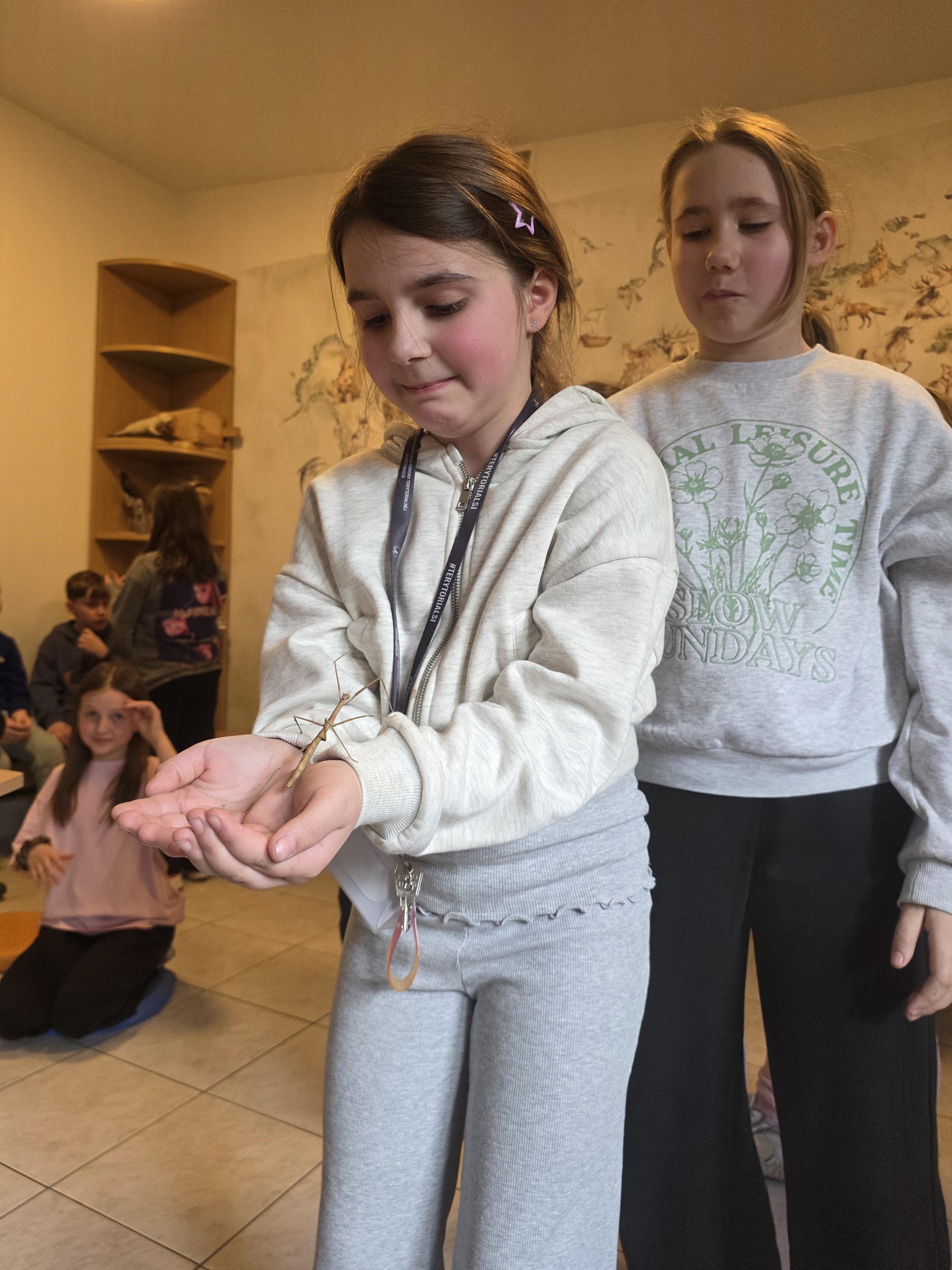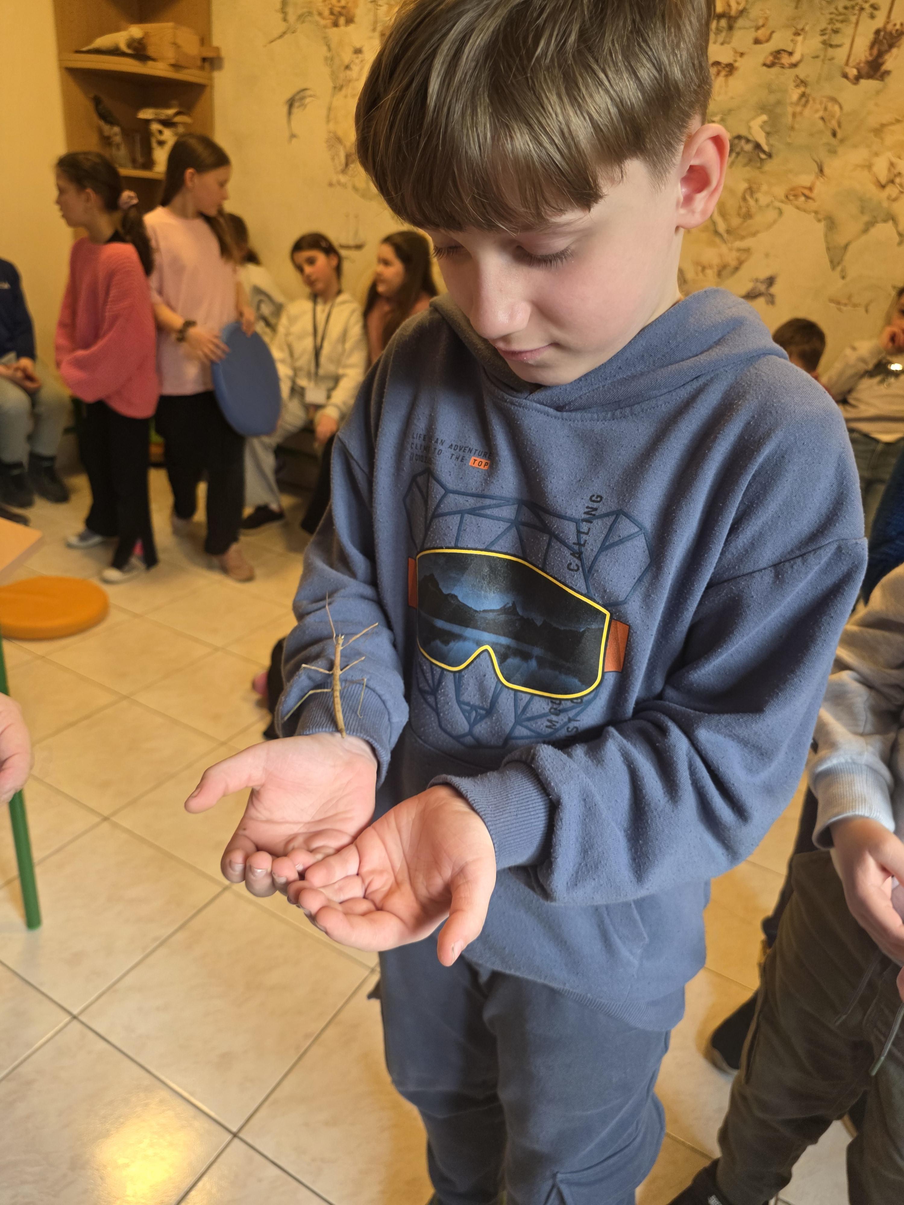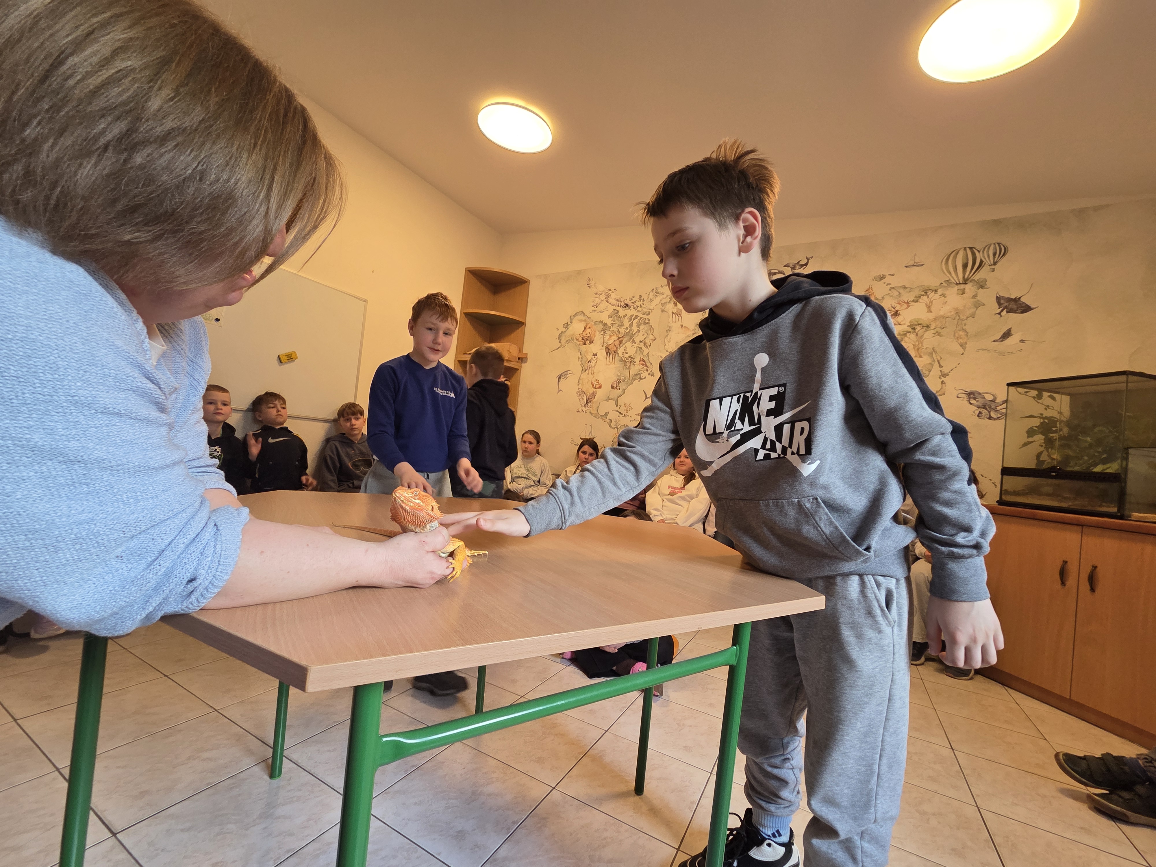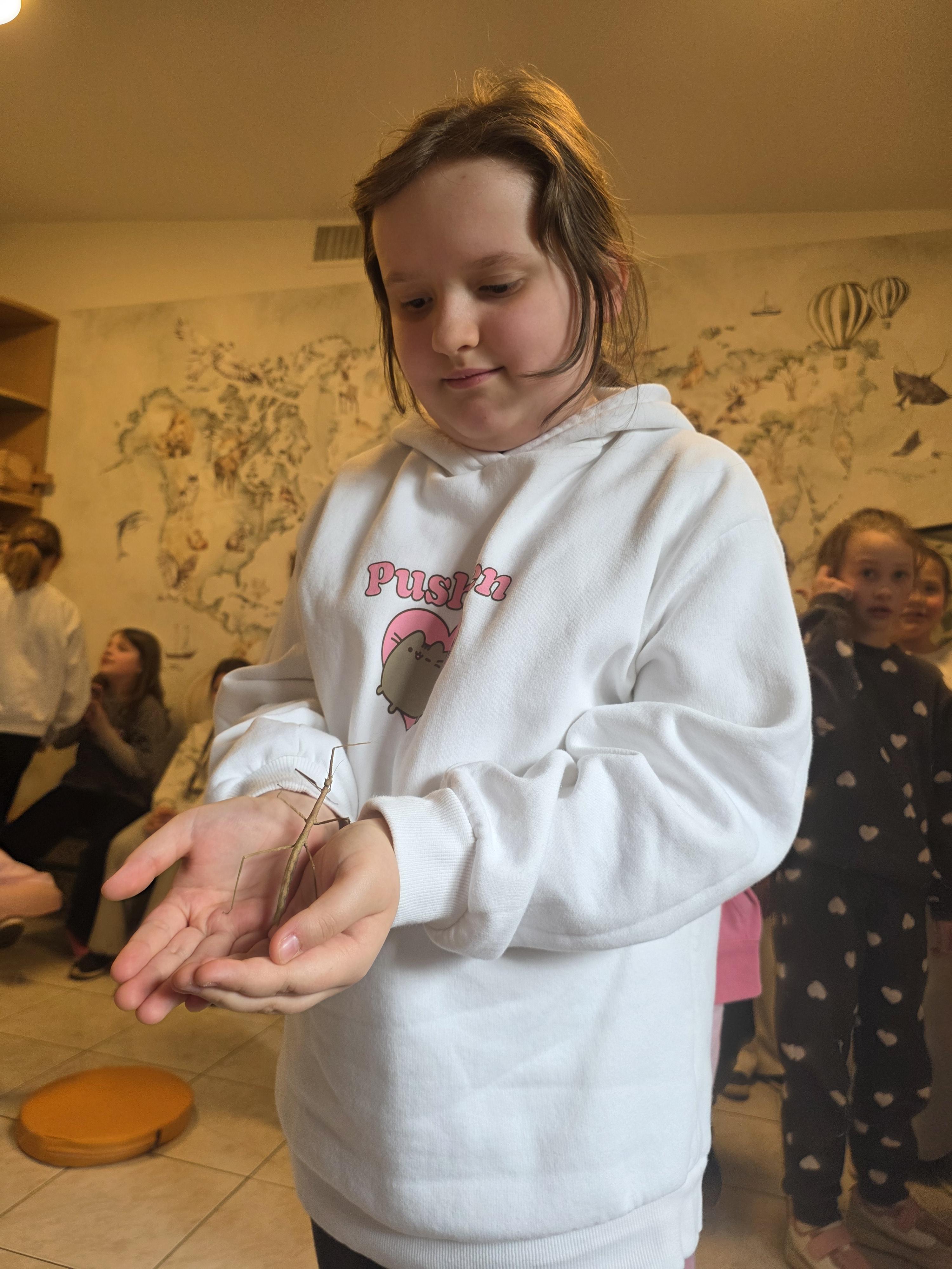 Podczas zajęć dzieci miały za zadanie posegregować różne pokarmy dla zwierząt roślinożernych, mięsożernych i wszystkożernych. Dowiedziały się również czym nie można karmić zwierząt. Miały także możliwość pogłaskać węża, jaszczurkę oraz potrzymać patyczaka. ![]()