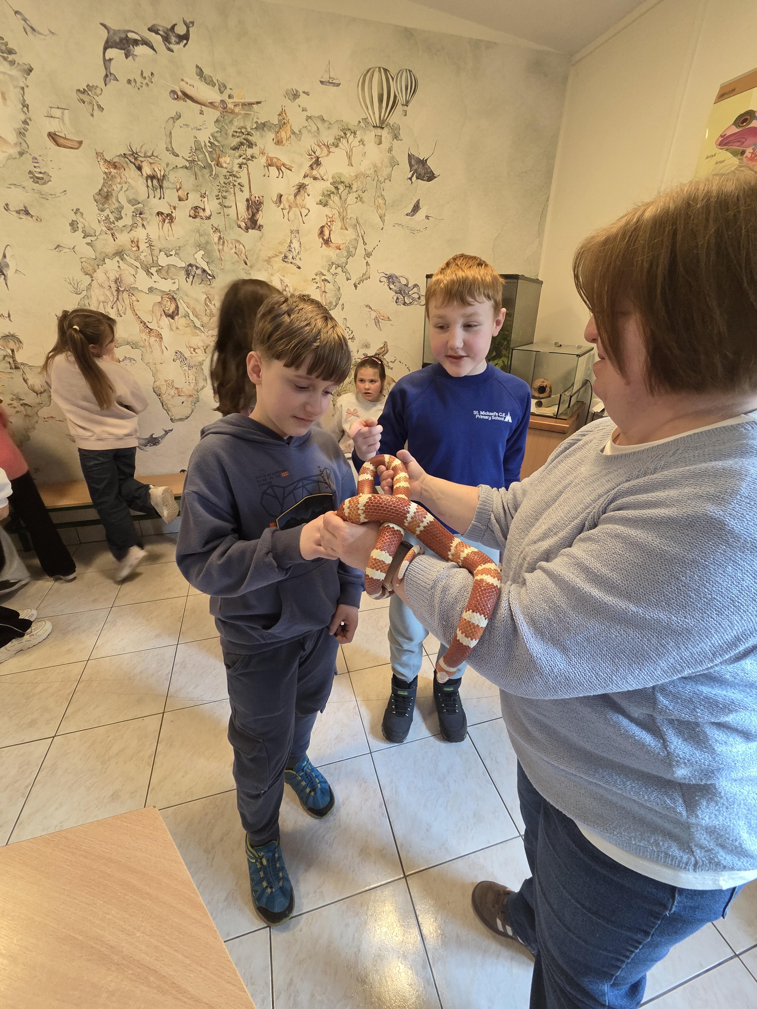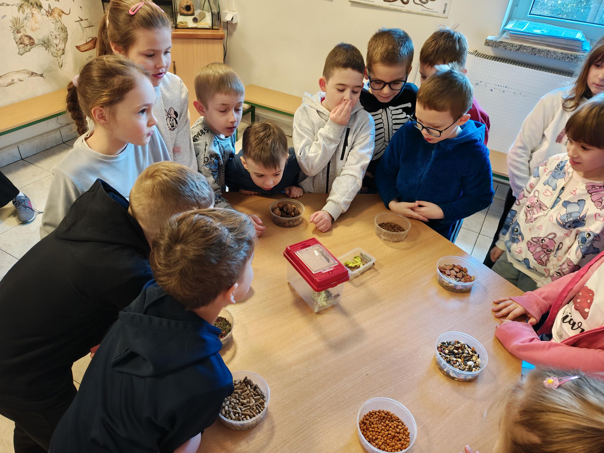 Uczniowie wzięli udział w lekcji pt. "Odżywianie zwierząt".