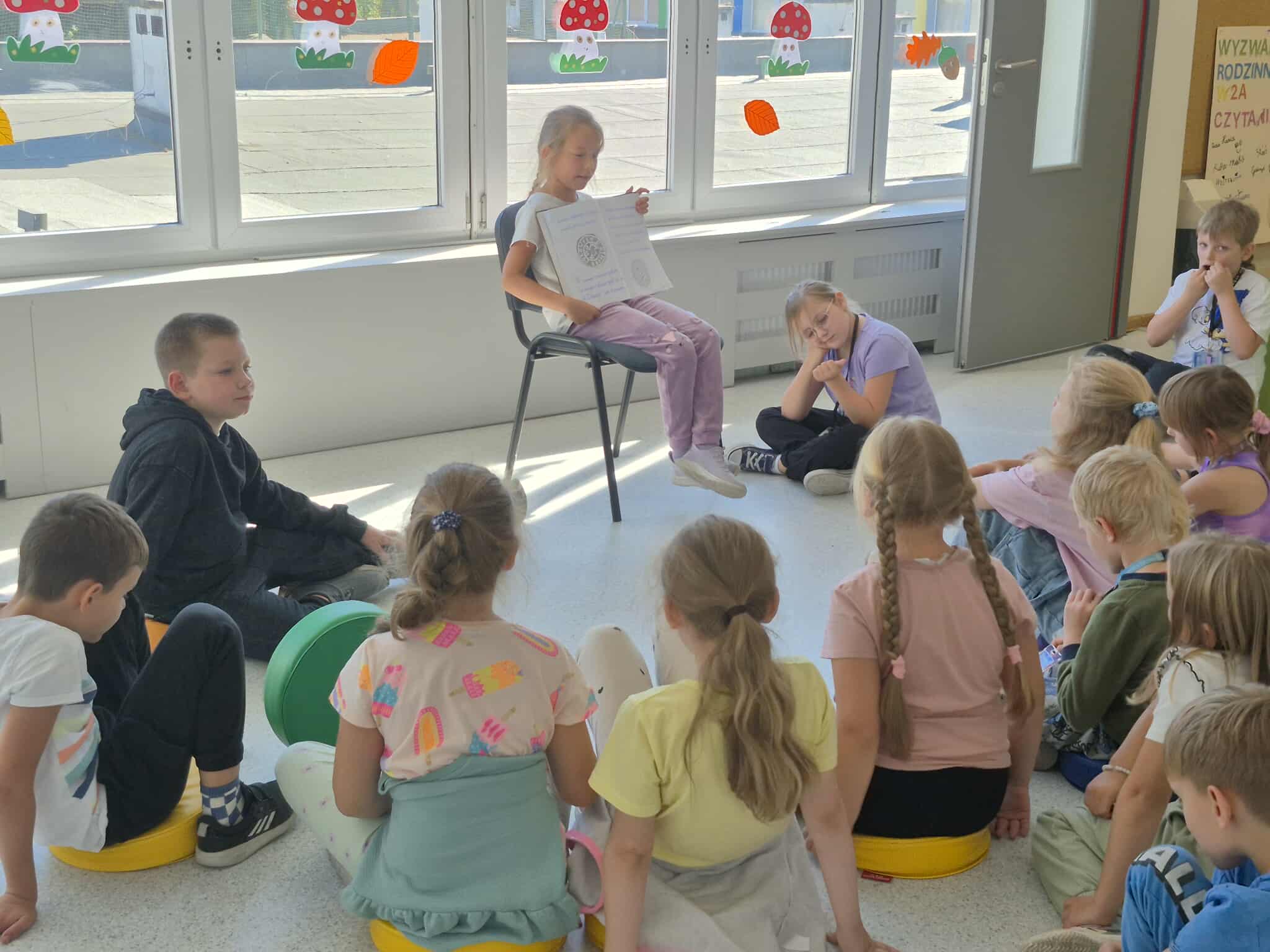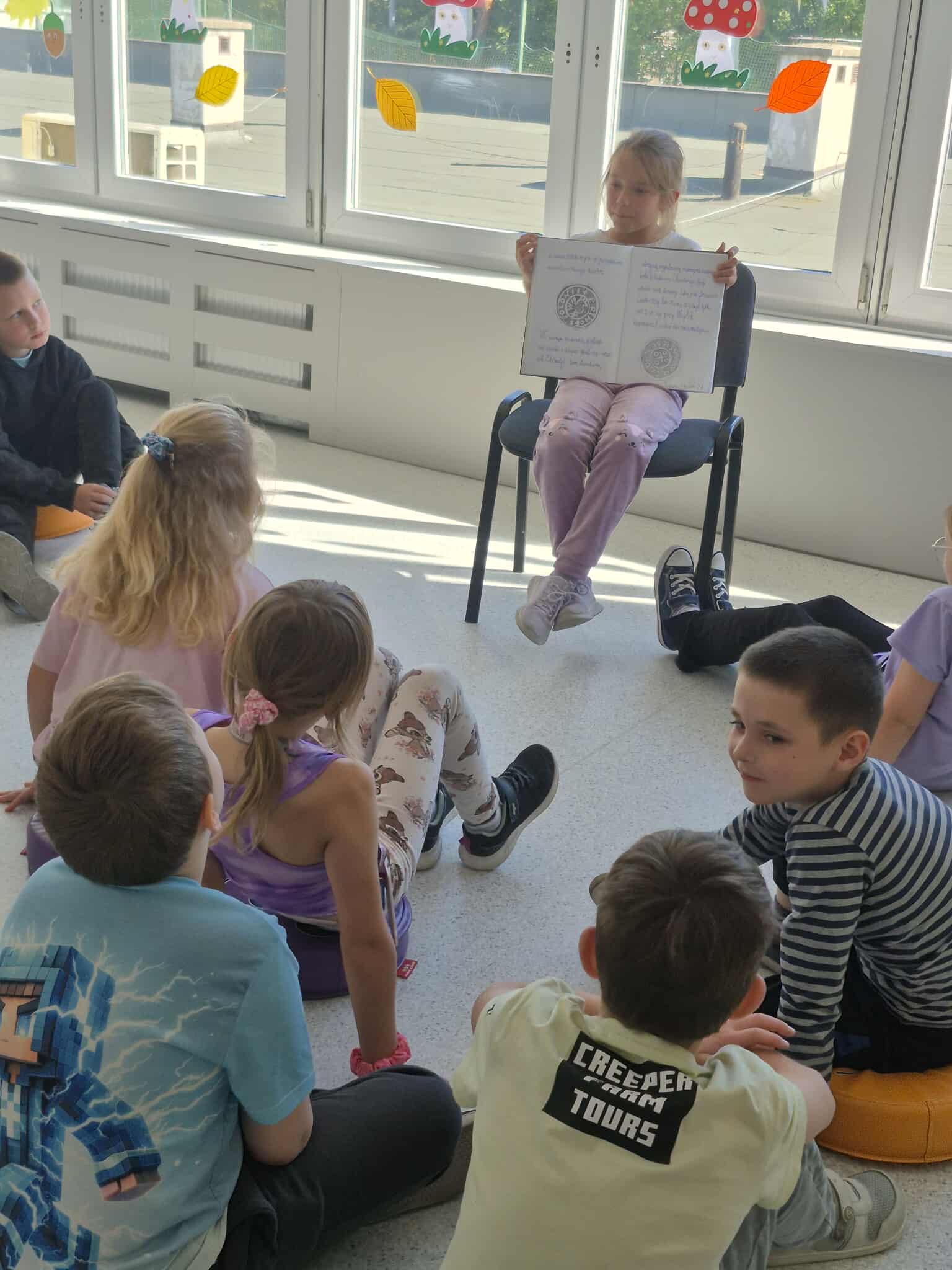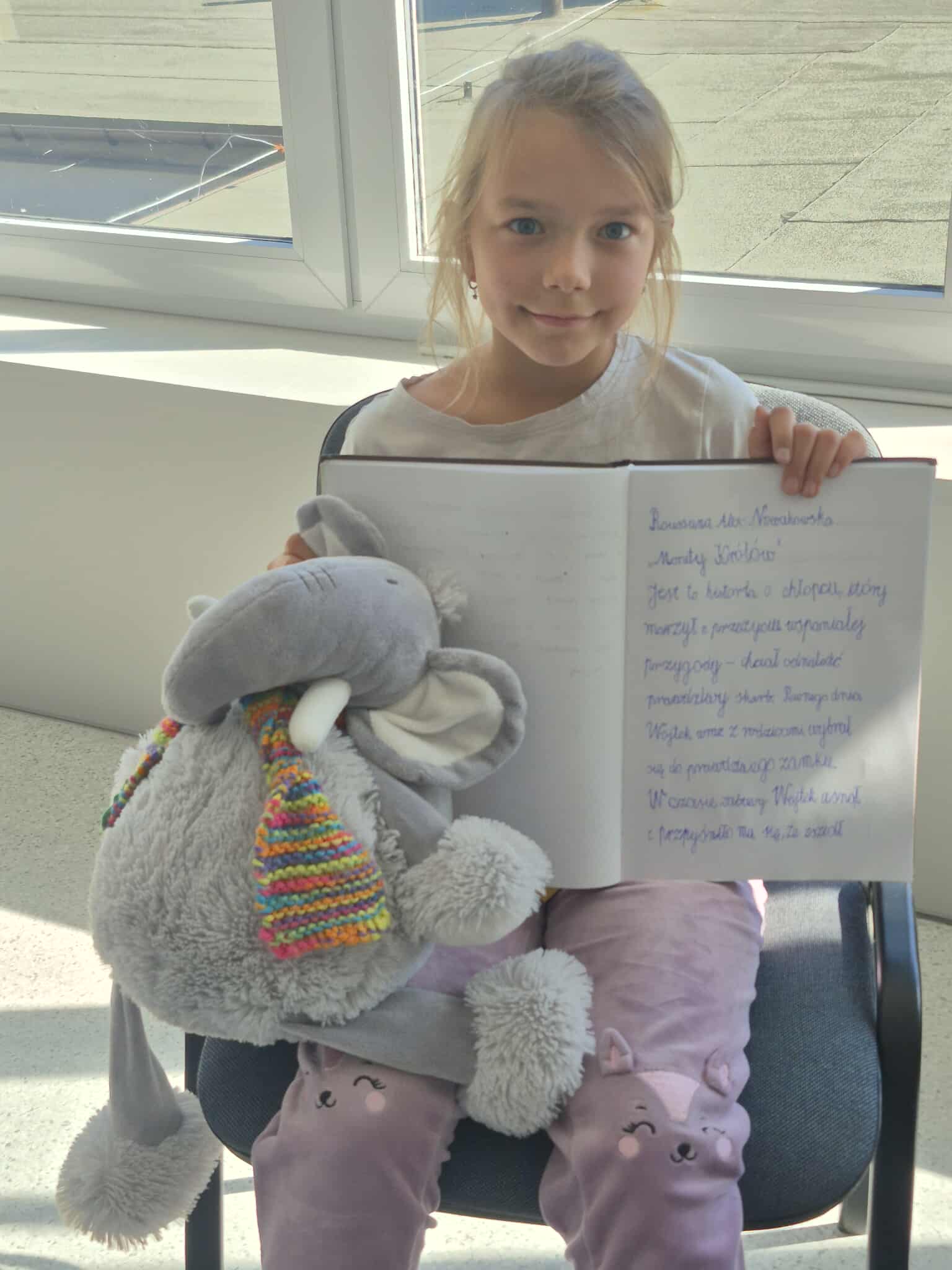 W ramach realizacji klasowego projektu, uczennica klasy 2a Kornelka, zaprezentowała książkę Roussany Alex-Nowakowskiej „Monety Królów”. Pasjonująca prezentacja wzbudziła ogromne zainteresowanie wśród rówieśników. Dziewczynka została nagrodzona donośnymi brawami. Kornelko, gratulujemy wspaniałego występu! Tymczasem słoń „Czytuś” udał się w kolejną podróż. W tym tygodni gości w domu Laury. Już nie możemy się doczekać kiedy ponownie wróci do klasy i wraz z Laurą opowie o przeczytanej lekturze.