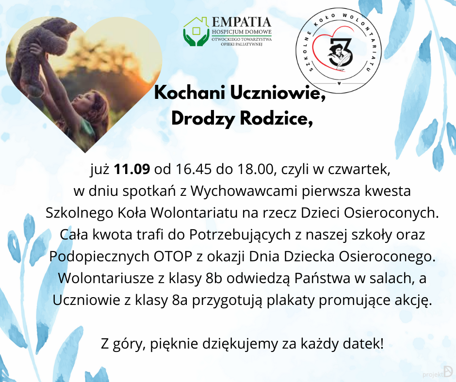 Zbiórka z okazji Dnia Dziecka Osieroconego - ogłoszenie
