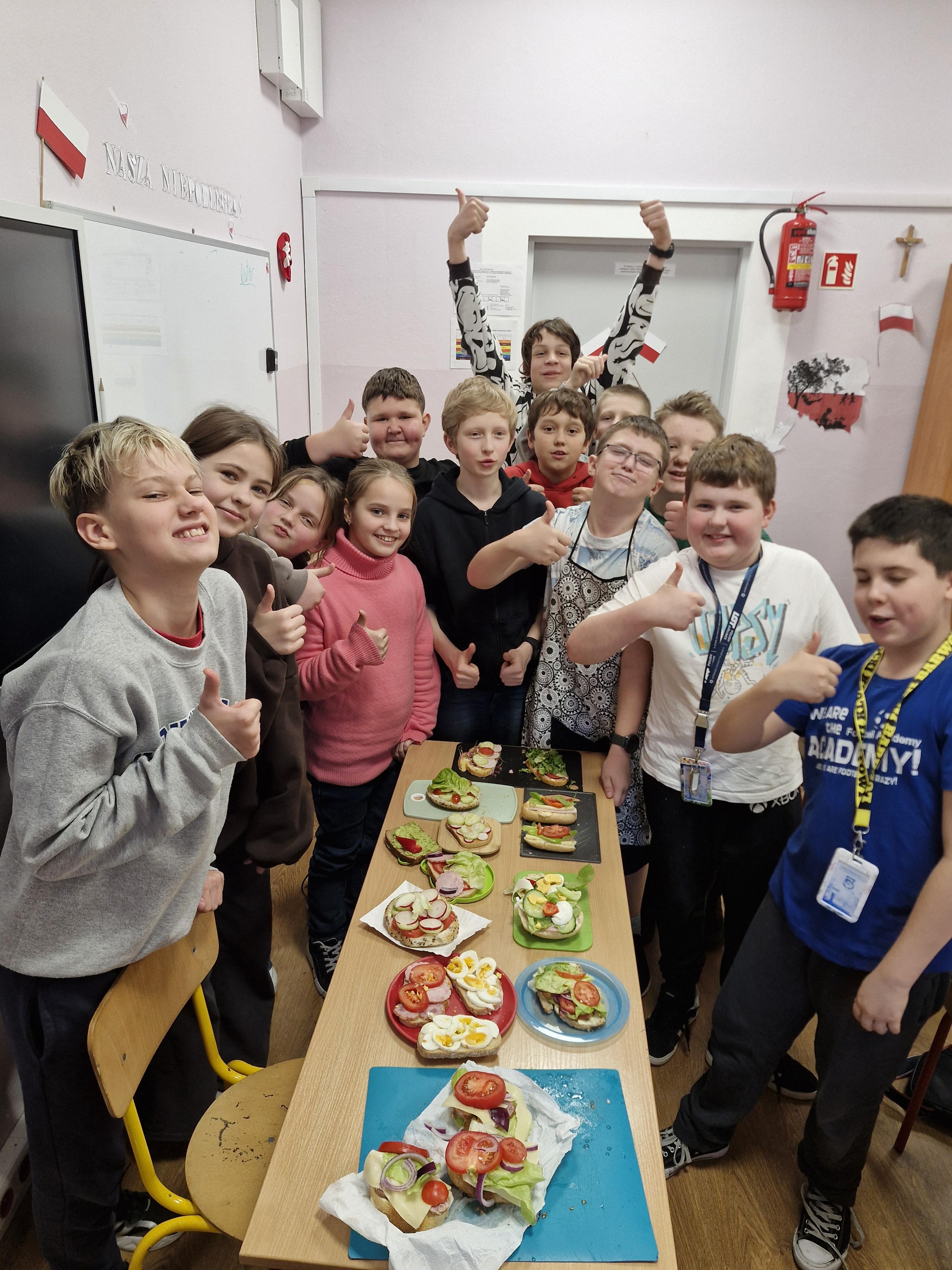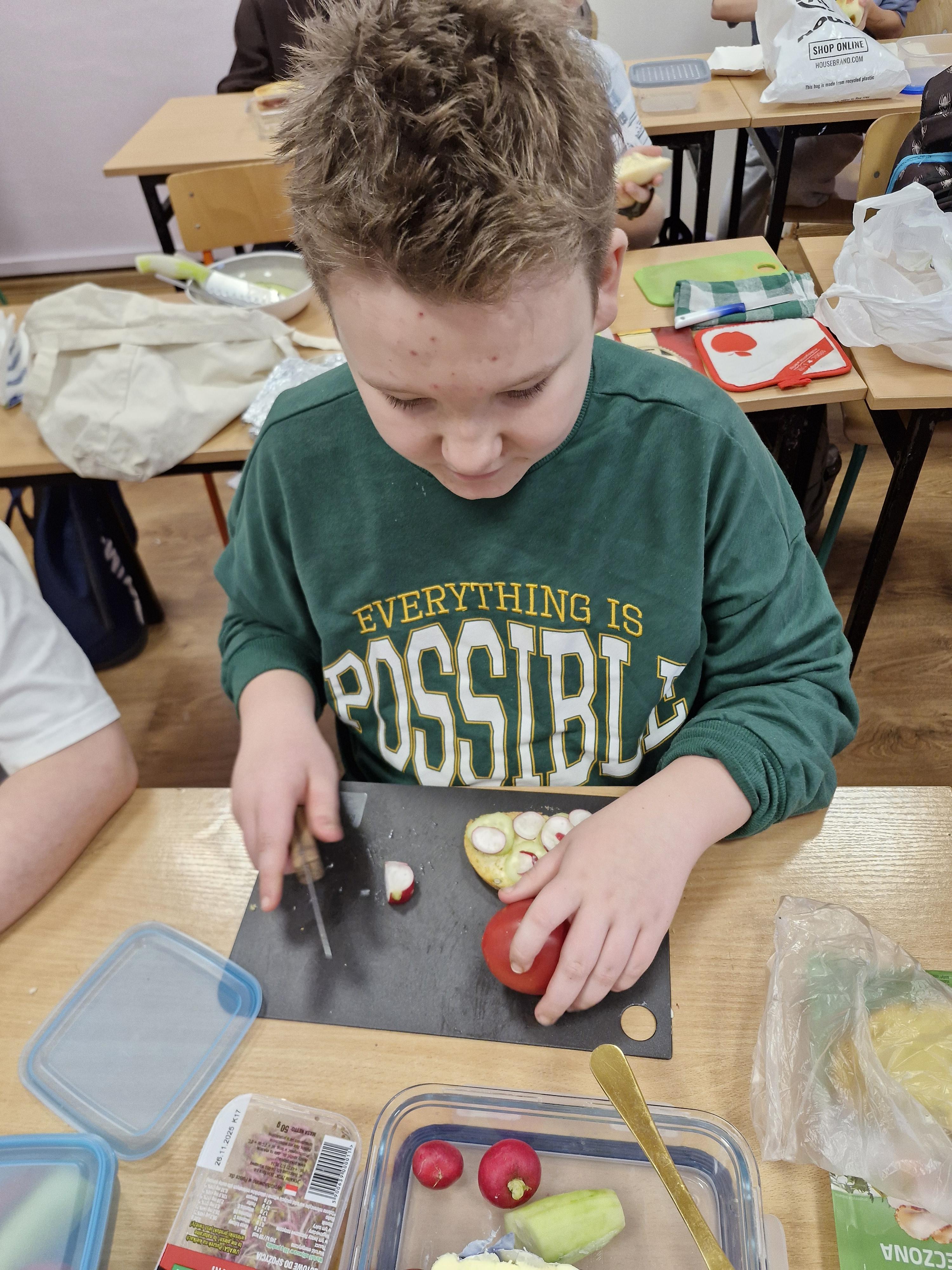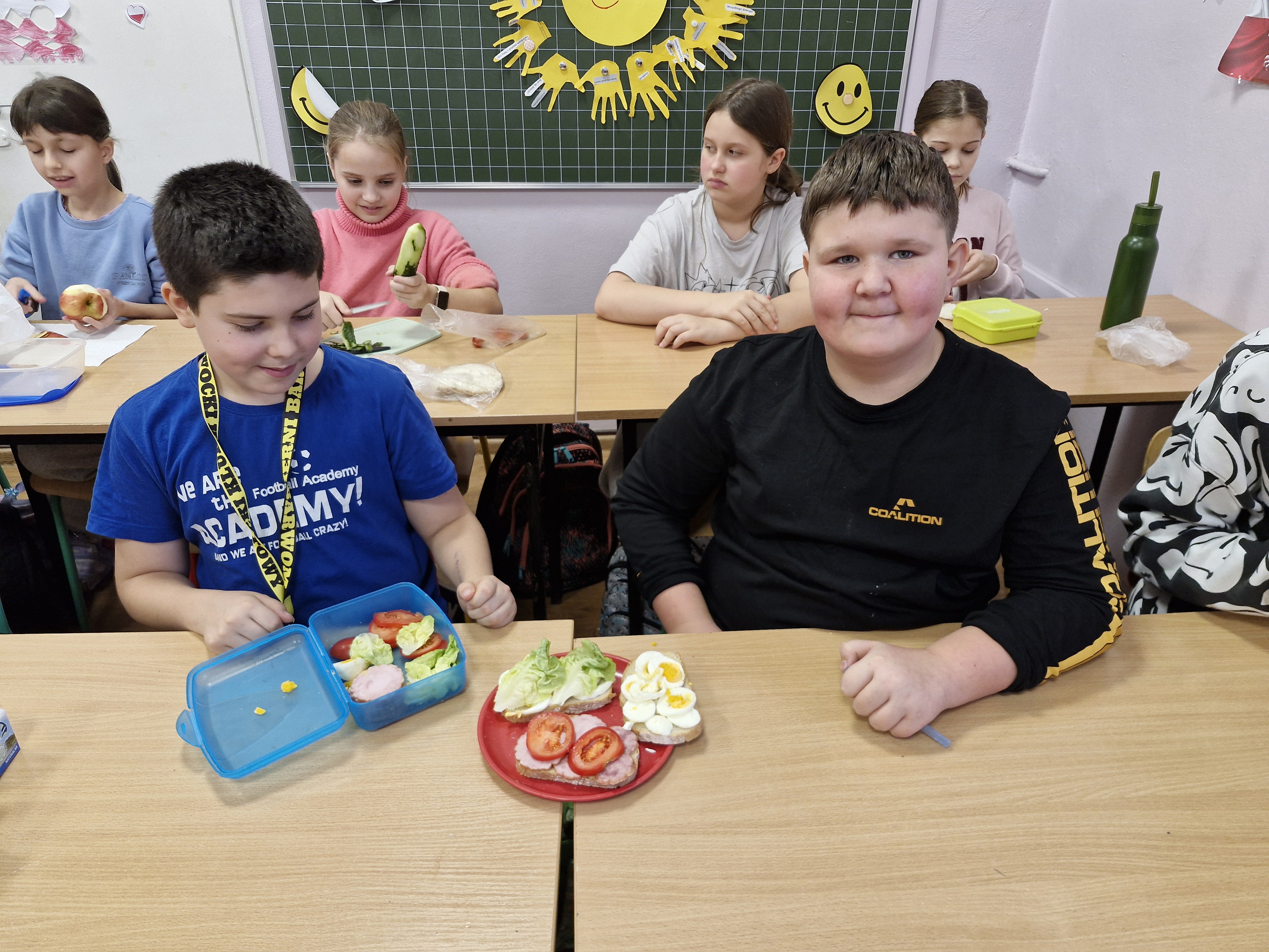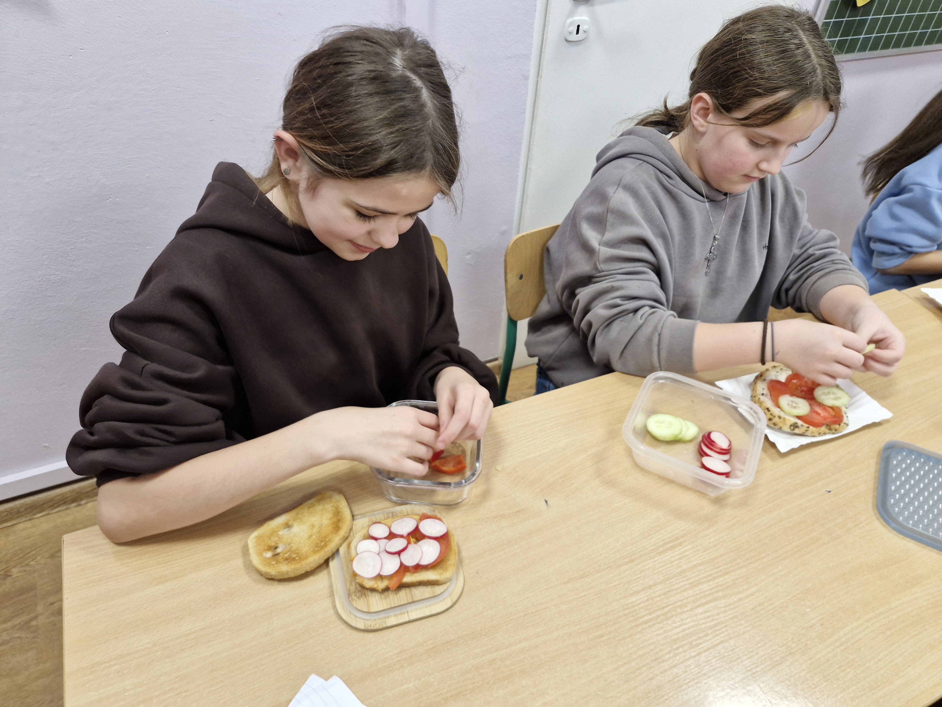 W dniu dzisiejszym kl. 5c w ramach akcji Trzymaj Formę robiła zdrowe drugie śniadanie. Uczniowie uczyli się jak wartościowy powinien być posiłek, który da energię do funkcjonowania na cały dzień.